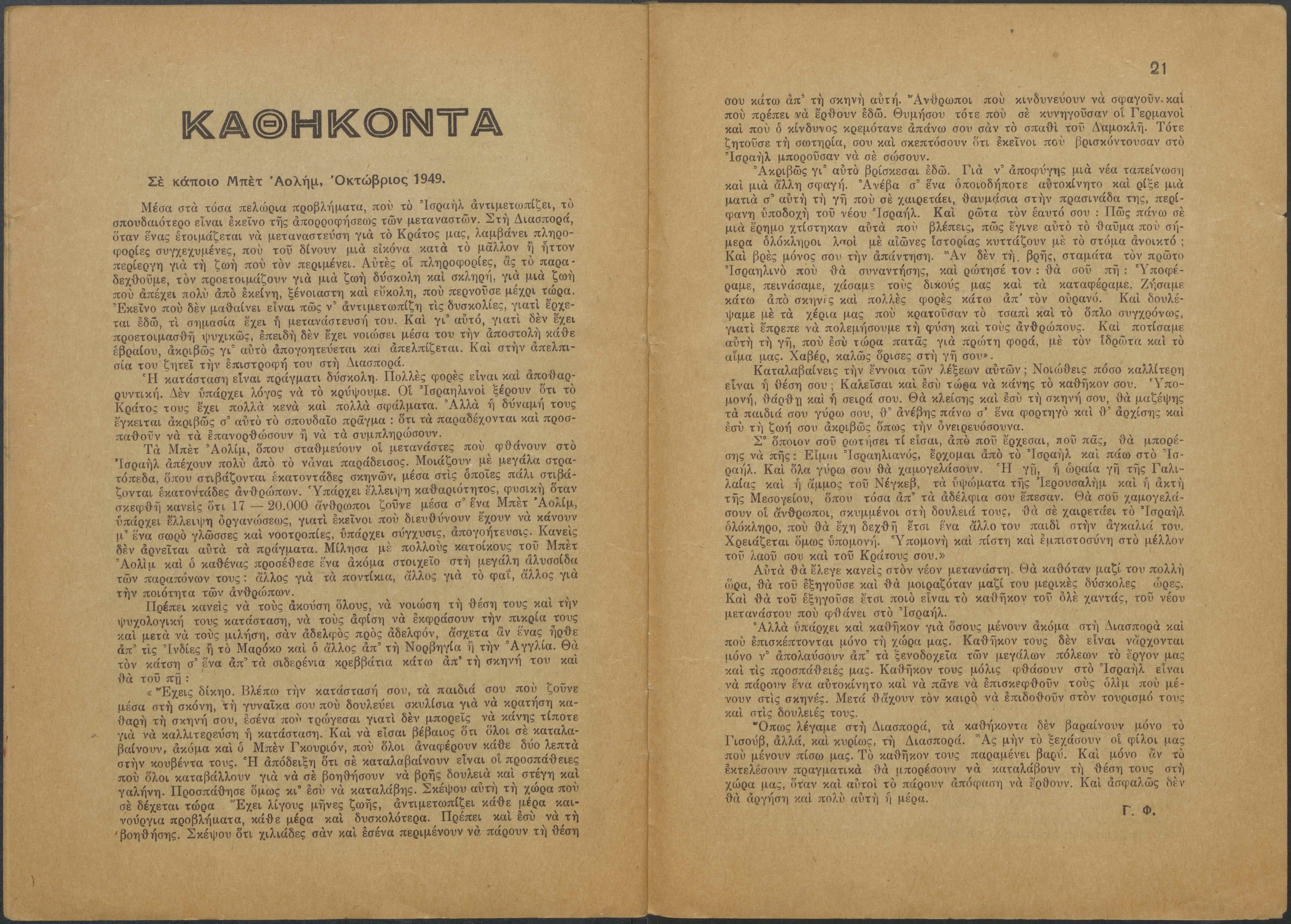 Weekly Greek-Jewish newspaper issue No. 8, 31 pages.