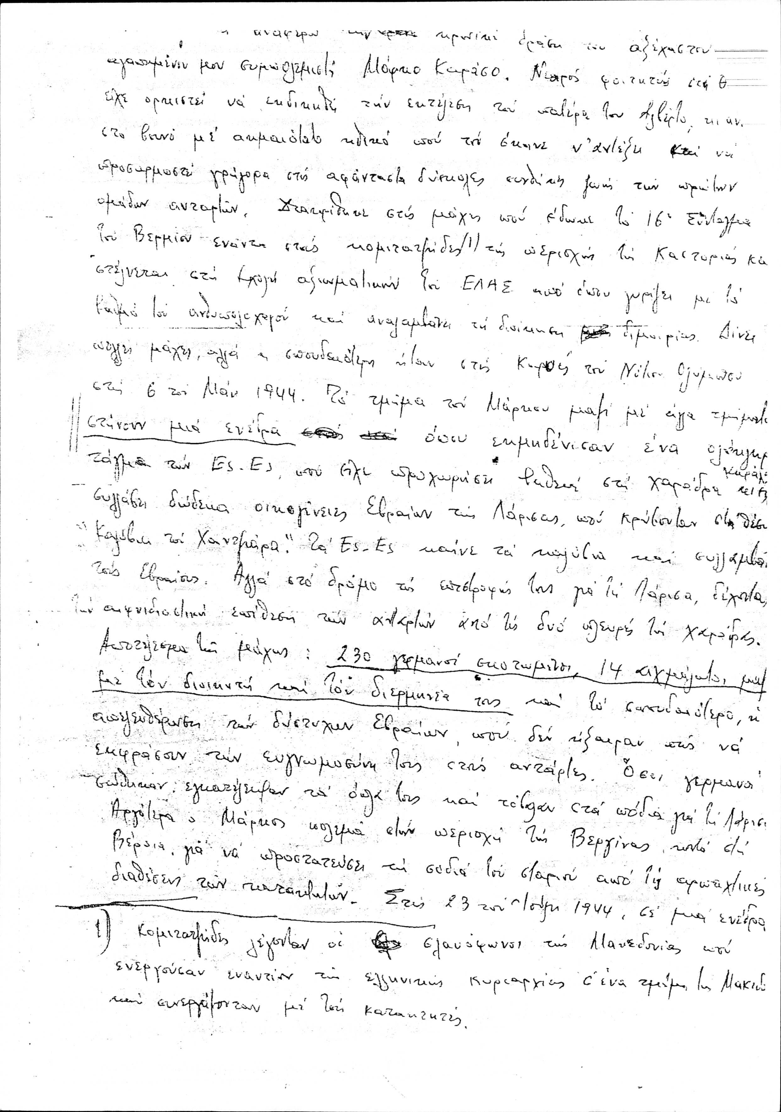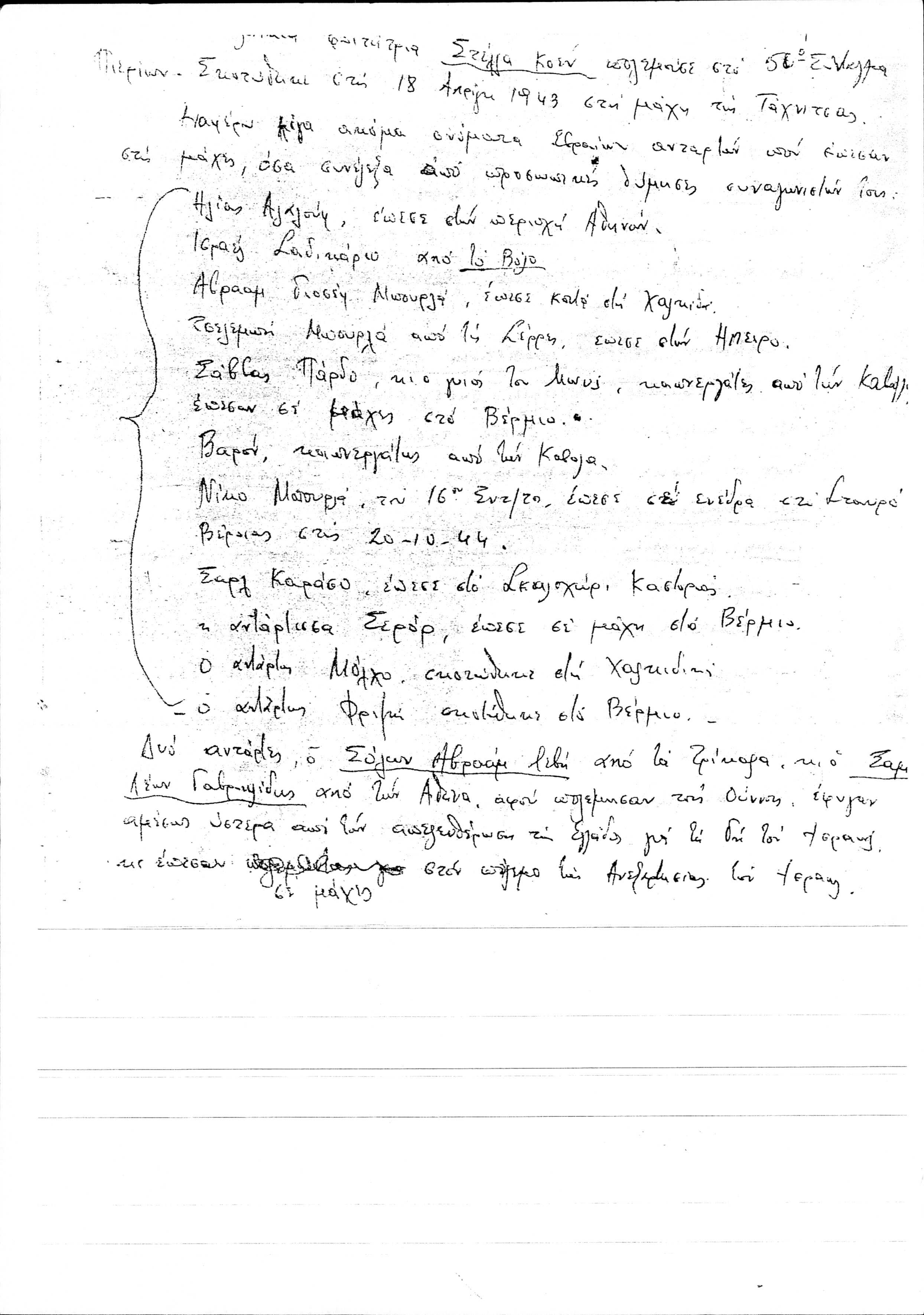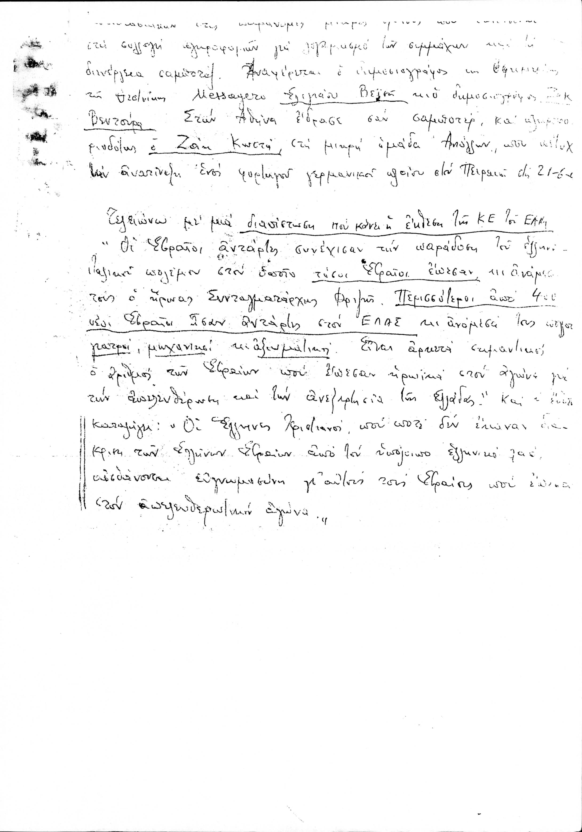 Copy of Marcel Yoel's handwritten speech about the Greek Jews in the National Resistance during World War II.