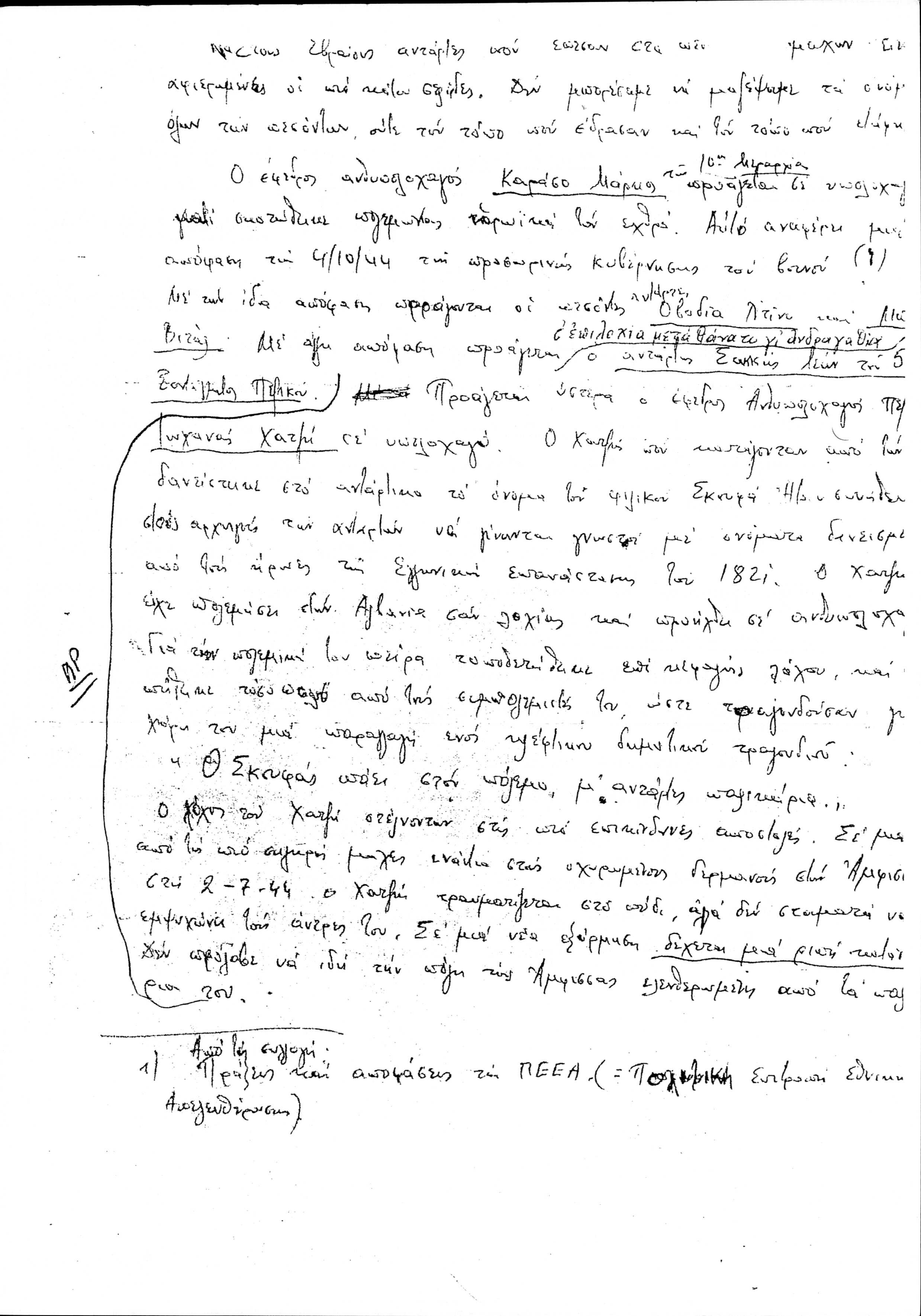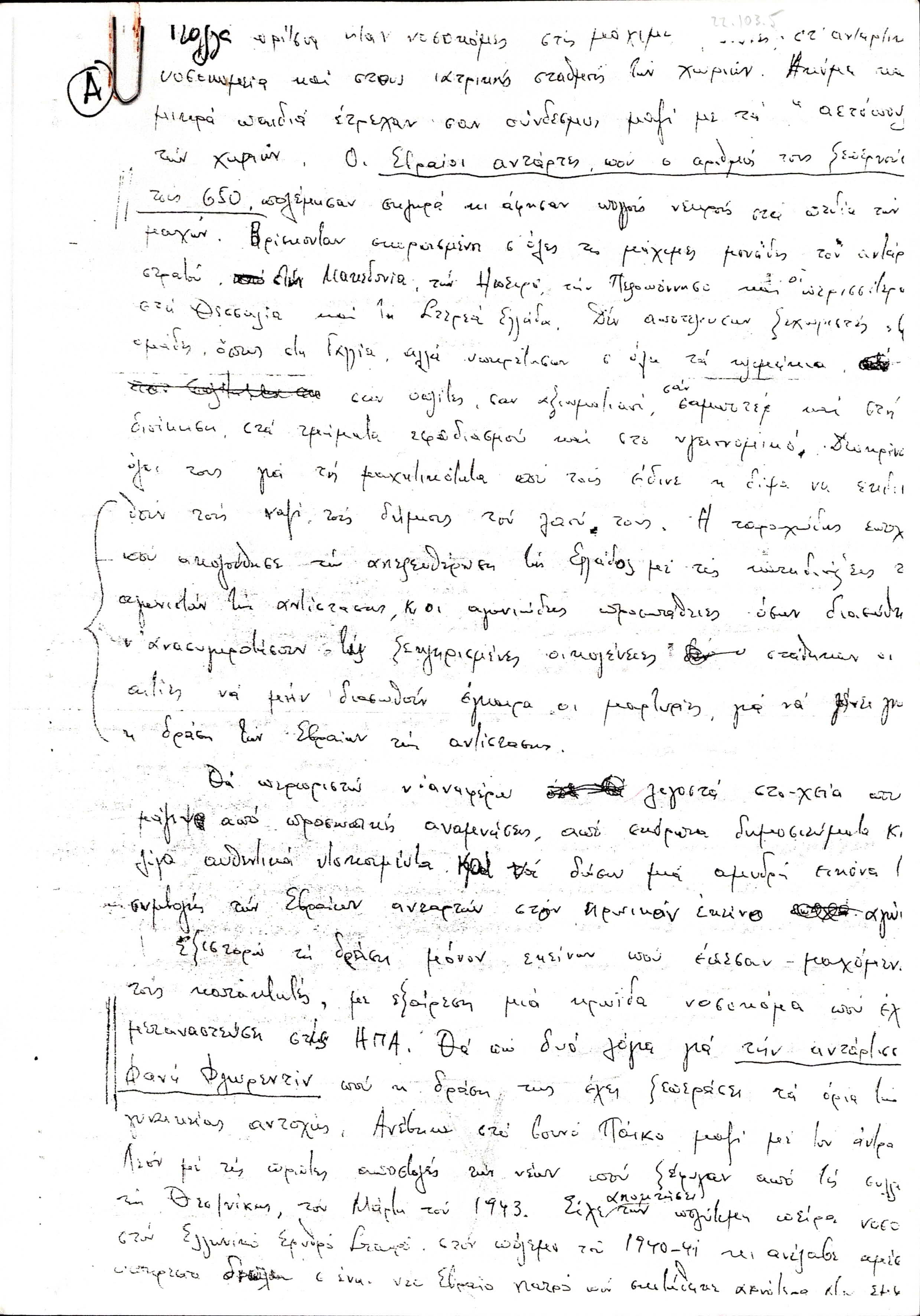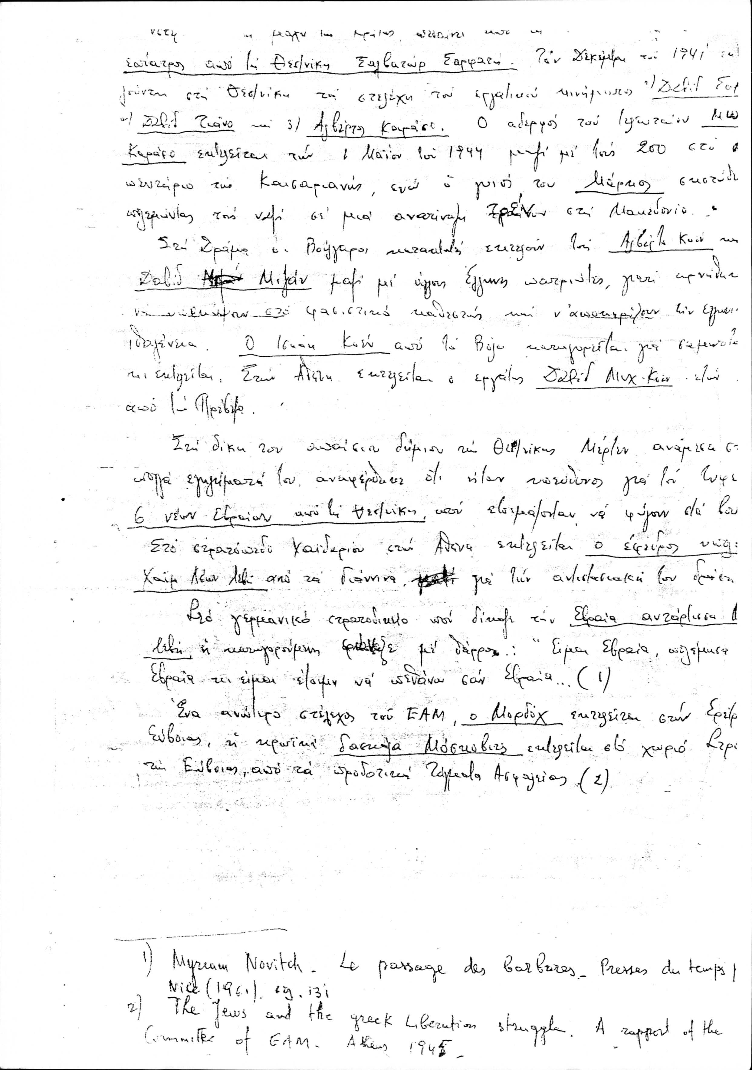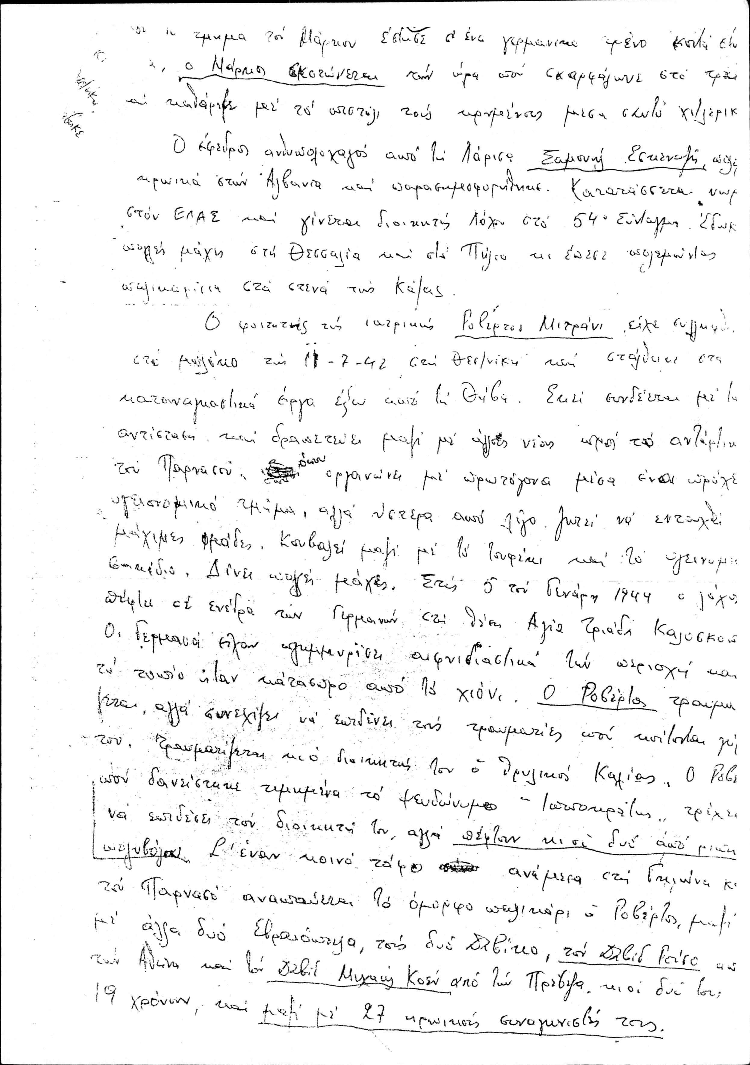 Copy of Marcel Yoel's handwritten speech about the Greek Jews in the National Resistance during World War II.