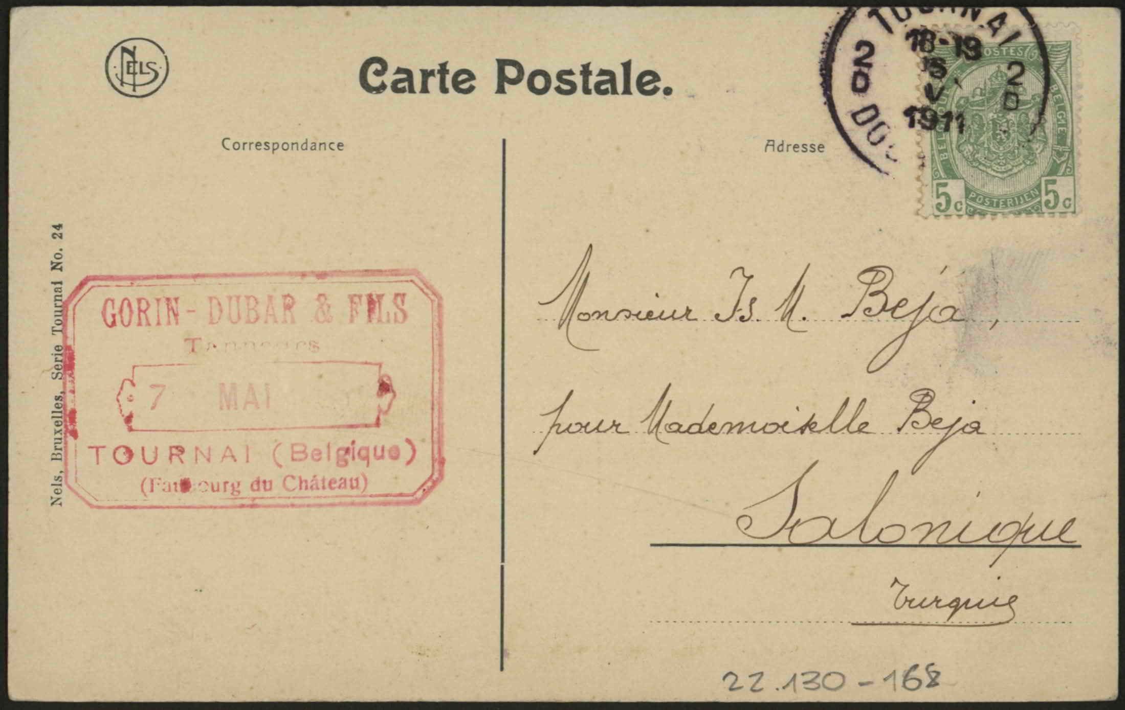 From Lisetta for Monsieur Isac M. Beja, pour Mademoiselle Lucie, Salonicco, Turchia Europea. "Un saluto ed un pensiero dalla Spezia, Lisetta".