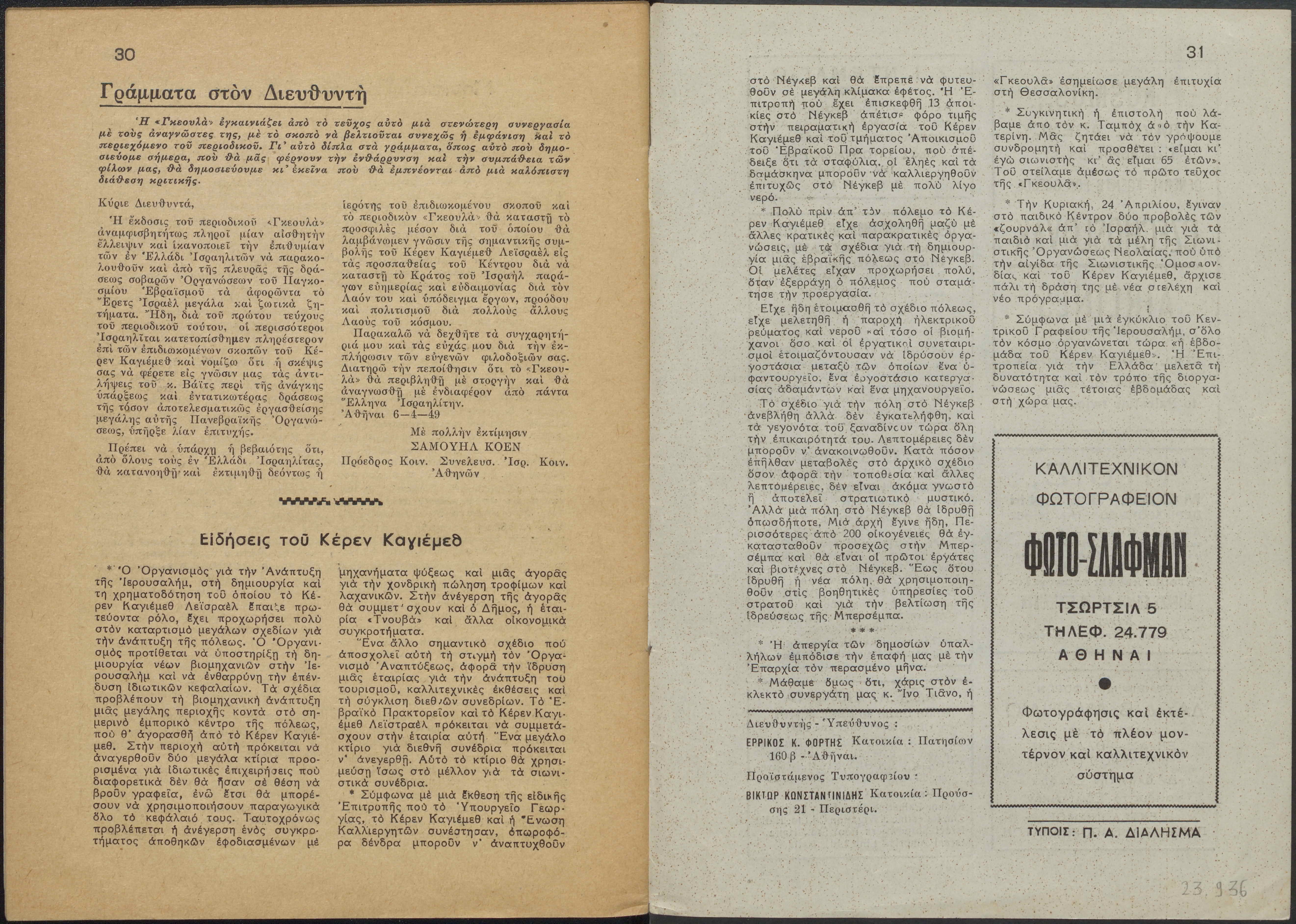 Weekly Greek-Jewish newspaper issue No. 2, 31 pages.