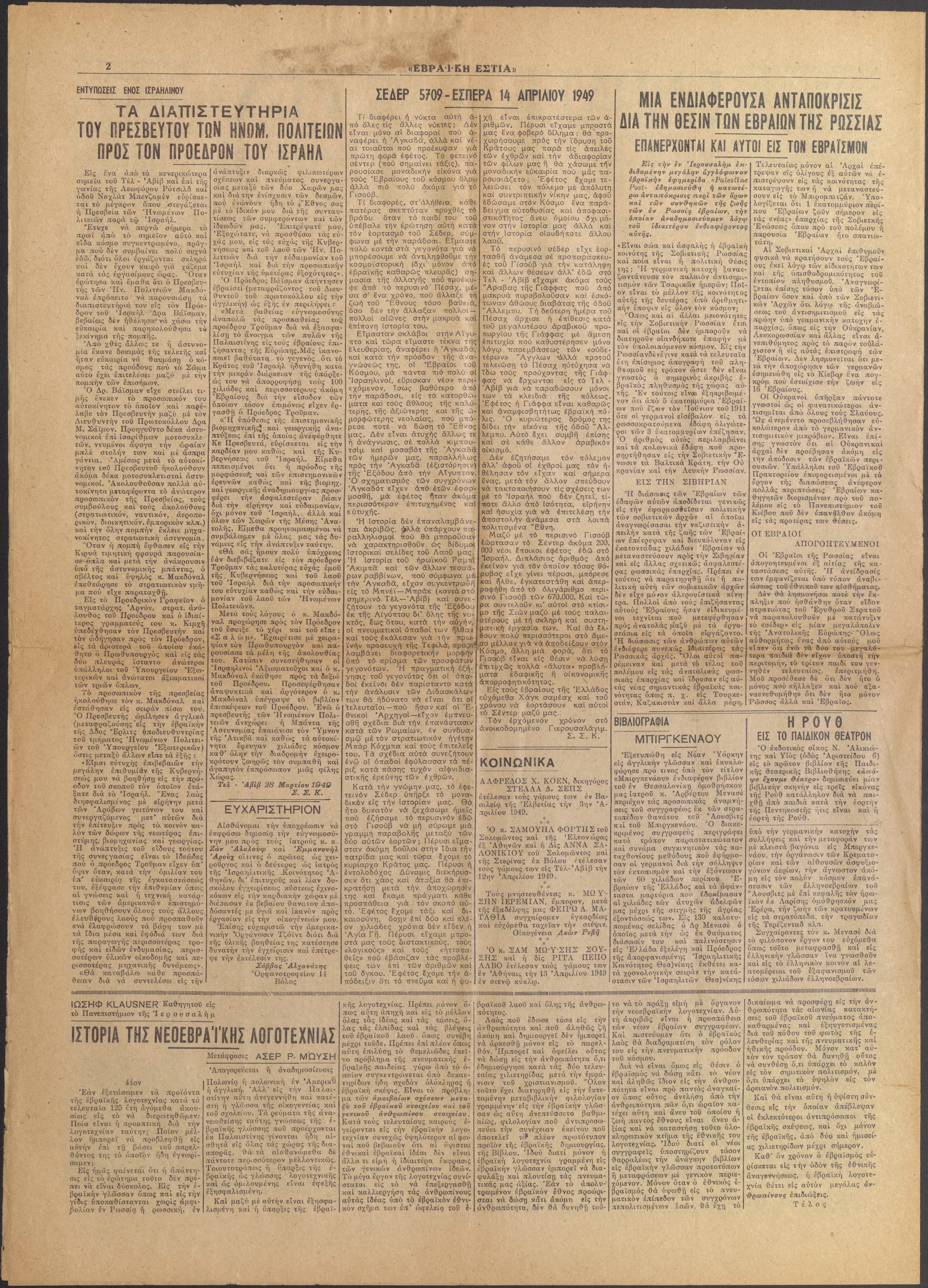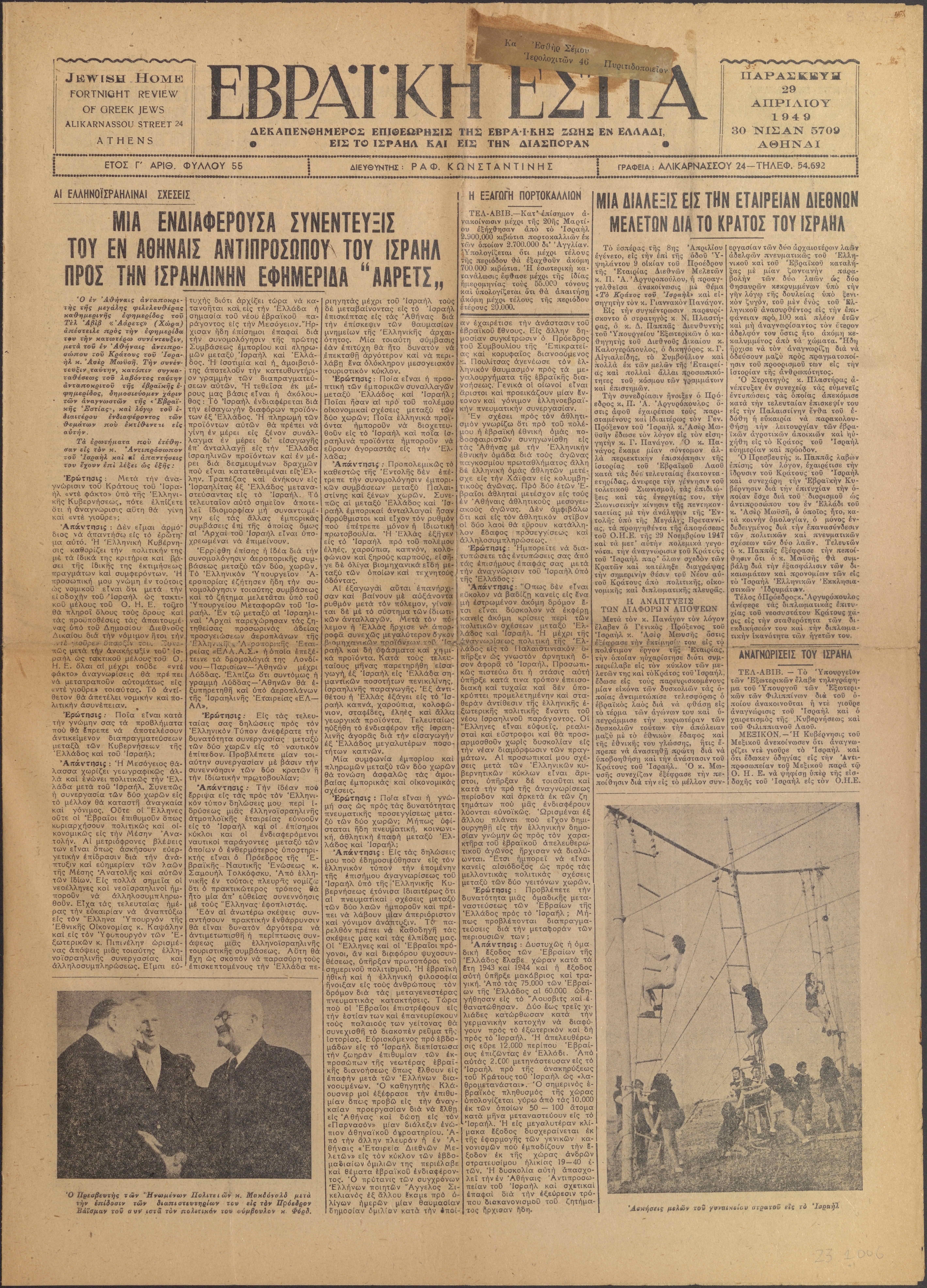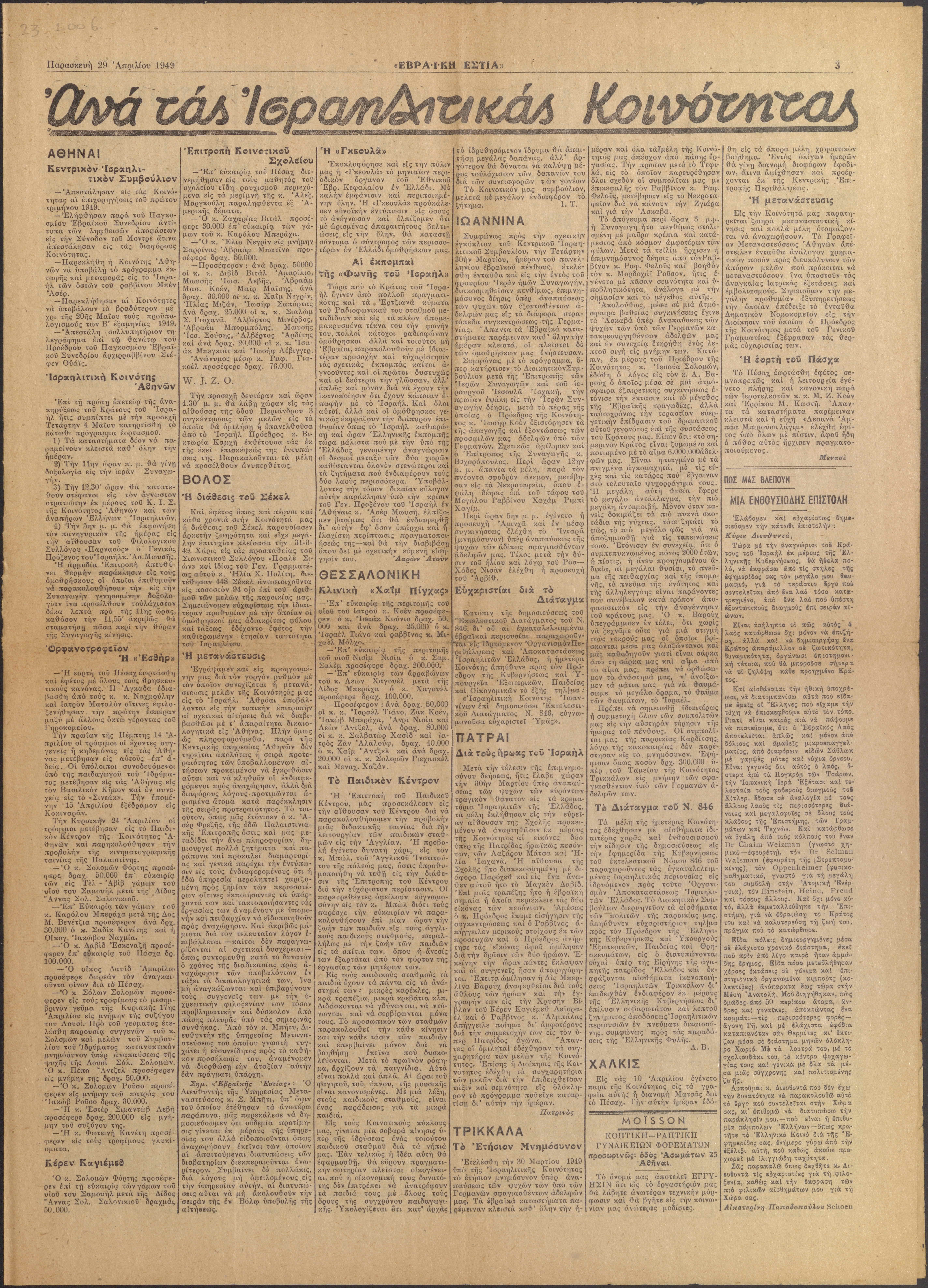 Press, newspaper, Jewish press, Jewish newspaper, post war Jewish life in Greece