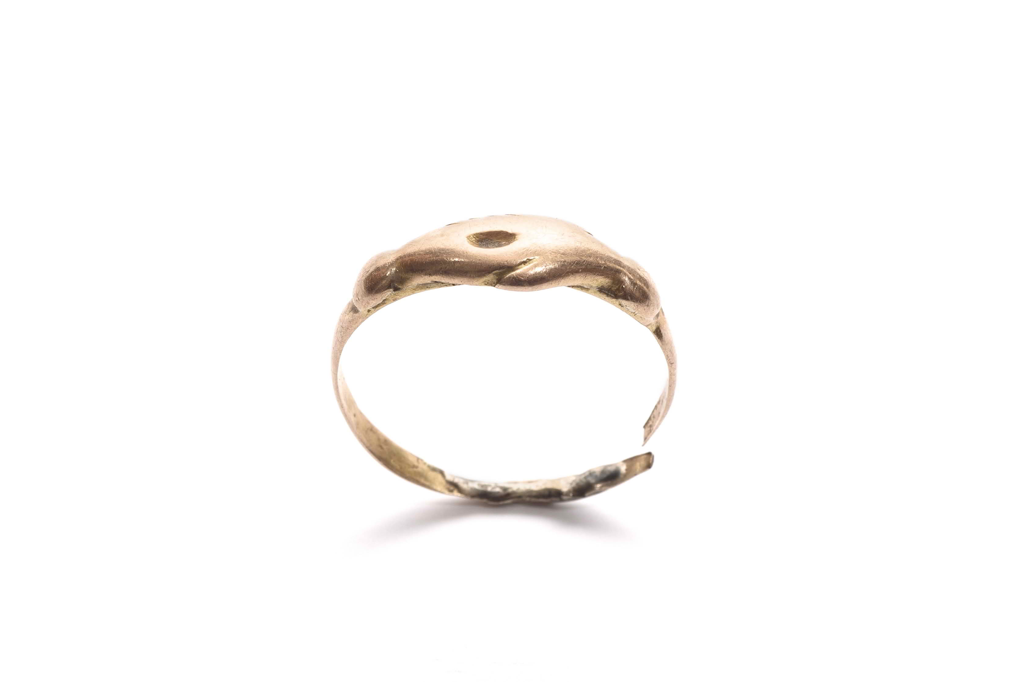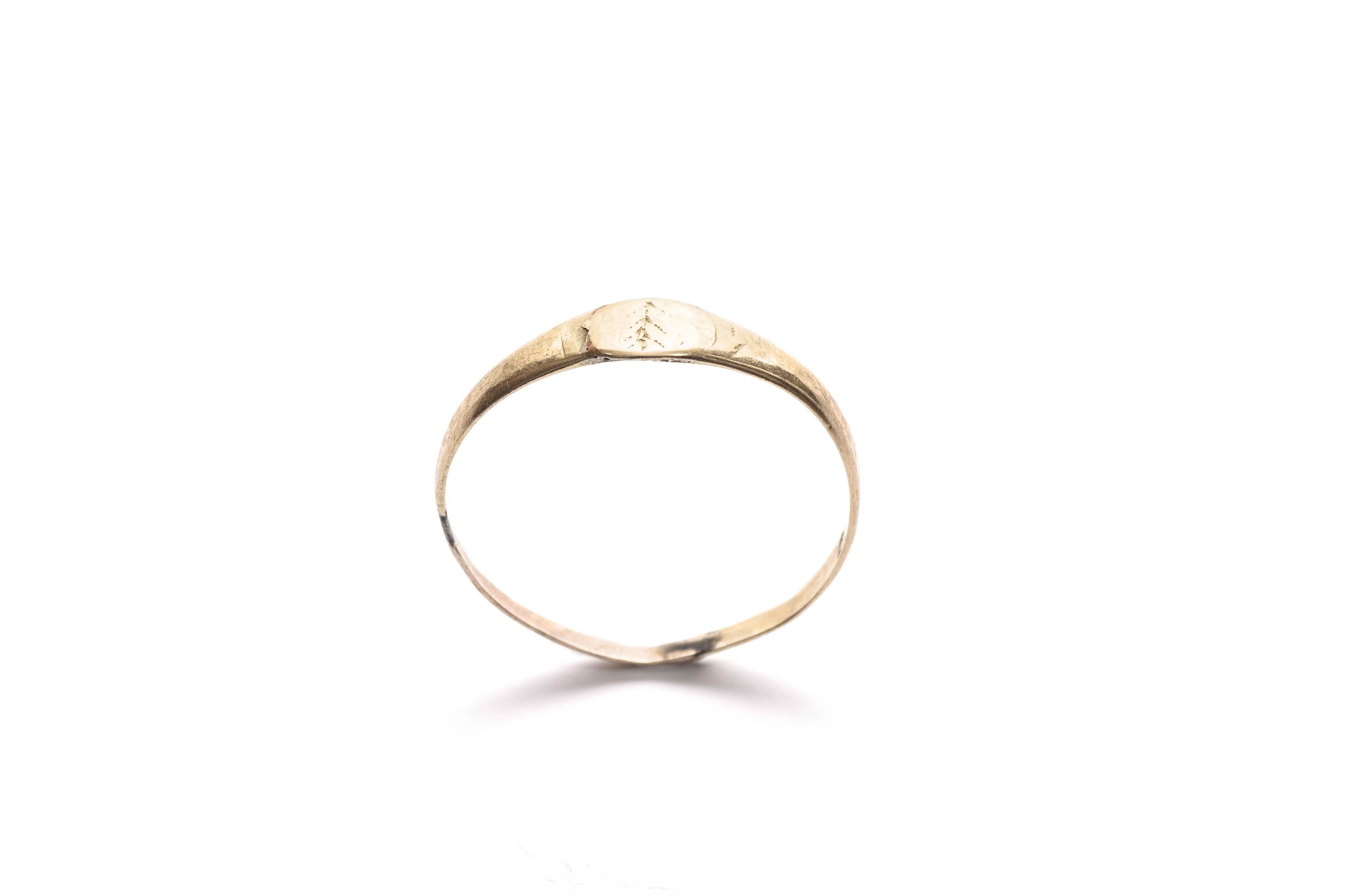 Woman's gold rings, undecorated with thin, flat hoops, widening or flatening towards the top.
