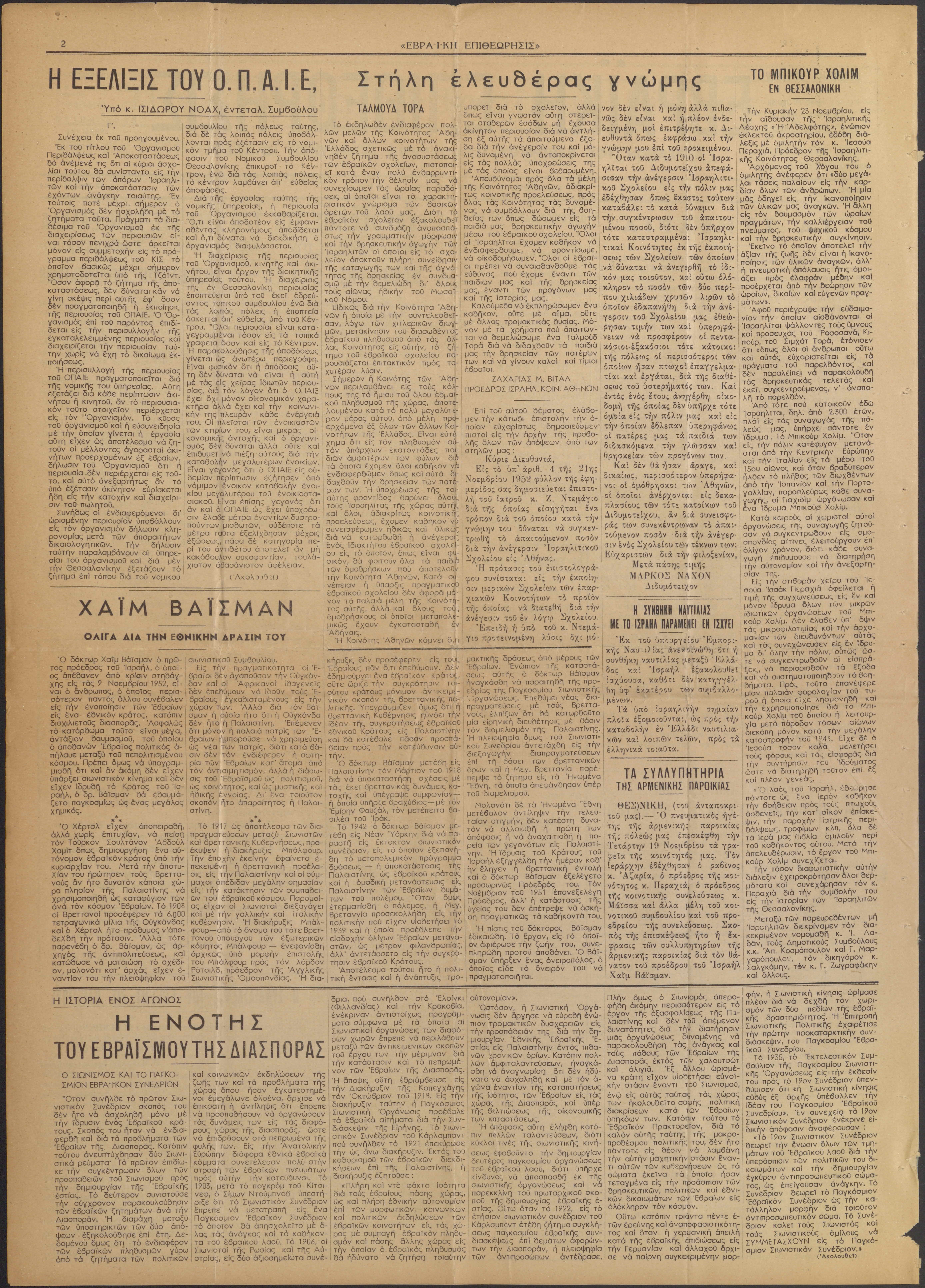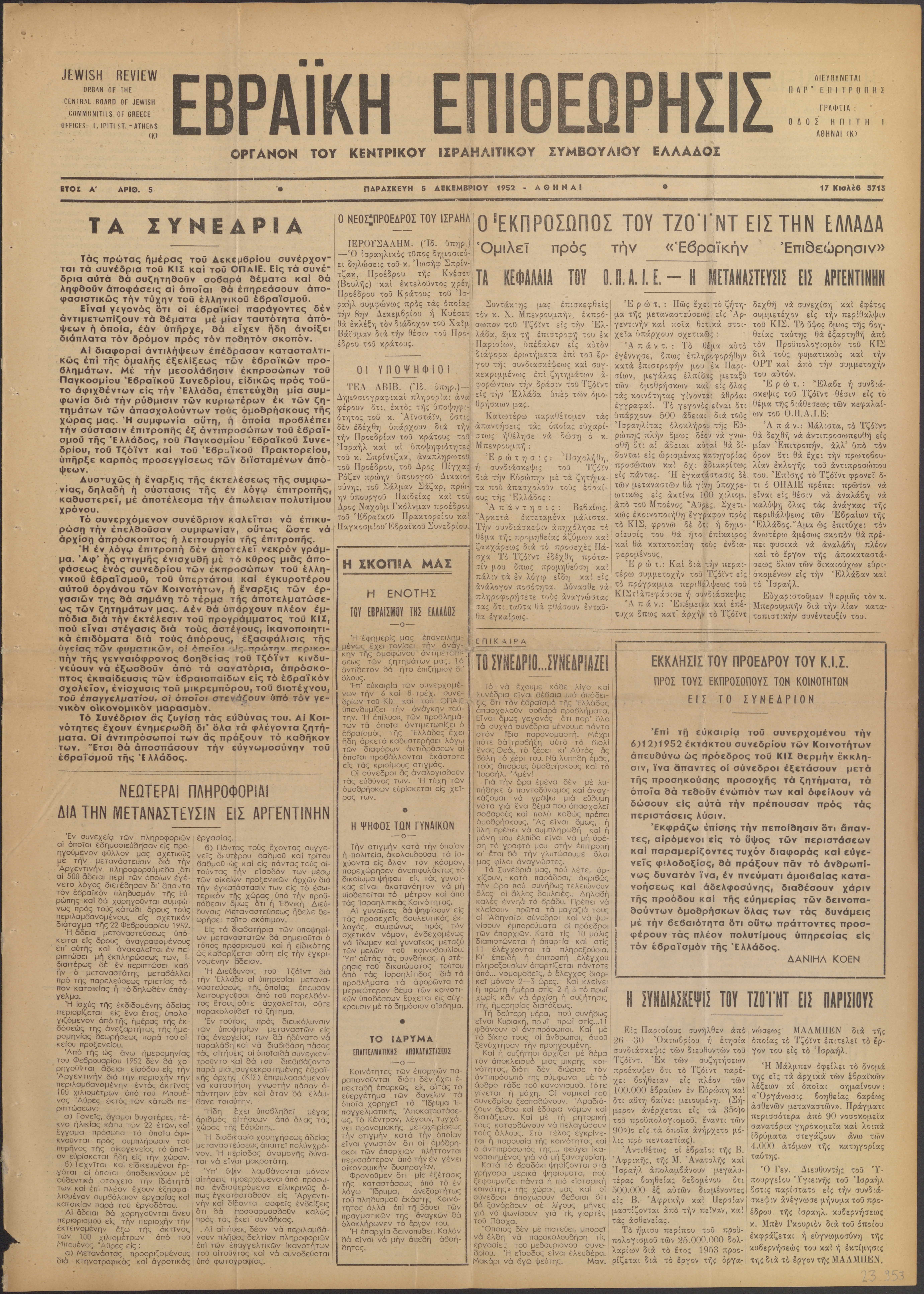 Organ of the Central Board of [the]Jewish Communities of Greece