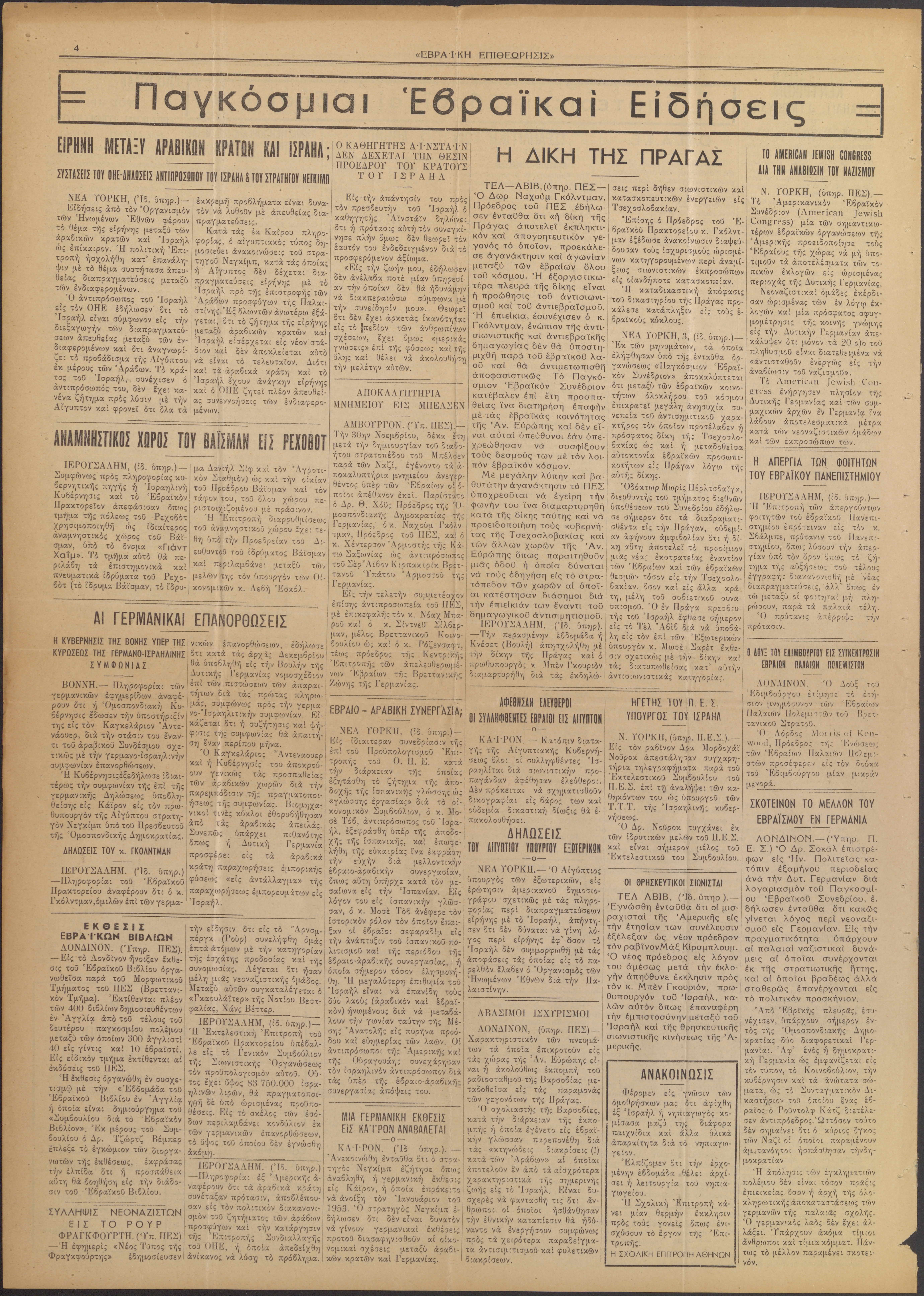 Press, newspaper, Jewish press, Jewish newspaper, post war Jewish life in Greece