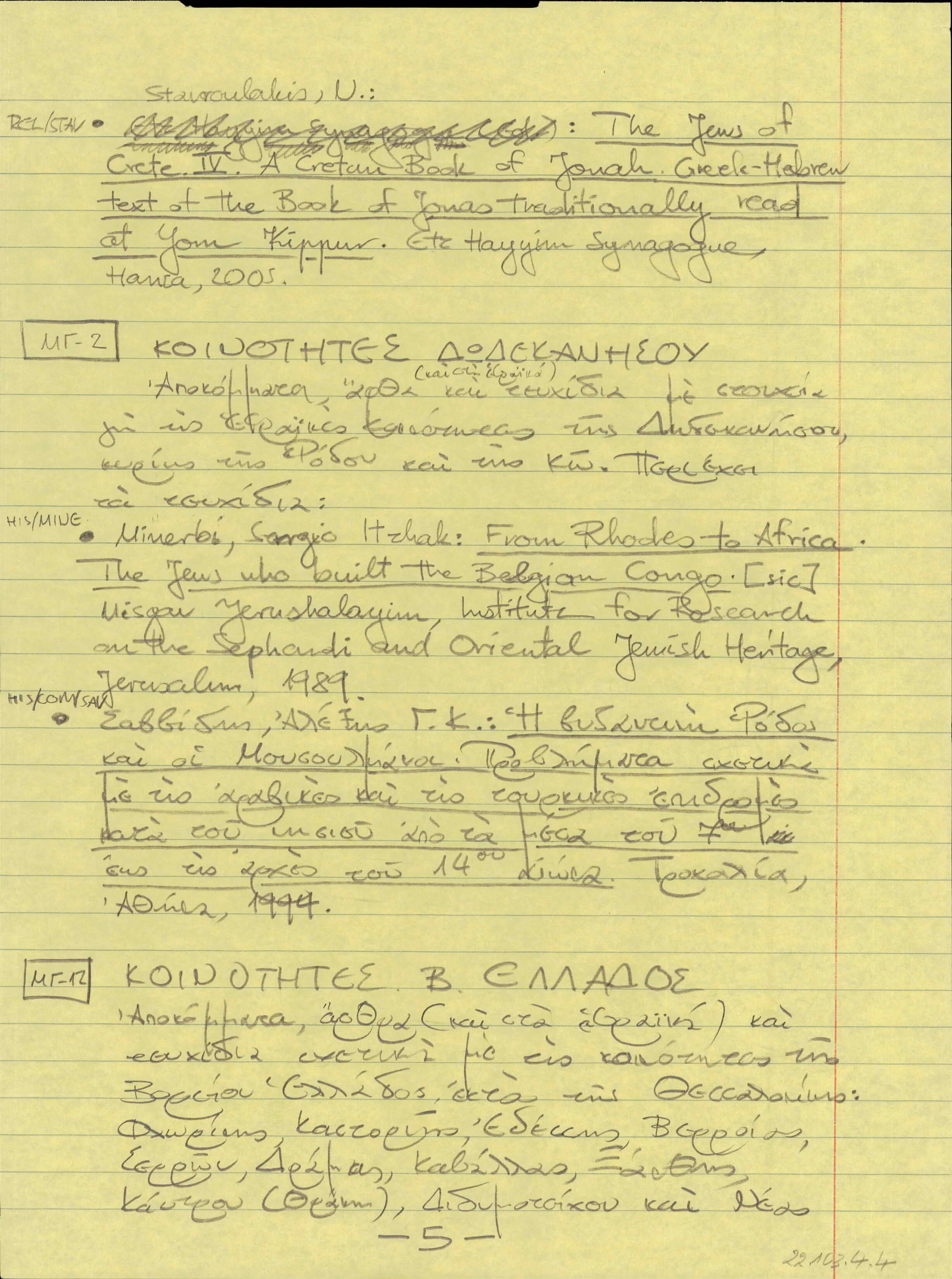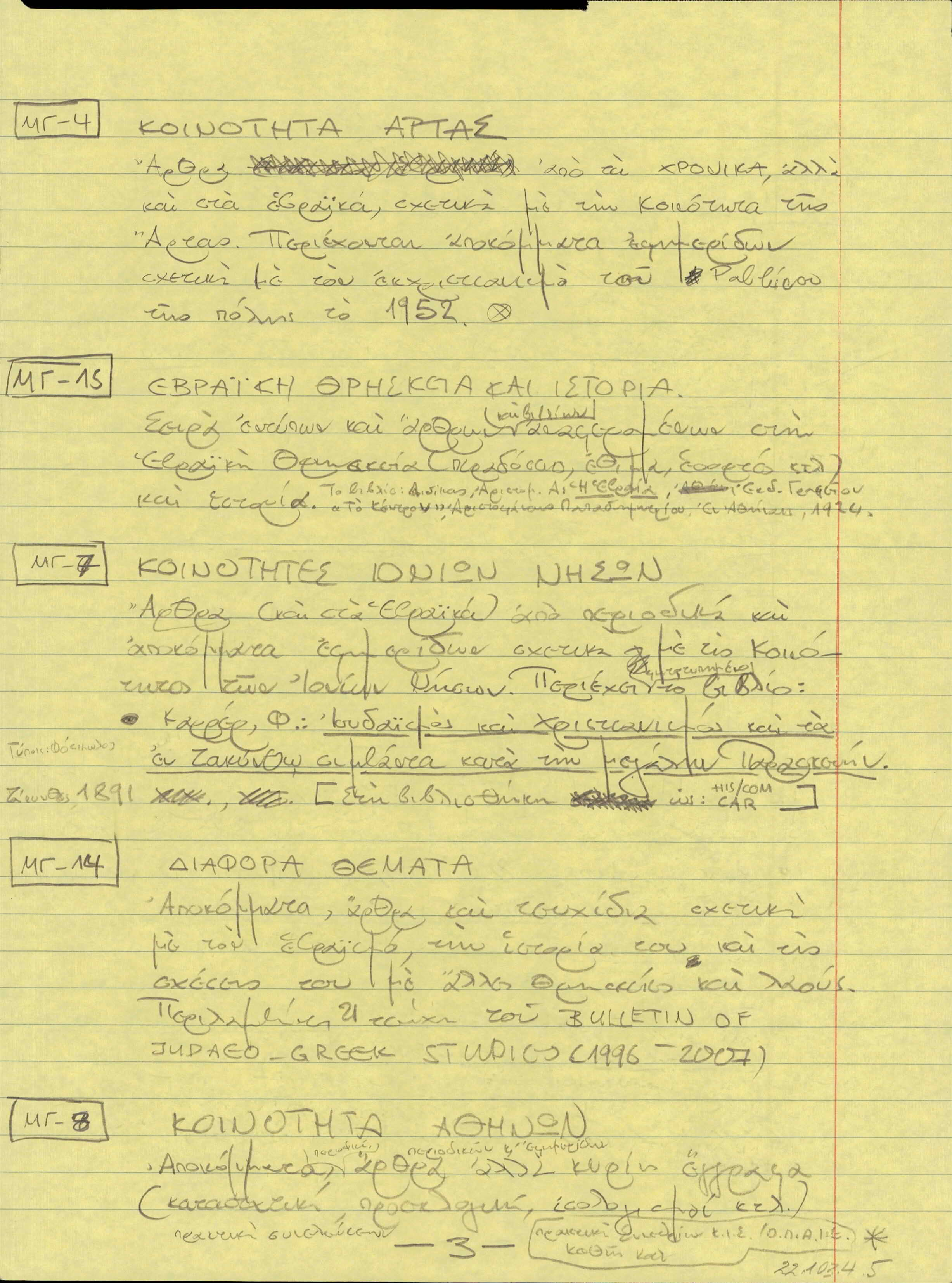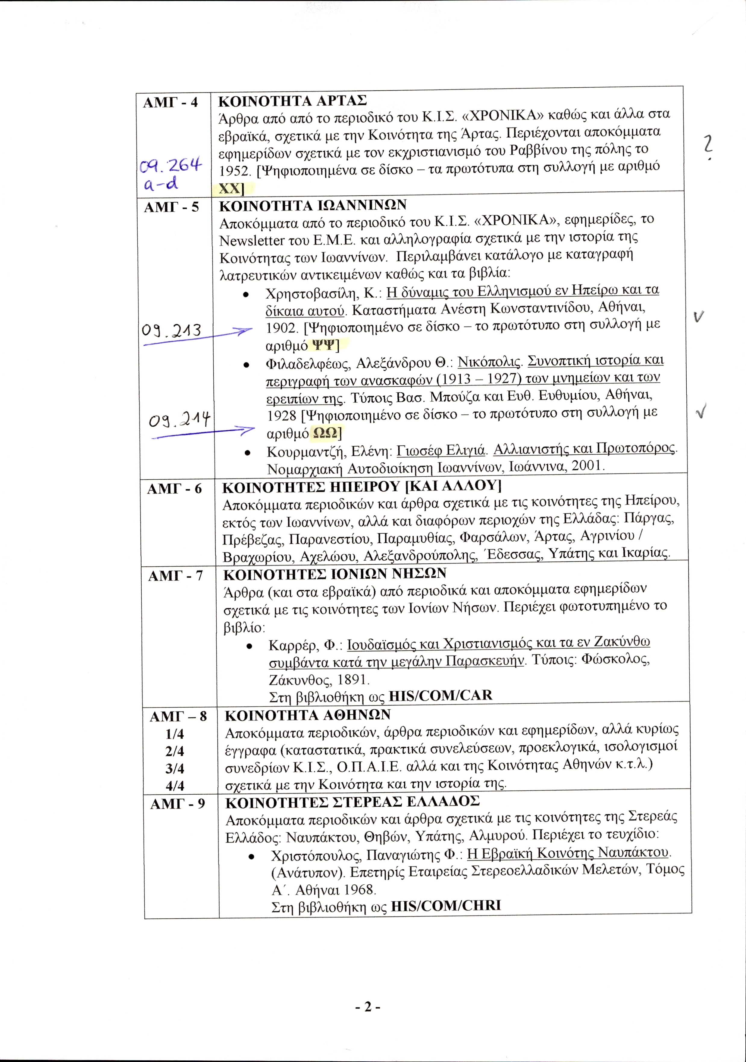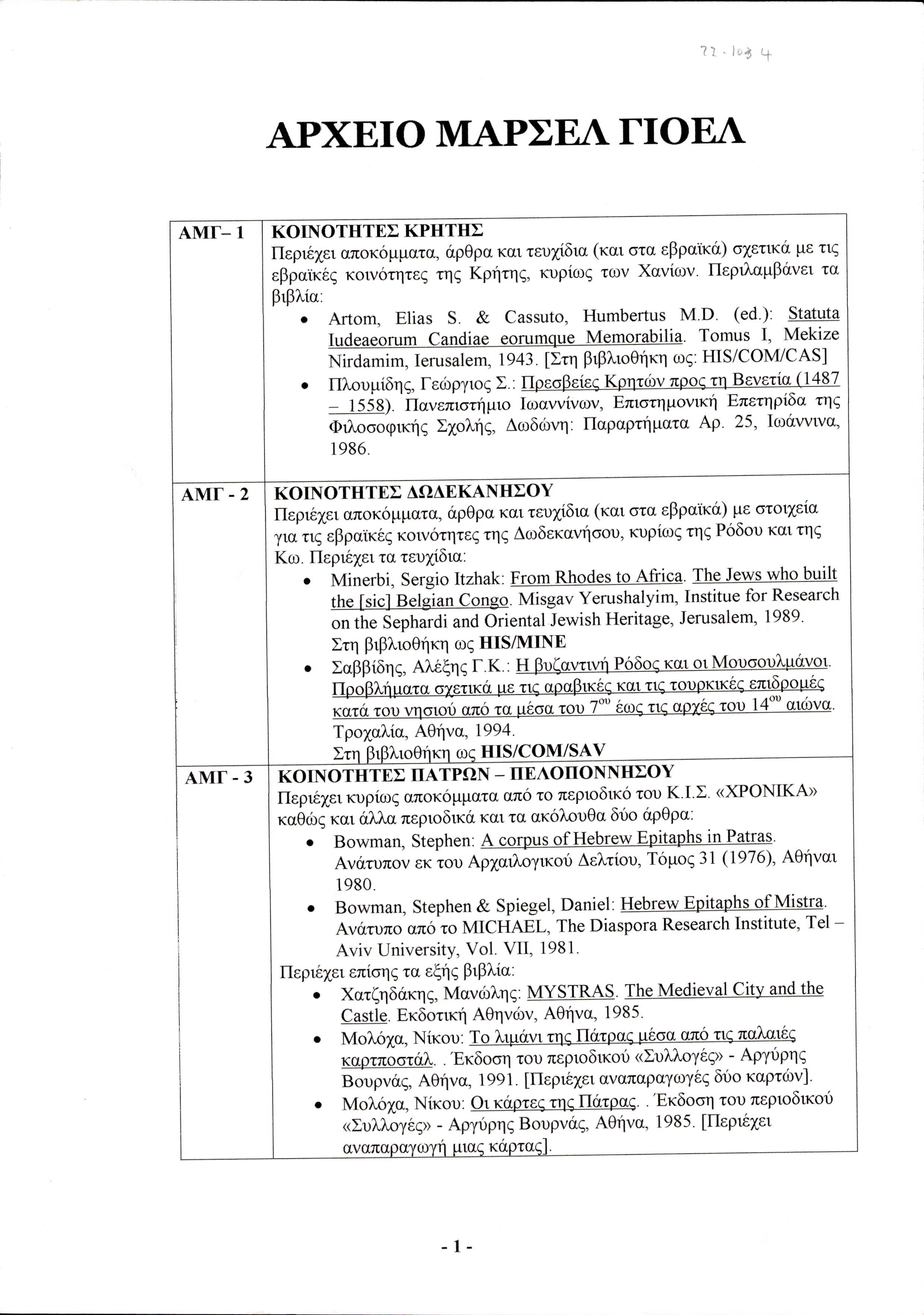 Jewish history in Greece, catalogues