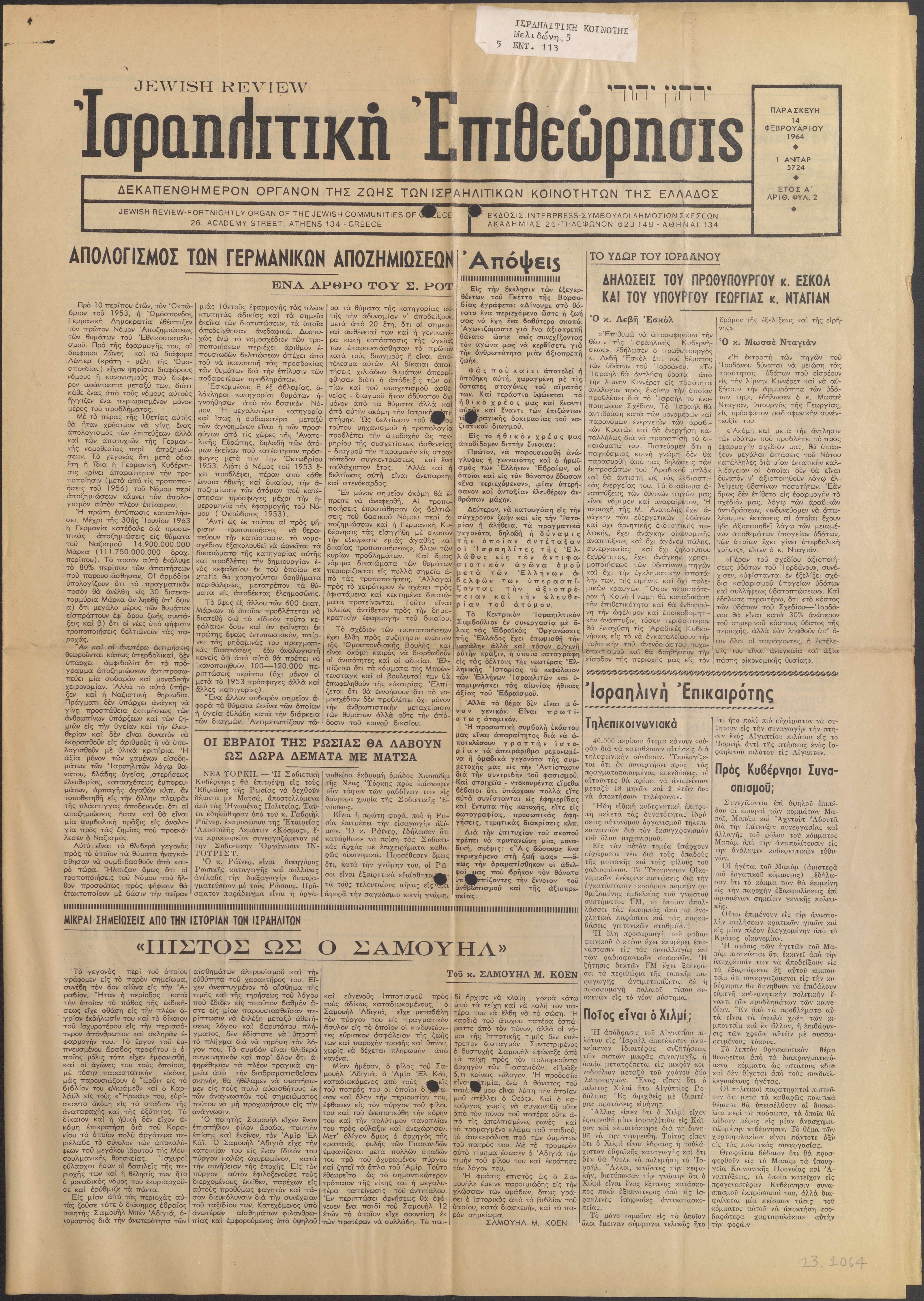 Jewish Review/ Ισραηλιτική Επιθεώρησις