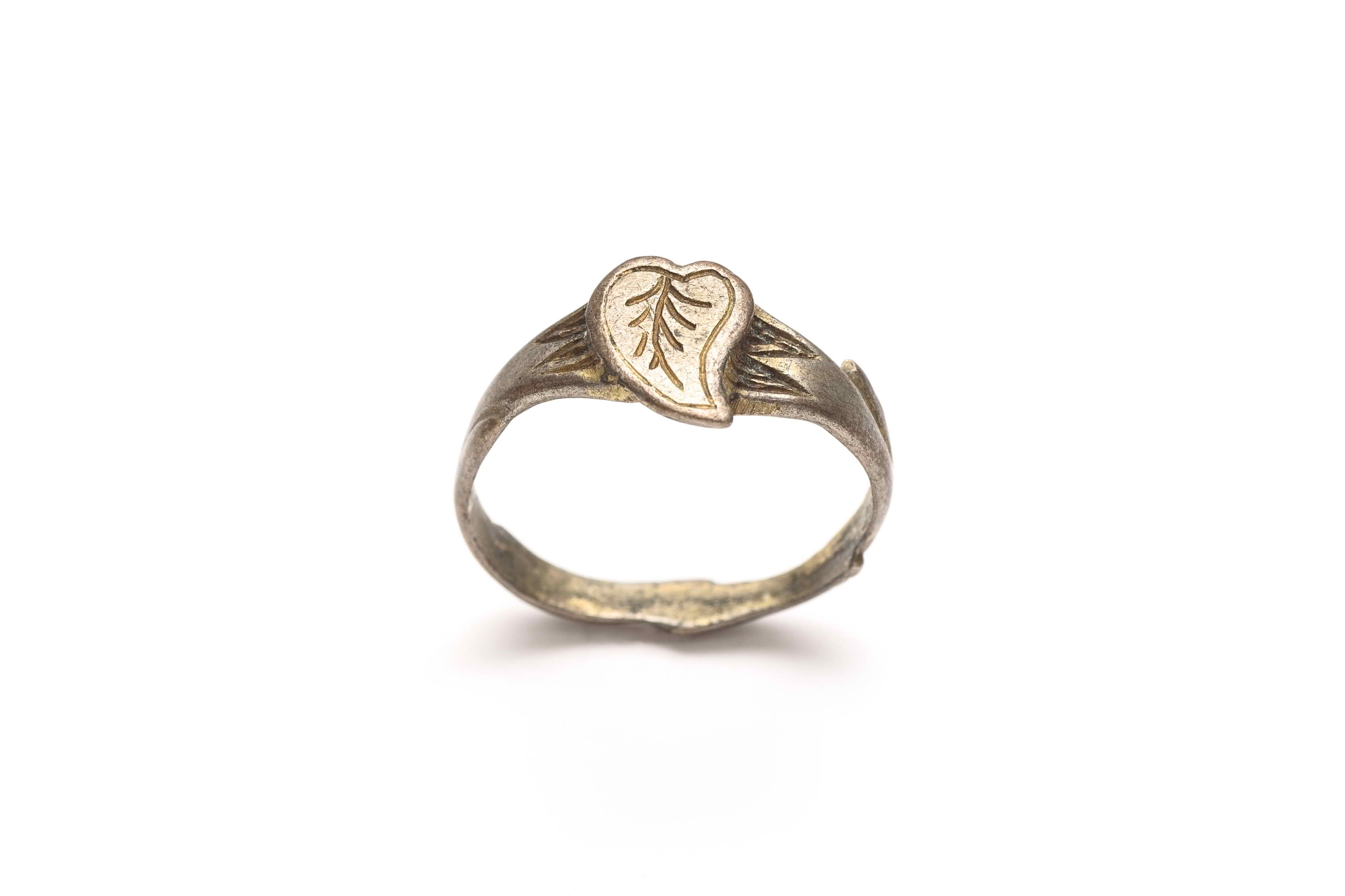 Silver ring engravedf with a heart-shaped motif, from Salonica.