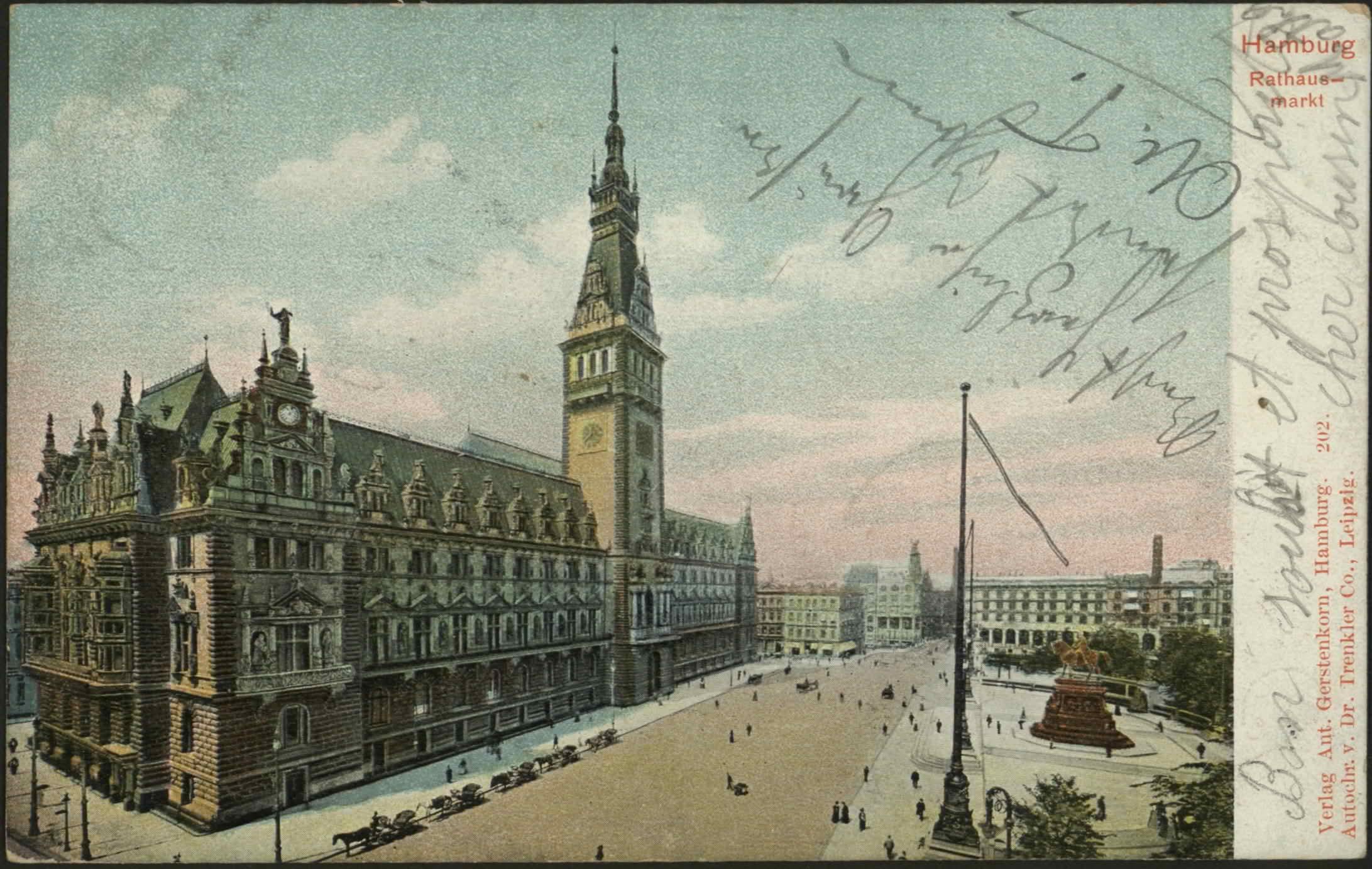 Hamburg, Rathausmarkt. Verlag Ant. Gerstenkorn, Hamburg. Autochr. v. Dr. Trenkler Co., Leipzig. 202. Postkarte.