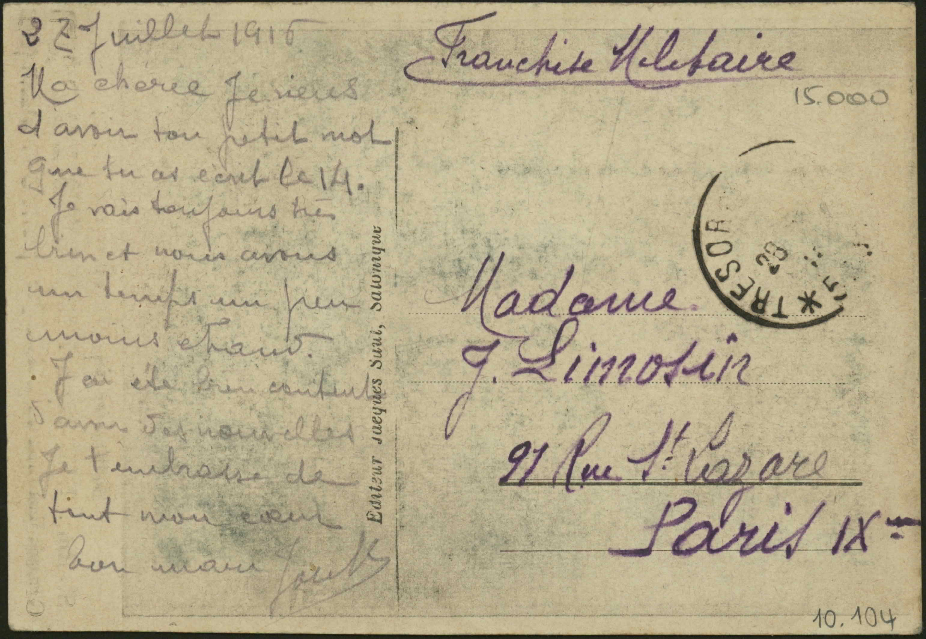 Picture of Chief Rabbi of Salonica Jacob Meir, written by Jacob to his wife Simotin, in Paris, July 27th, 1916.