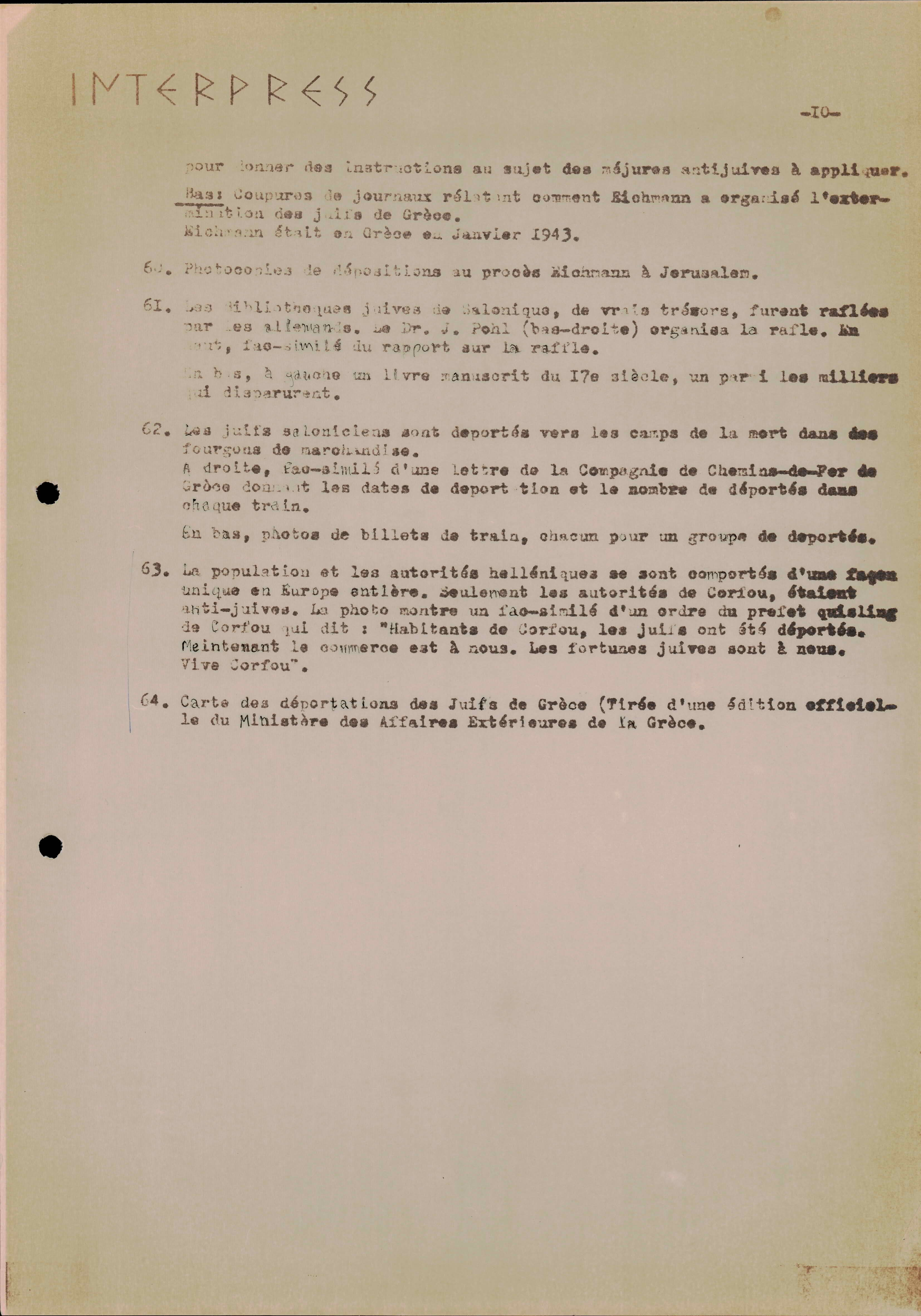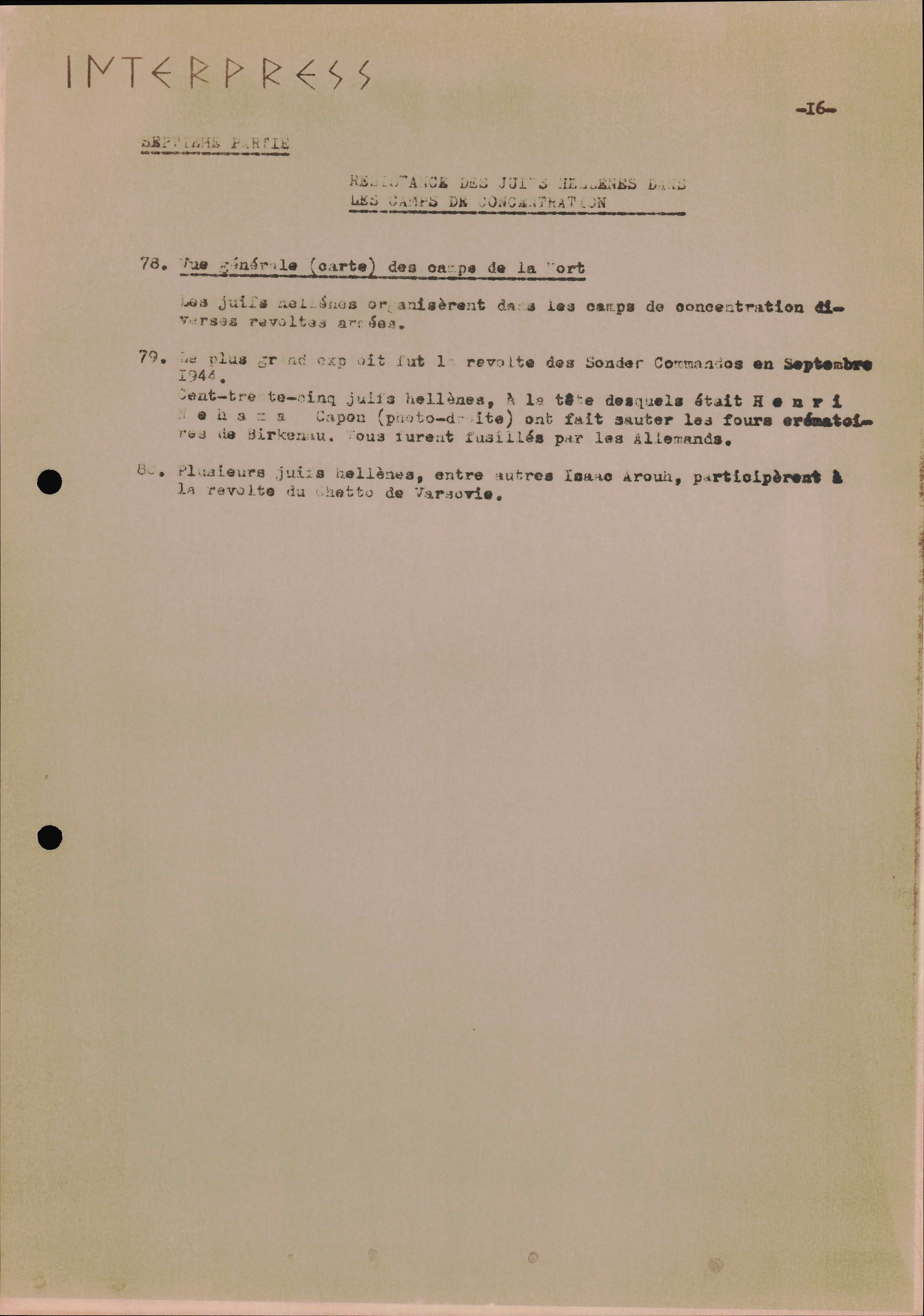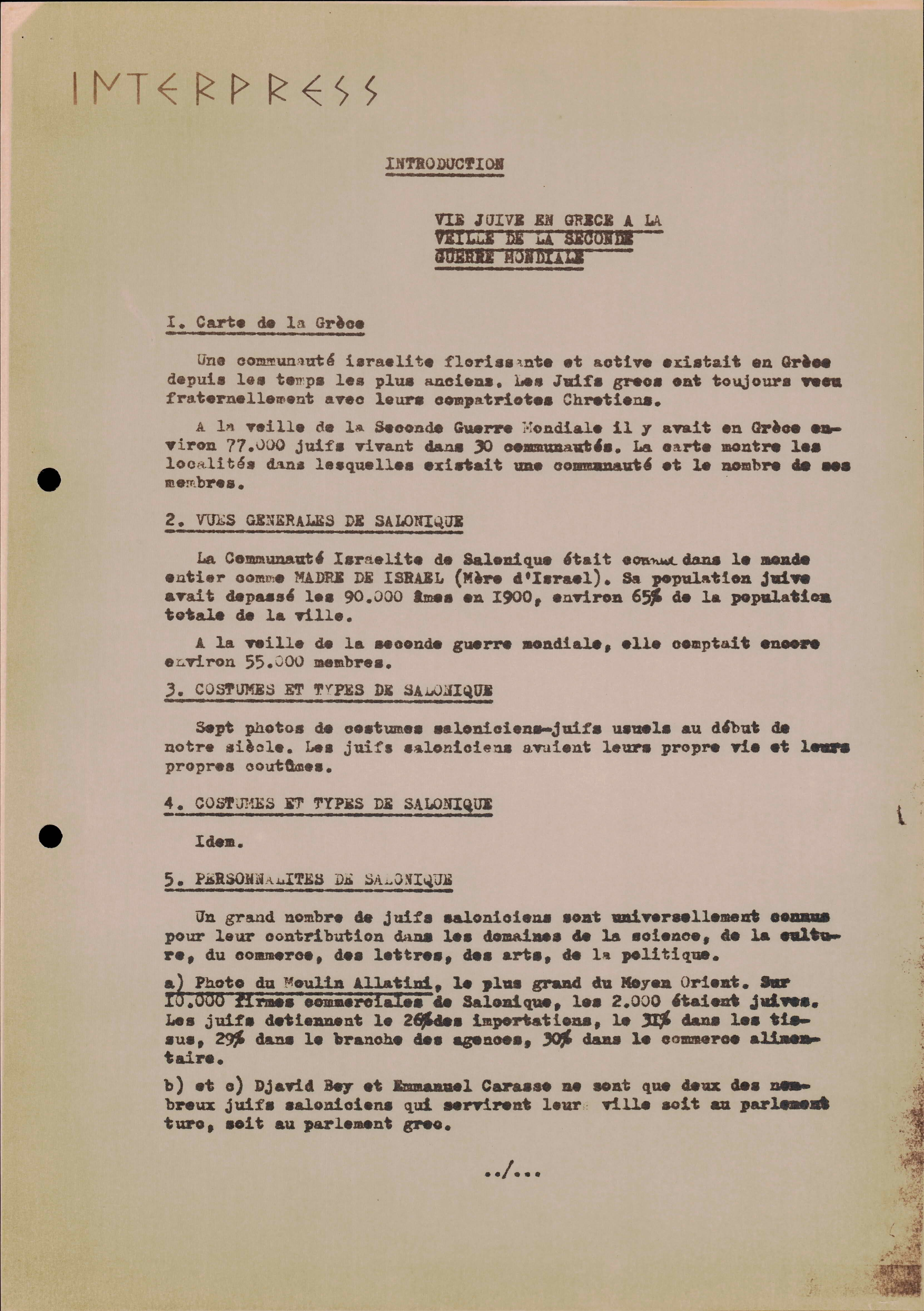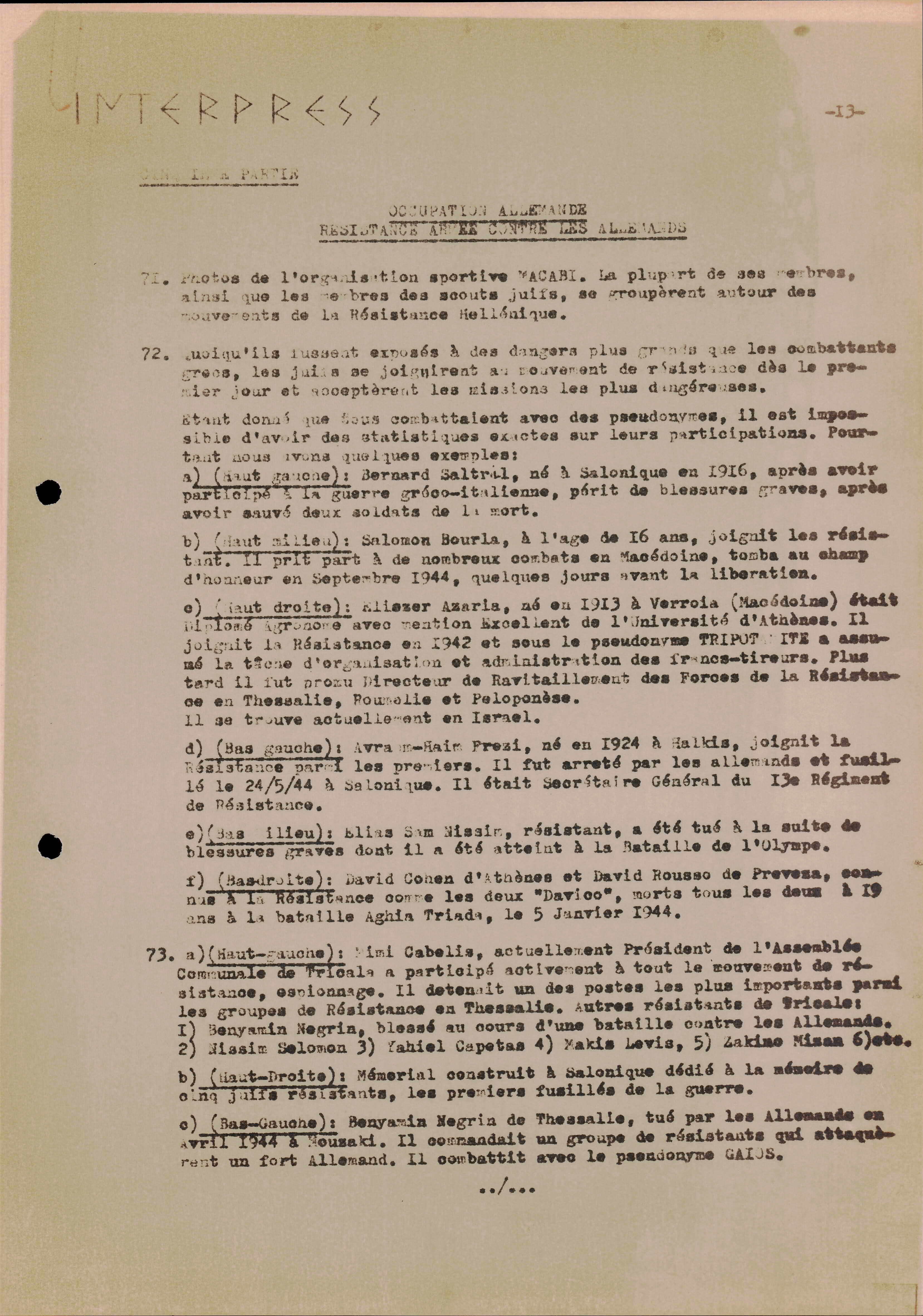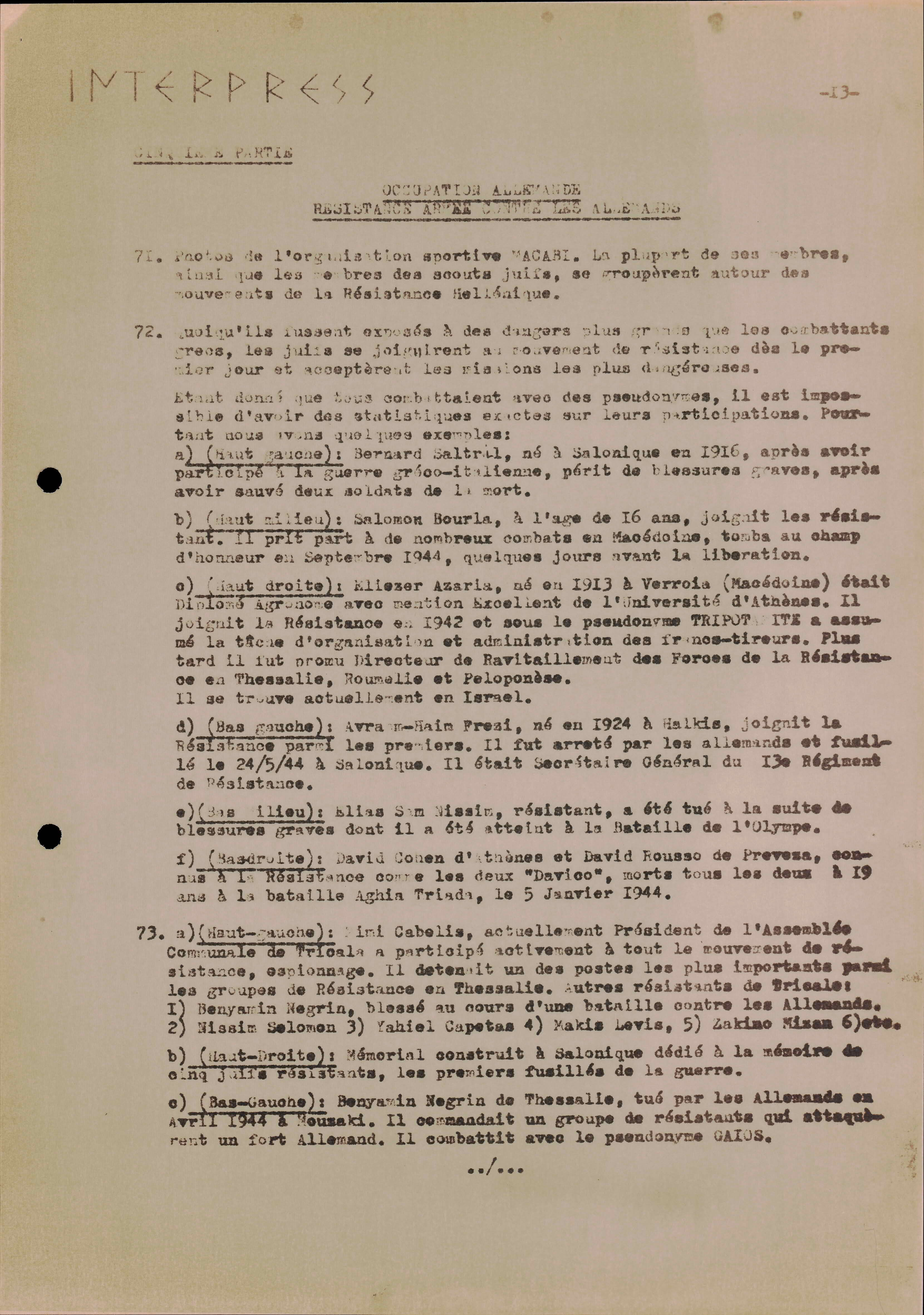 Photocopies of a handtyped document titled "La lutte des juifs contre Hitler et le nazisme-section Grèce".