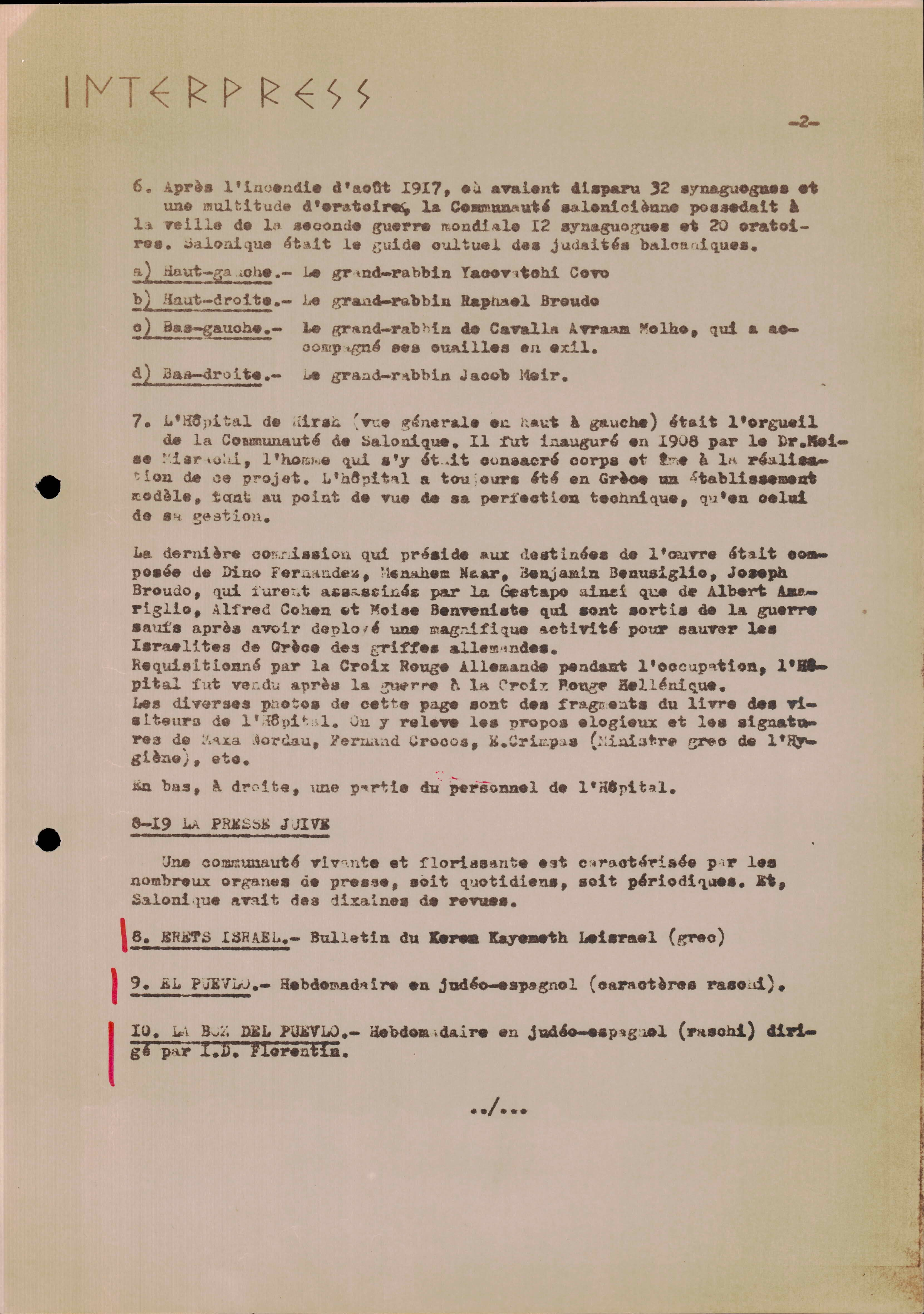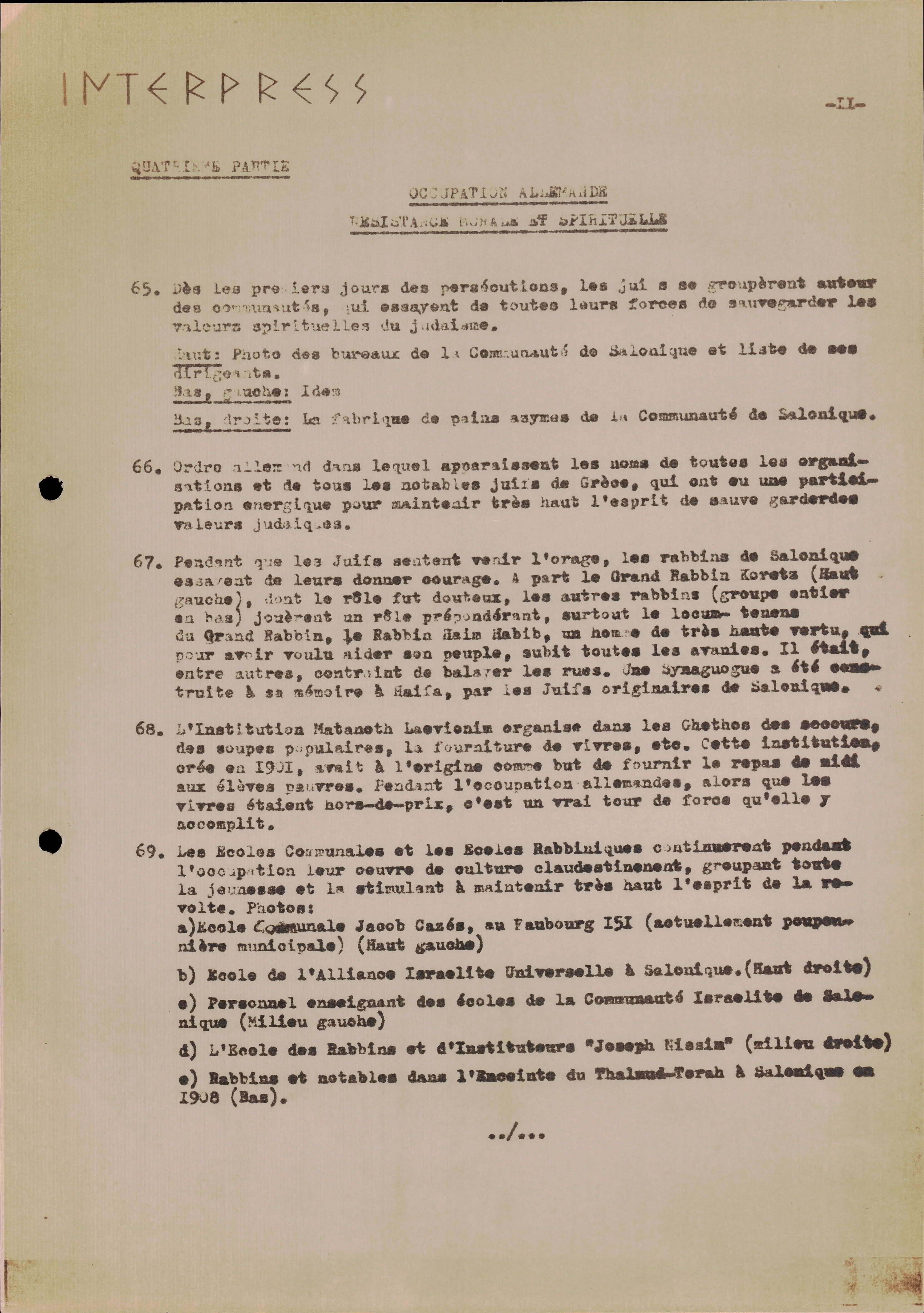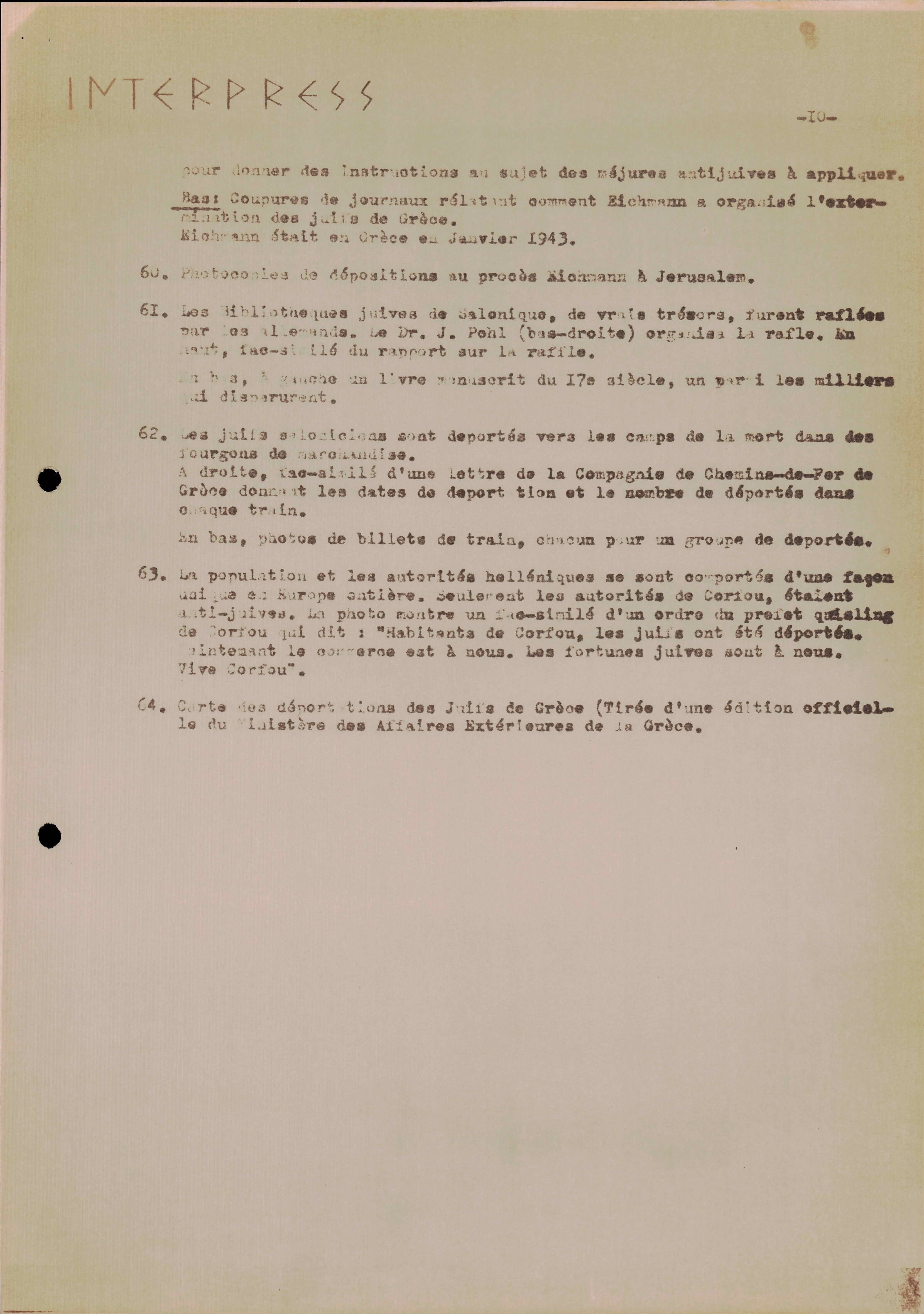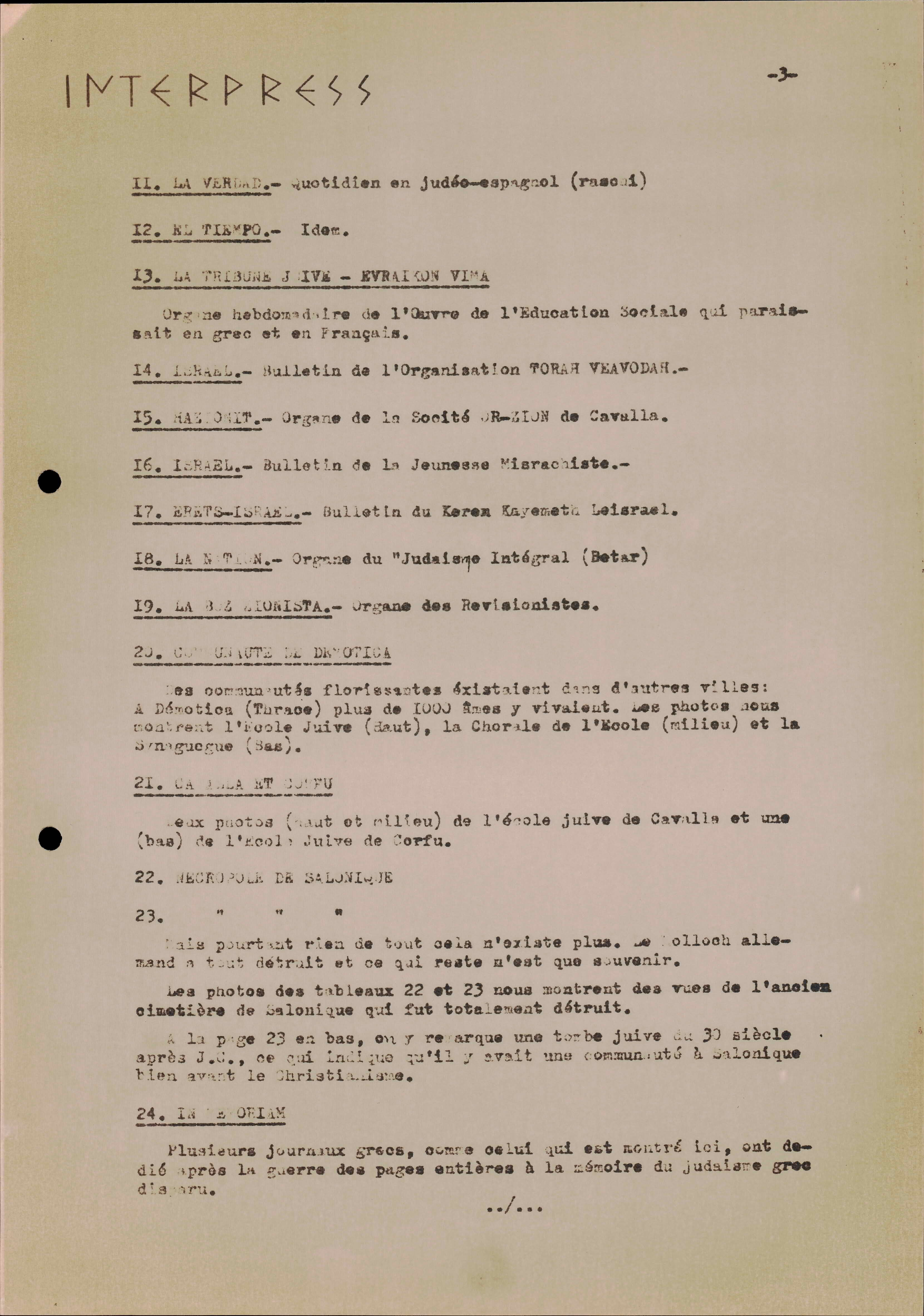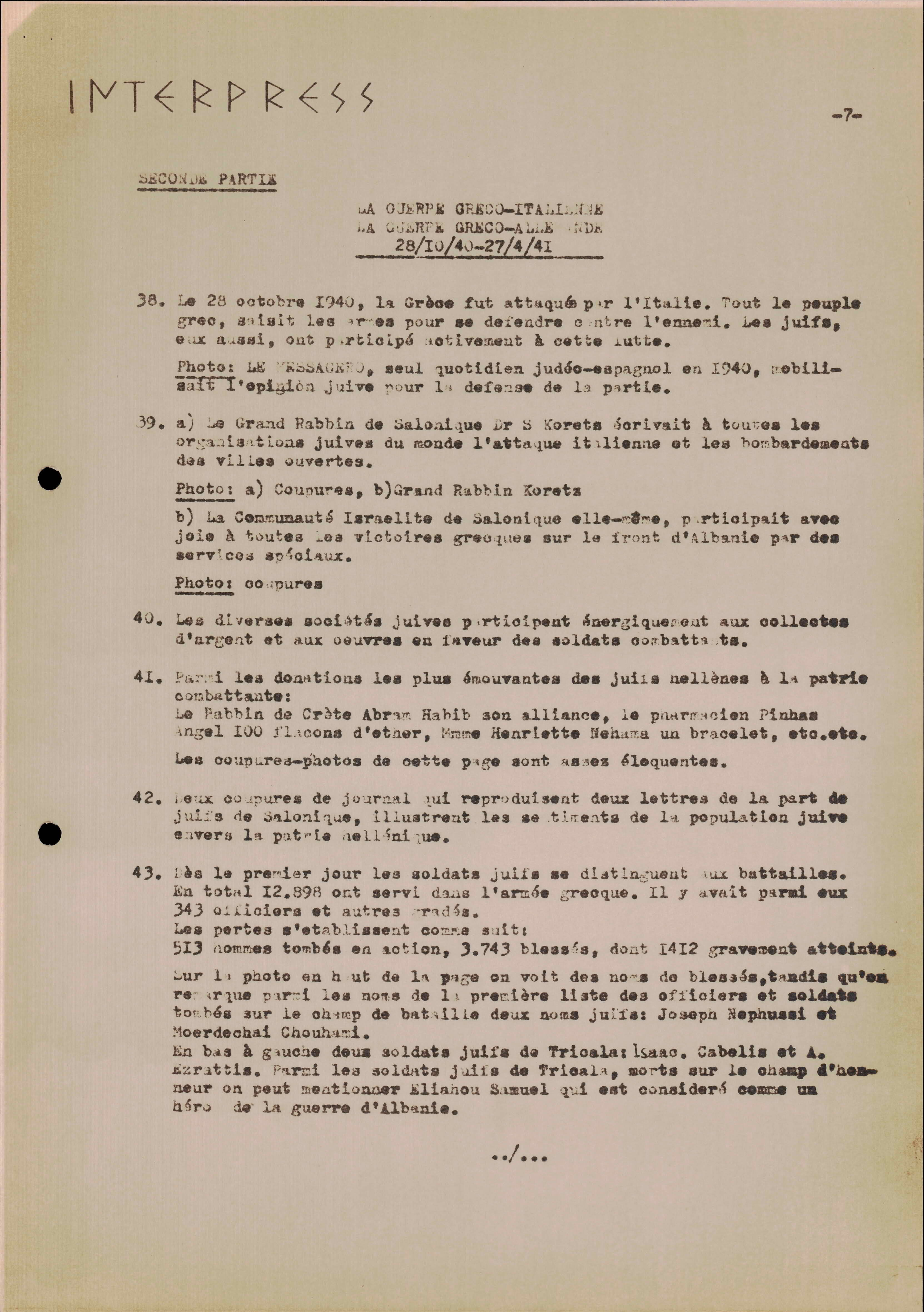 Photocopies of a handtyped document titled "La lutte des juifs contre Hitler et le nazisme-section Grèce".