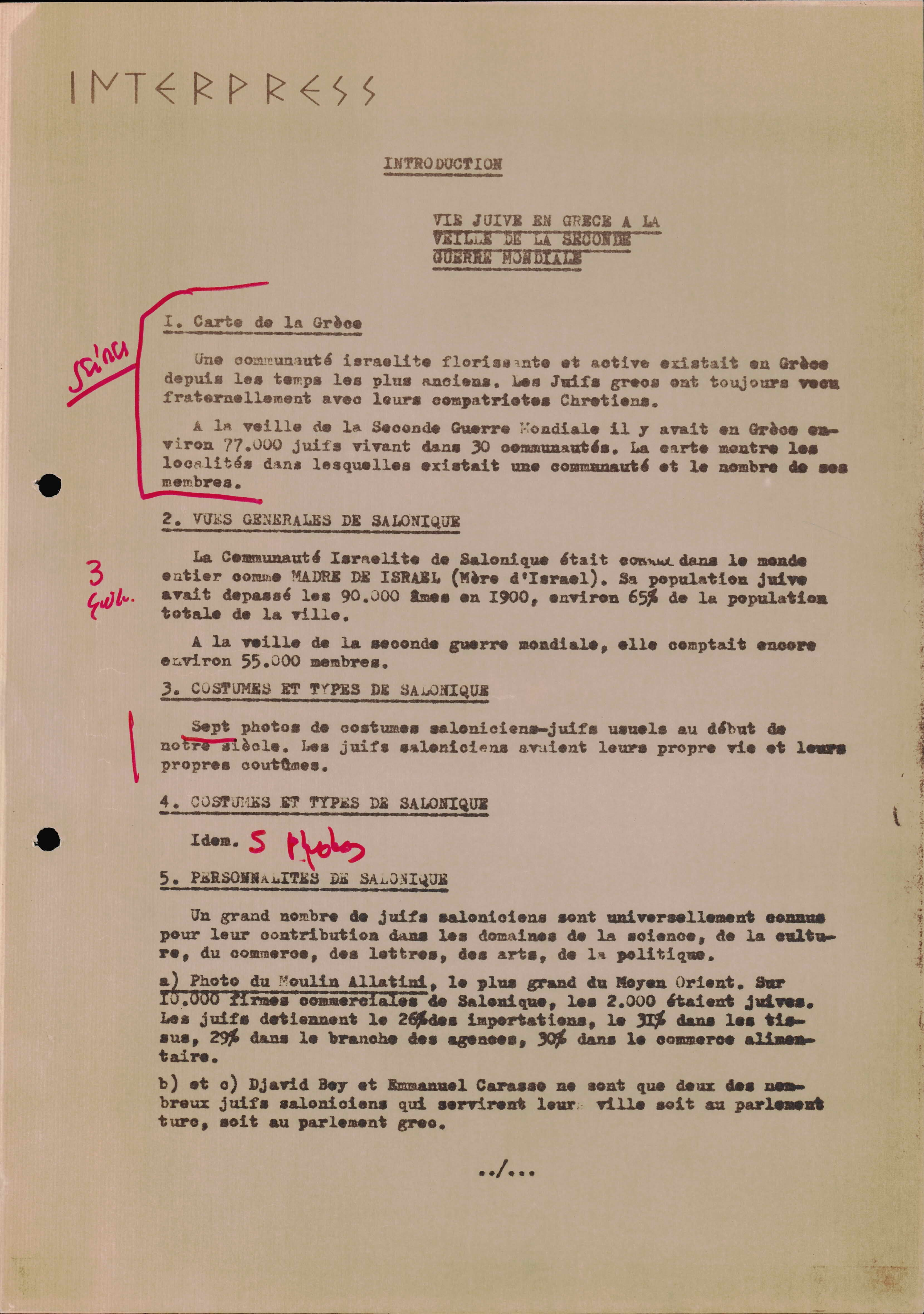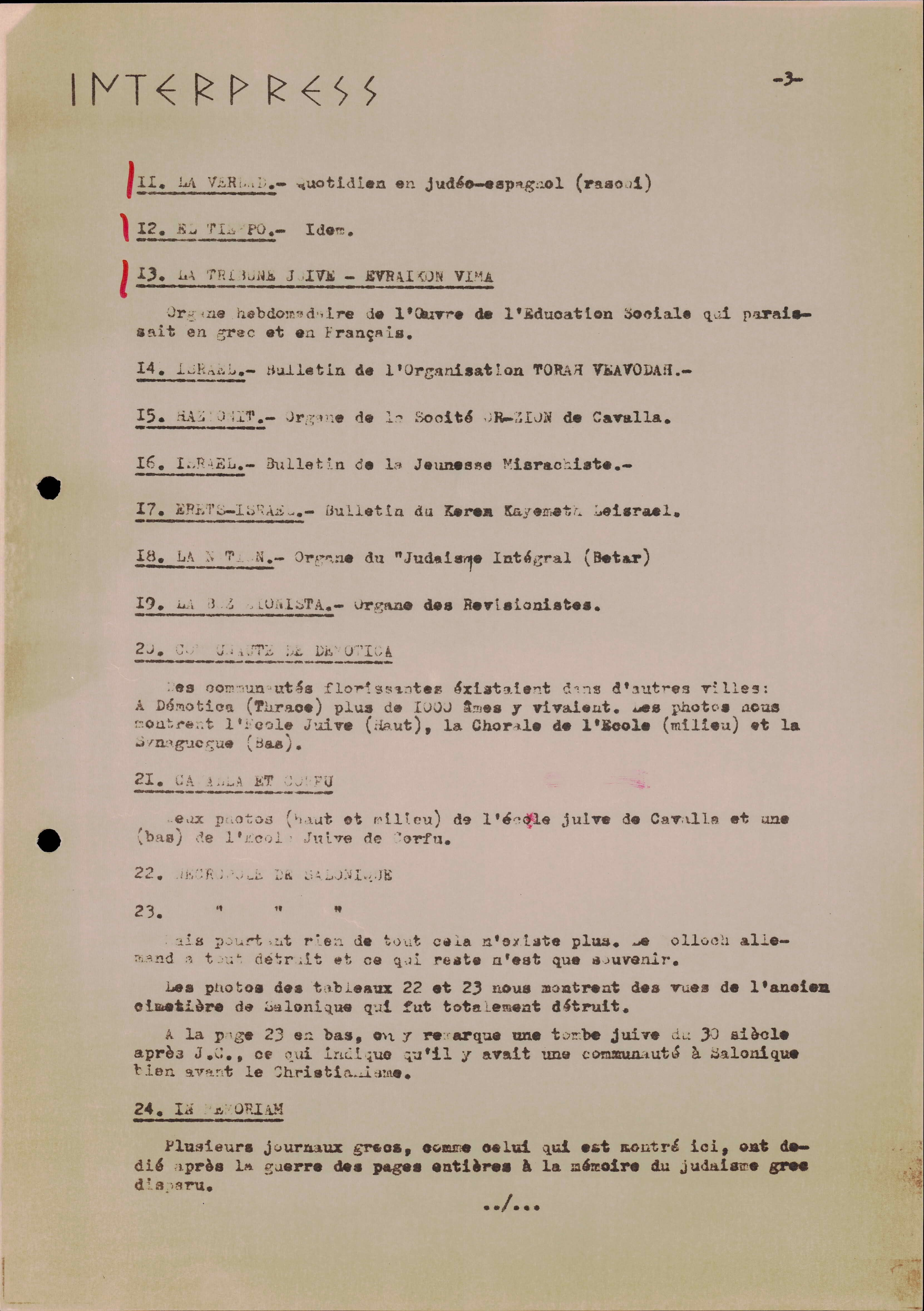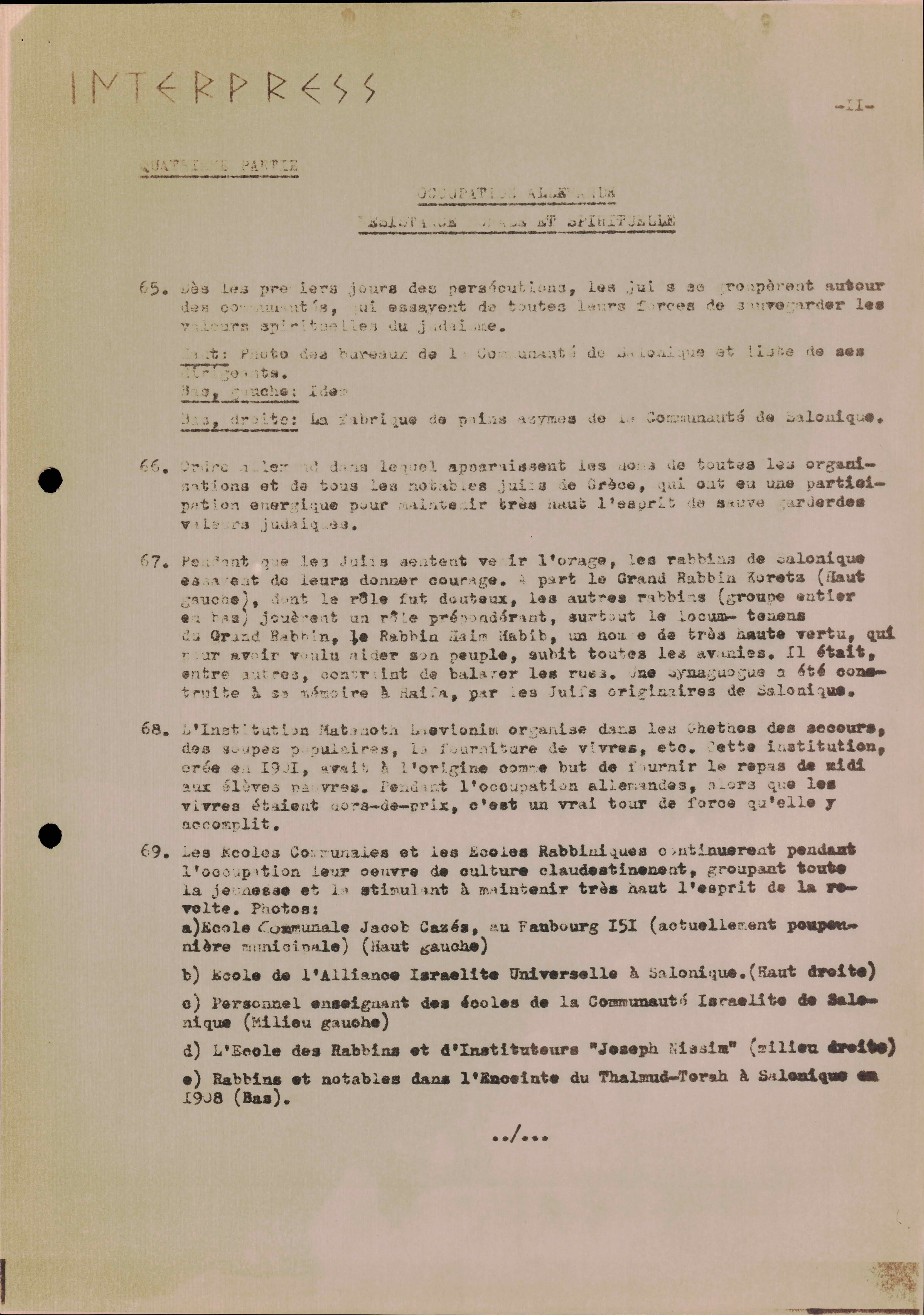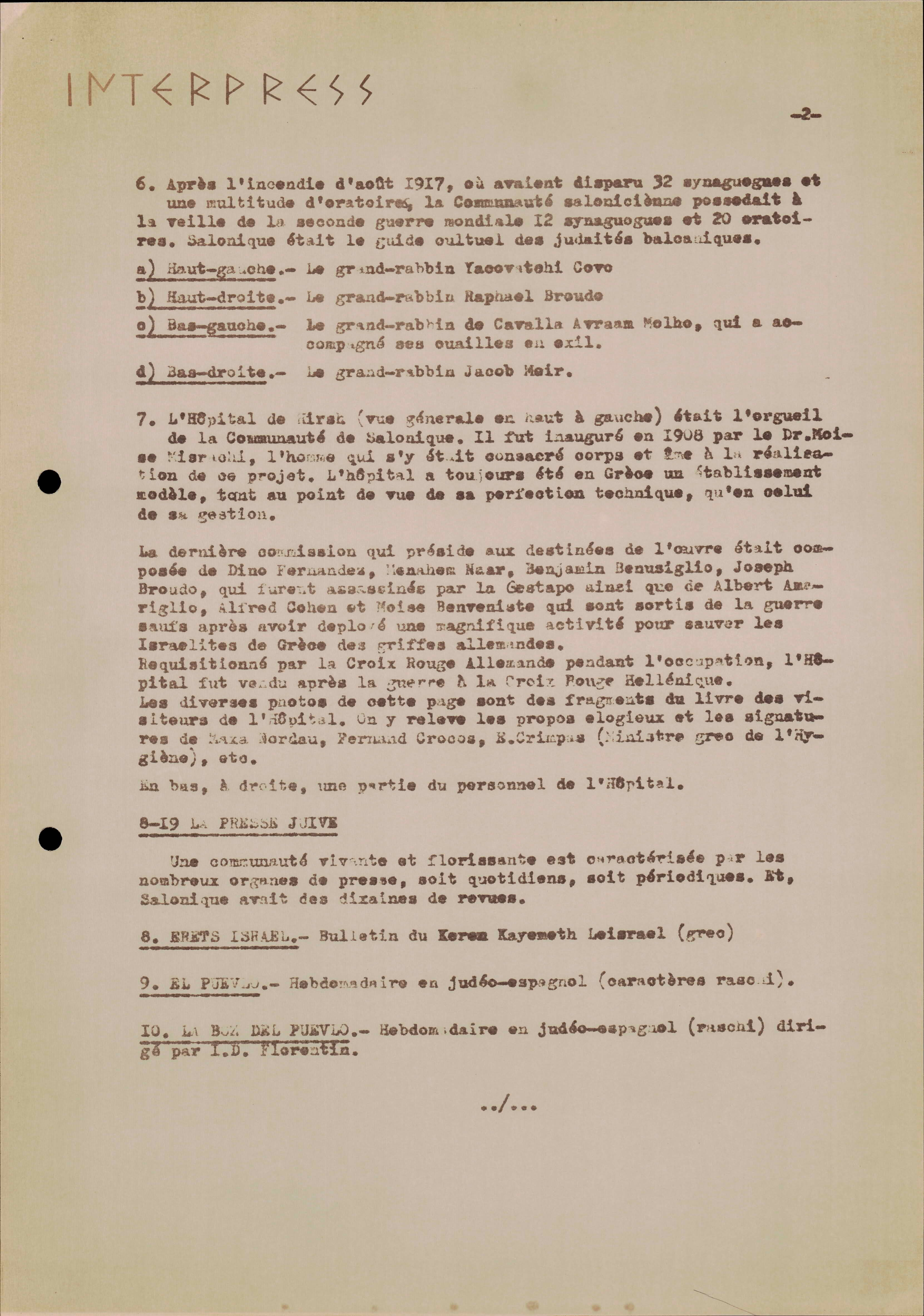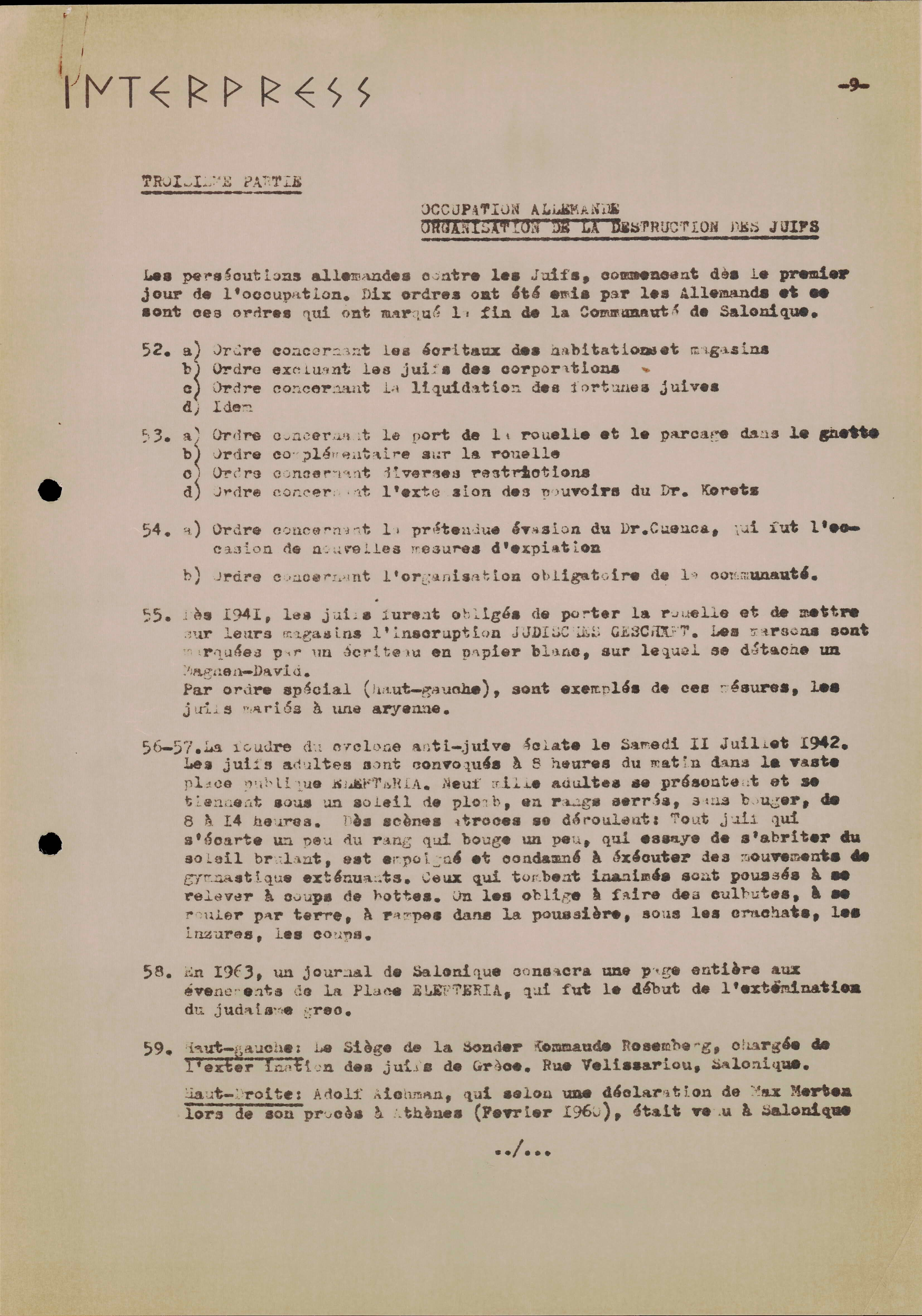 Photocopies of a handtyped document titled "La lutte des juifs contre Hitler et le nazisme-section Grèce".