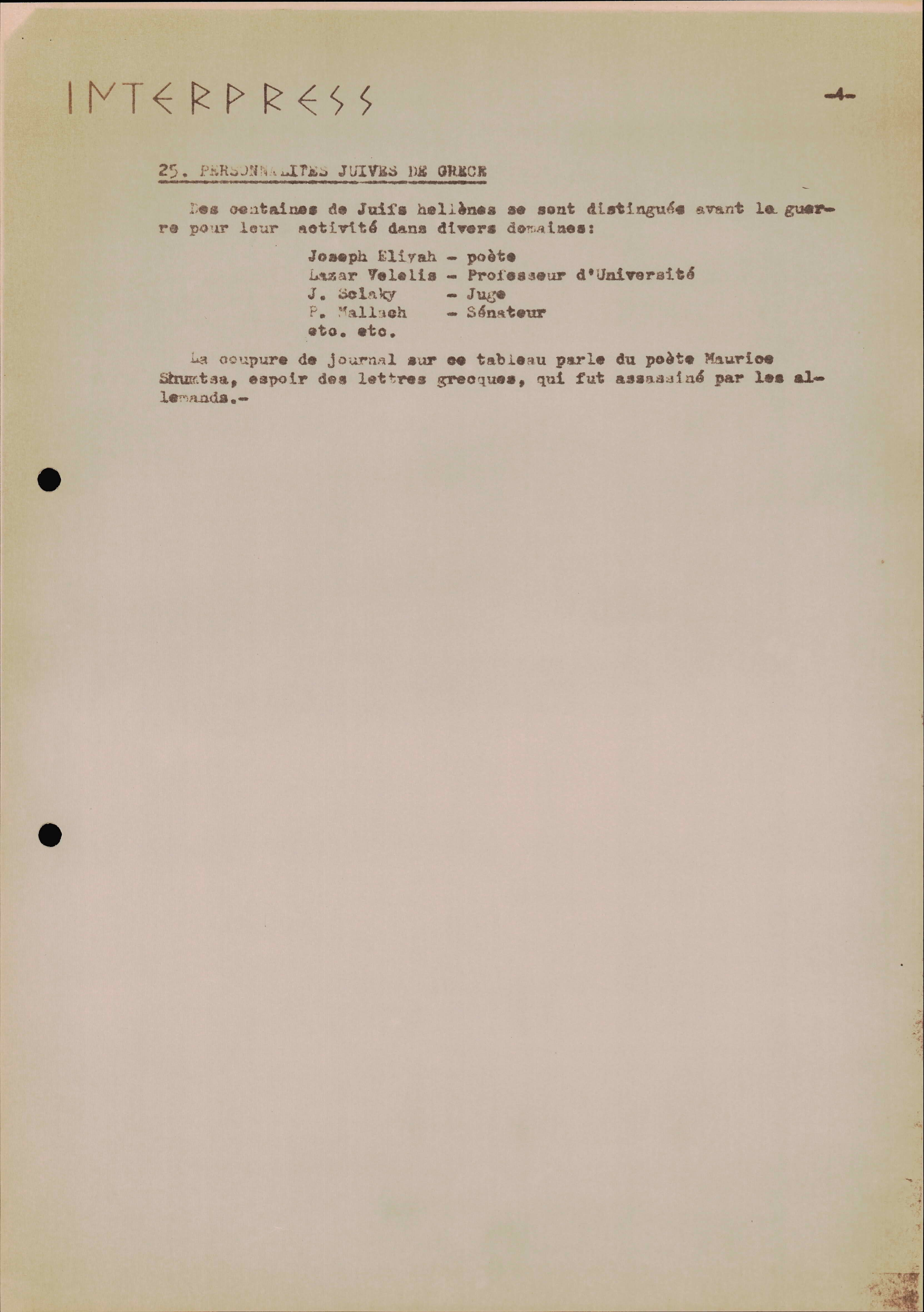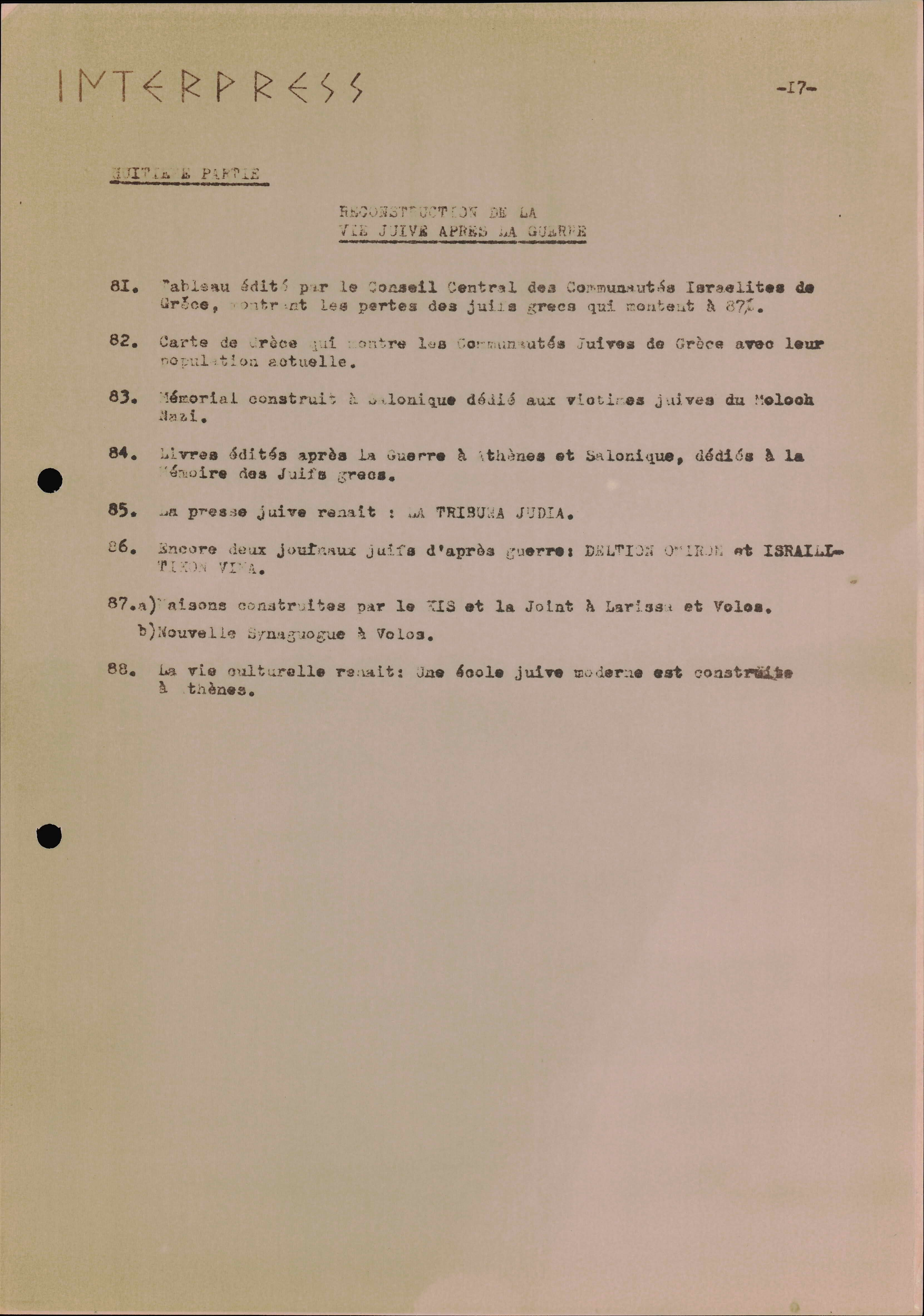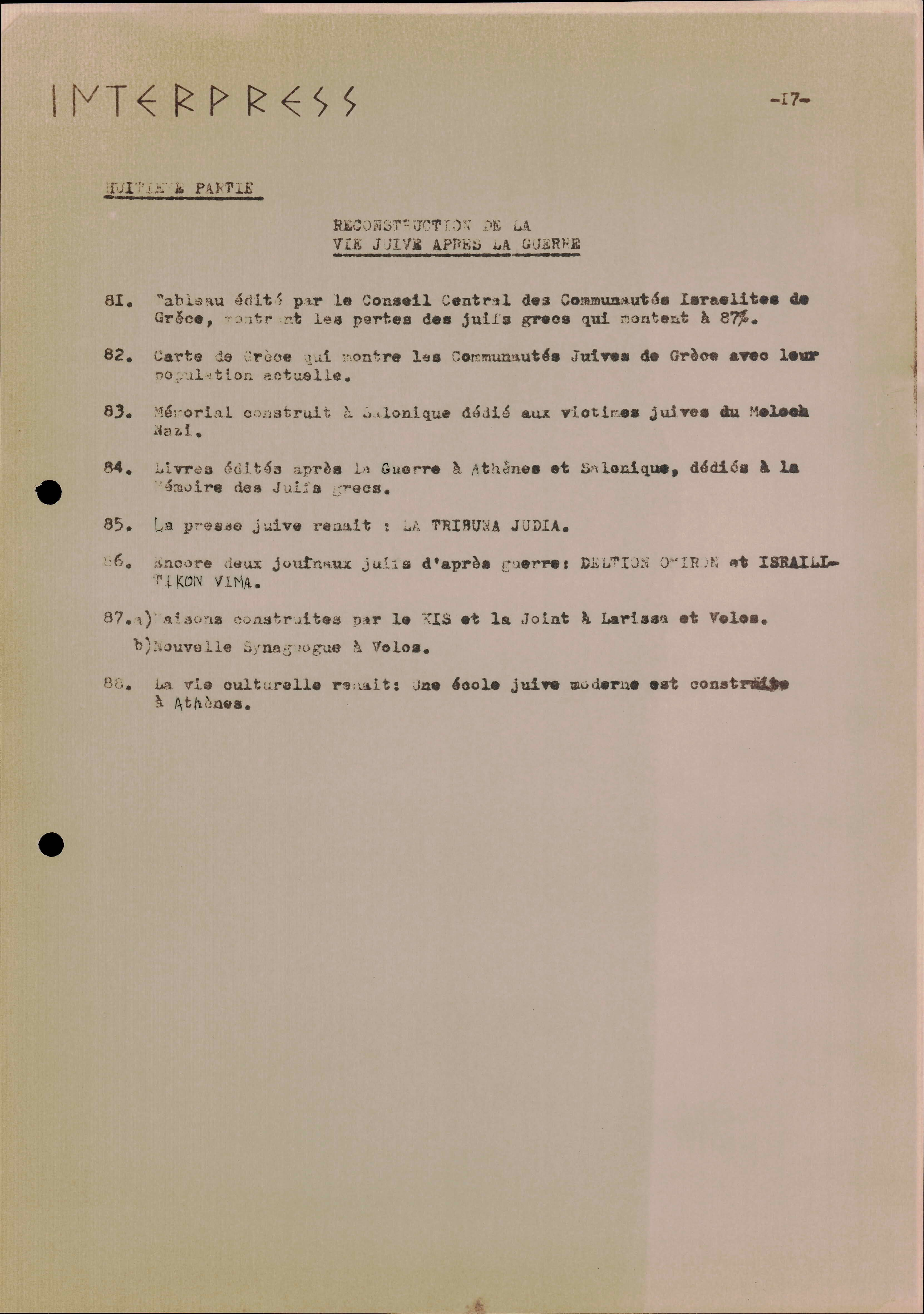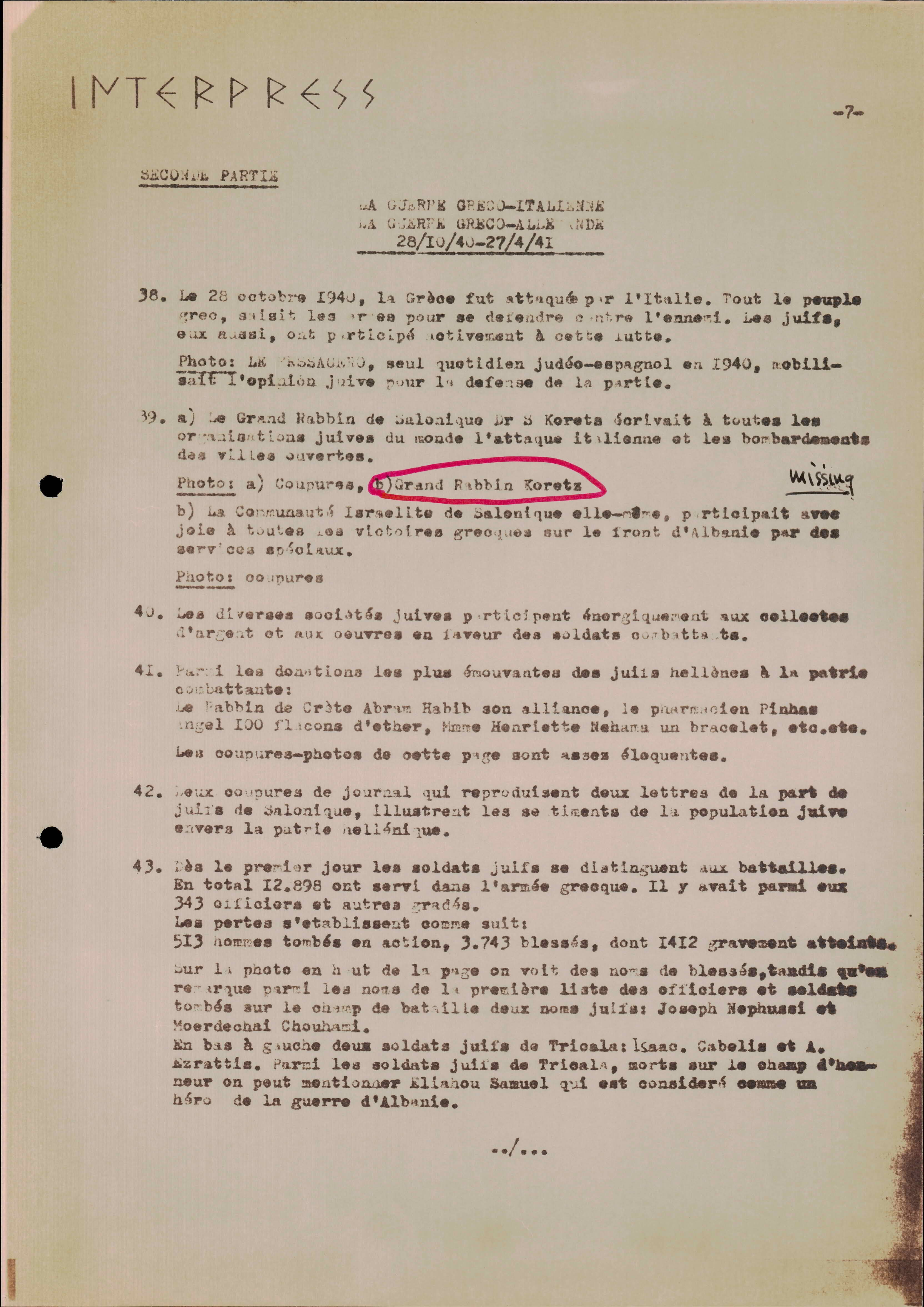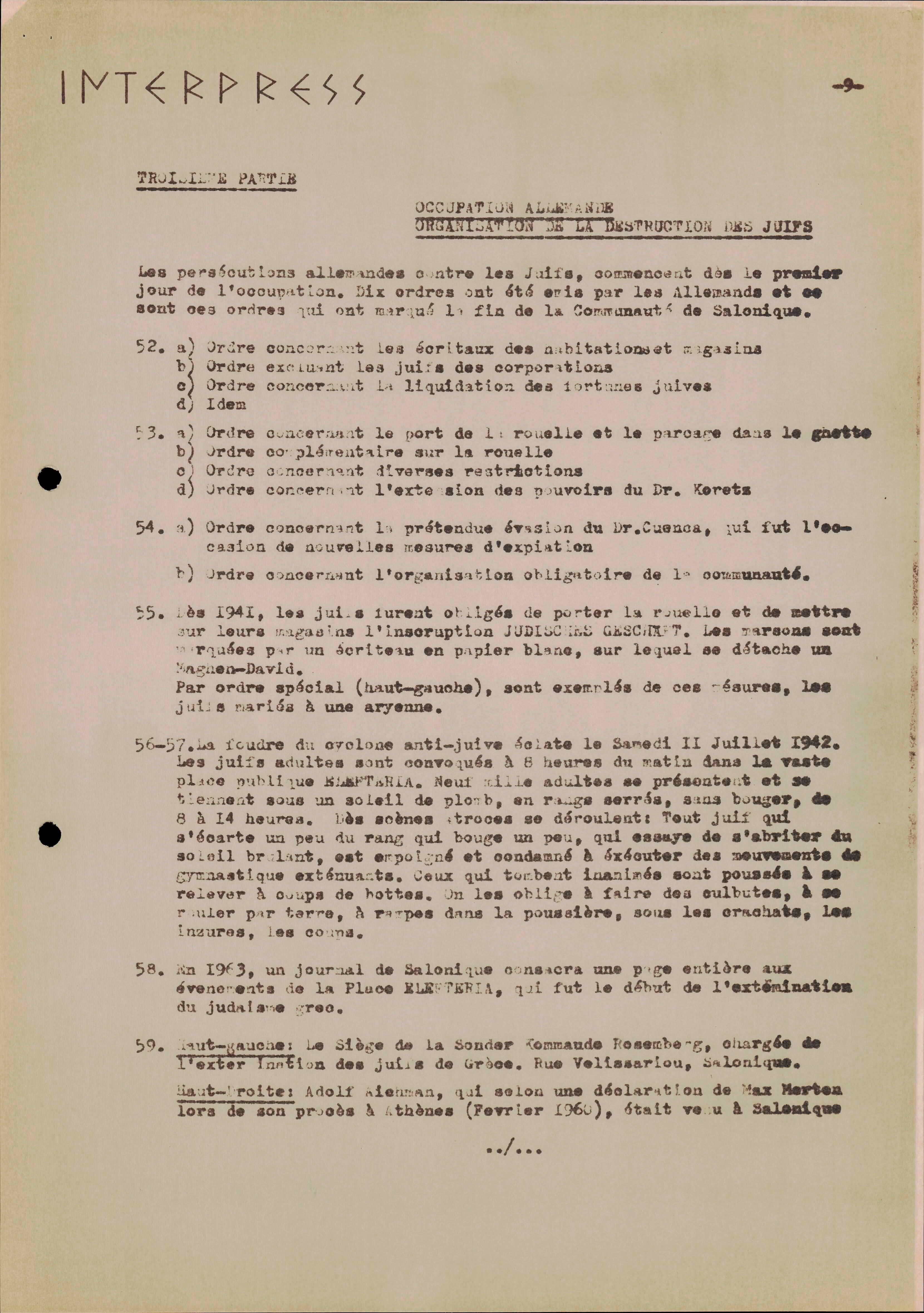 Photocopies of a handtyped document titled "La lutte des juifs contre Hitler et le nazisme-section Grèce".