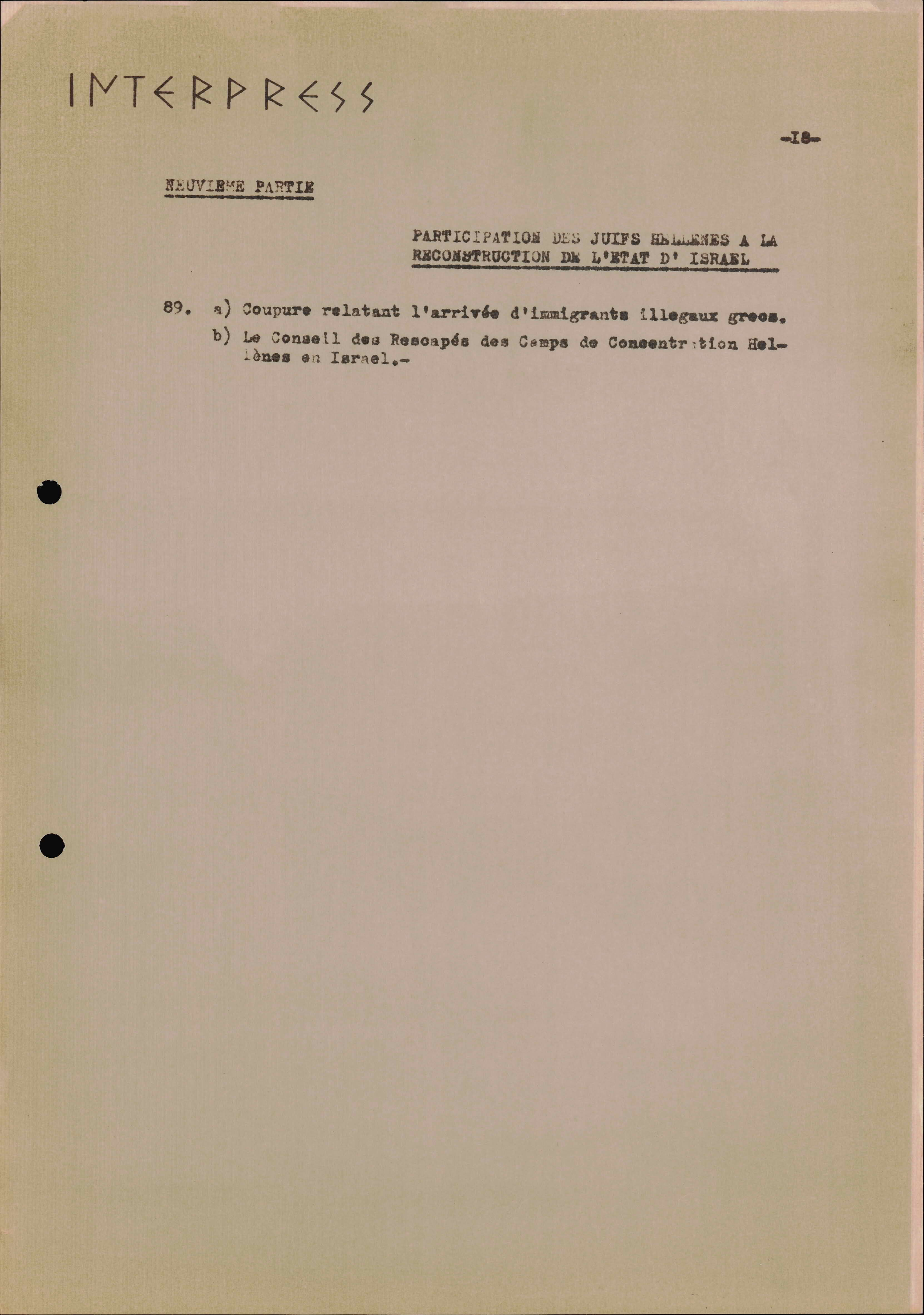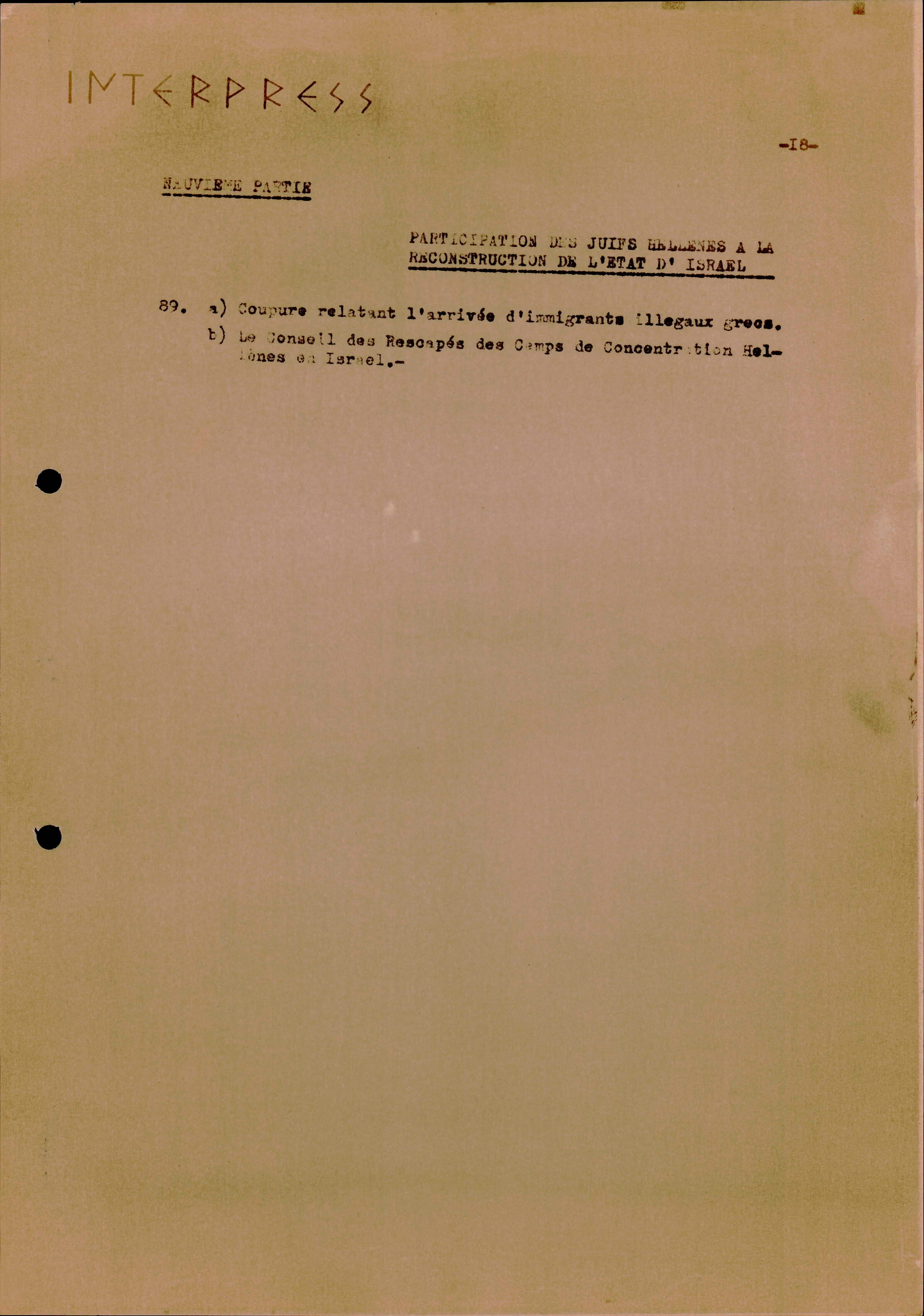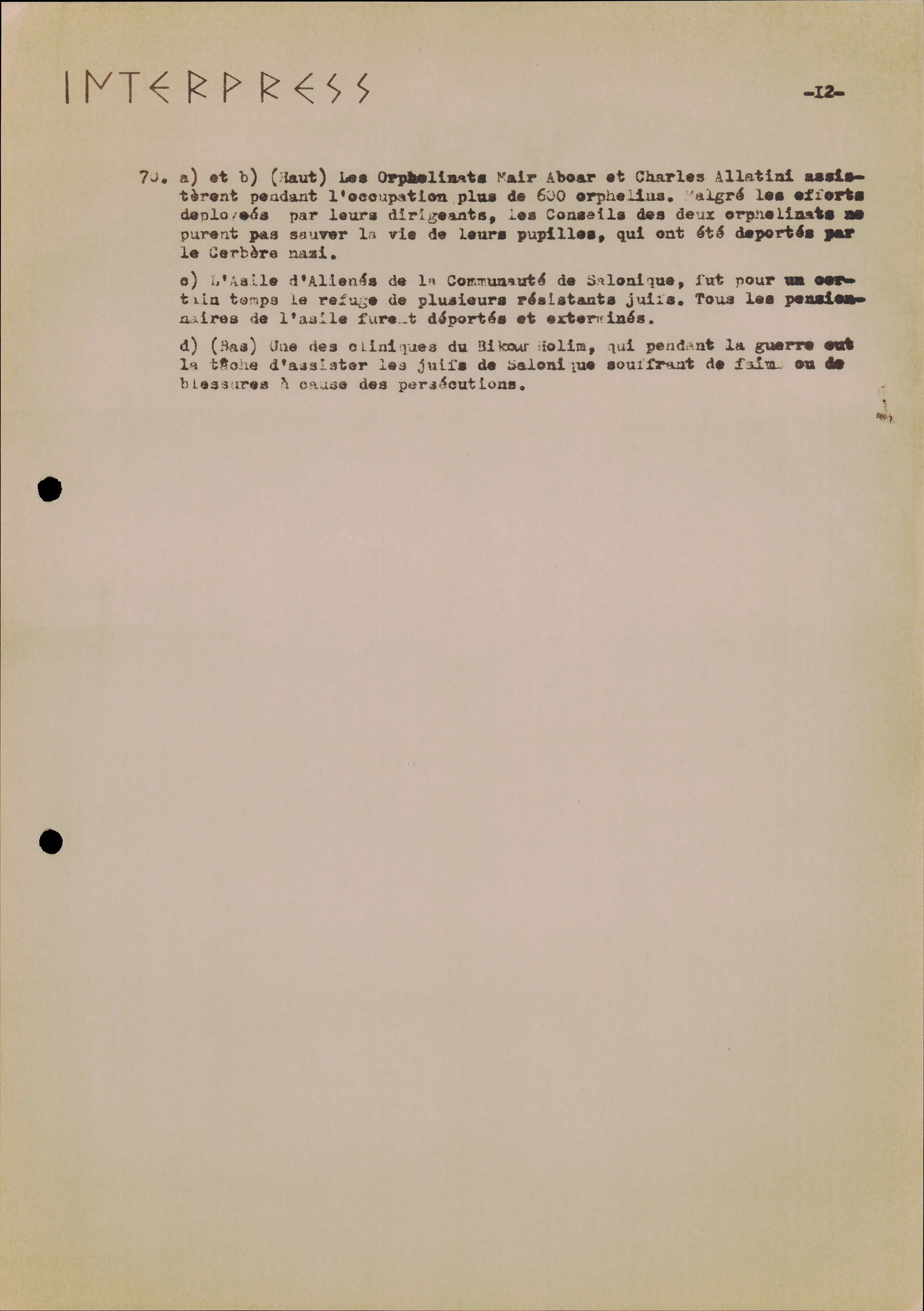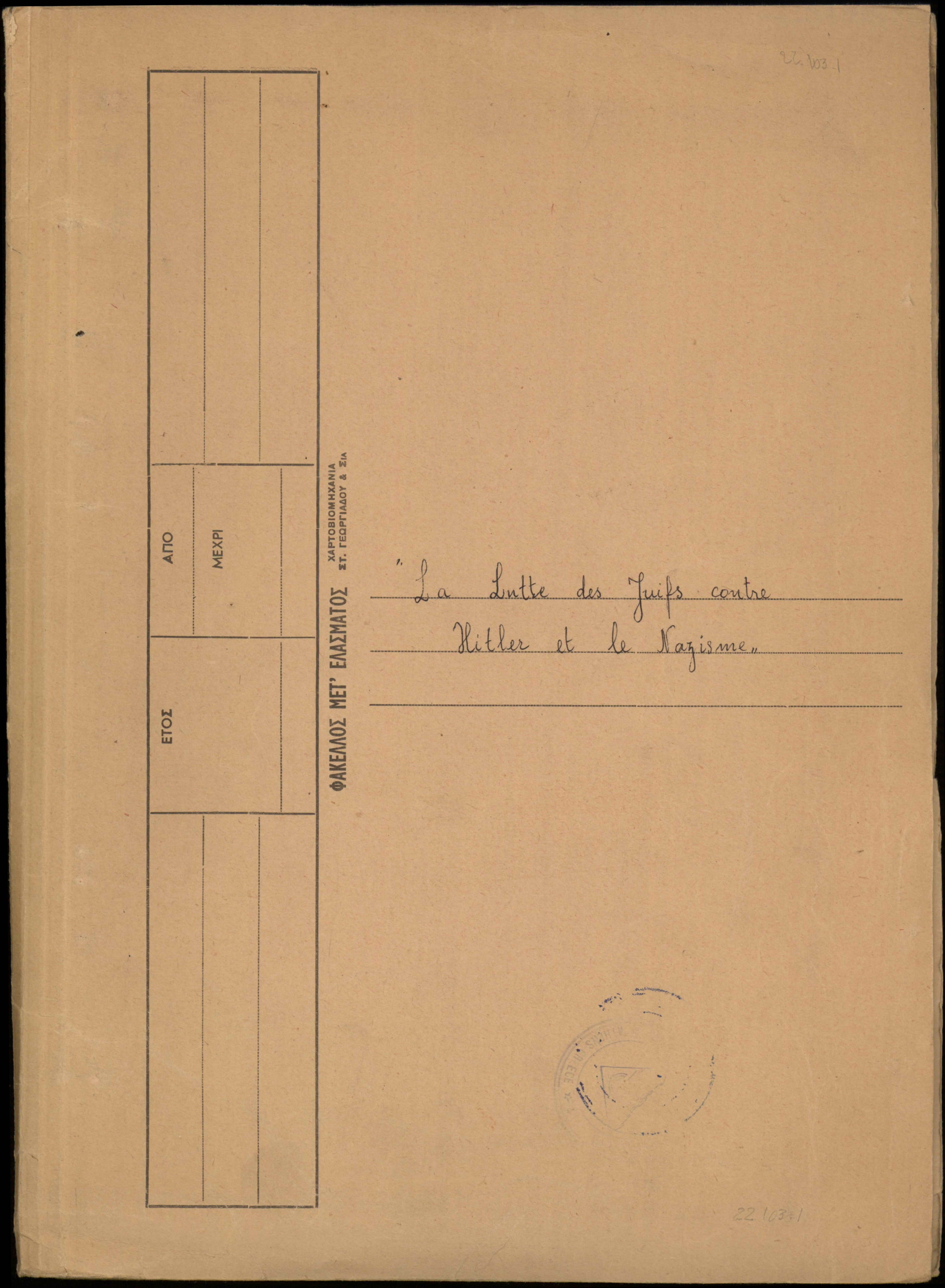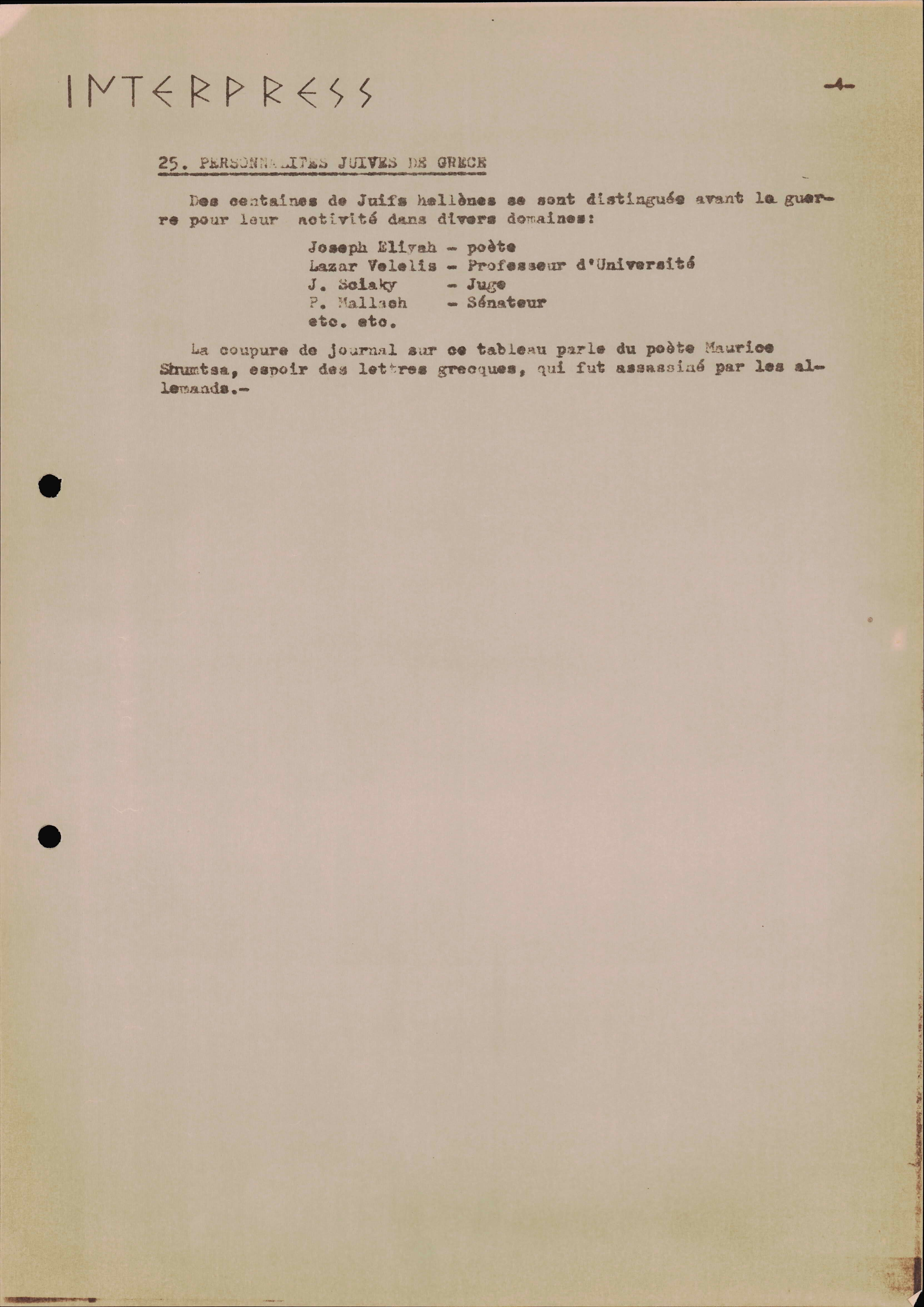 Photocopies of a handtyped document titled "La lutte des juifs contre Hitler et le nazisme-section Grèce".