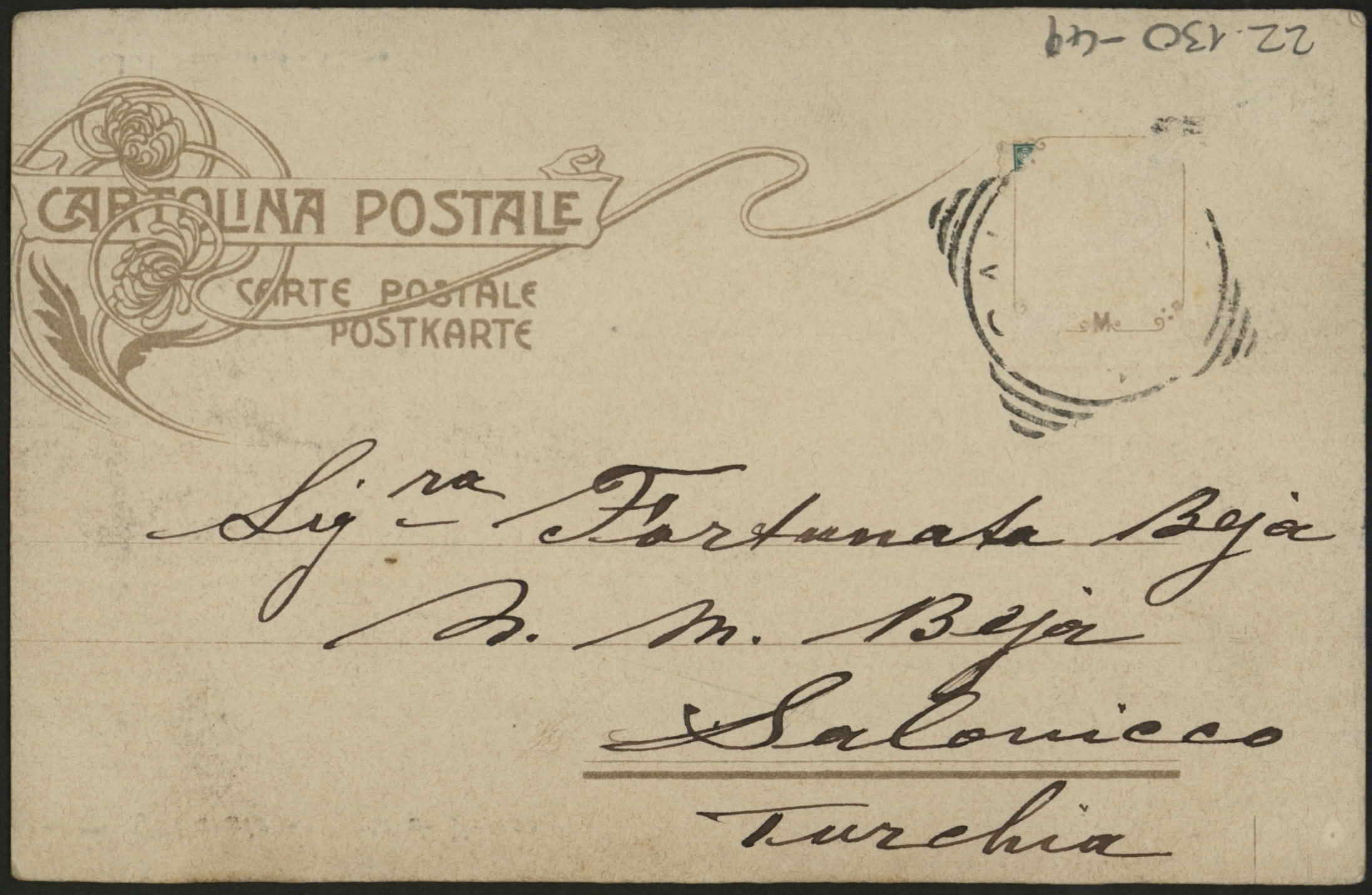 | dc.description | From Mrs. Salberg & family to Monsieur & Madame Is. M. Beja, Salonica, Turkey. | |