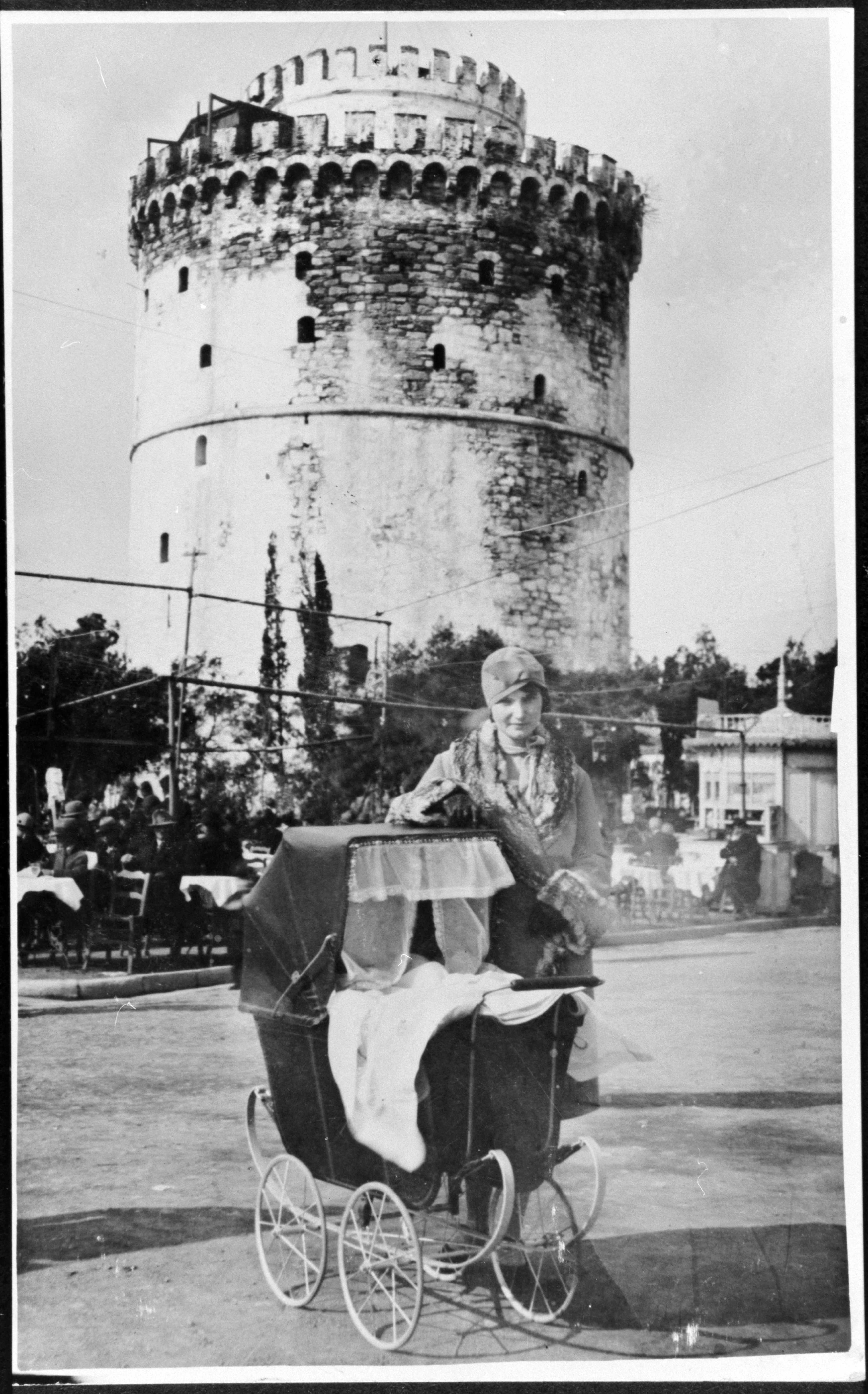 Dora Benrubi with baby Lilian in front of the White Tower before the war