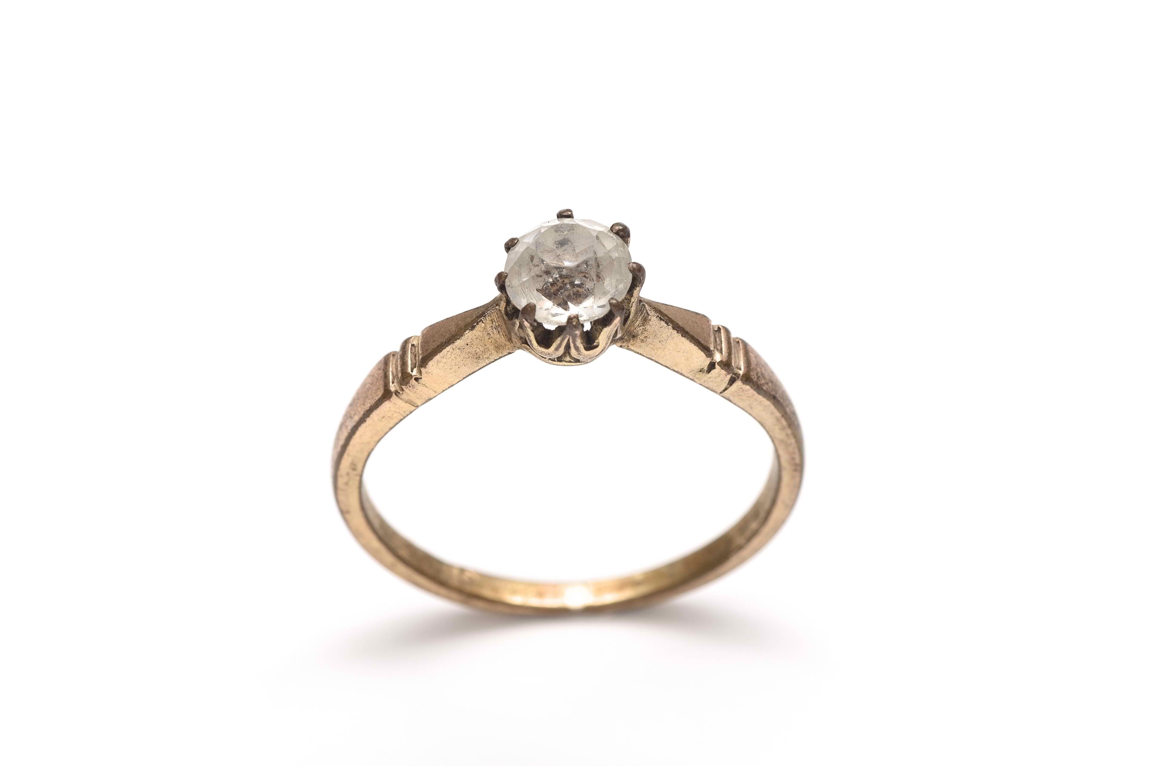 Woman's gold ring, solitaire, set with brilliant in prong setting.