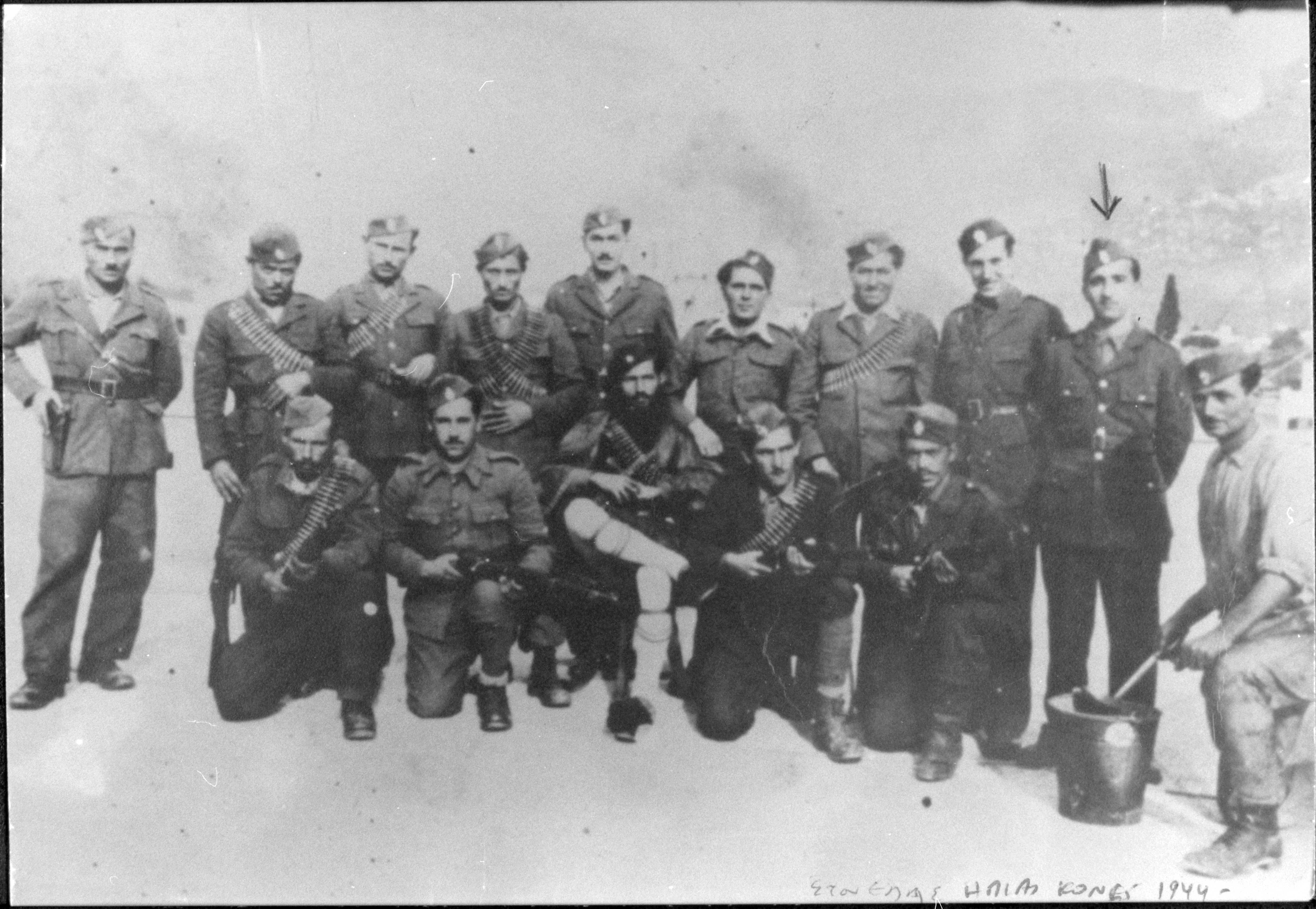 Photograph of Elias Kones with the arrow, with his fellow fighters in the 54th Regiment of ELAS (National Resistance).