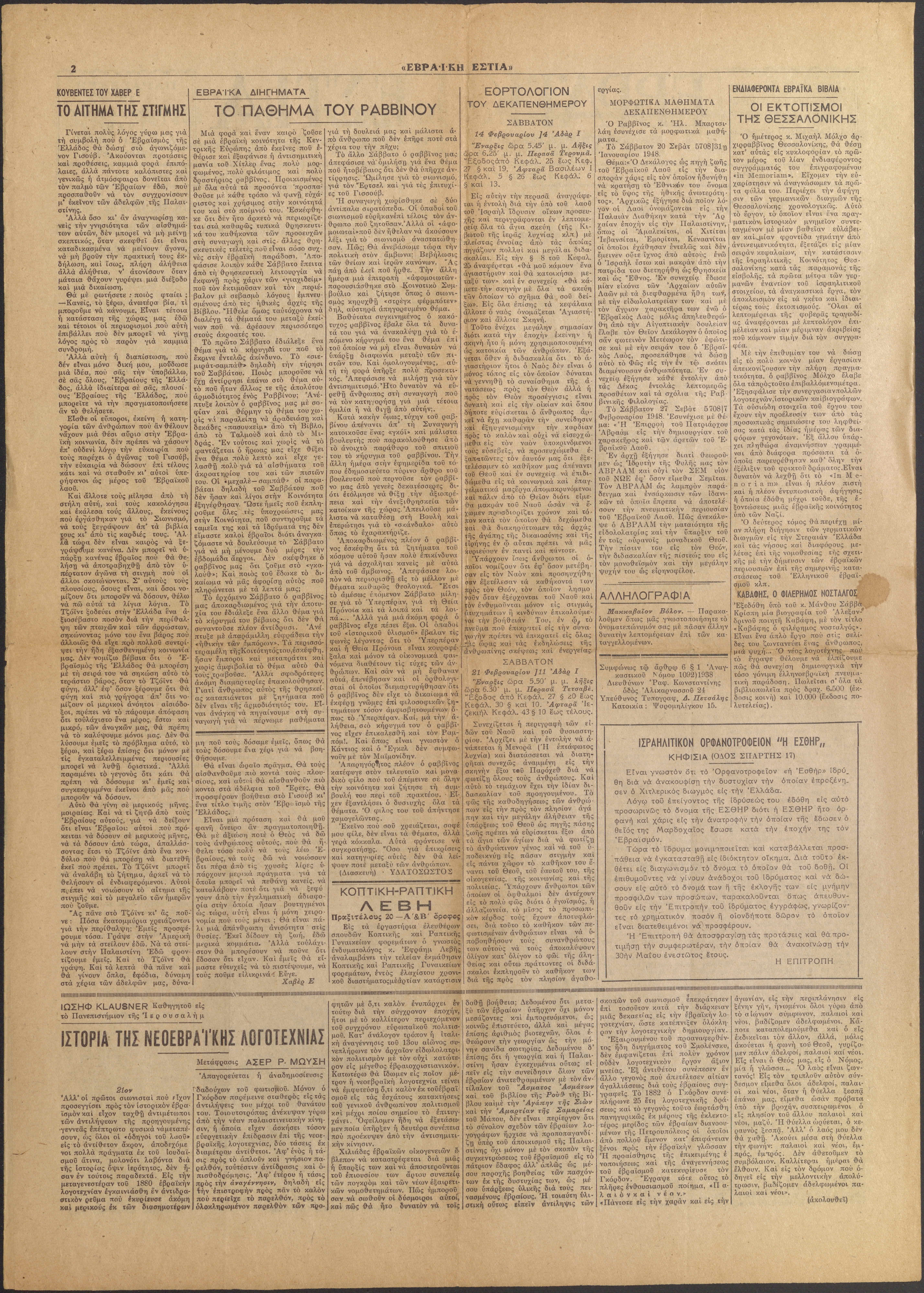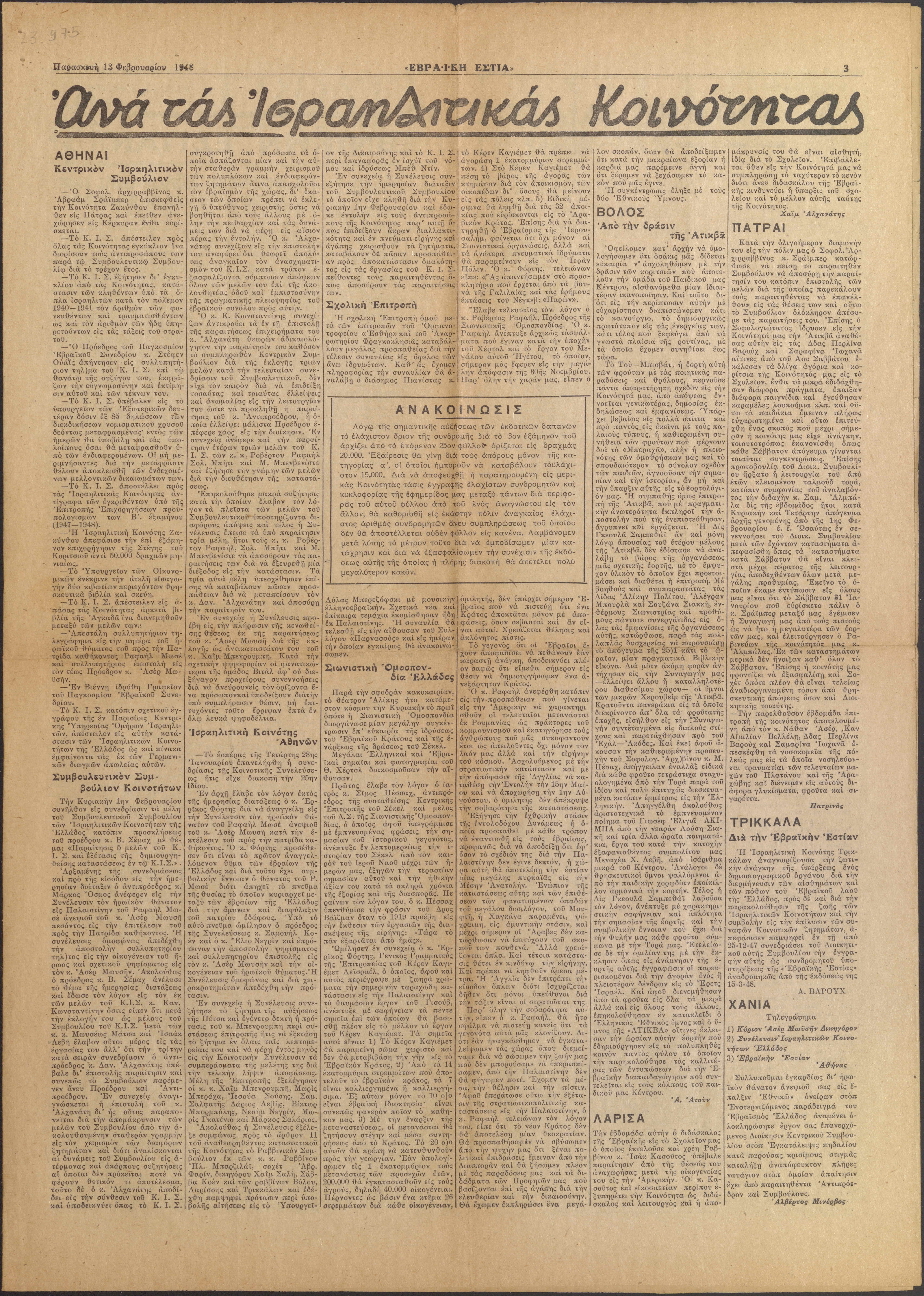 Press, newspaper, Jewish press, Jewish newspaper, post war Jewish life in Greece