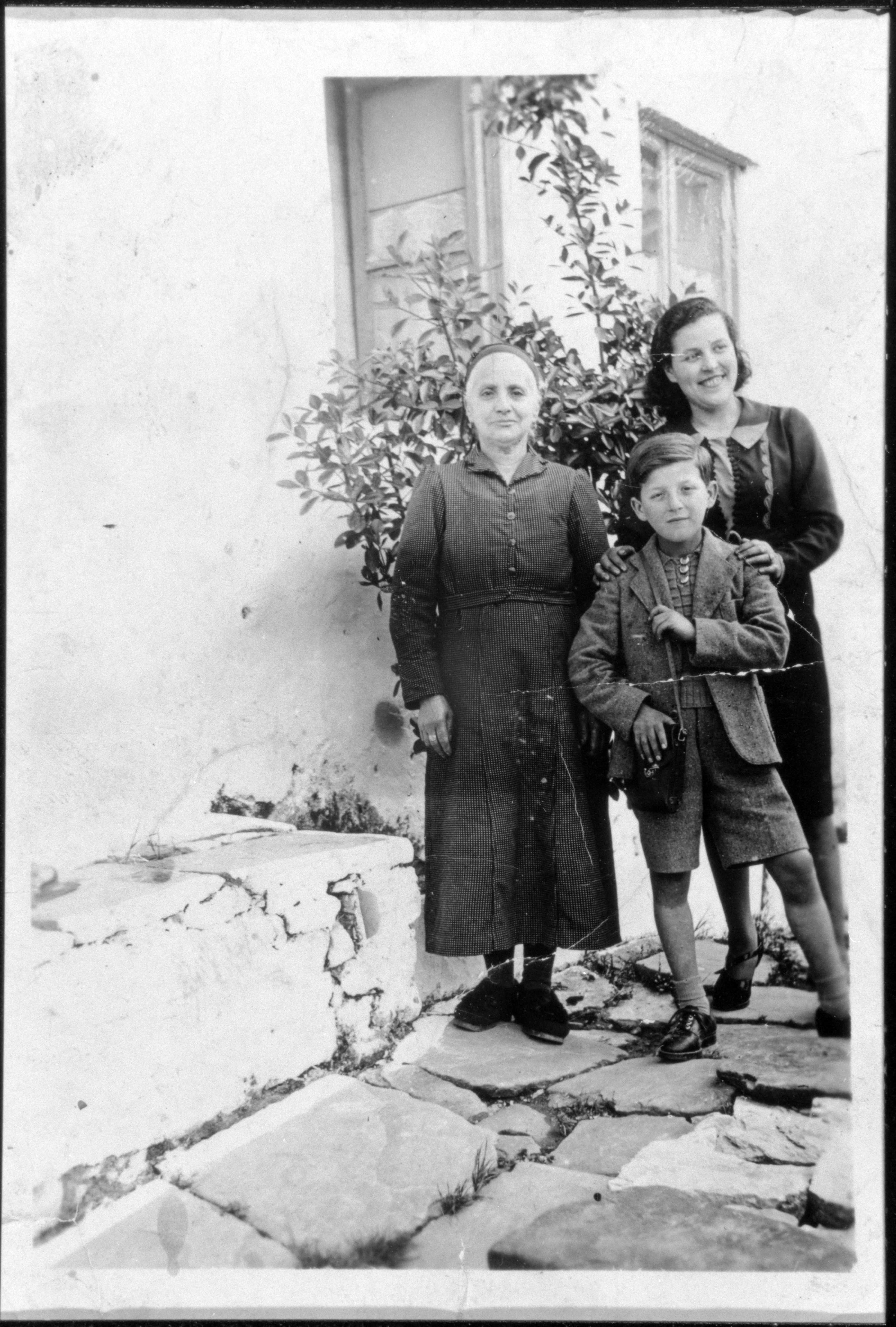 Joseph Battinos with his grandmother Sarina and his mother Nina in the courtyard of their house in Gjirokastra, 1937. (donated by Joseph Battinos)