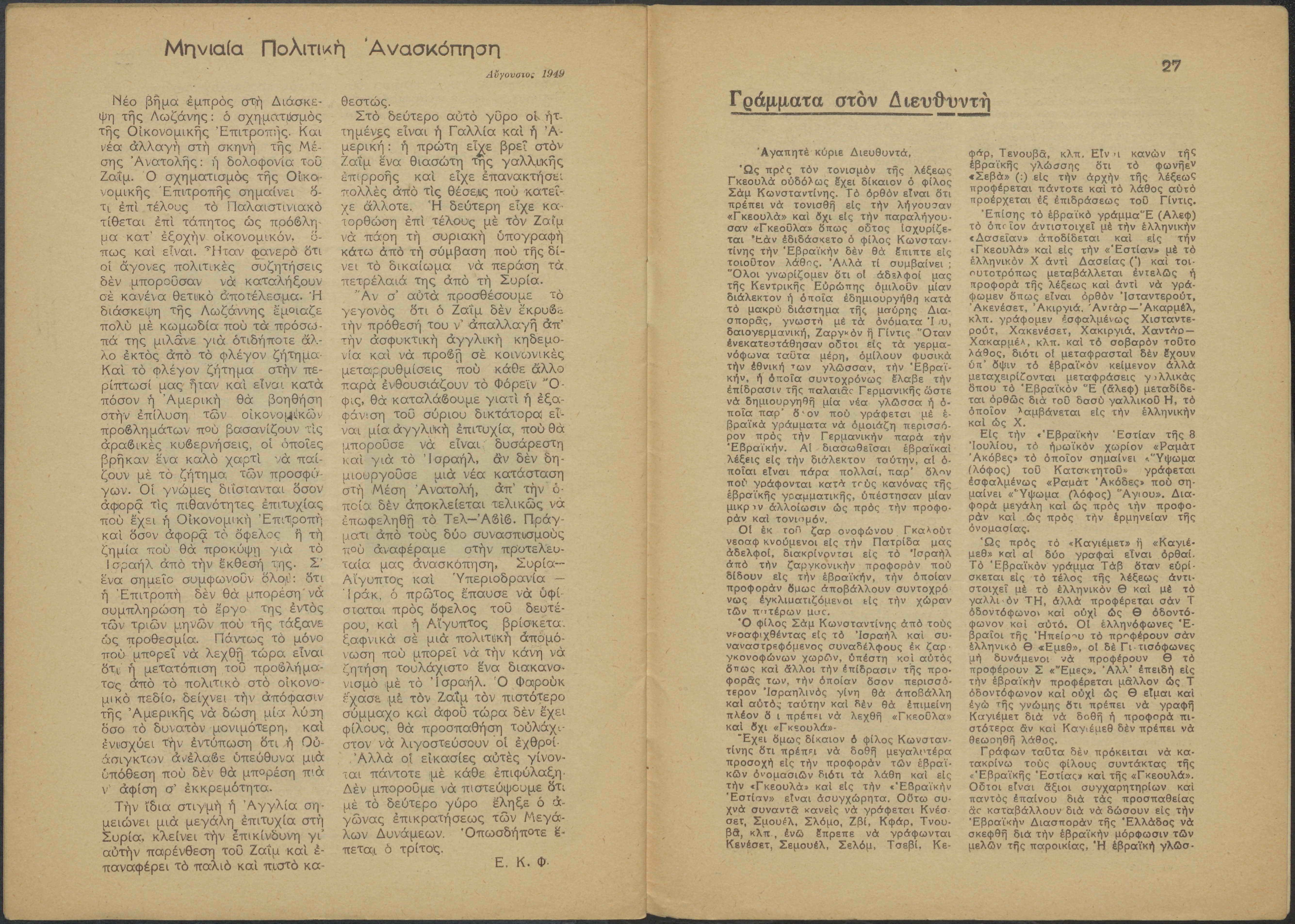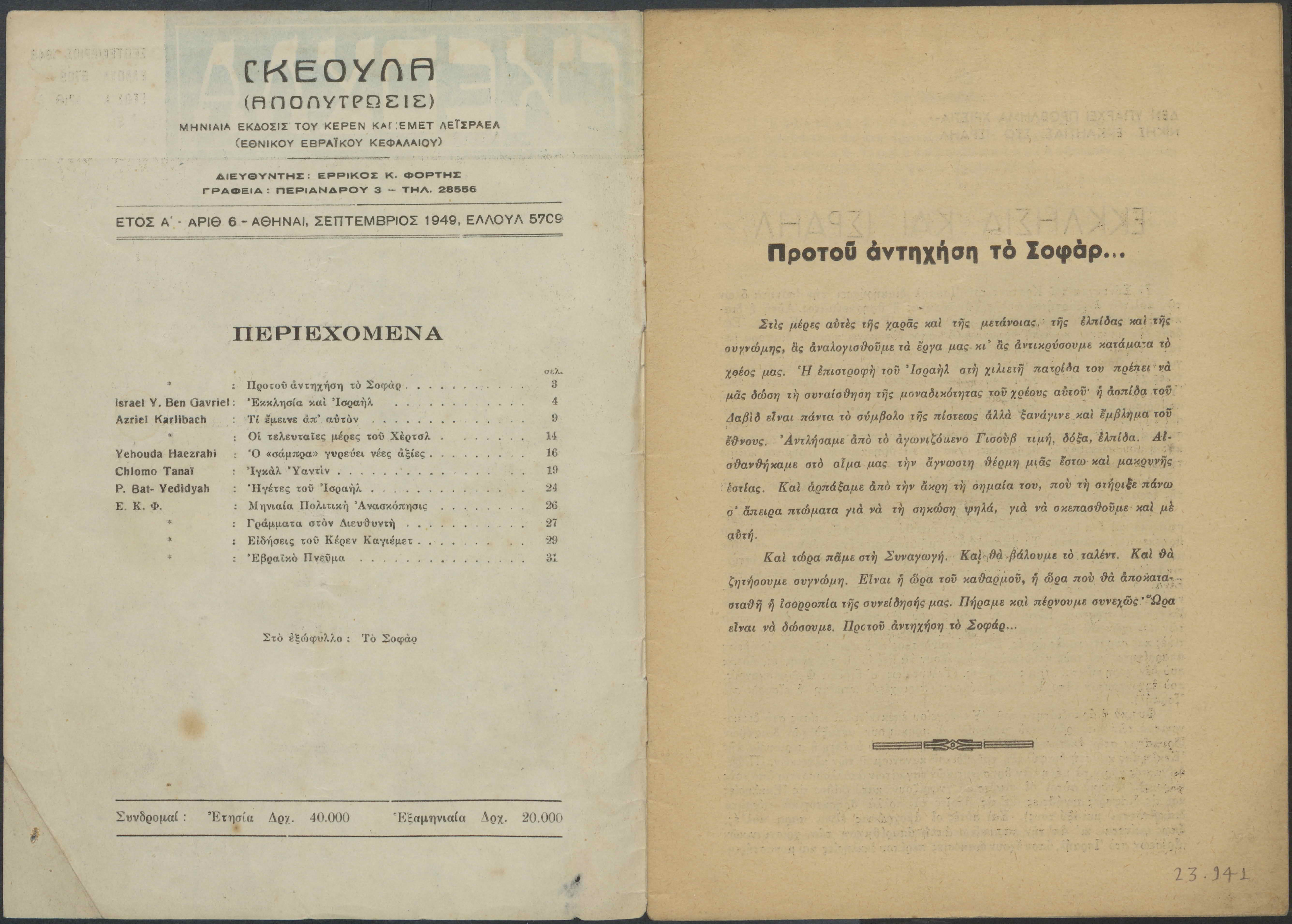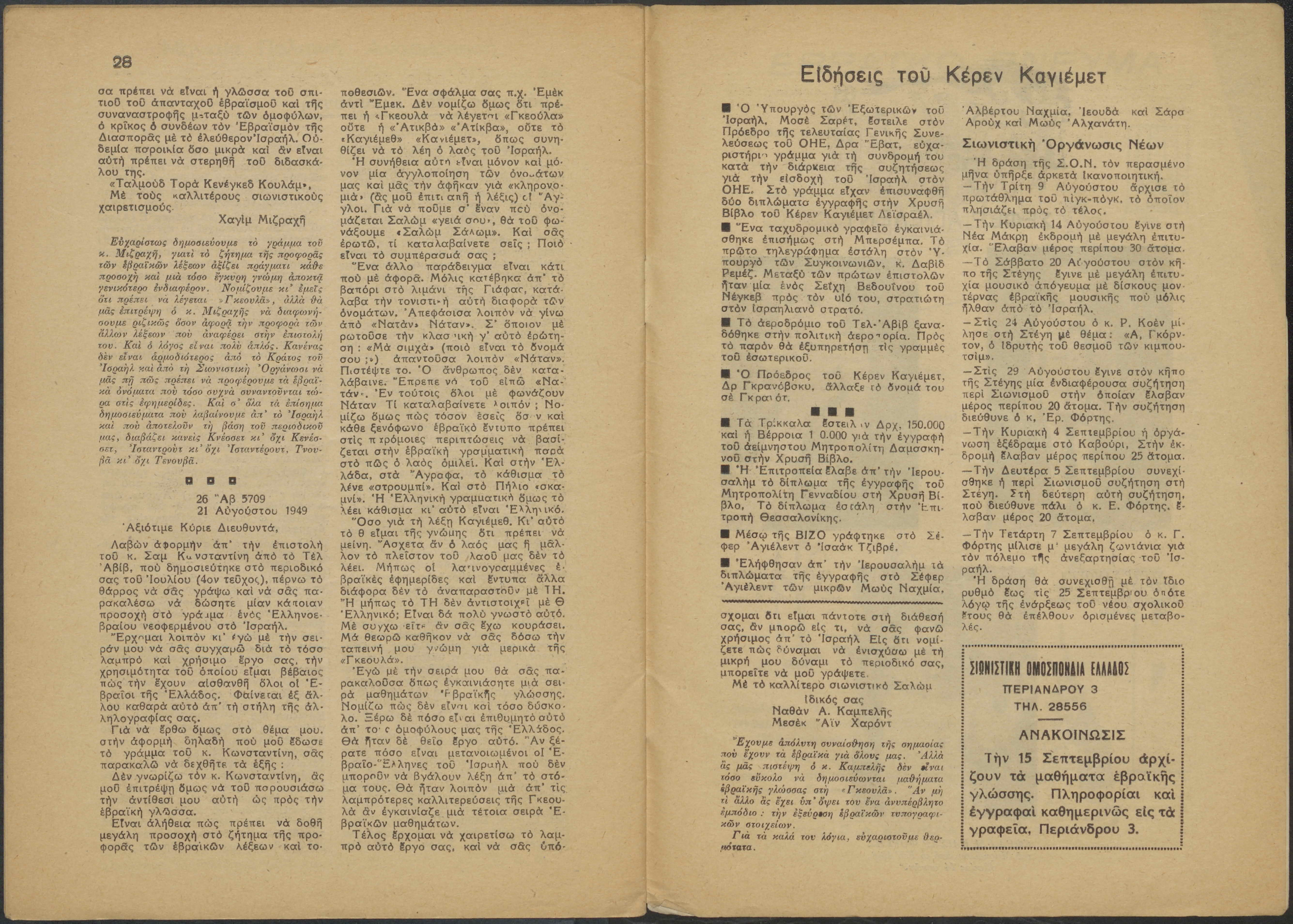 Weekly Greek-Jewish newspaper issue No. 6, 31 pages.