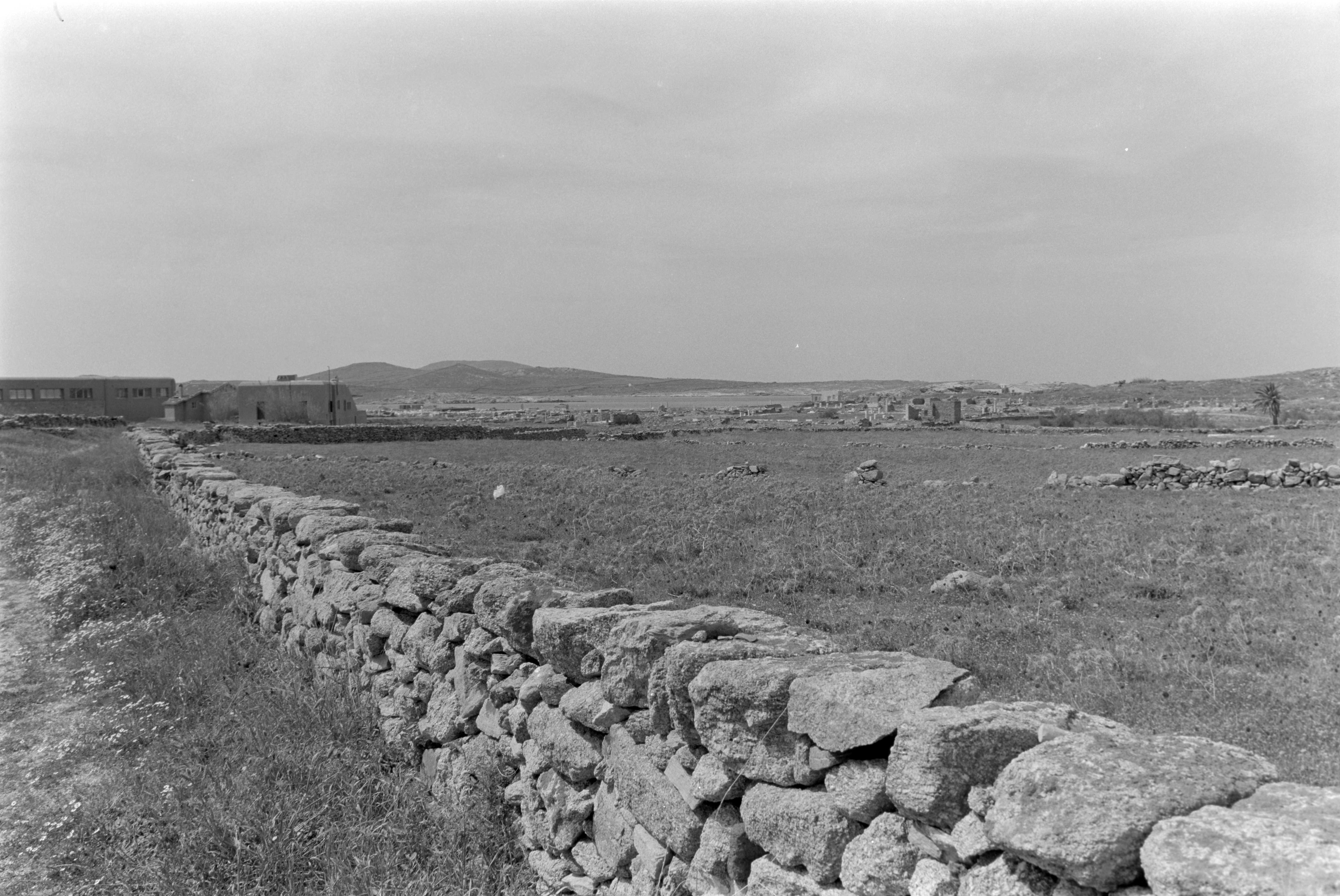 Photograph of the Synagogue, in Delos, general view from the road to the site.