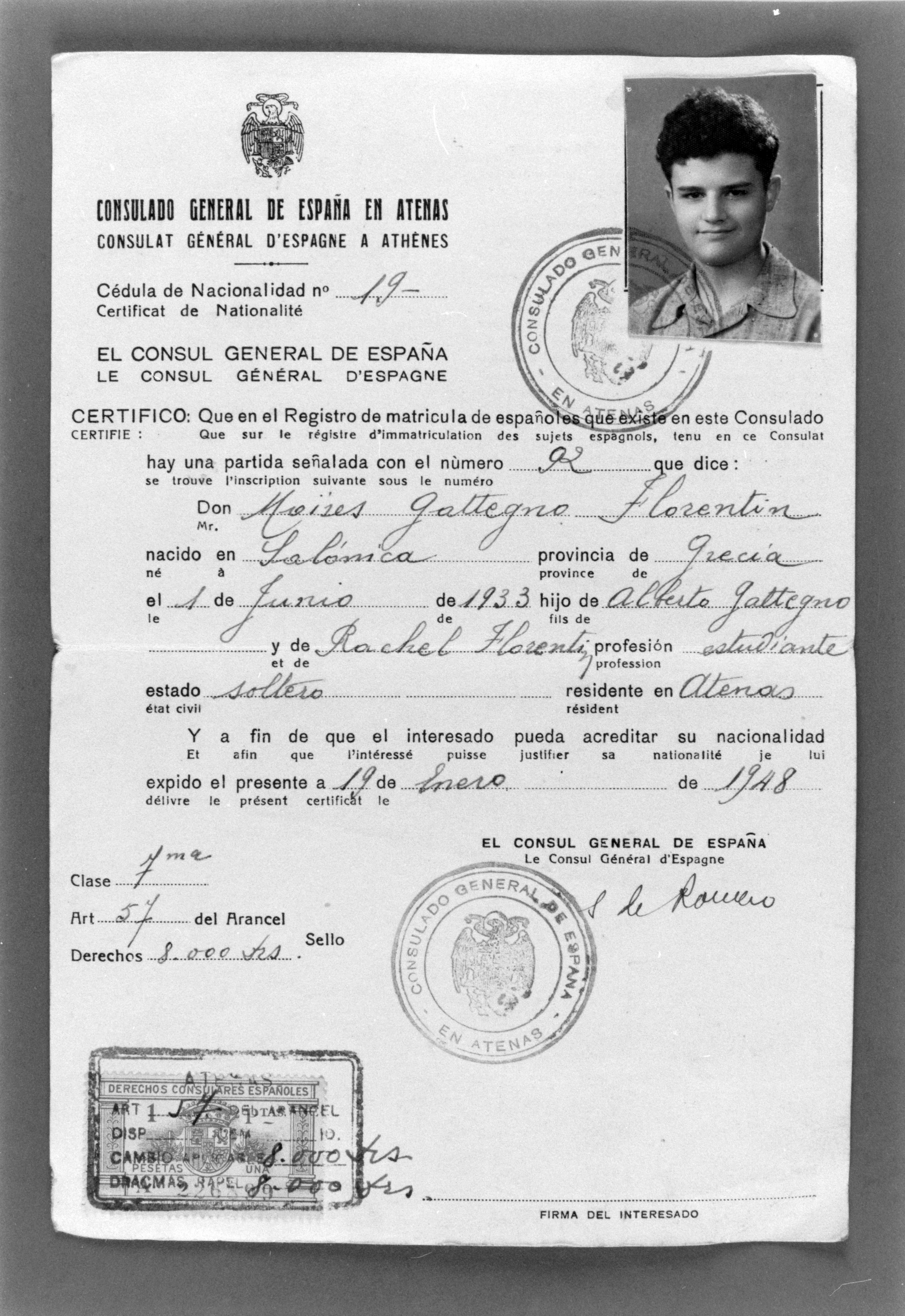 Certificate of Spanish citizenship of Moises Gaetano