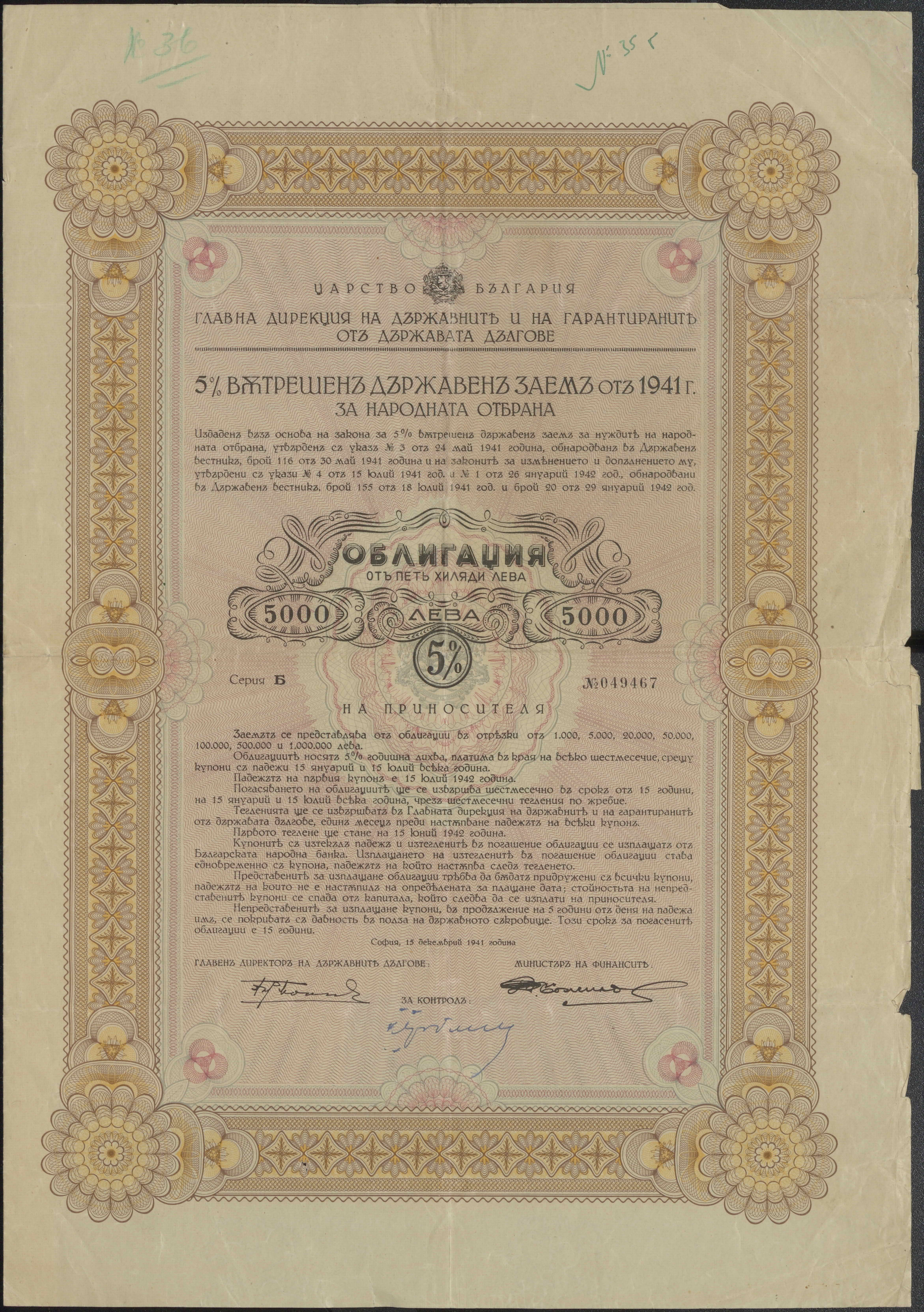 | dc.description | Bonds of 5.000 Leva, with coupons, issued by the Kingdom of Bulgaria, in an envelope of the Bulgarian National Bank that belonged to Albertos Isaac Tsenio from Serres. | |