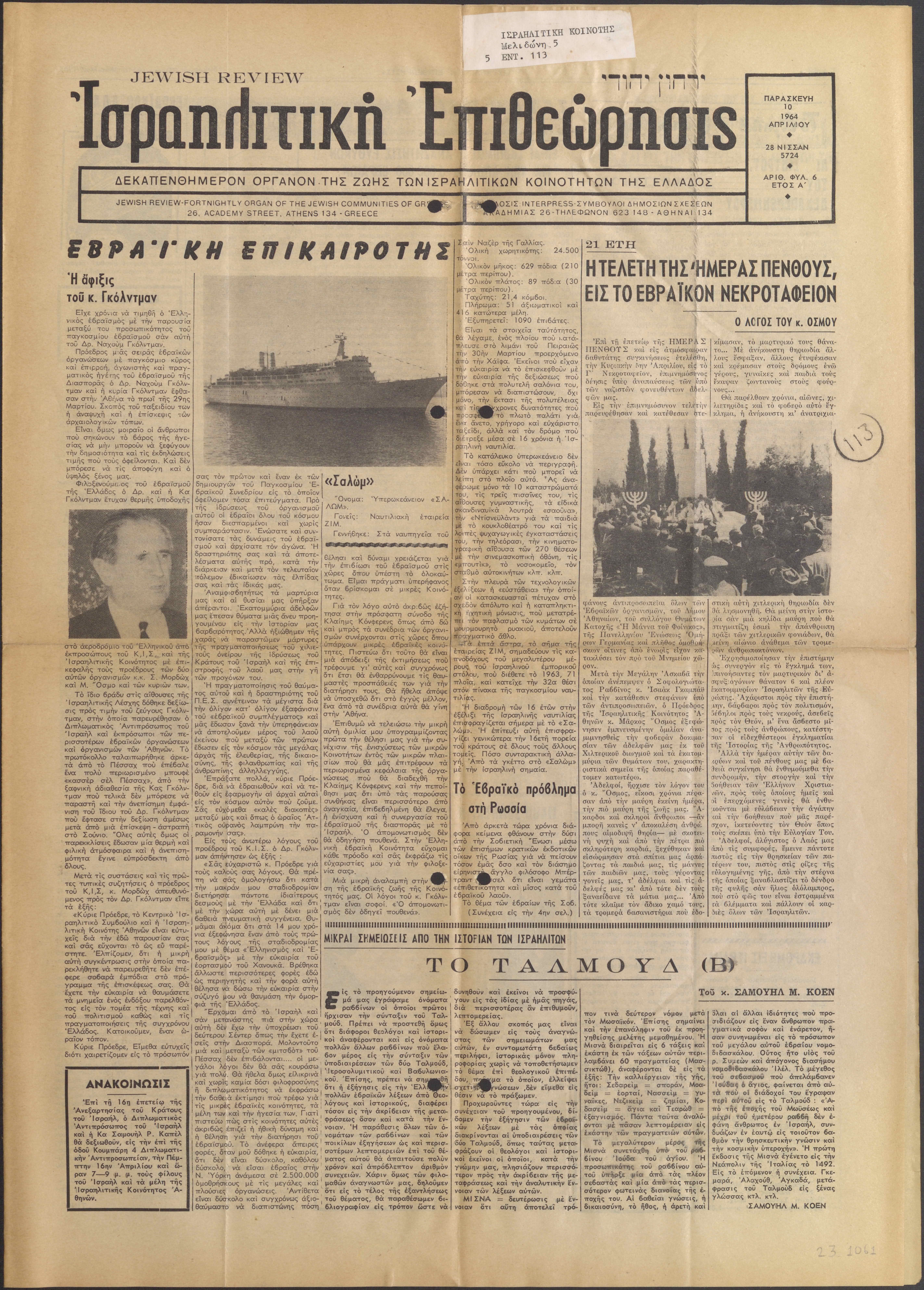 Fortnightly Οrgan of the Jewish Communities of Greece