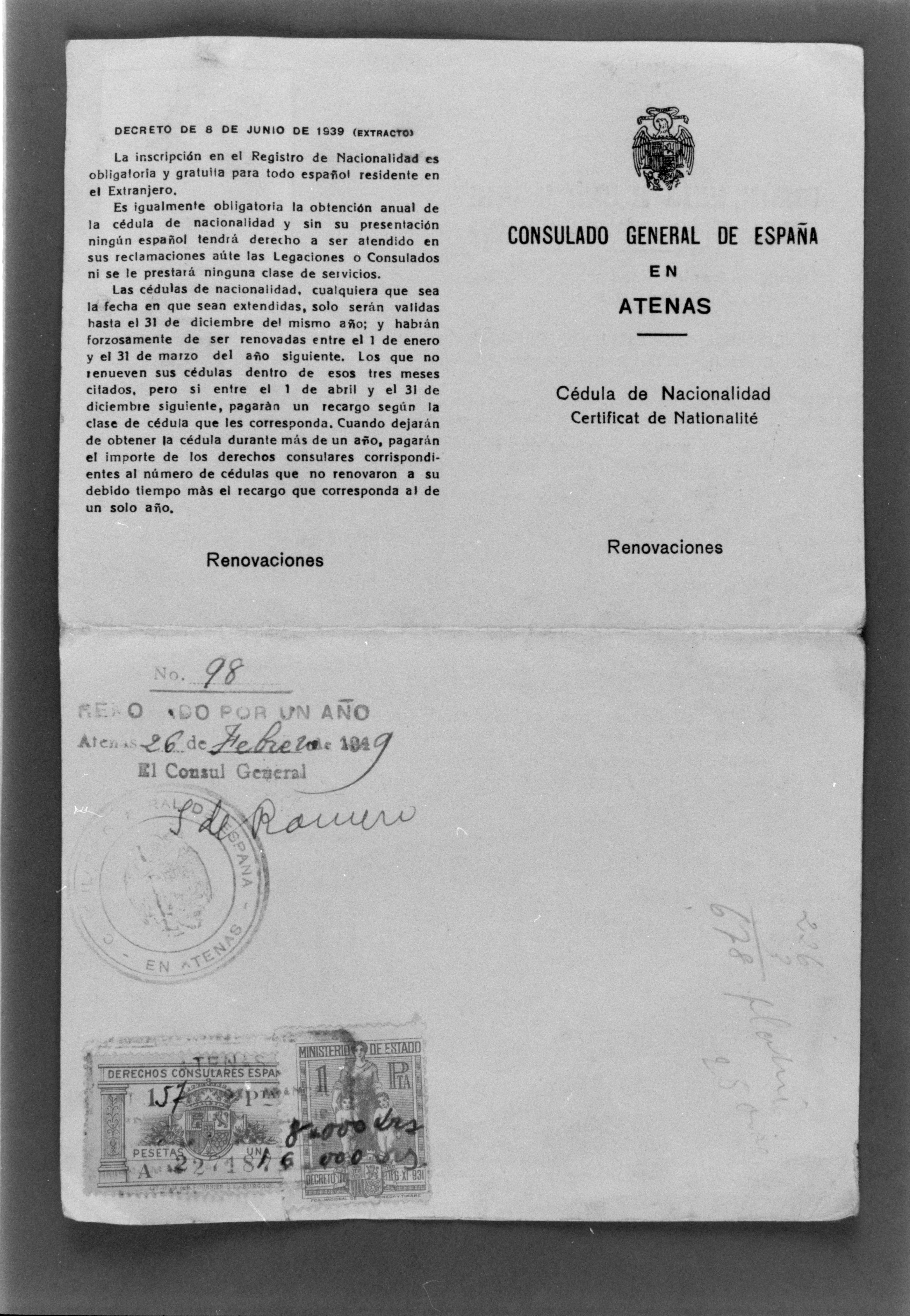 Certificate of Spanish citizenship of Moises Gaetano