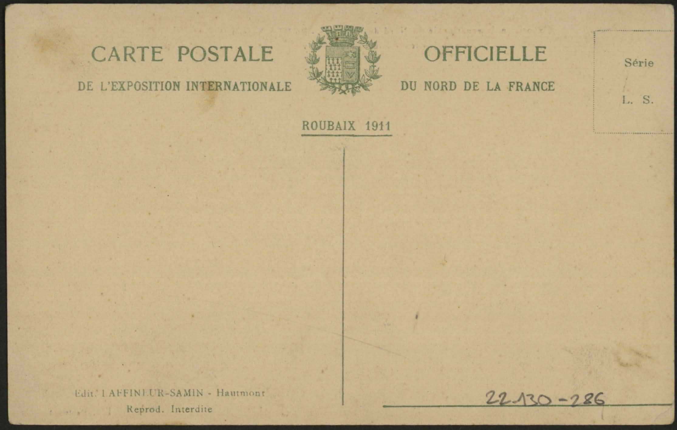 Exposition Internationale du Nord de la France - Roubaix 1911. Le Musee Pontifical. Edit. Laffineur-Samin, Hautmont. Carte postale officielle. Reprod. Interdite.