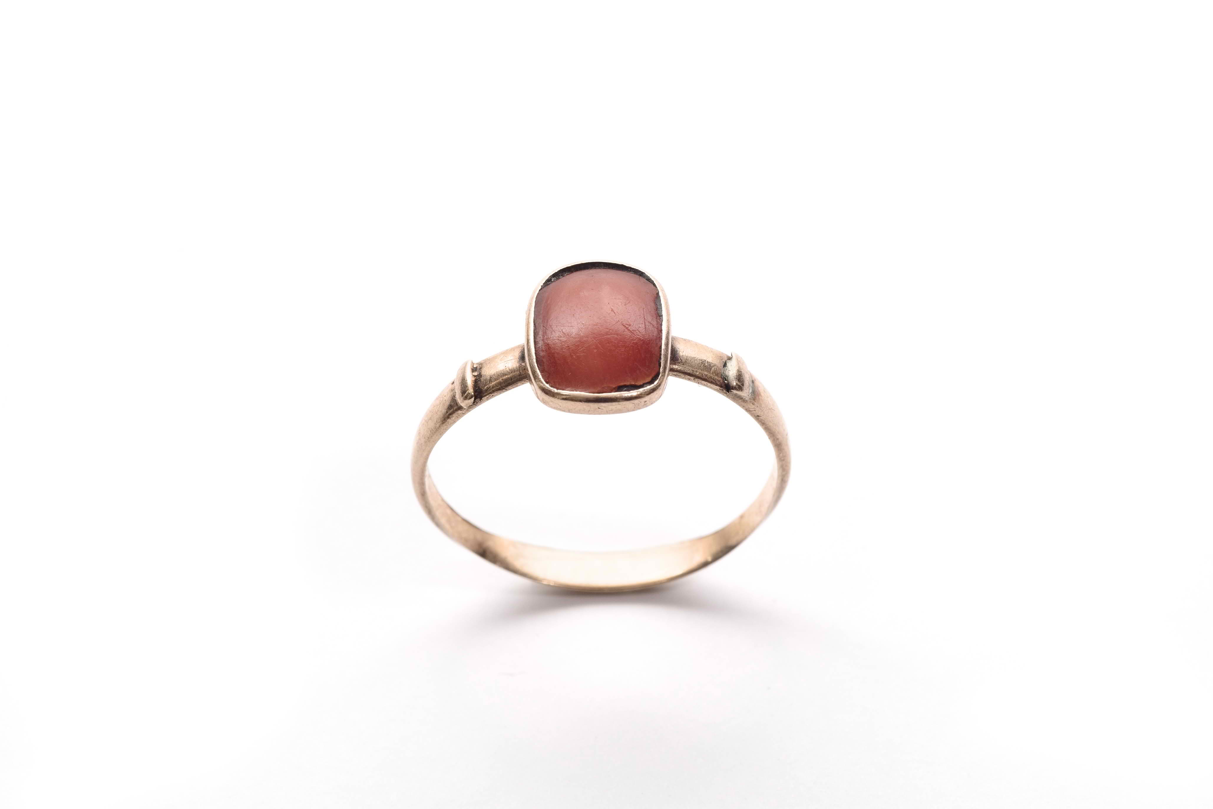 Woman's gold ring, set with rectangular coral stone.