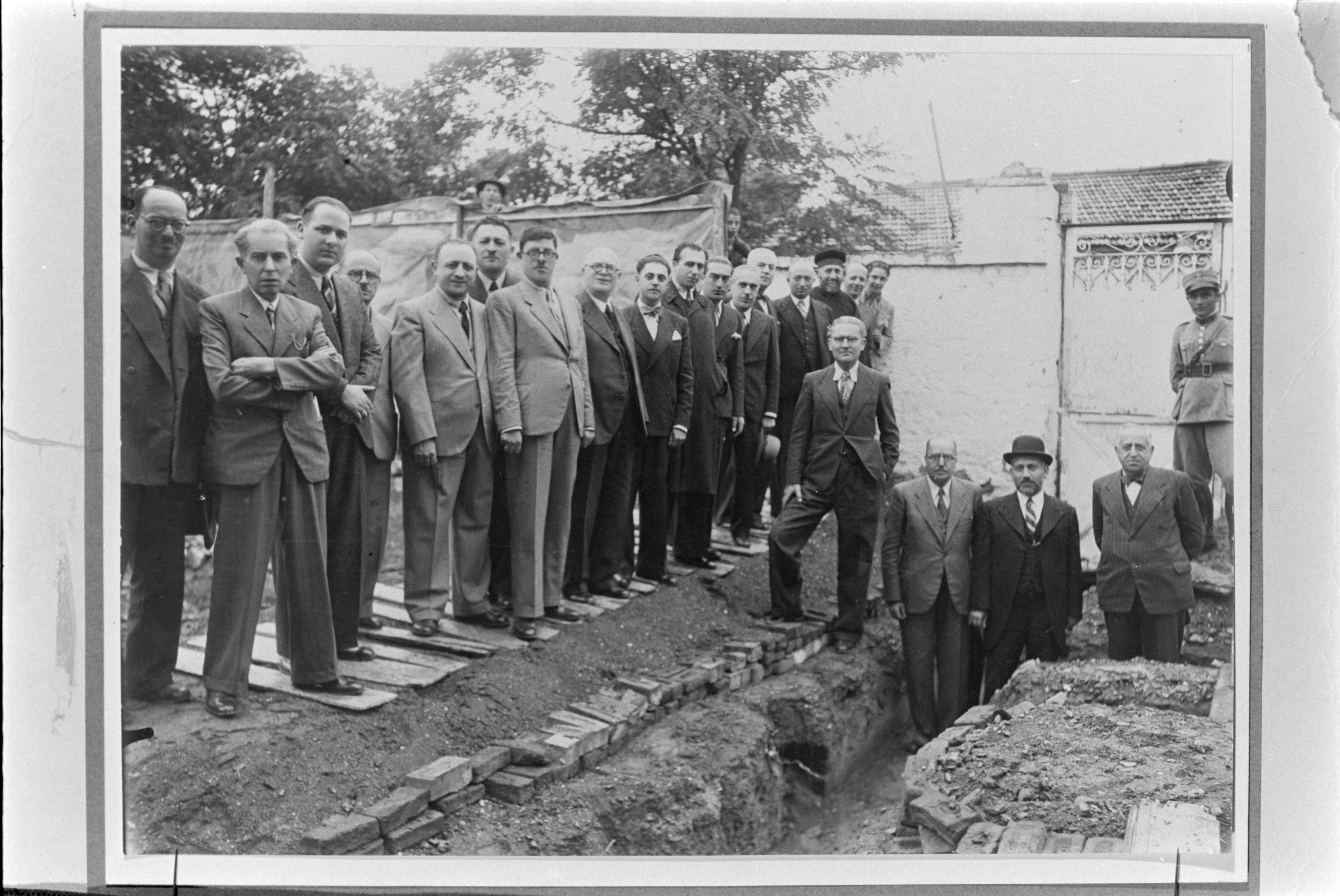 Photograph of a group at the foundations of Hirsch Hospital in Thessaloniki.