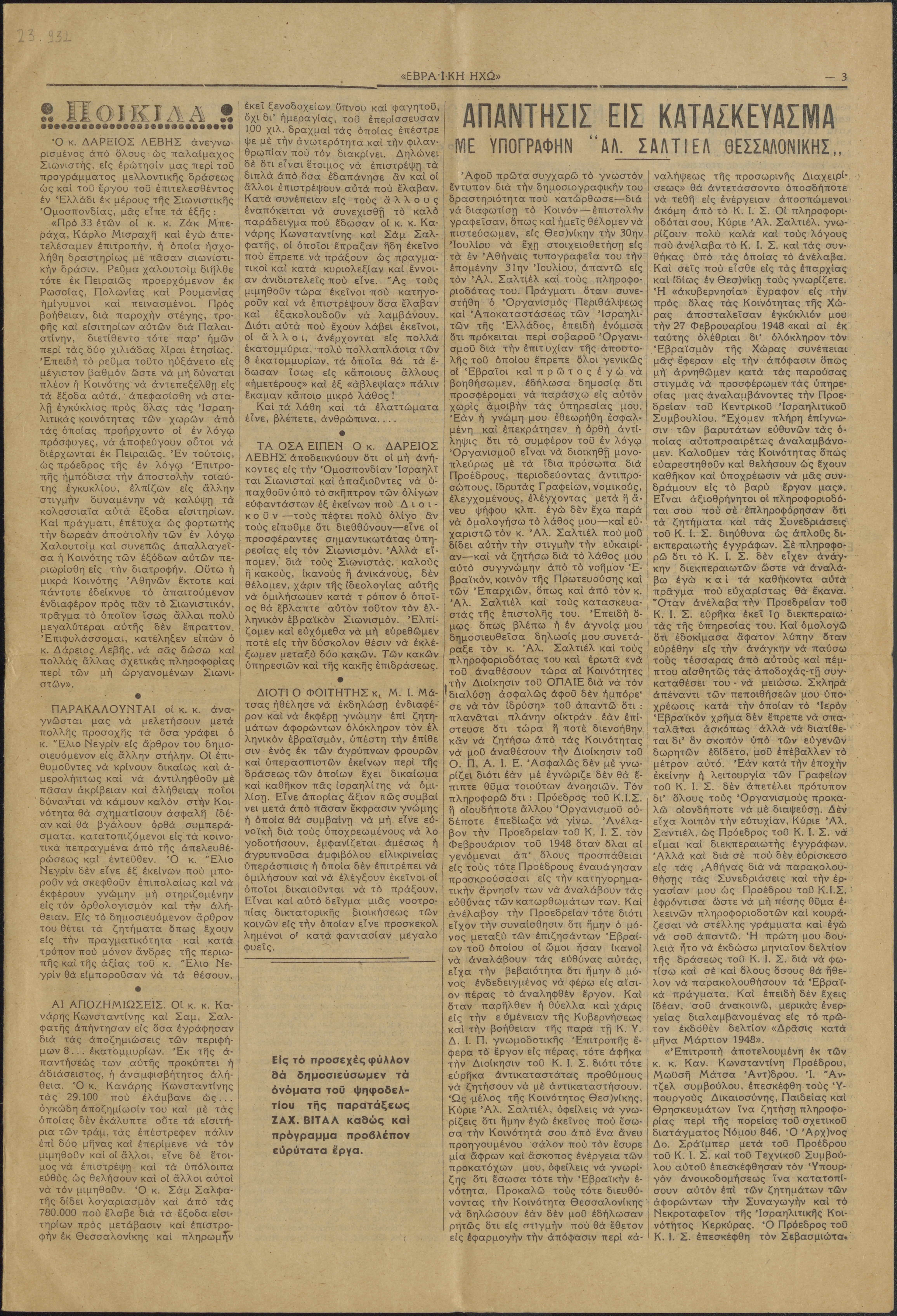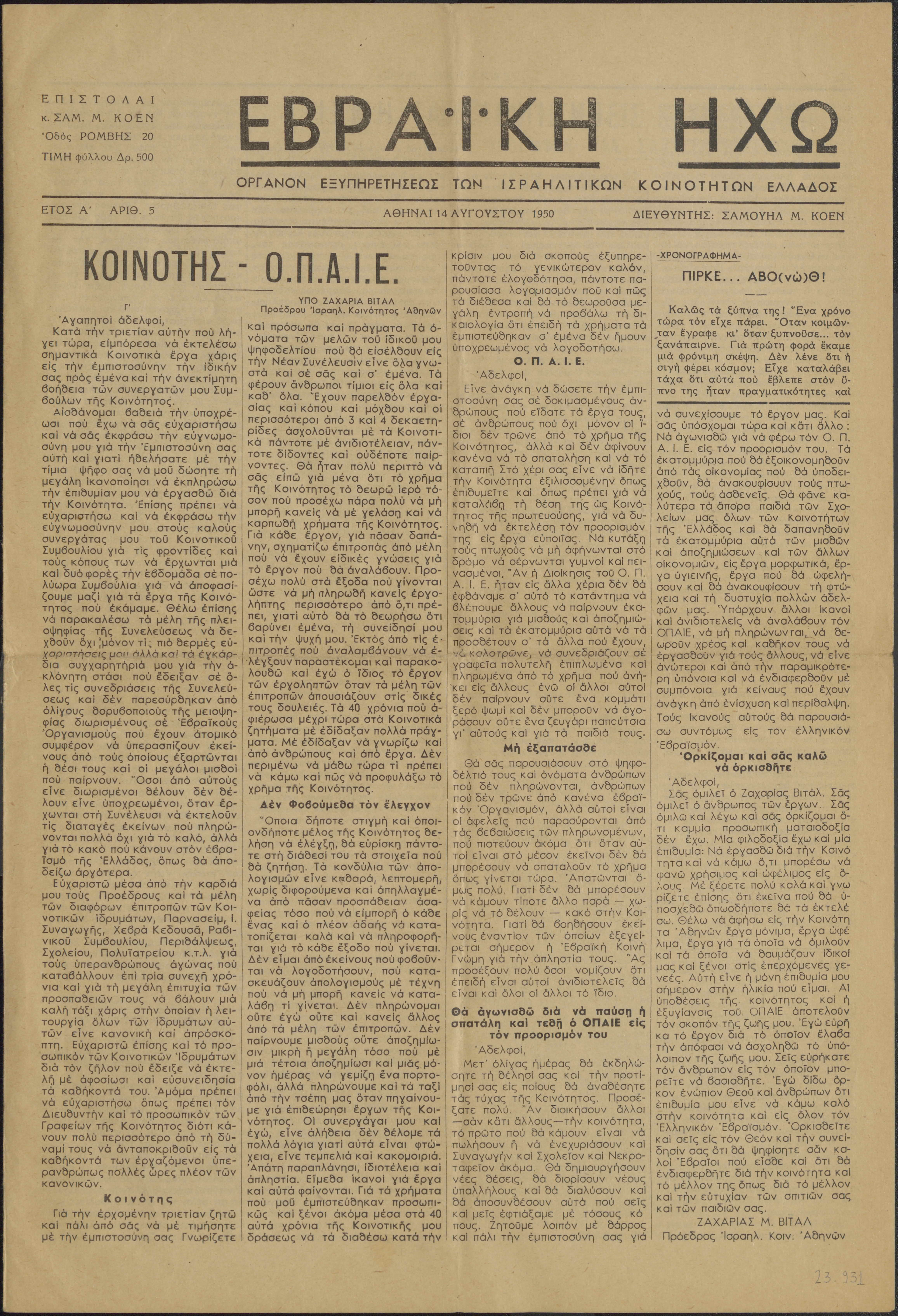 Weekly Greek-Jewish newspaper "Evraiki Echo".