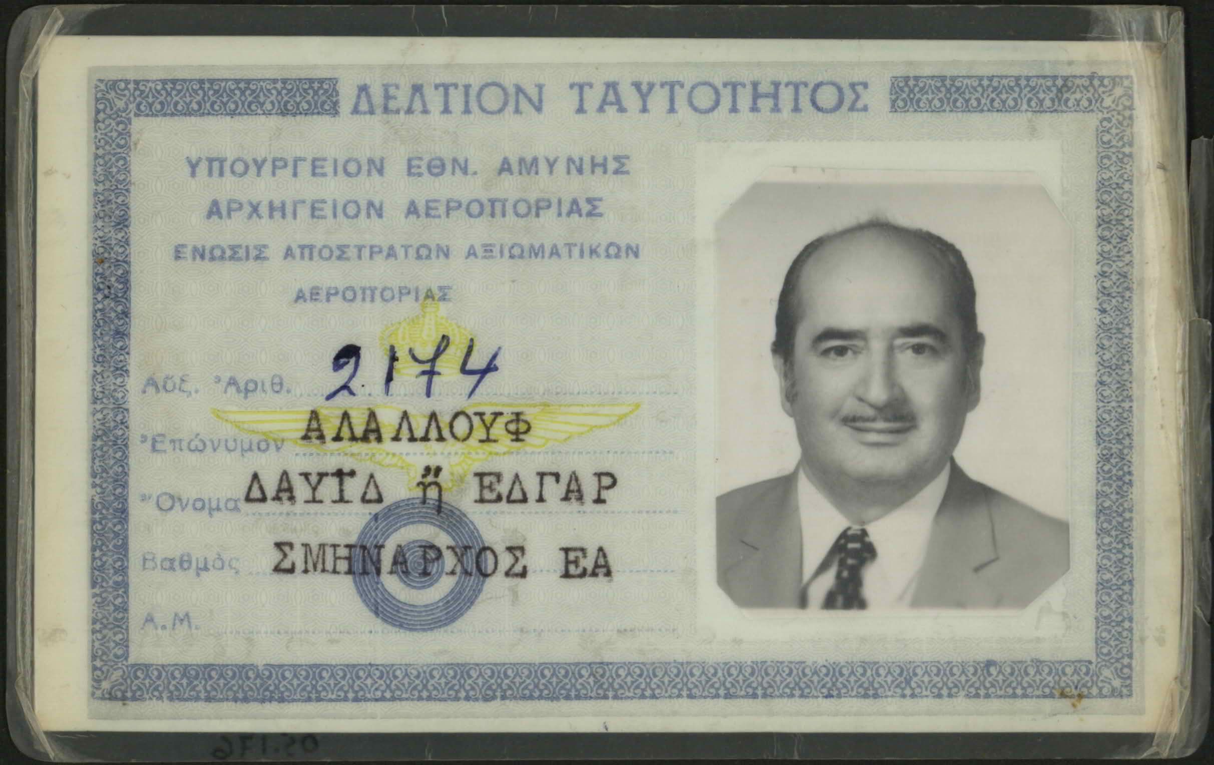 Identity card of David Edgar Allalouf, issued by the Ministry of Military Affairs.
