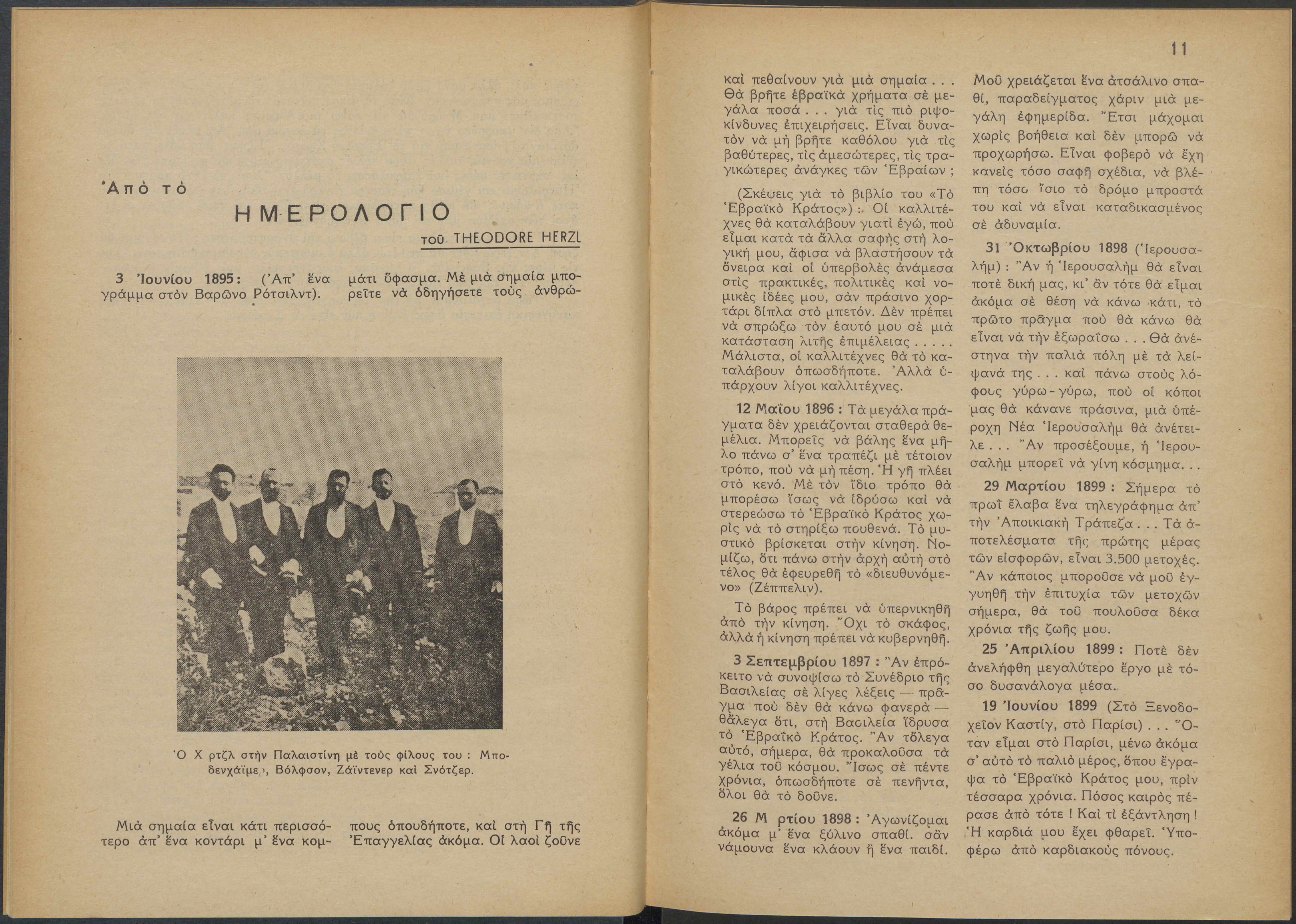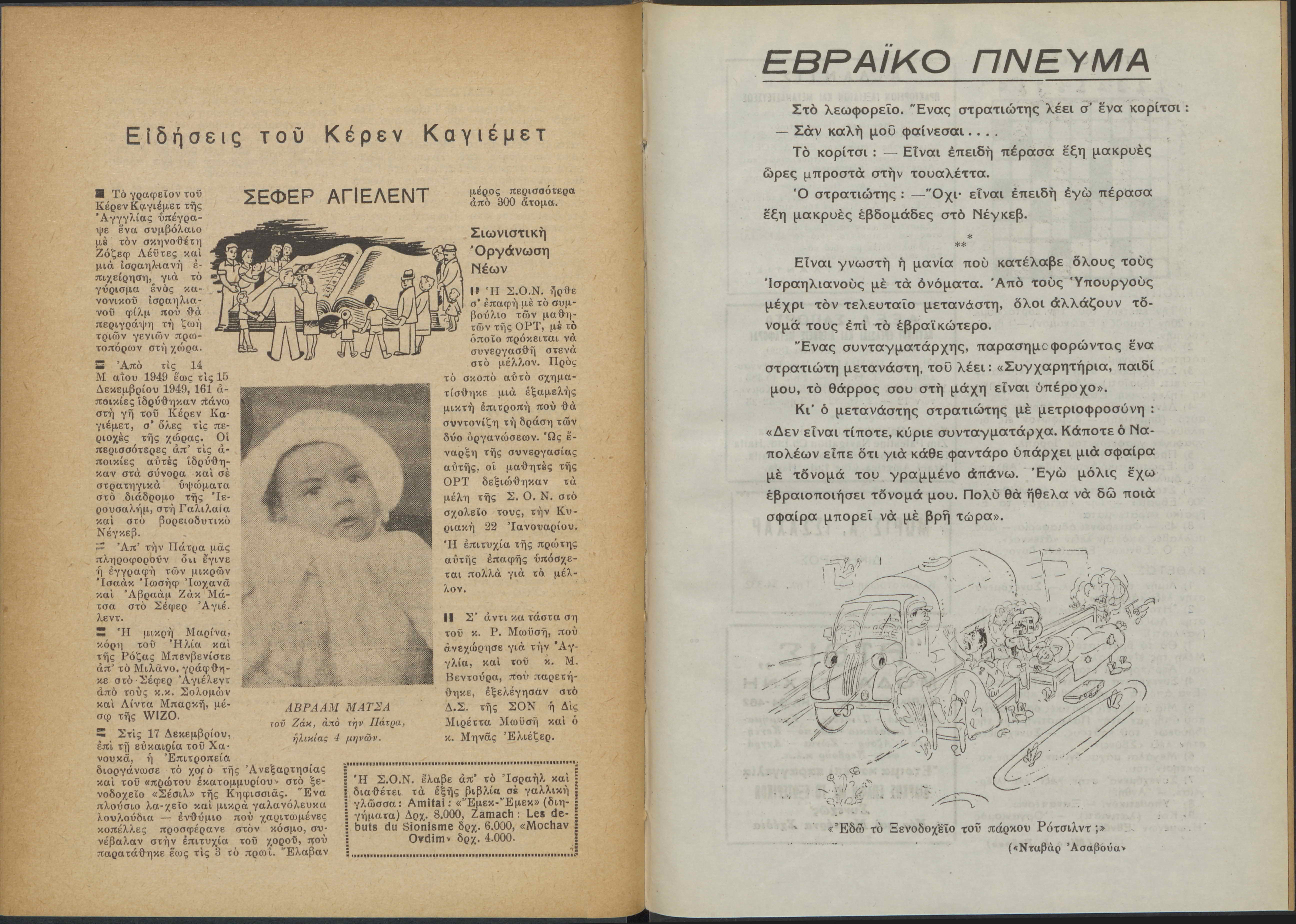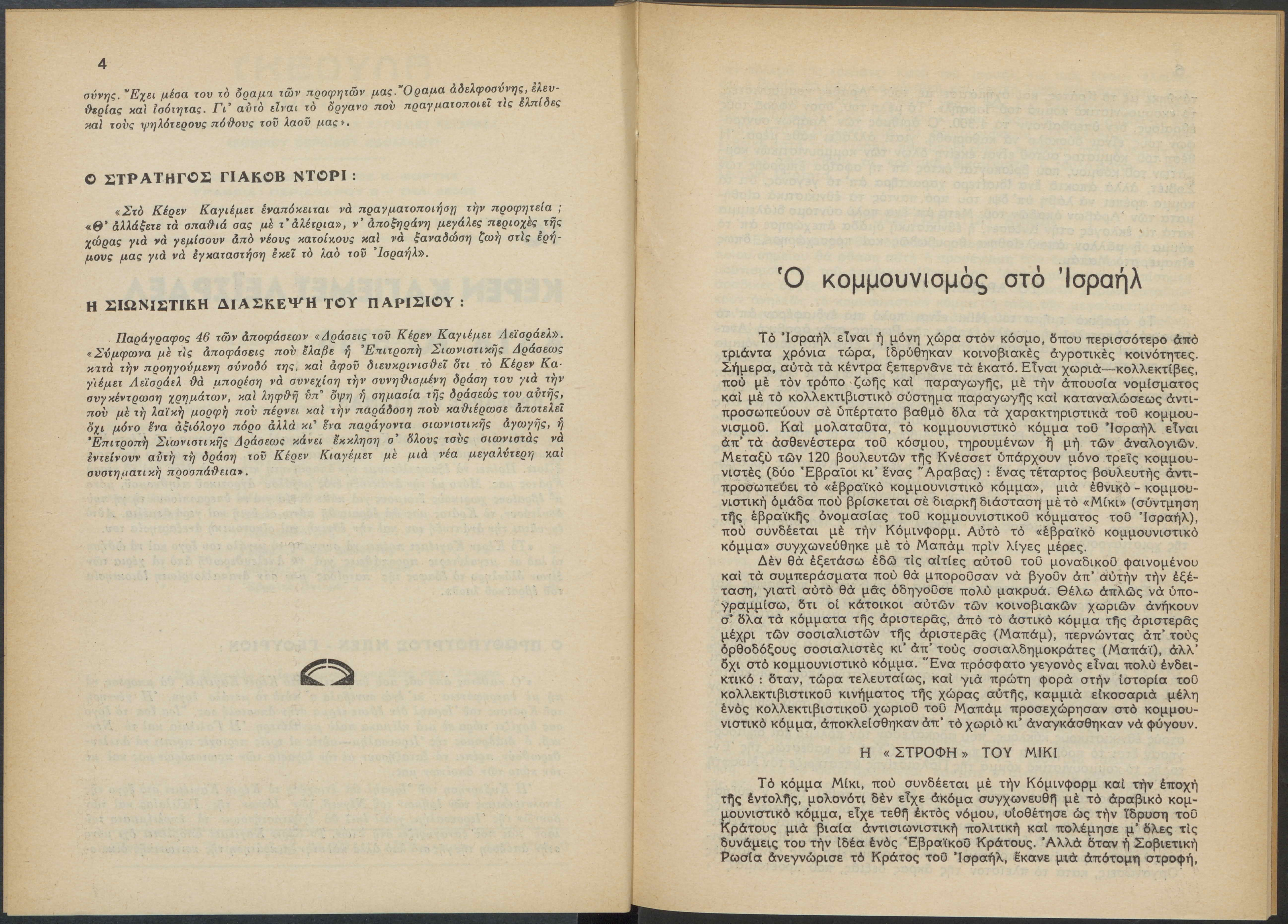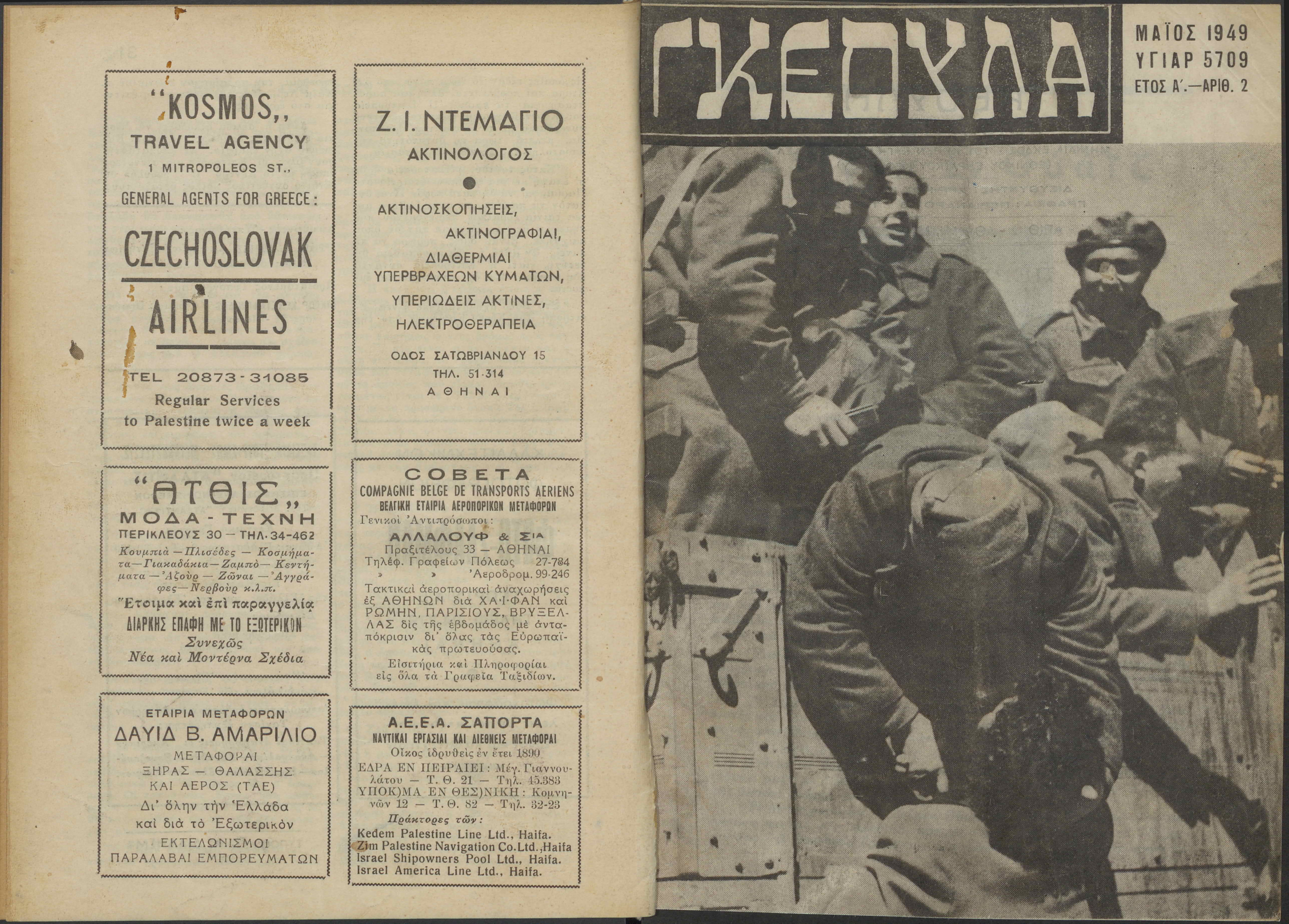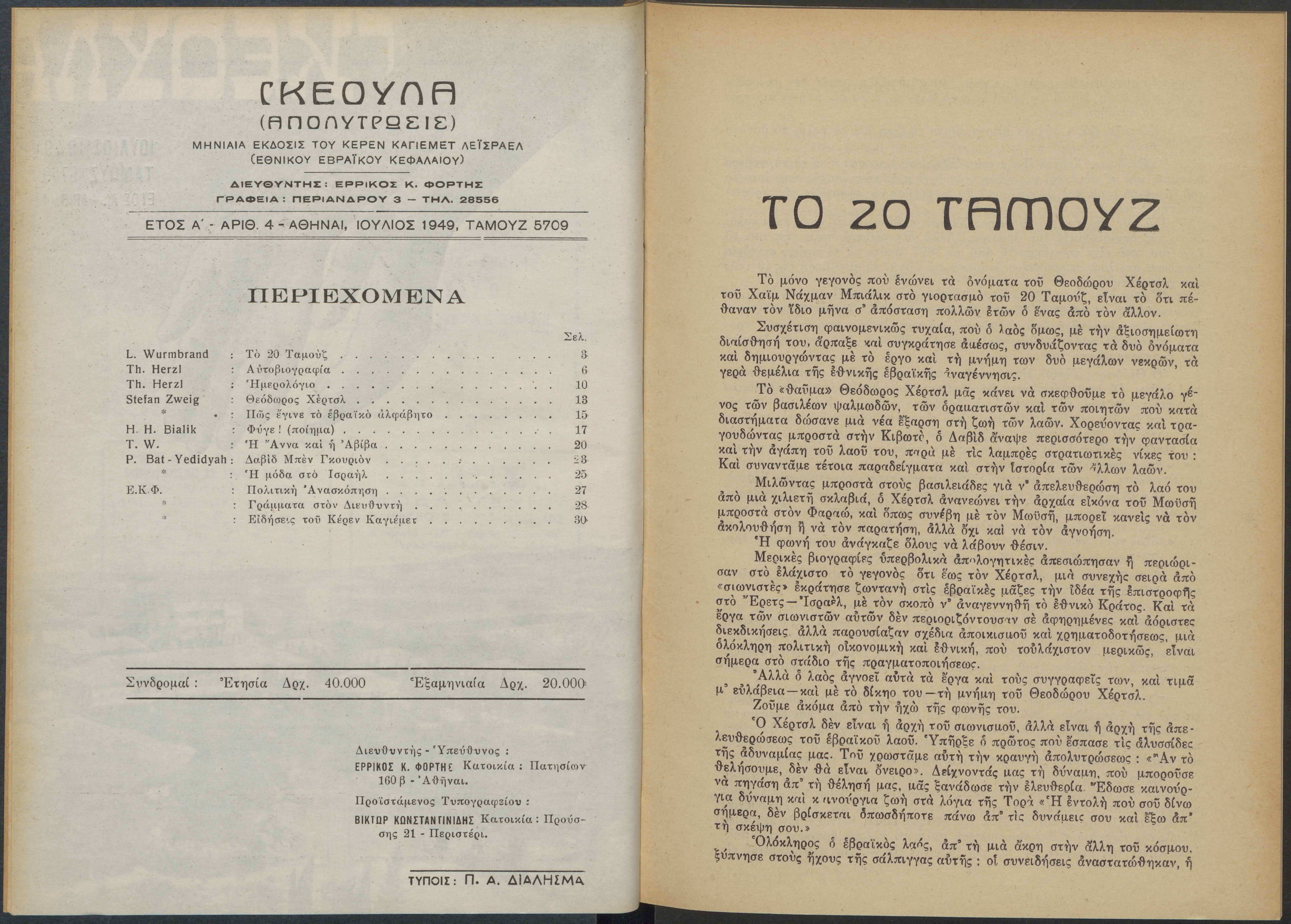 Monthly publication of Keren Kayemeth LeIsrael (Jewish National Fund/Εθνικό Εβραϊκό Κεφάλαιο), 12 issues bound in book form, 116 pages.