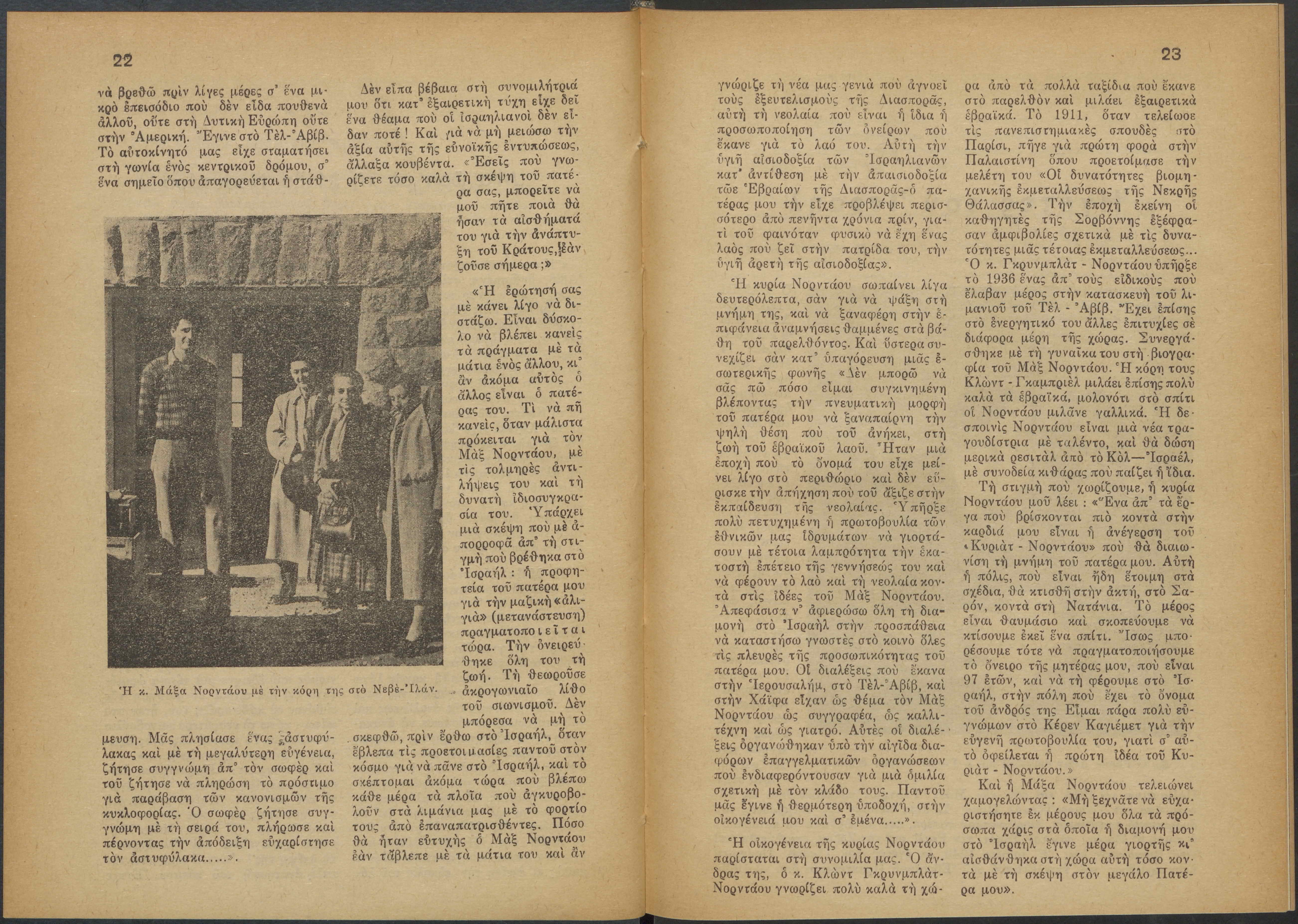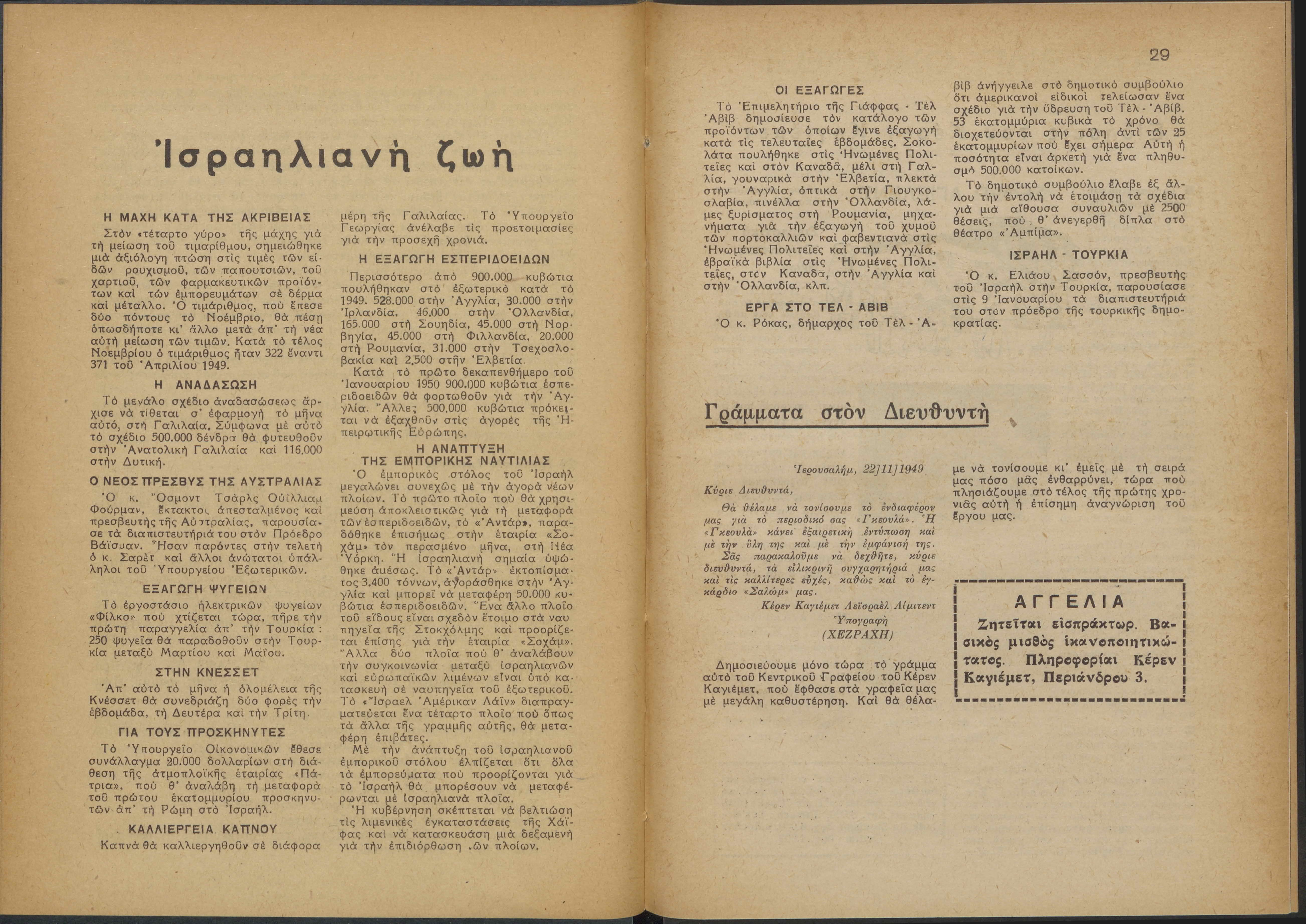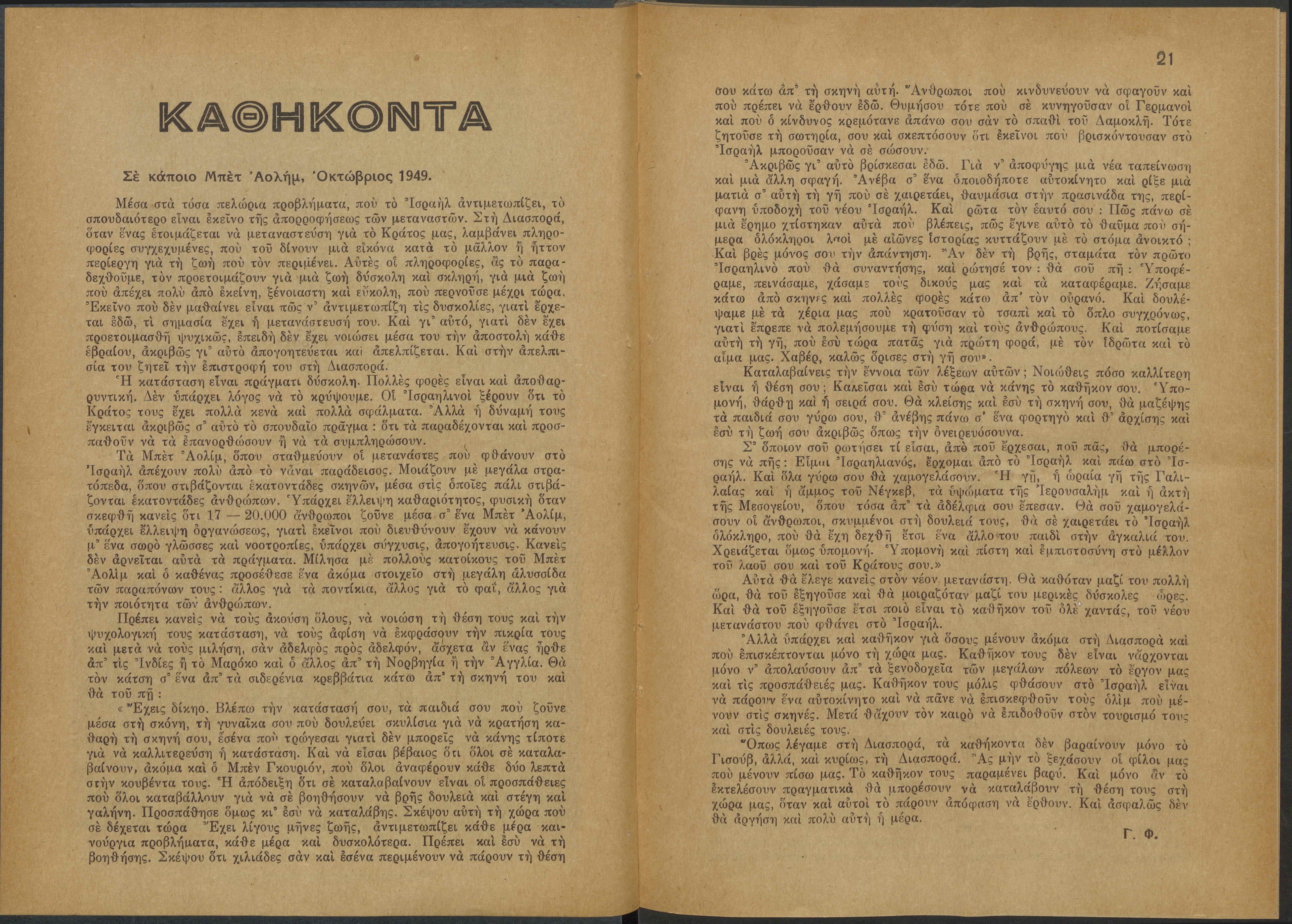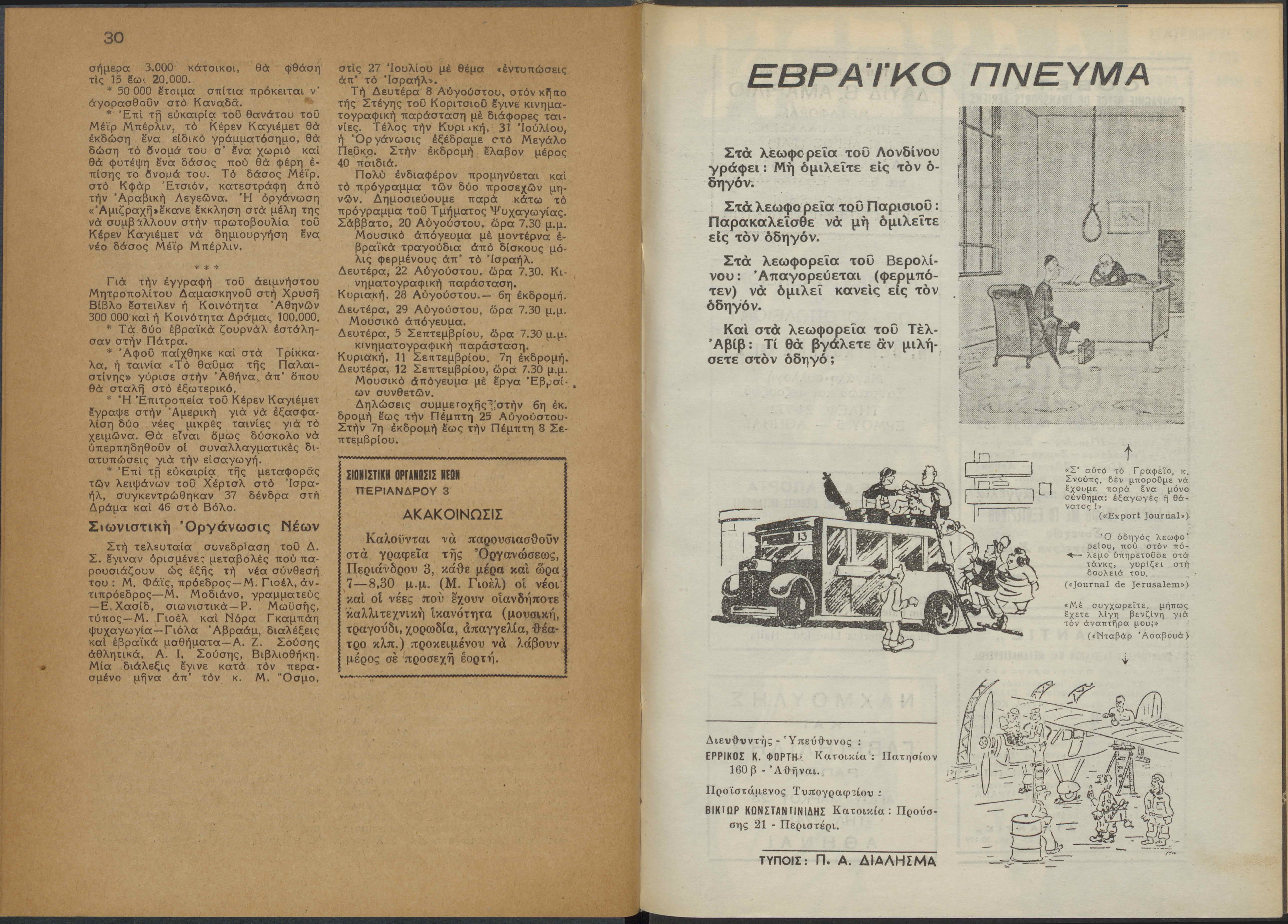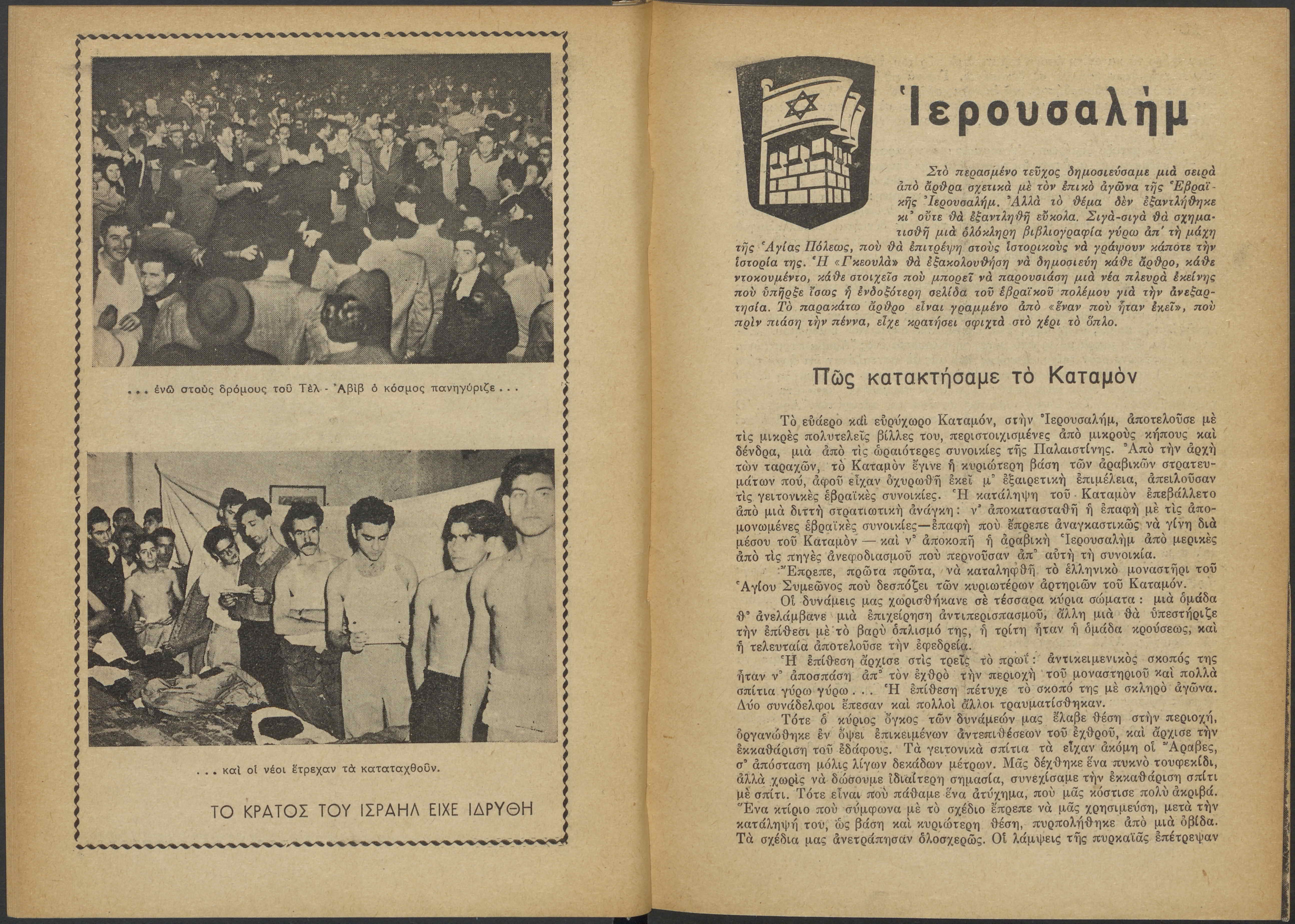 Monthly publication of Keren Kayemeth LeIsrael (Jewish National Fund/Εθνικό Εβραϊκό Κεφάλαιο), 12 issues bound in book form, 116 pages.