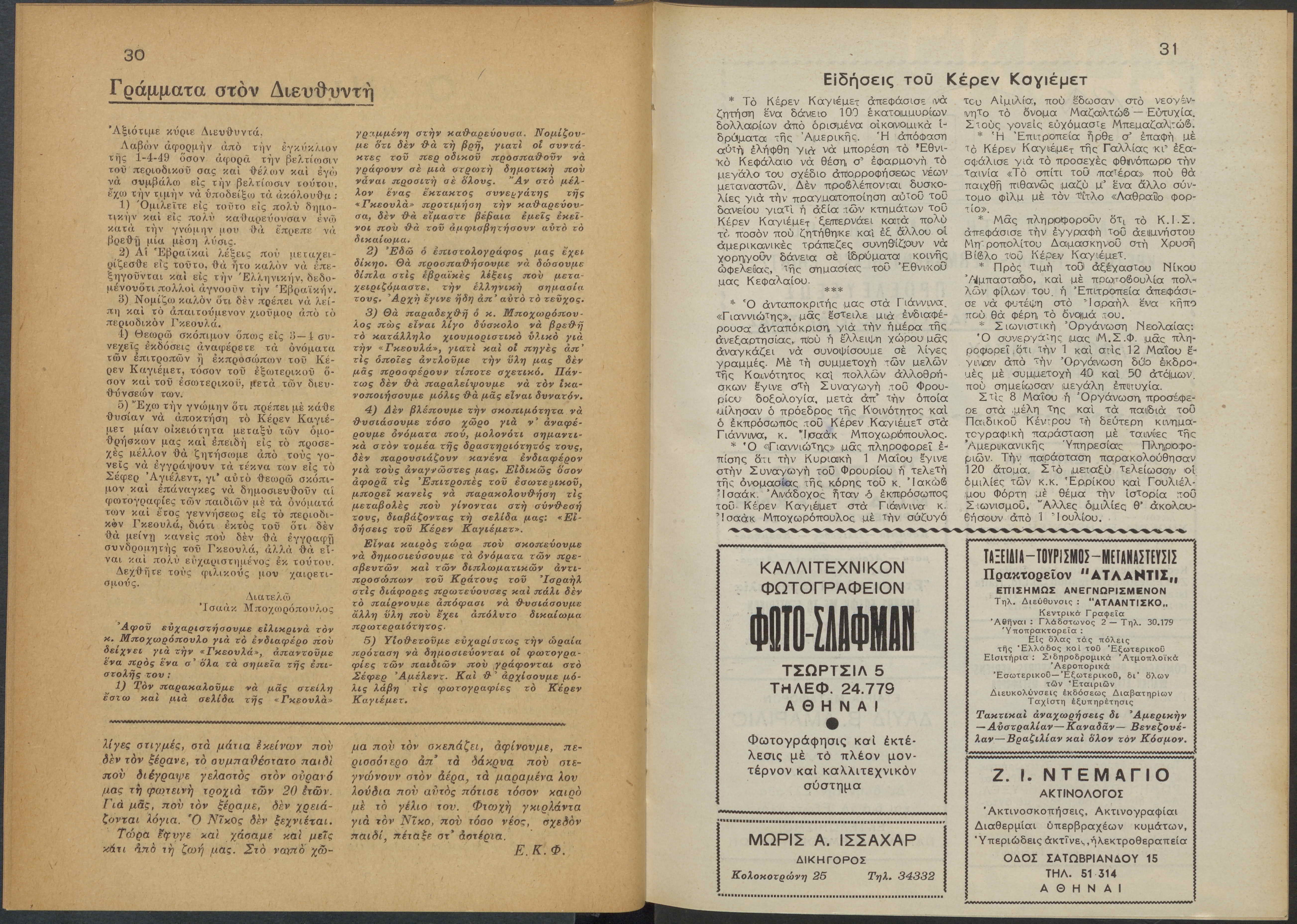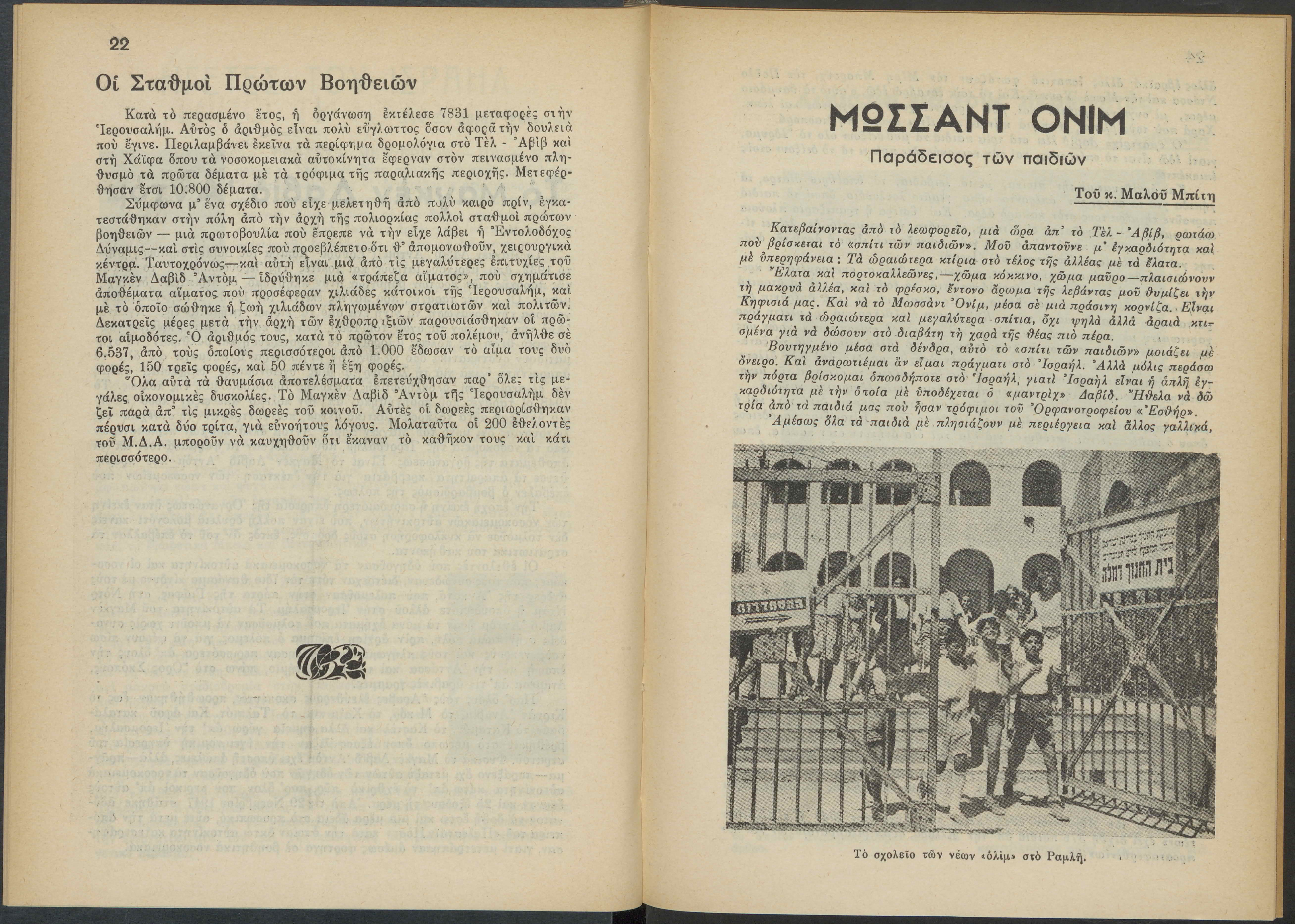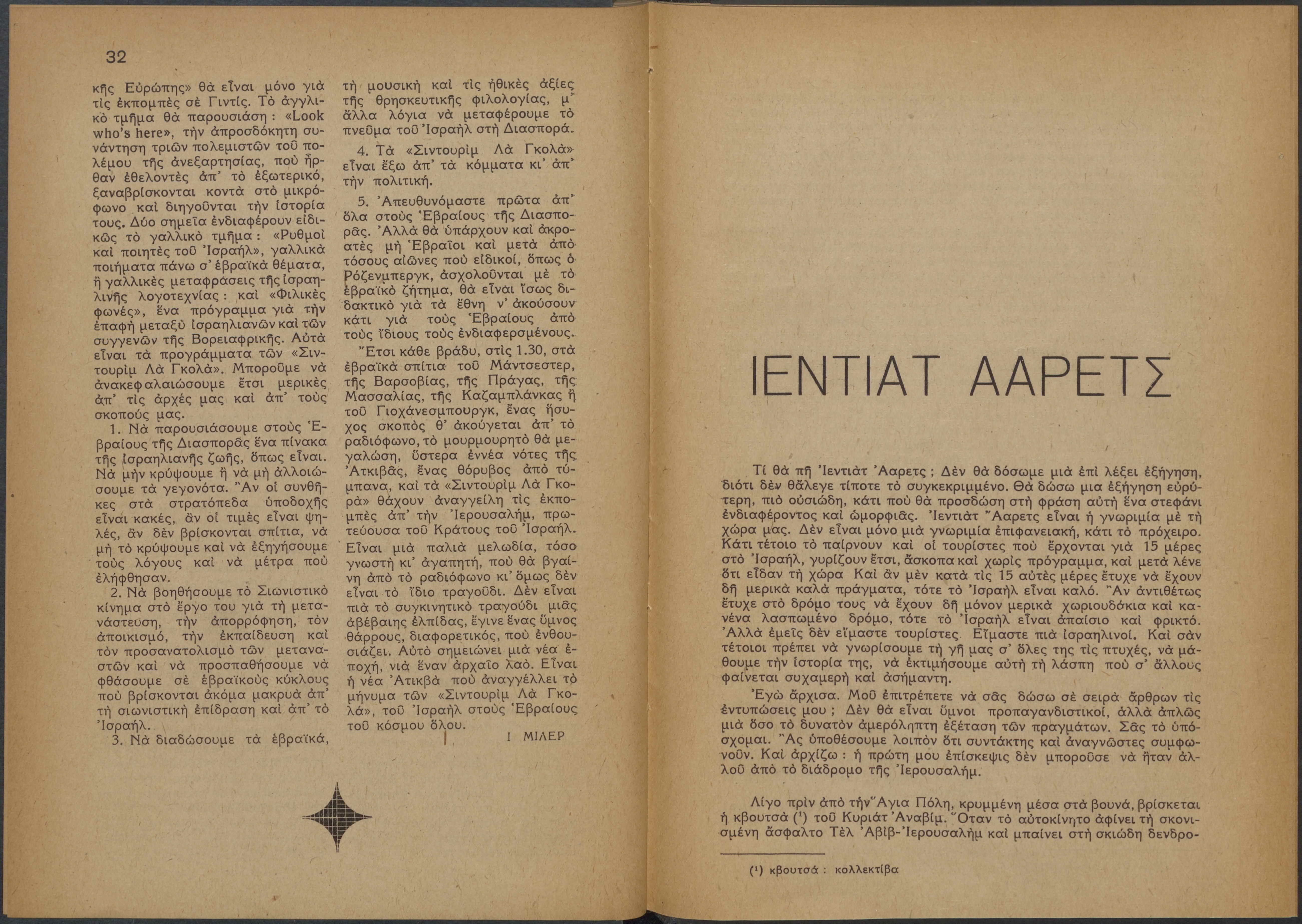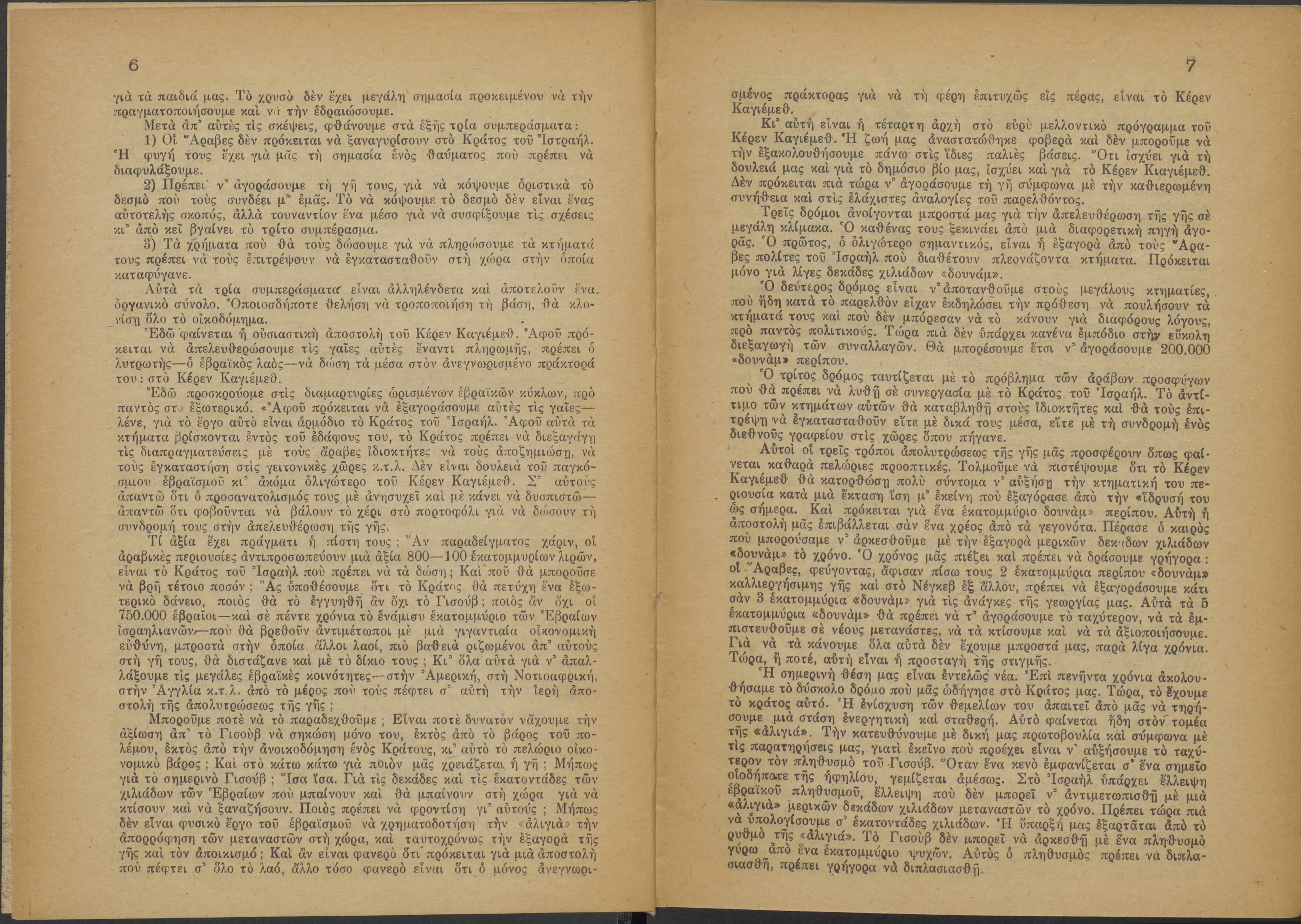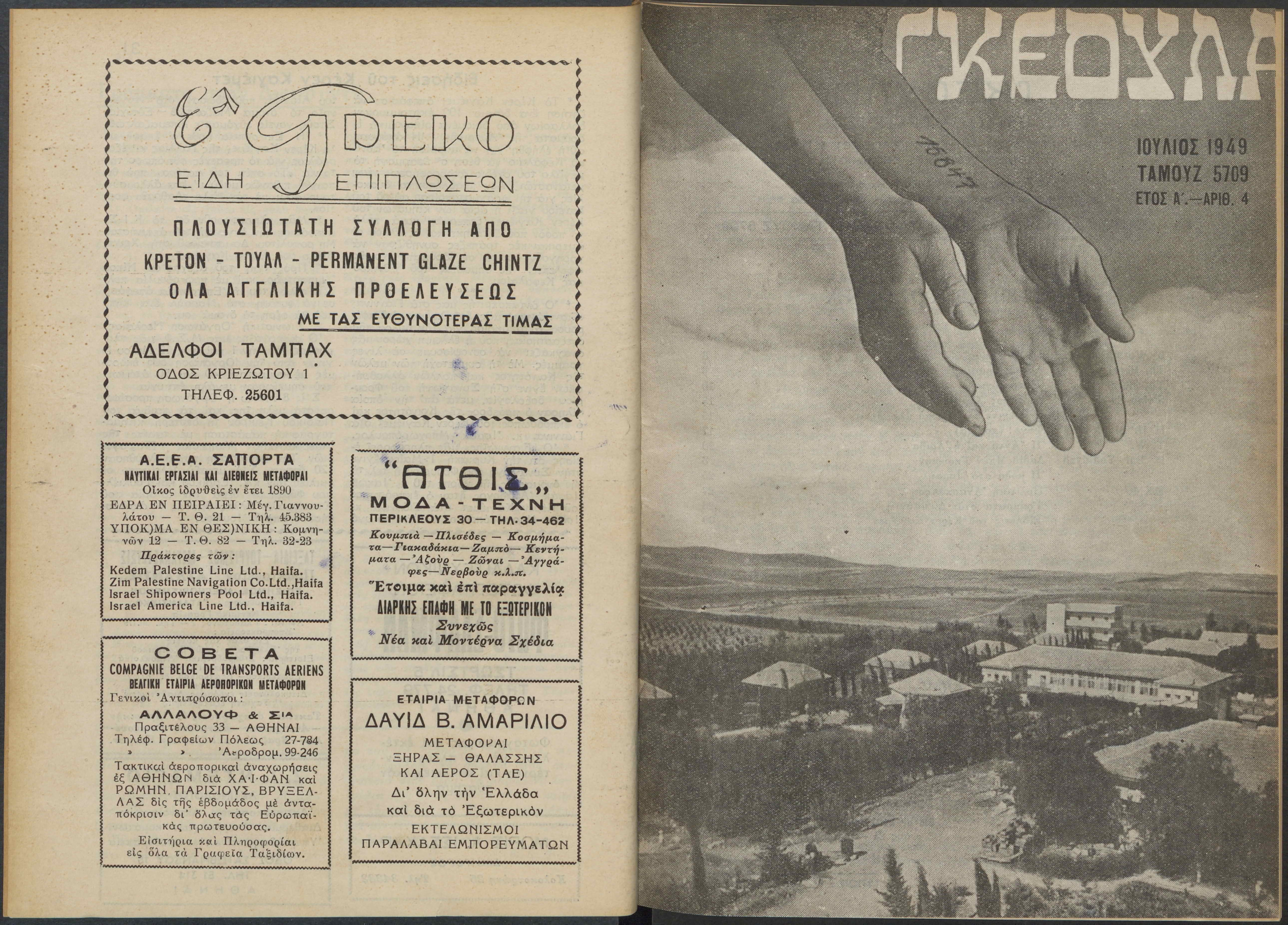 Monthly publication of Keren Kayemeth LeIsrael (Jewish National Fund/Εθνικό Εβραϊκό Κεφάλαιο), 12 issues bound in book form, 116 pages.