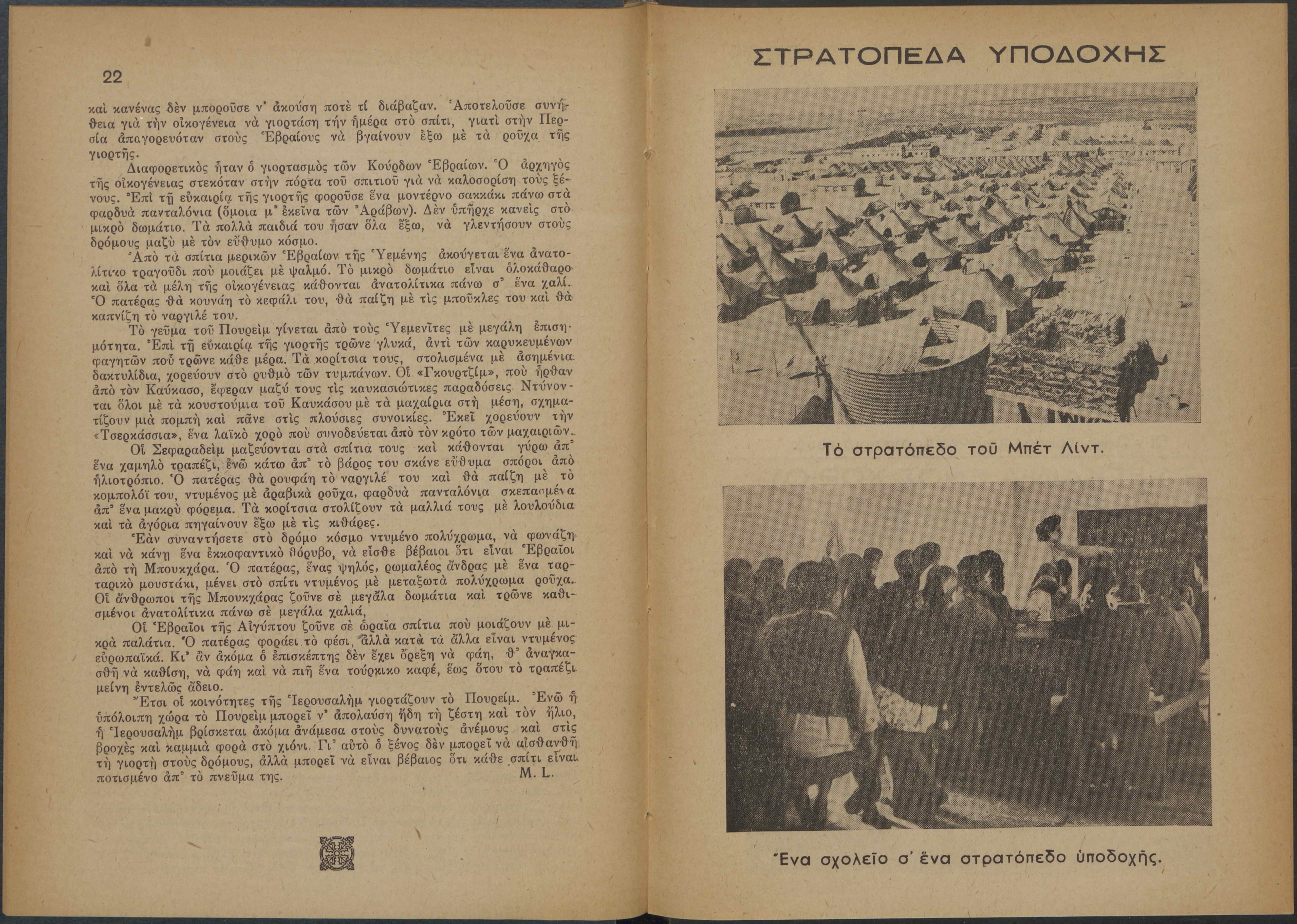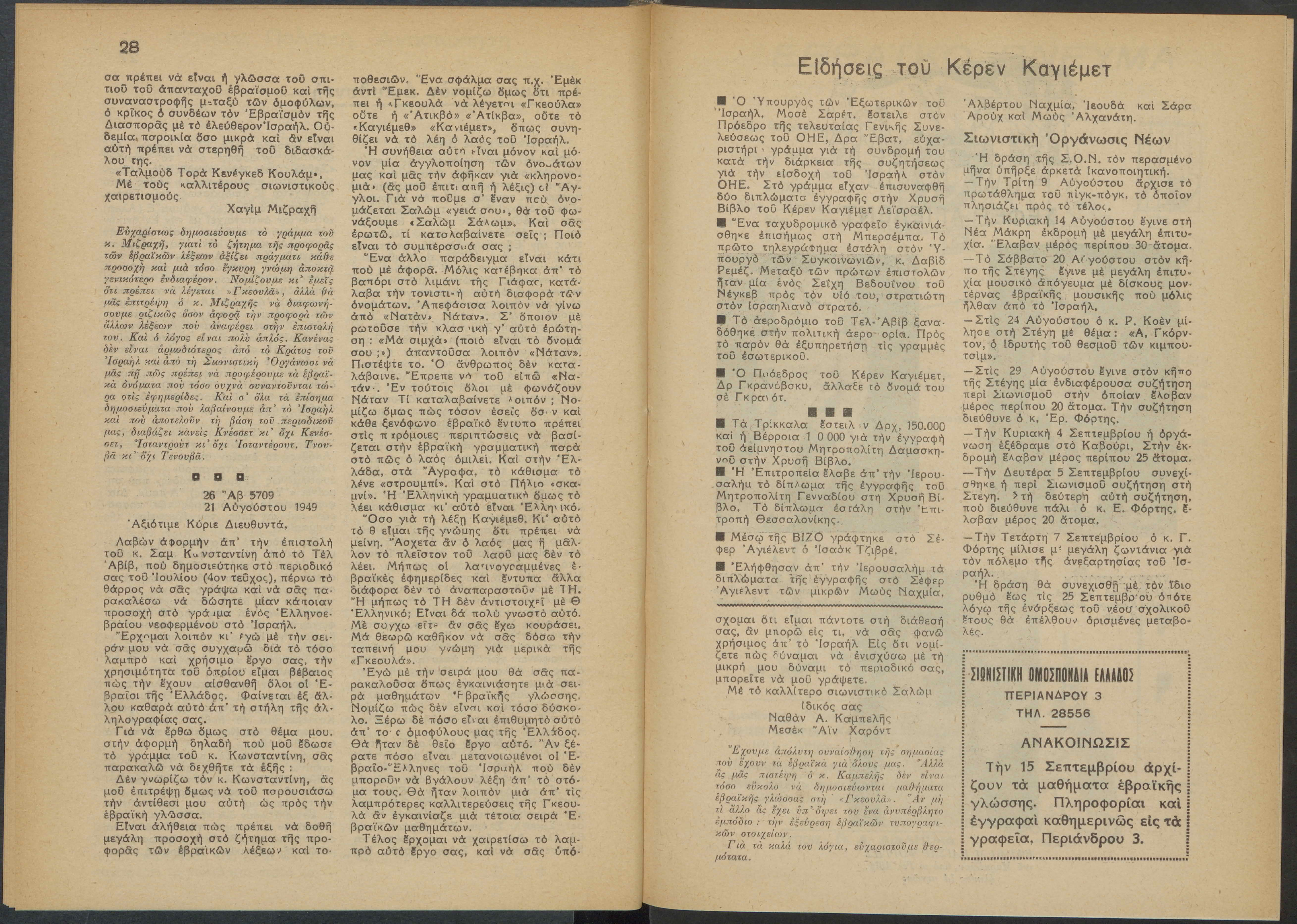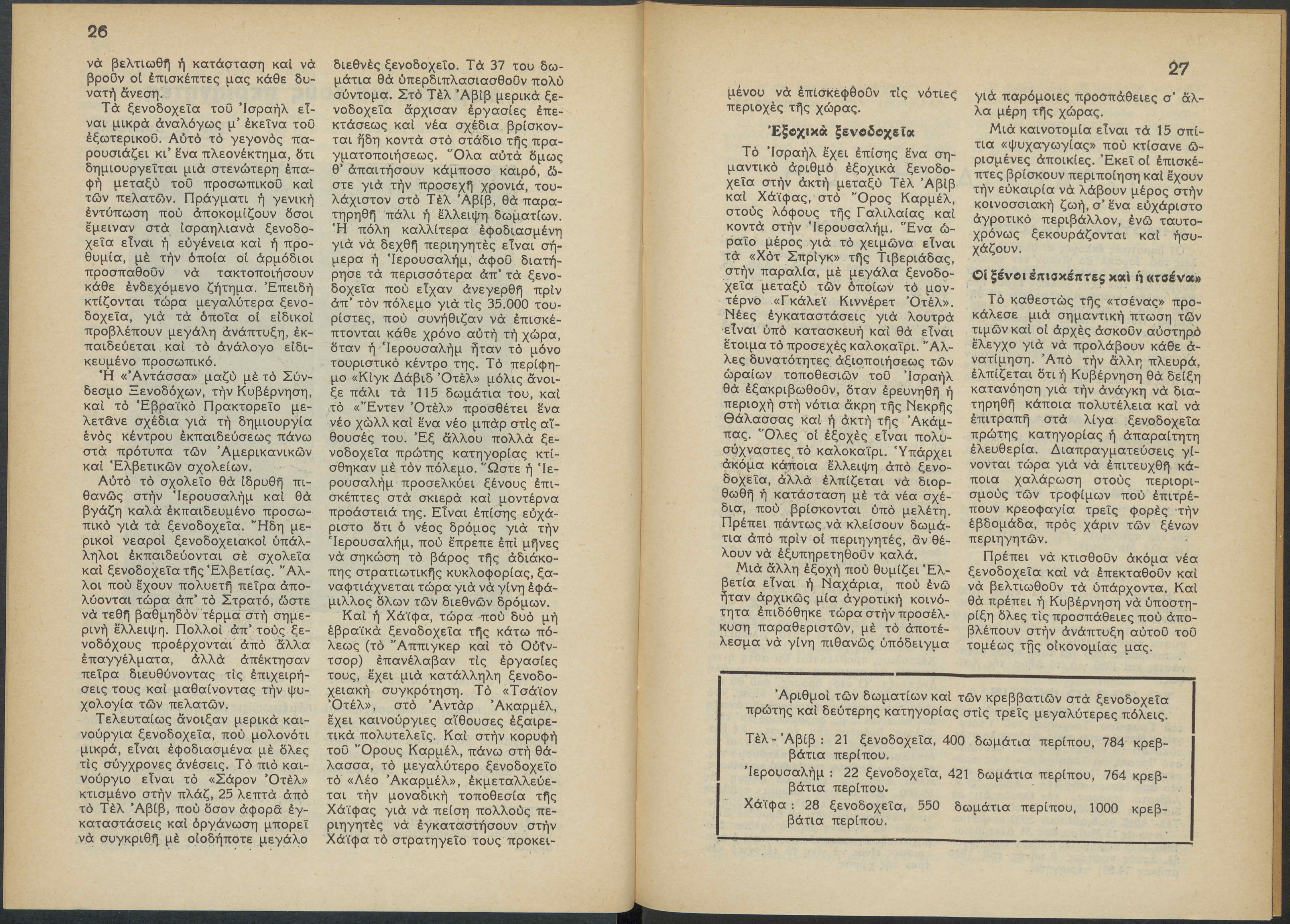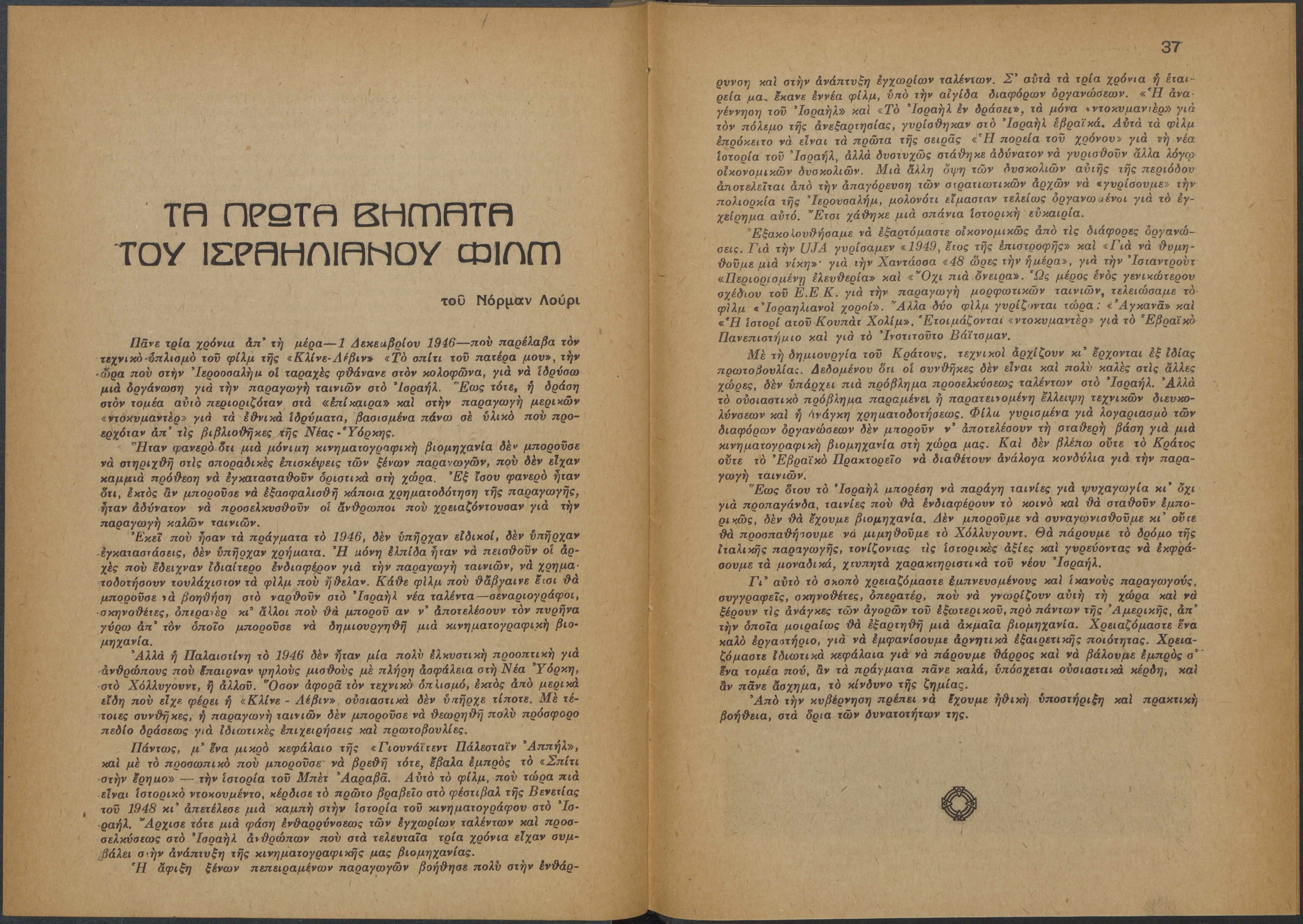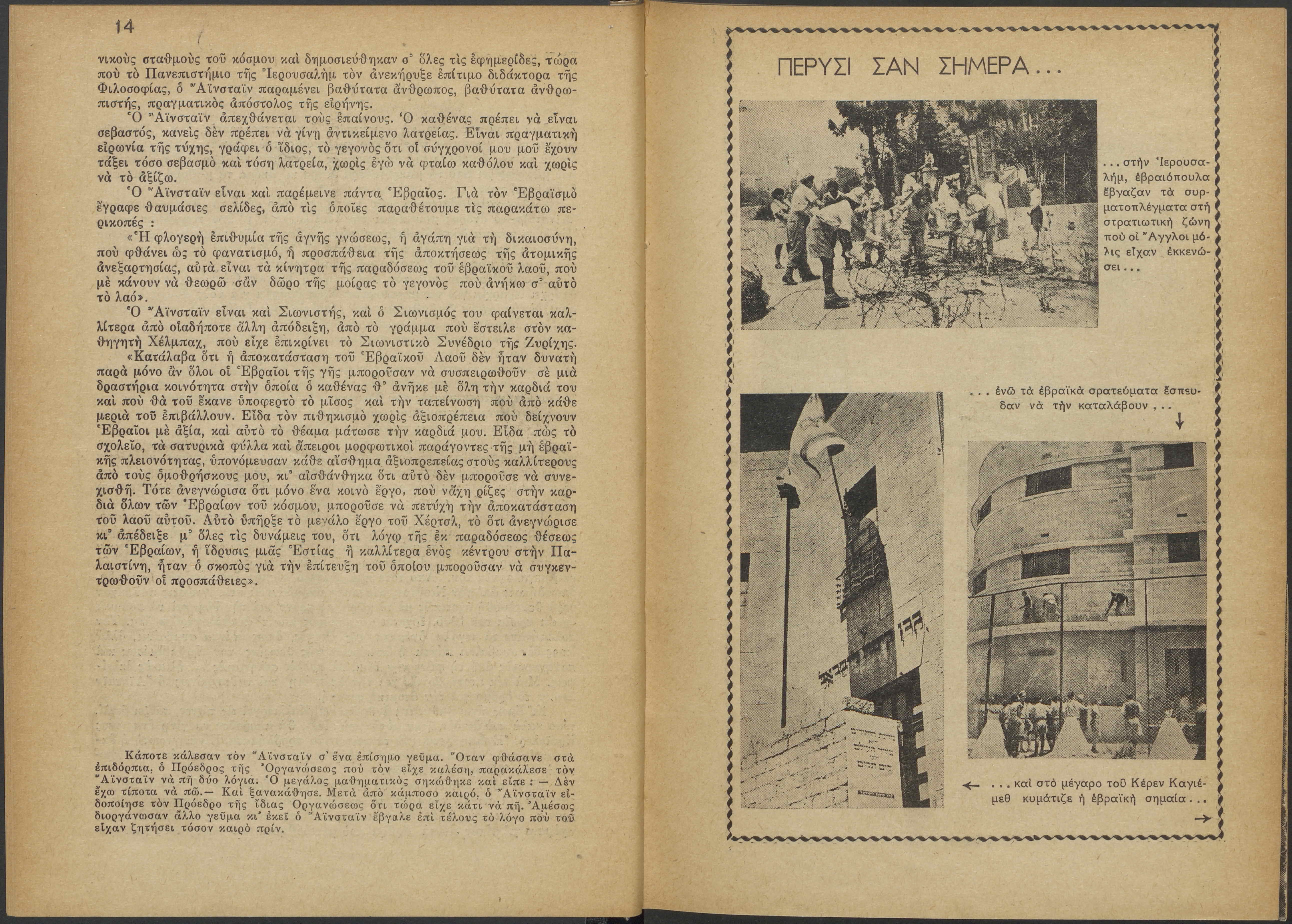 Monthly publication of Keren Kayemeth LeIsrael (Jewish National Fund/Εθνικό Εβραϊκό Κεφάλαιο), 12 issues bound in book form, 116 pages.