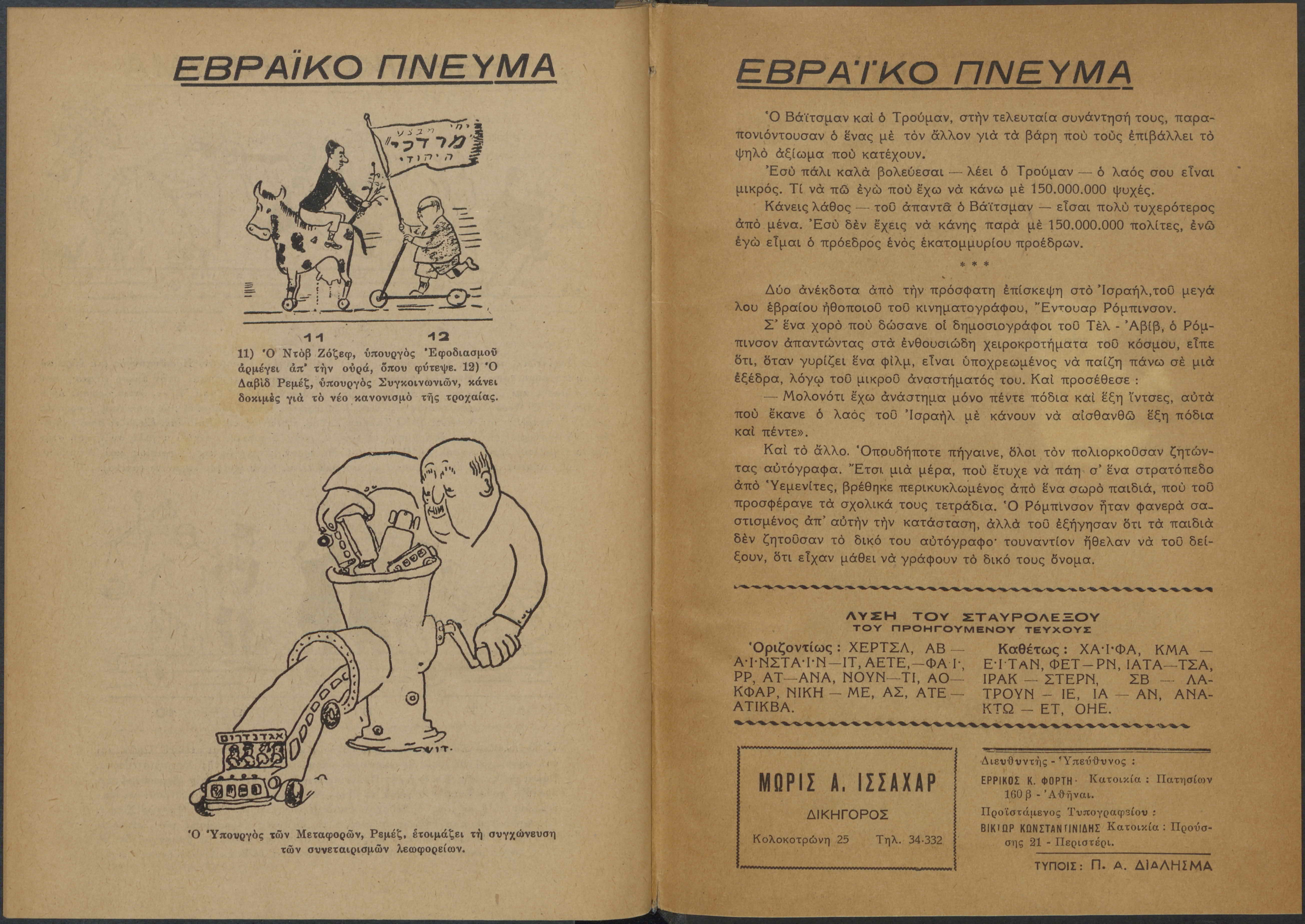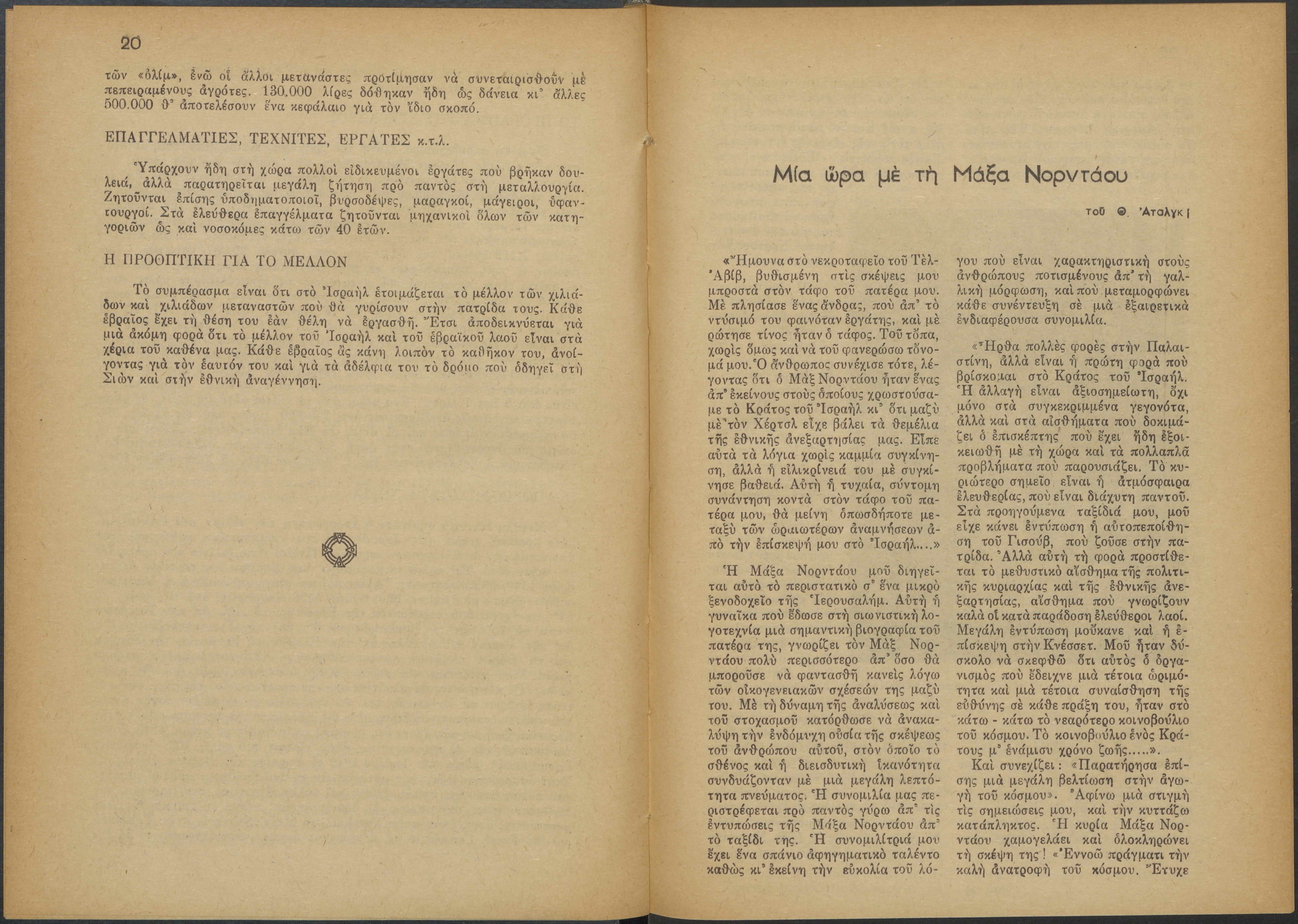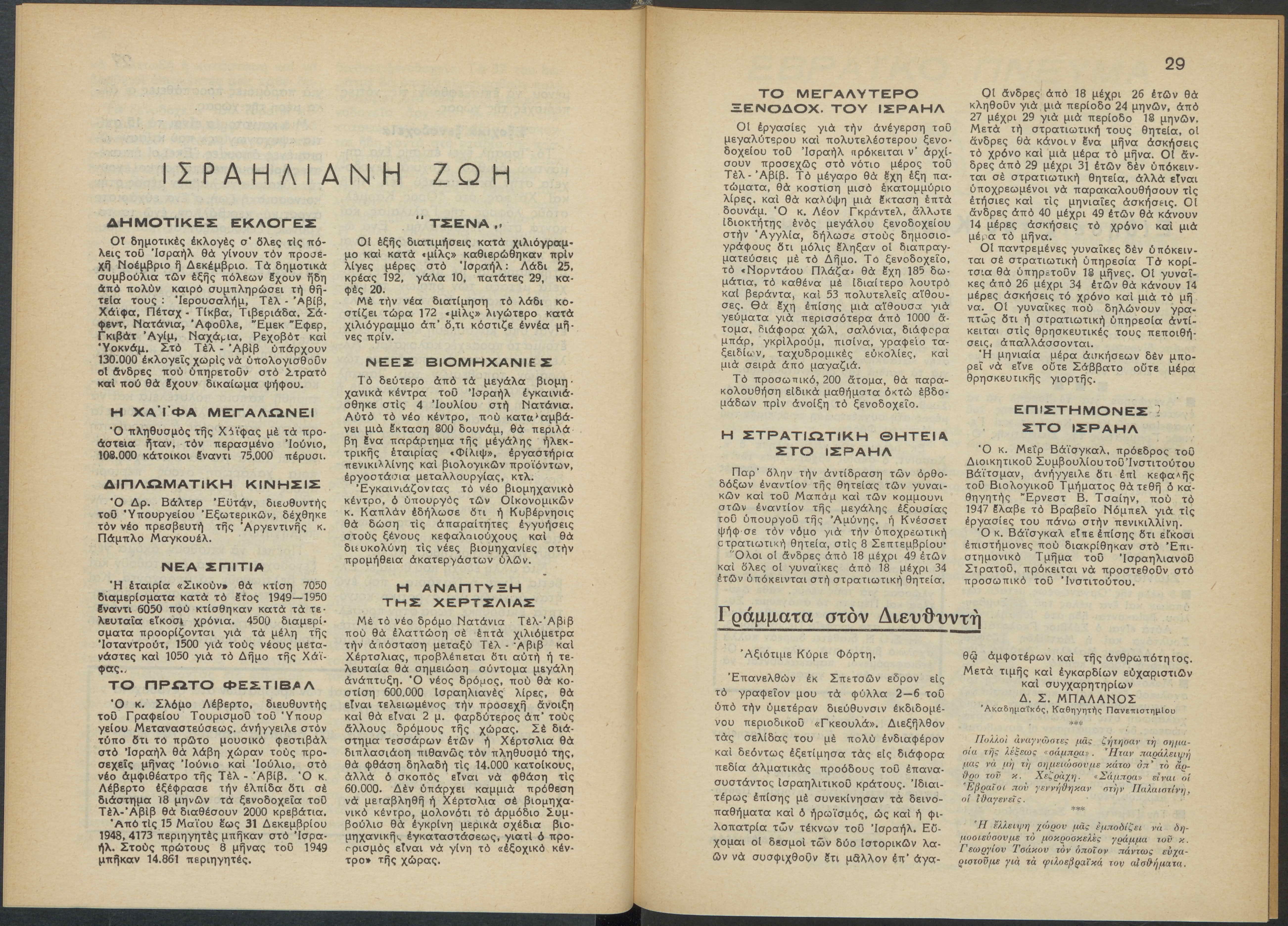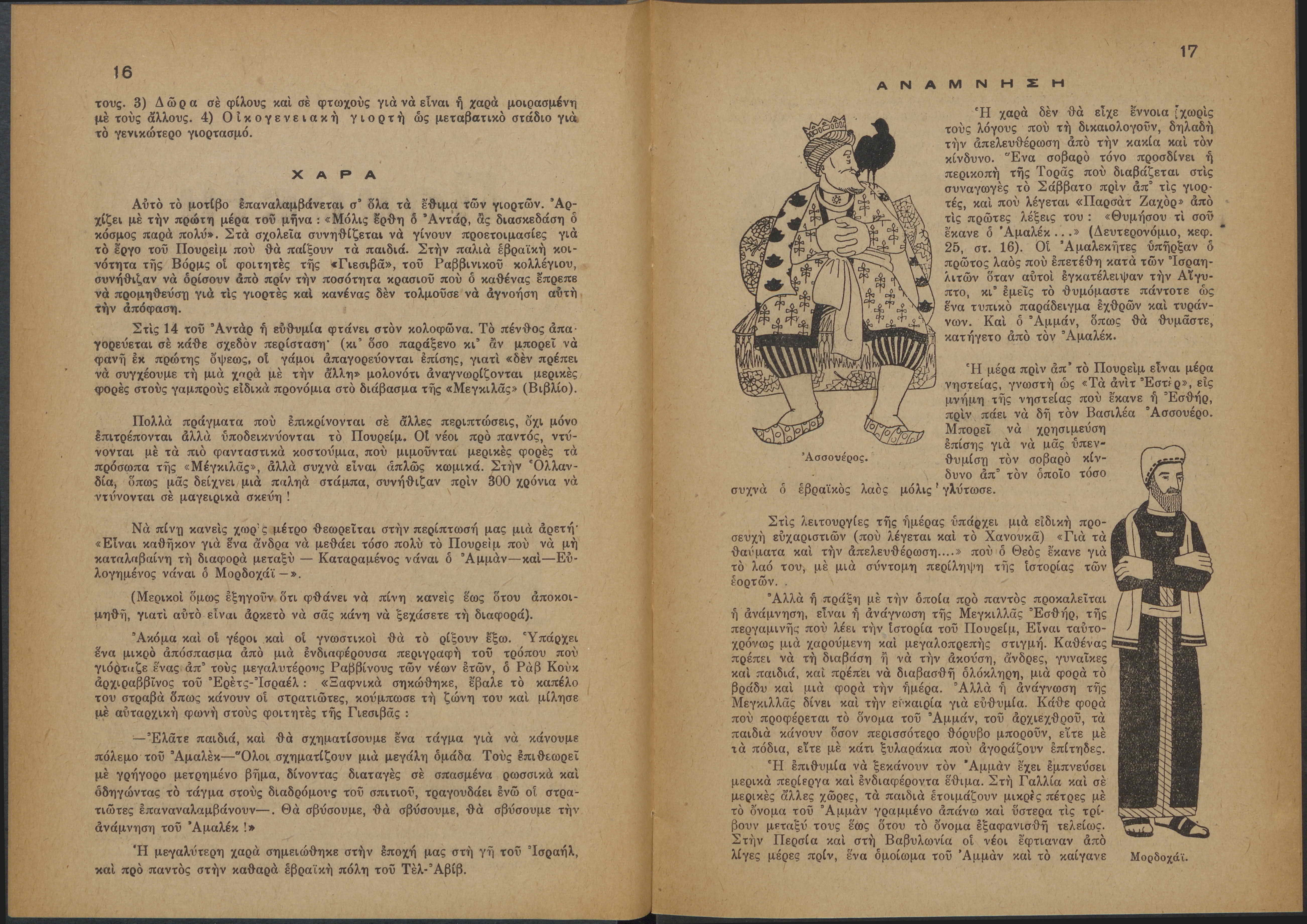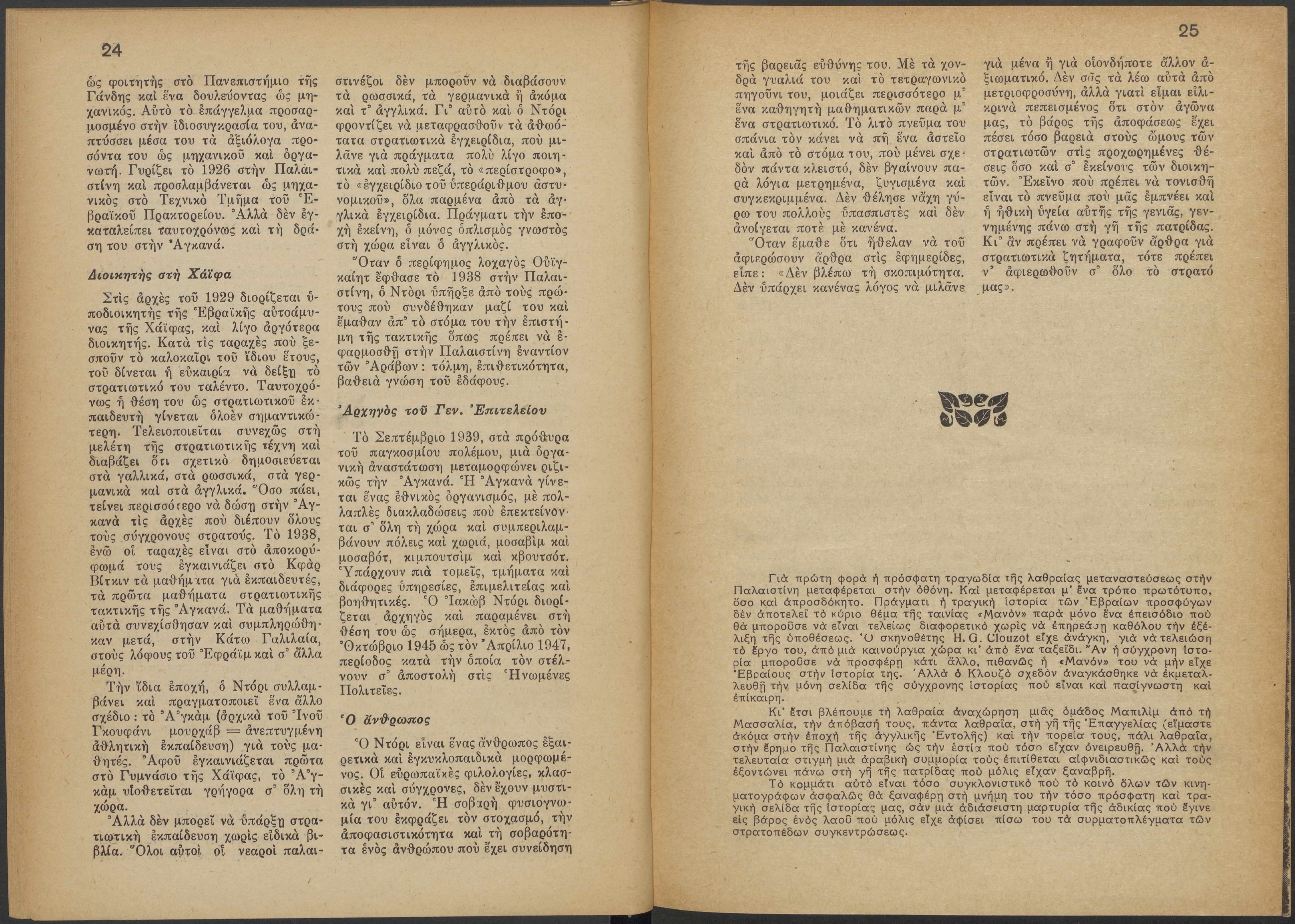 Monthly publication of Keren Kayemeth LeIsrael (Jewish National Fund/Εθνικό Εβραϊκό Κεφάλαιο), 12 issues bound in book form, 116 pages.