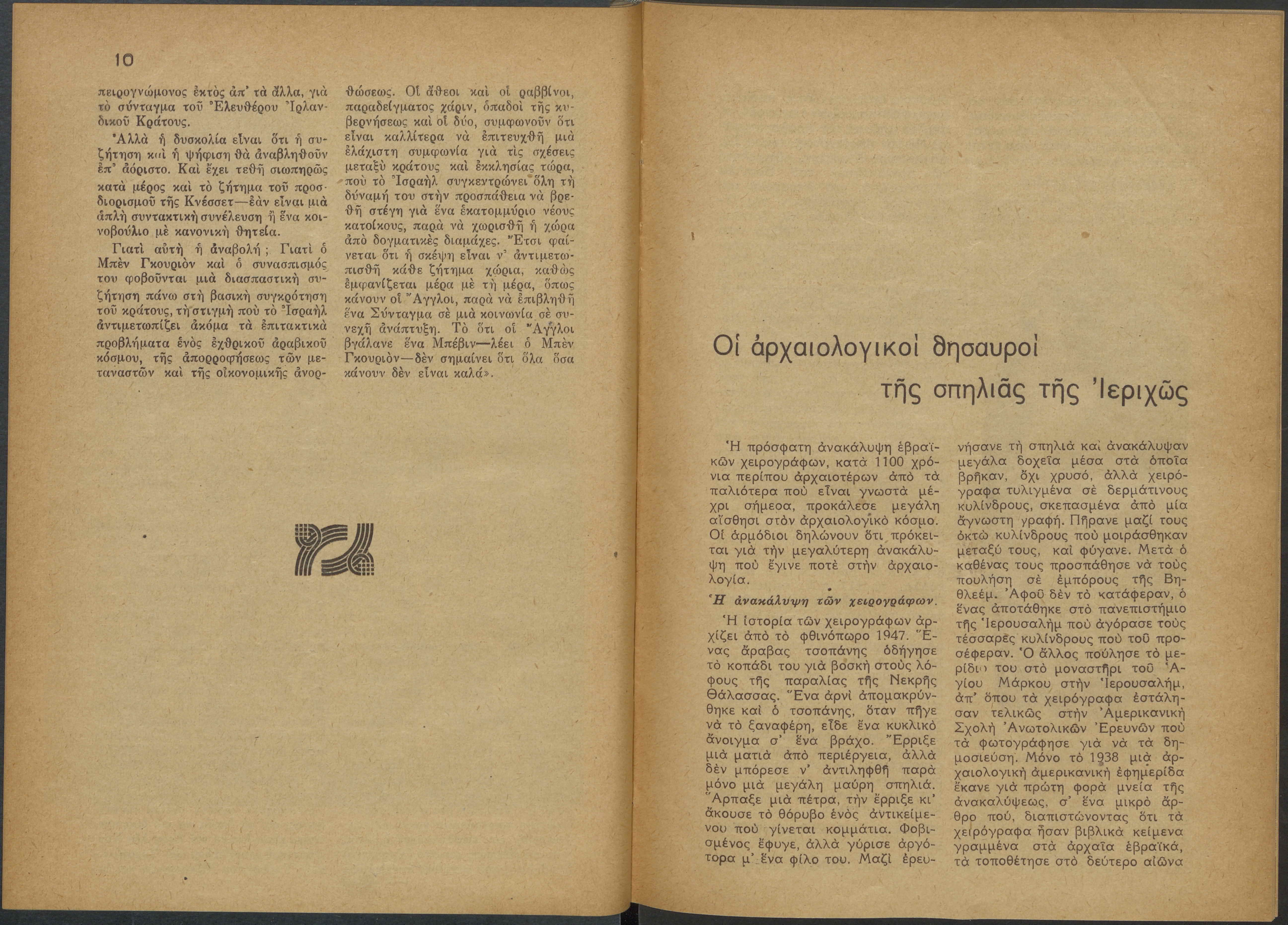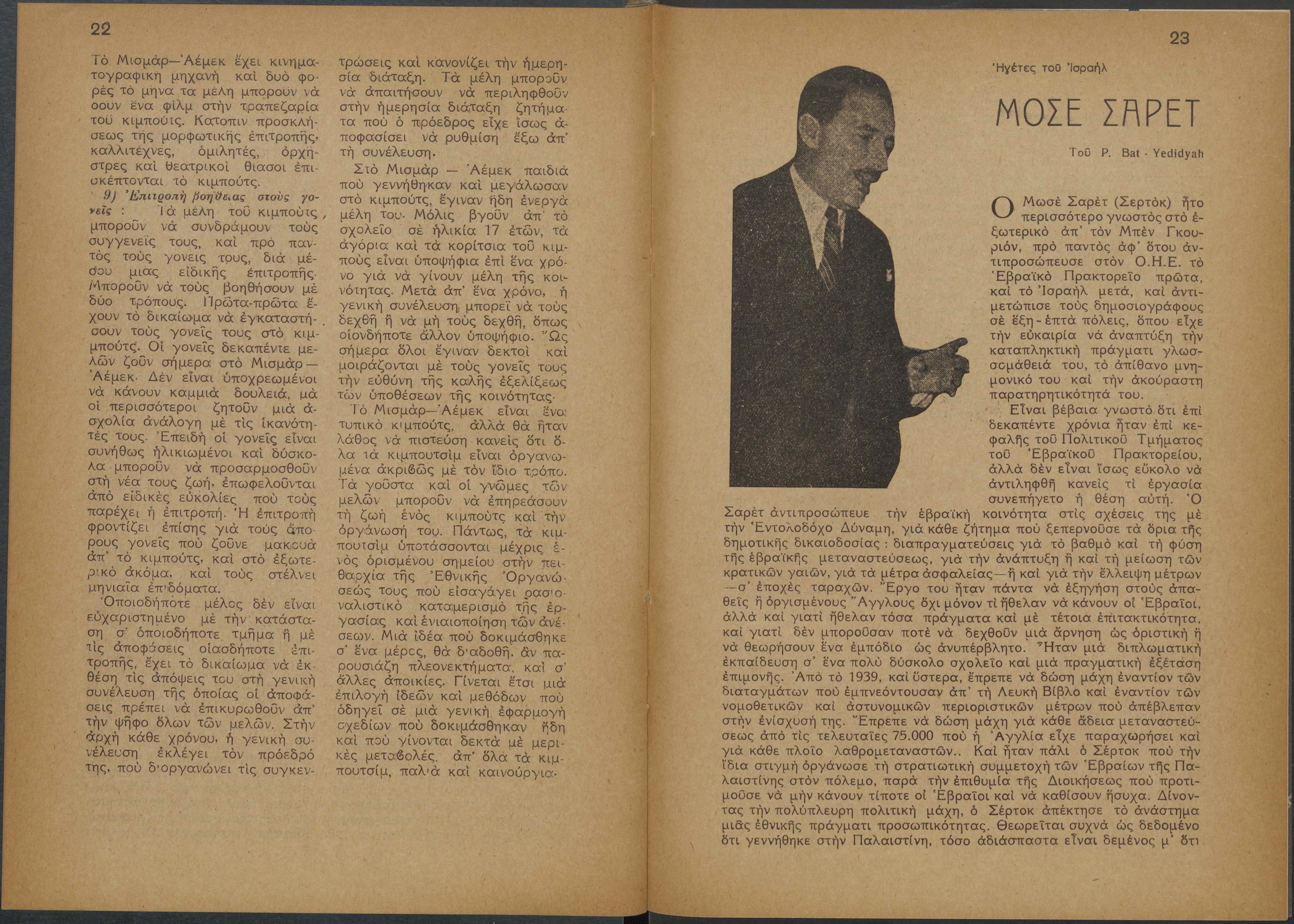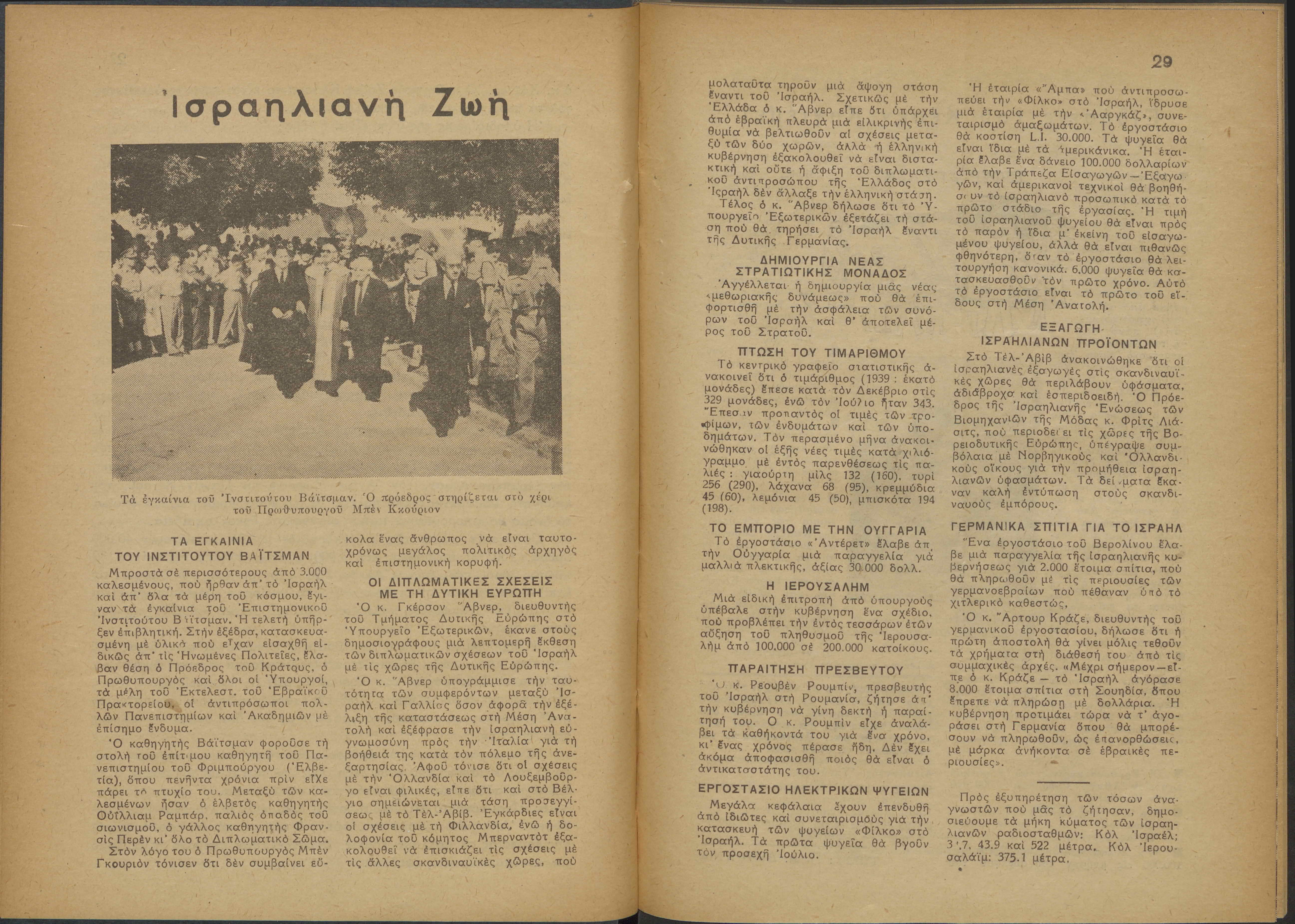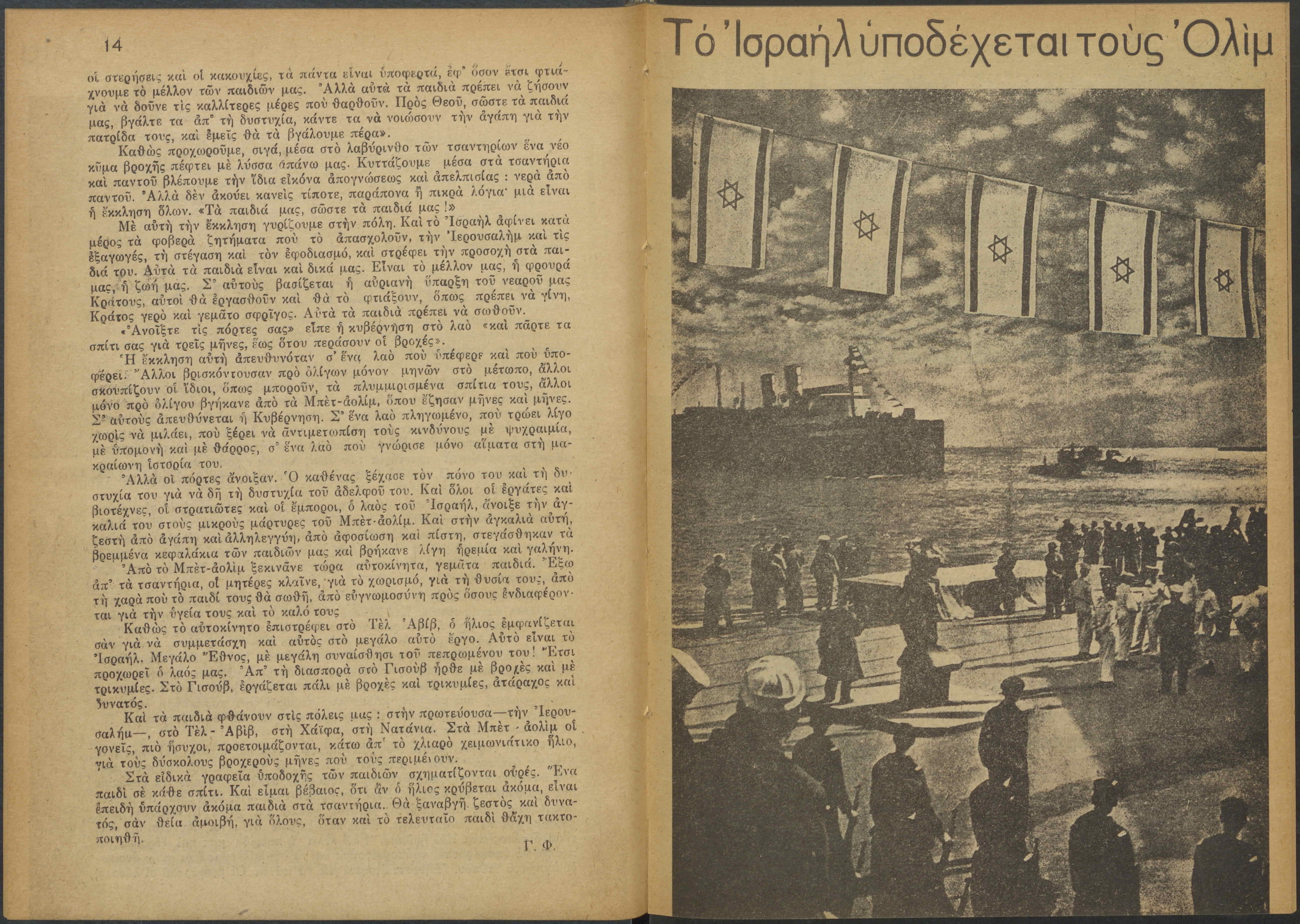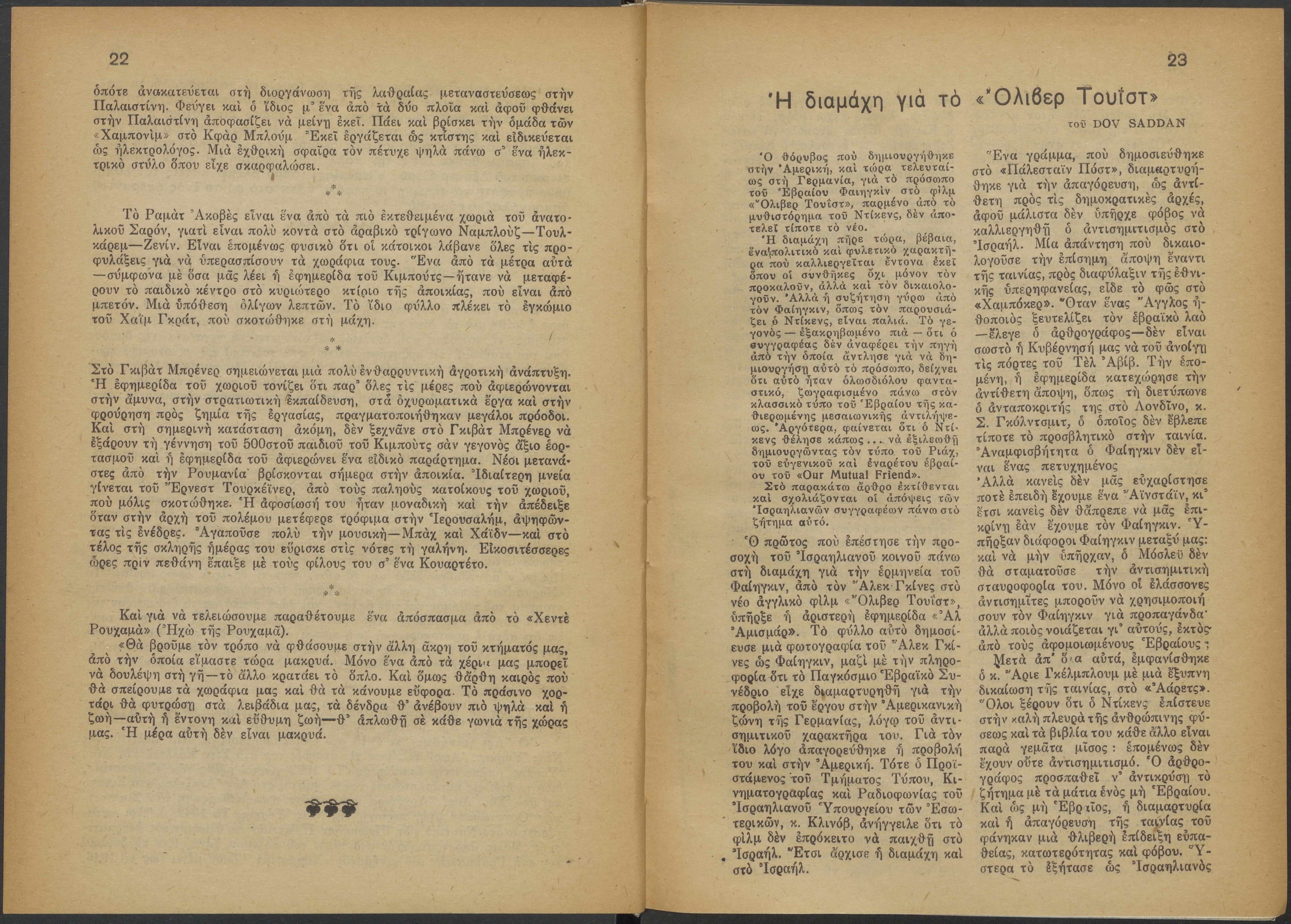 Monthly publication of Keren Kayemeth LeIsrael (Jewish National Fund/Εθνικό Εβραϊκό Κεφάλαιο), 12 issues bound in book form, 116 pages.