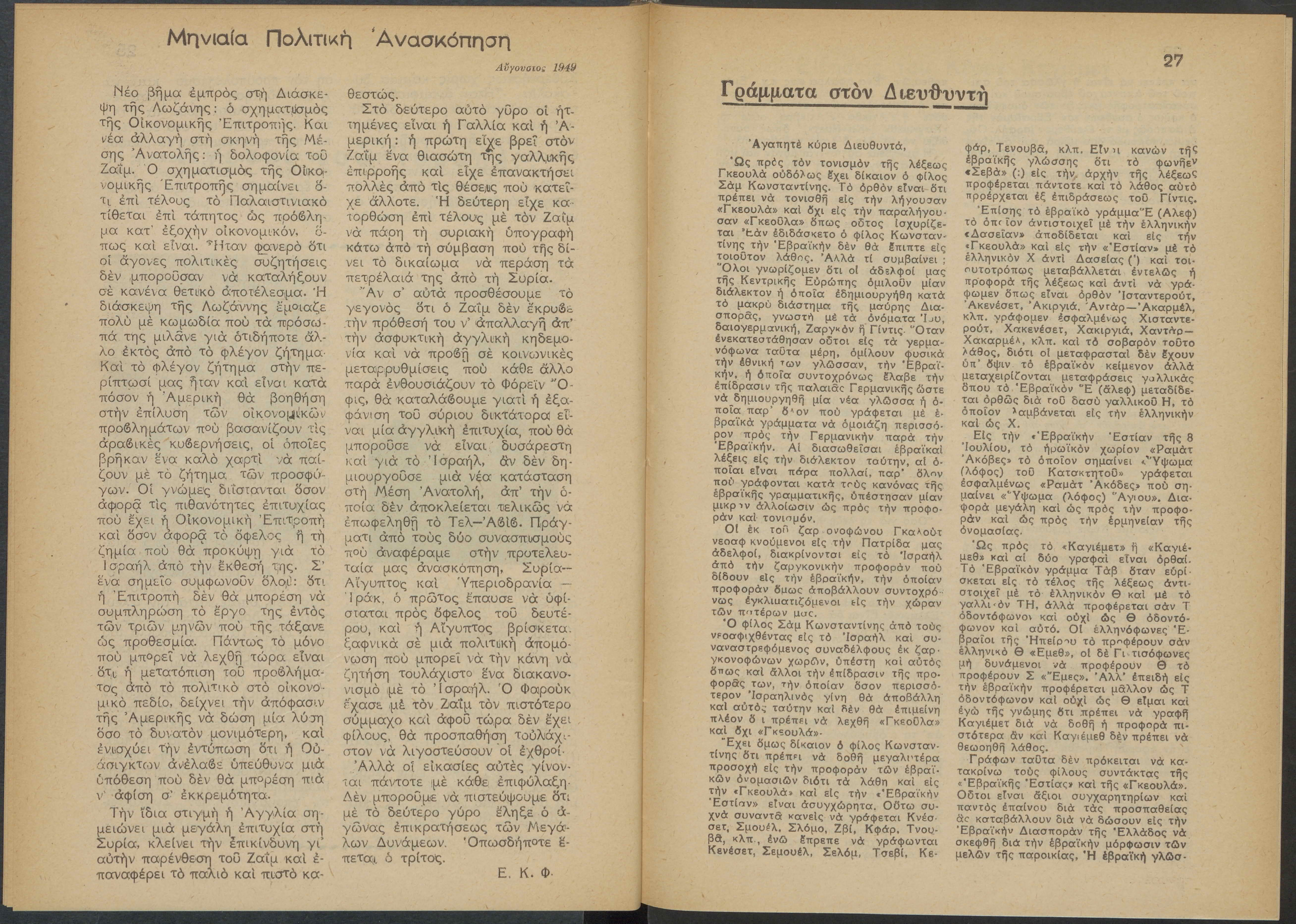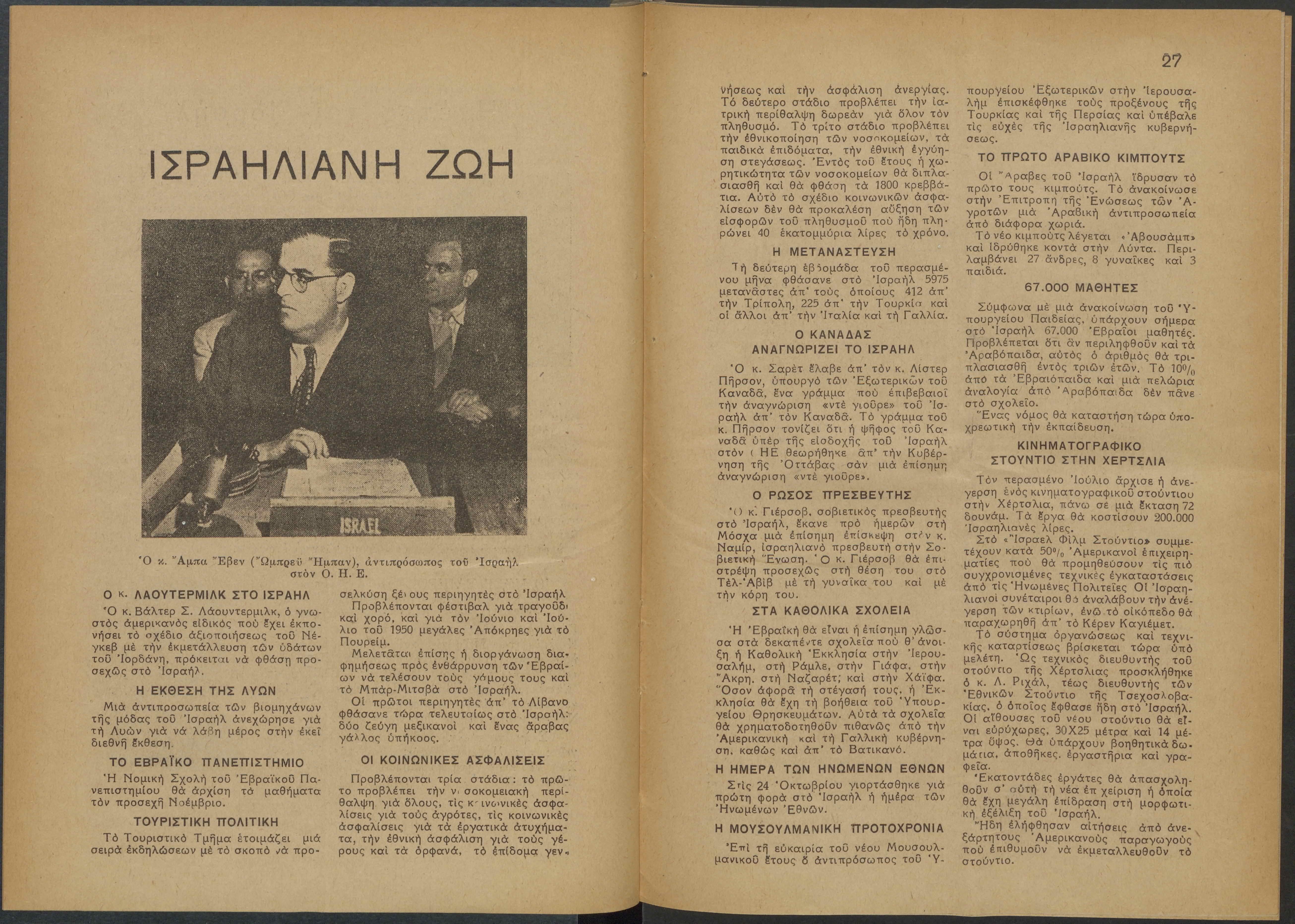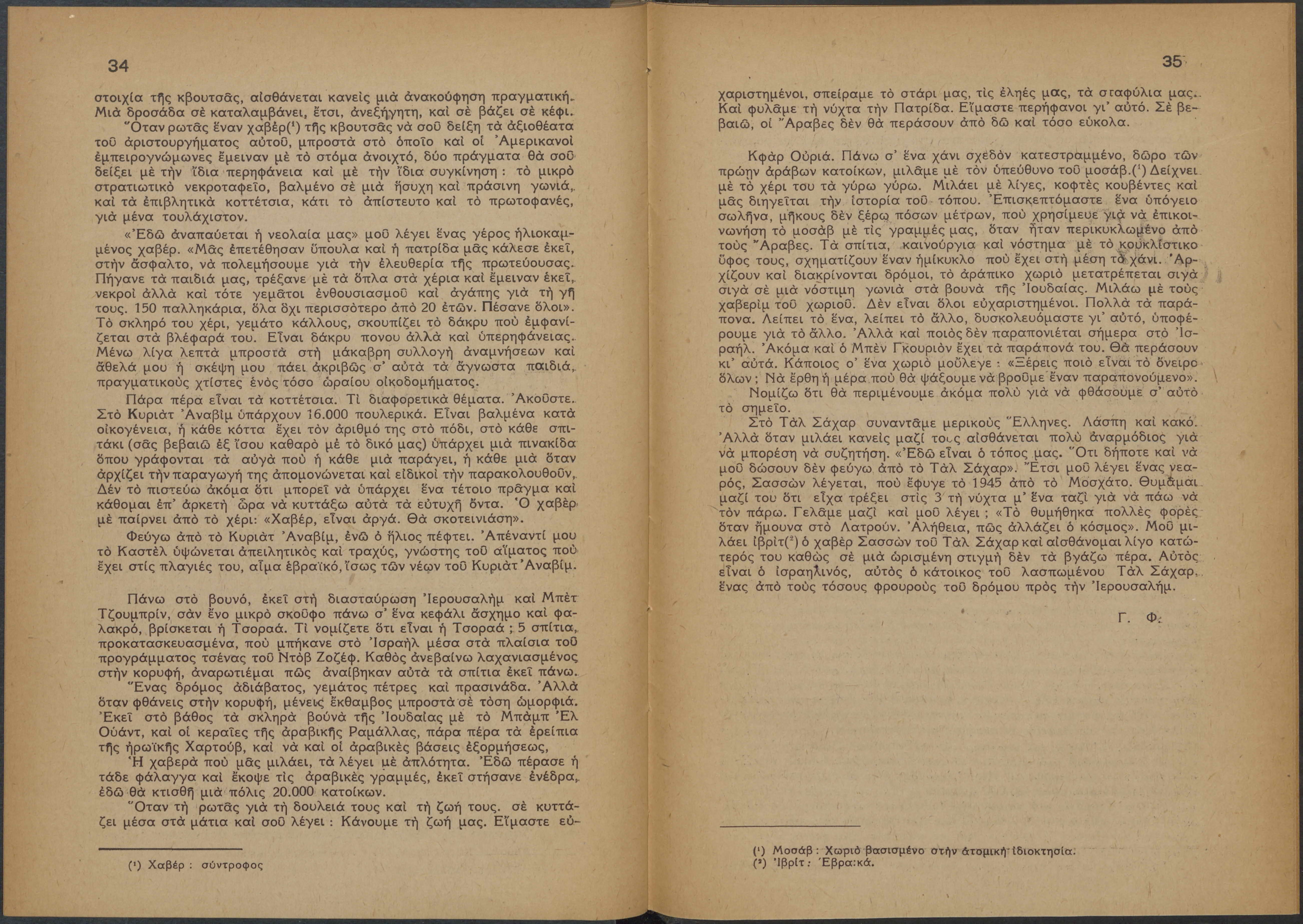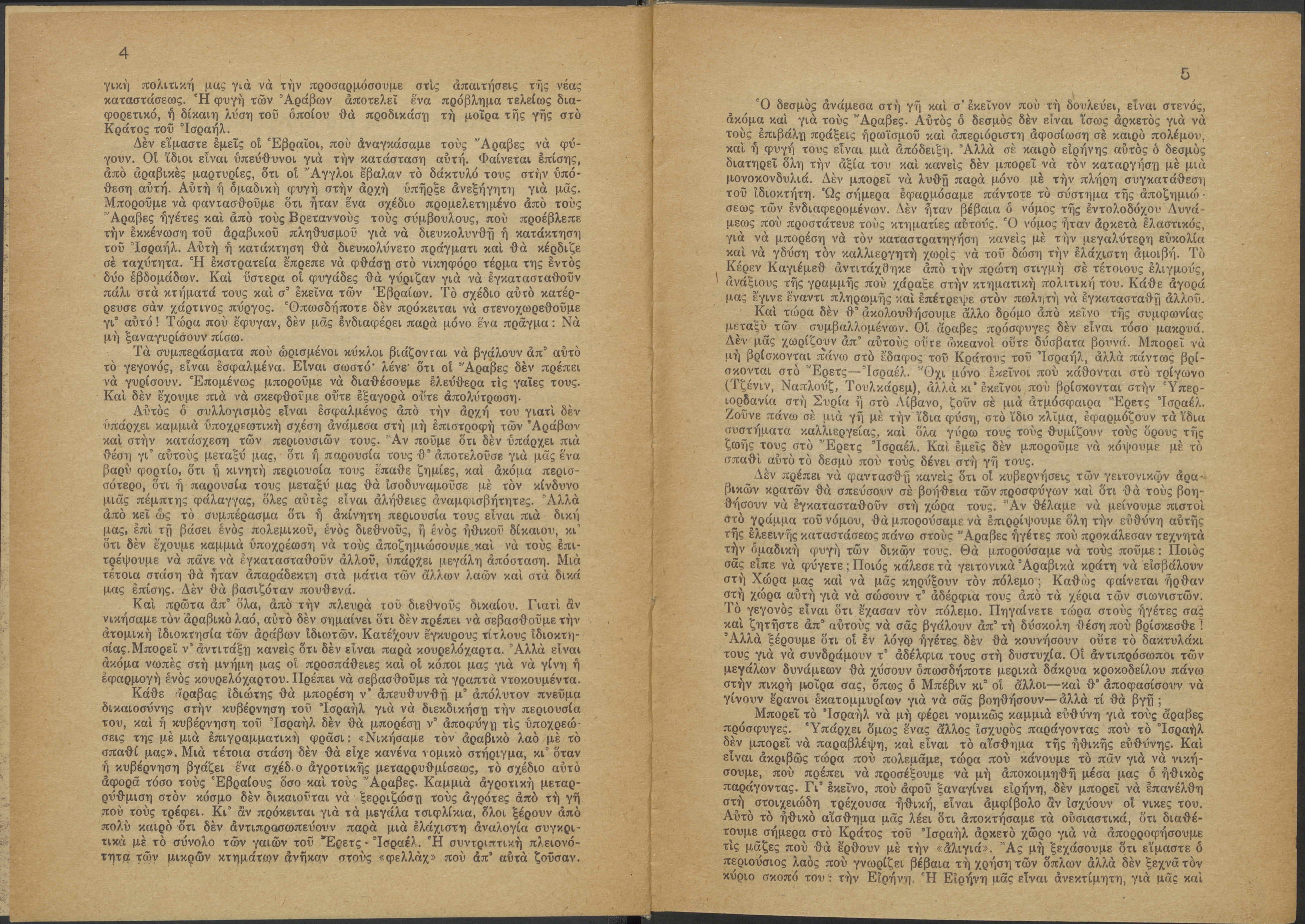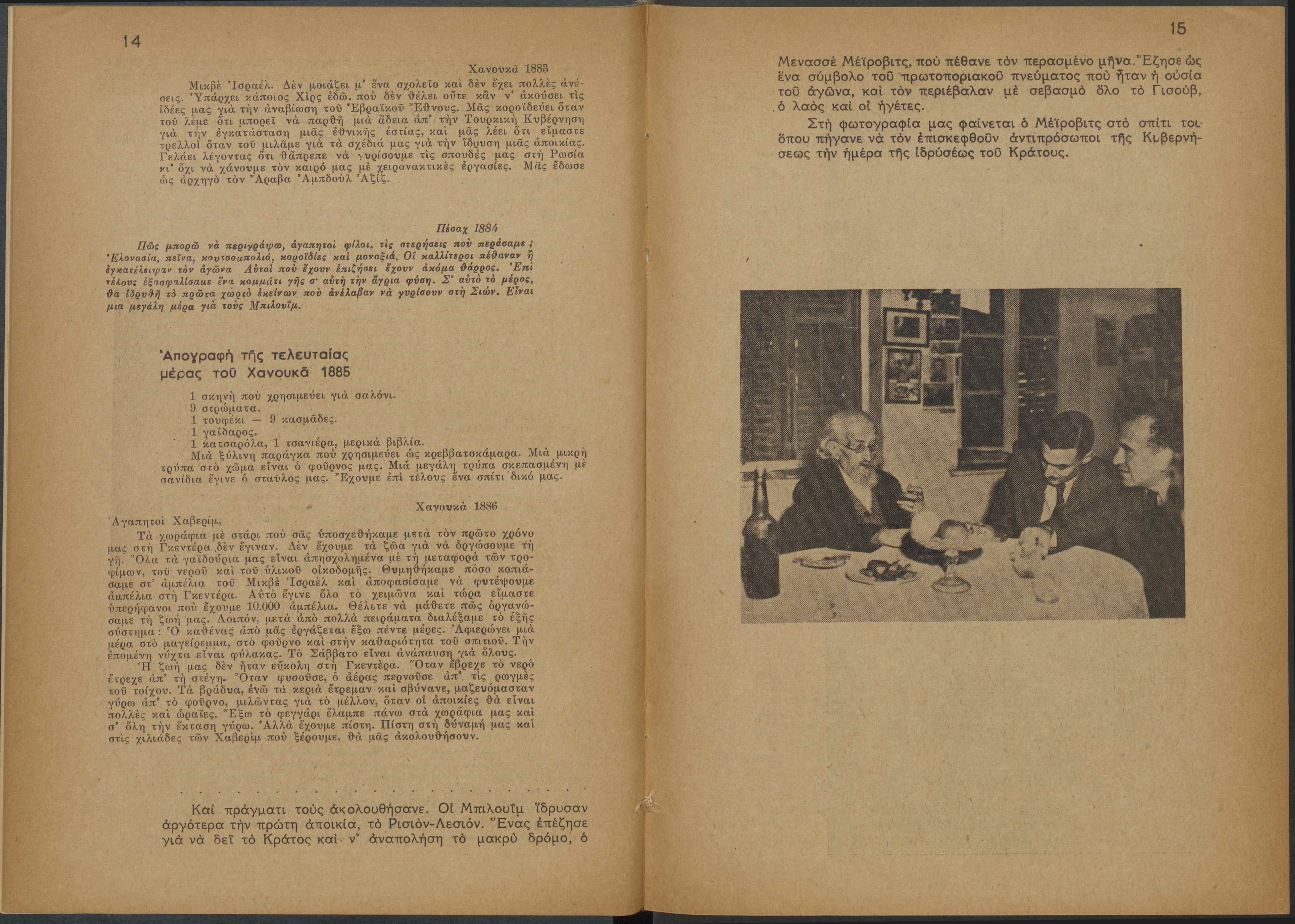 Monthly publication of Keren Kayemeth LeIsrael (Jewish National Fund/Εθνικό Εβραϊκό Κεφάλαιο), 12 issues bound in book form, 116 pages.