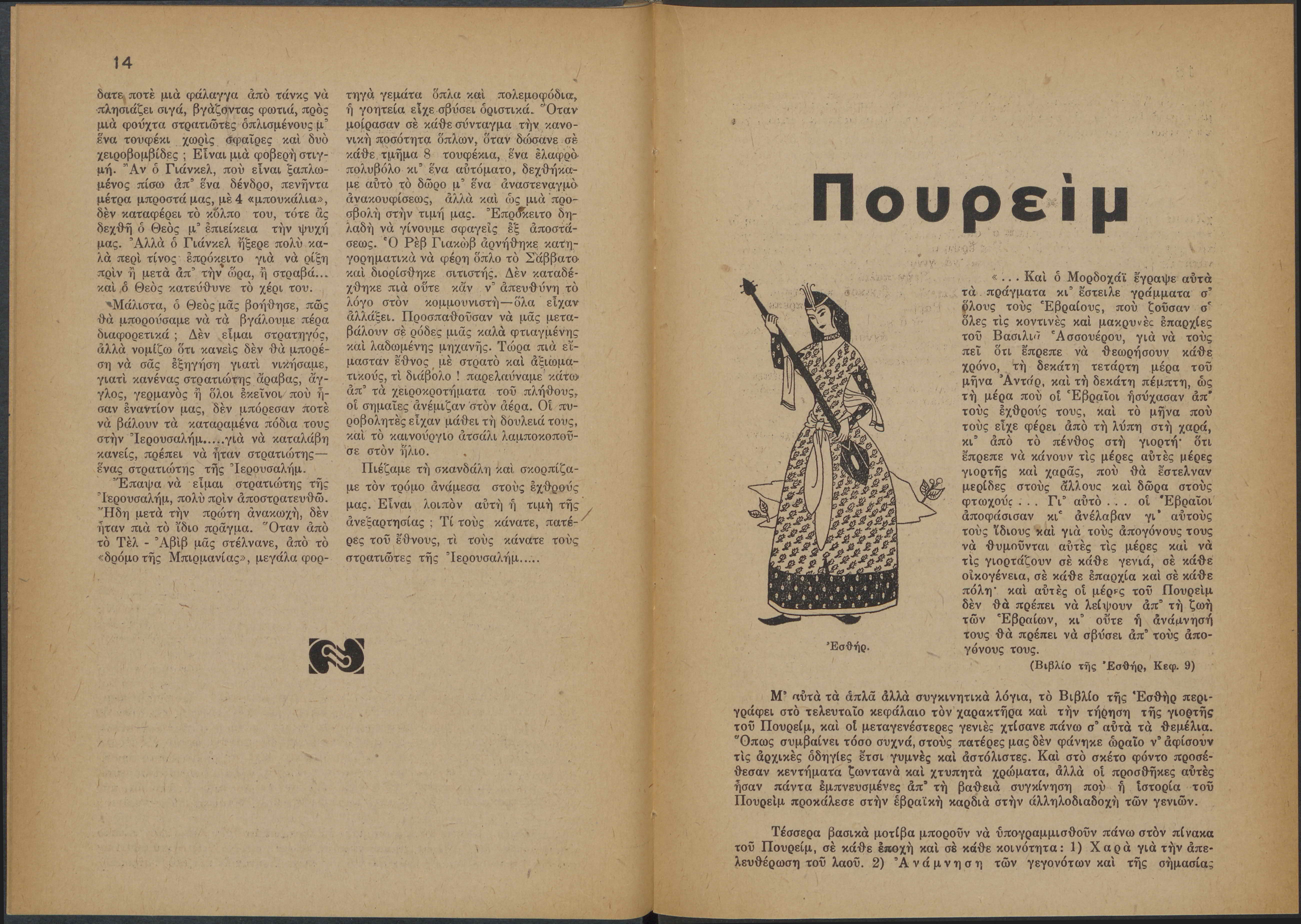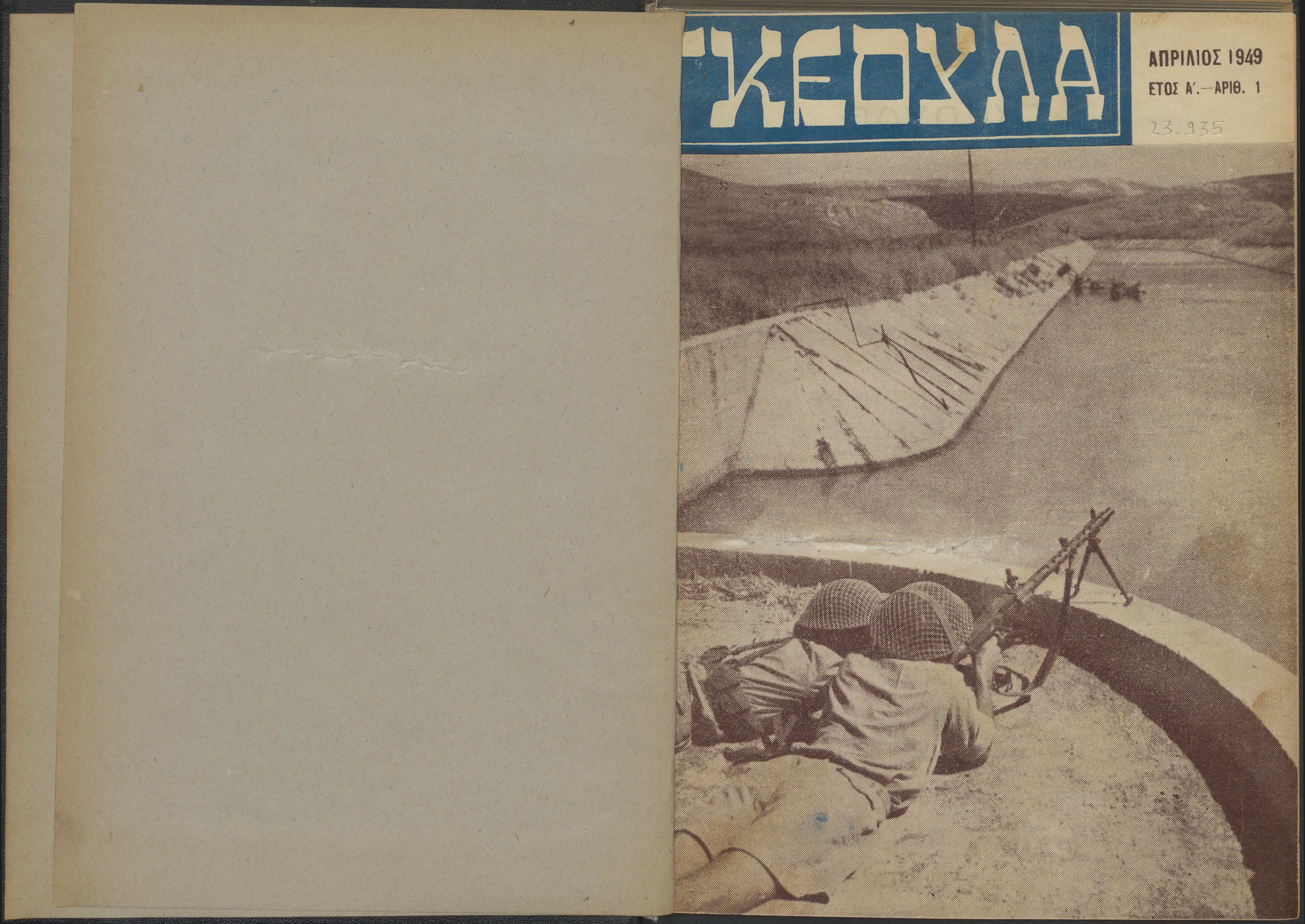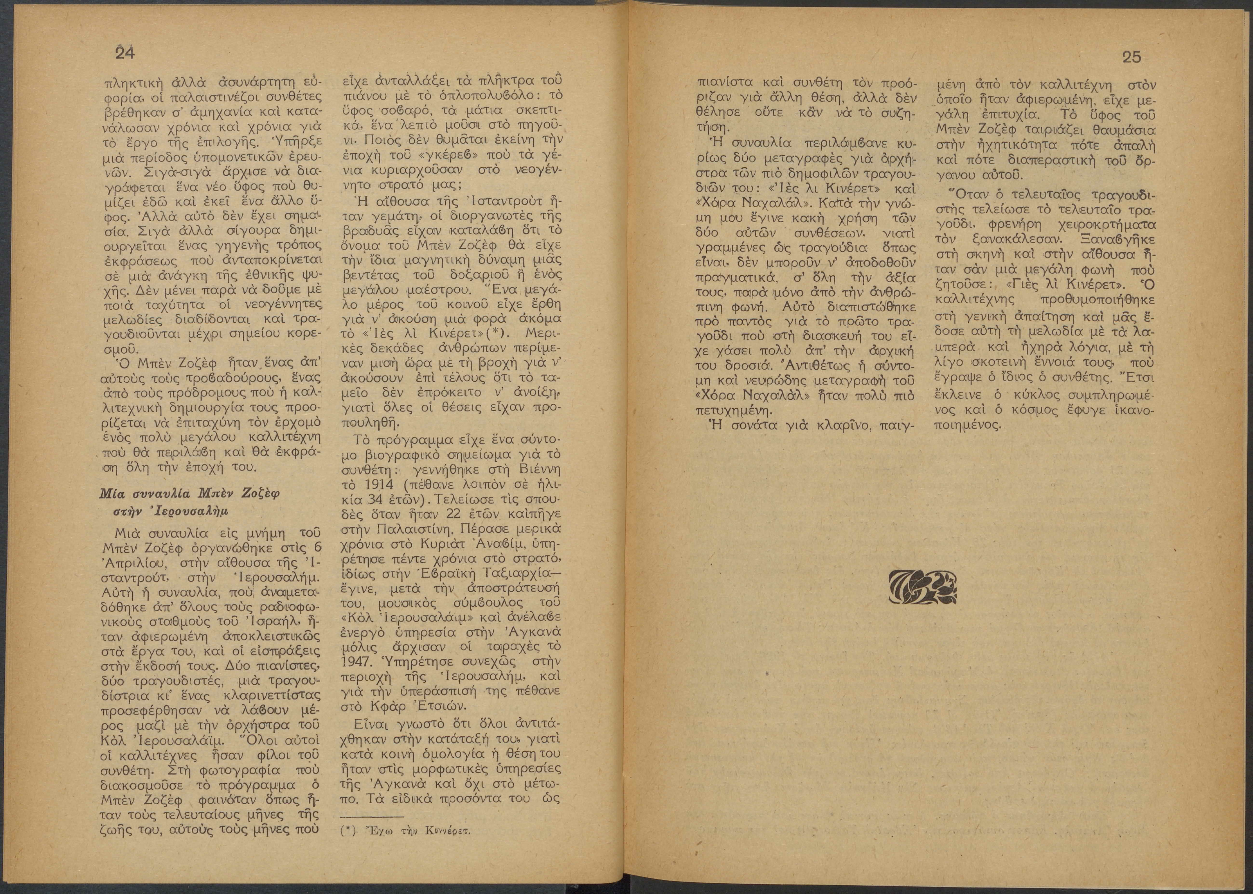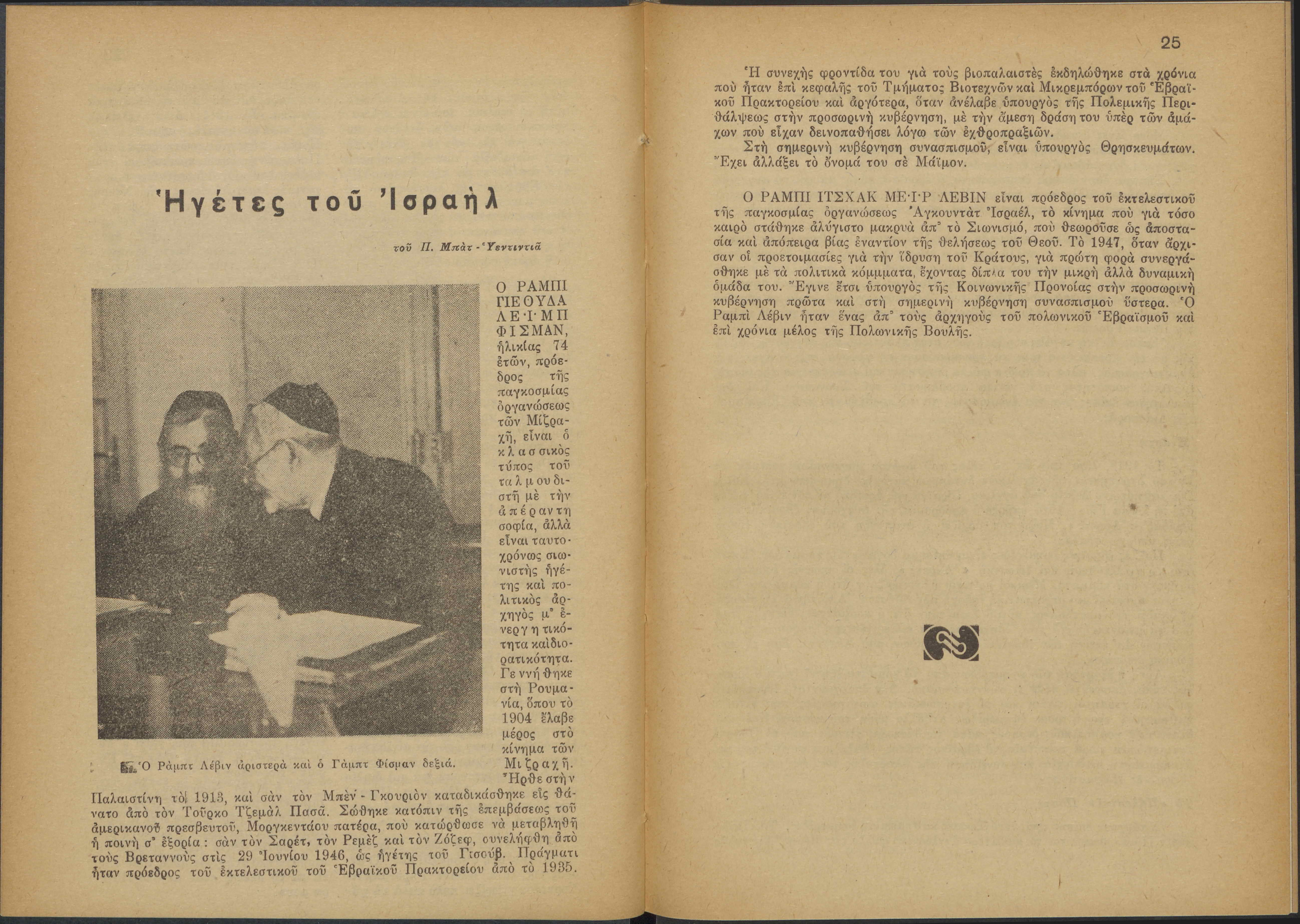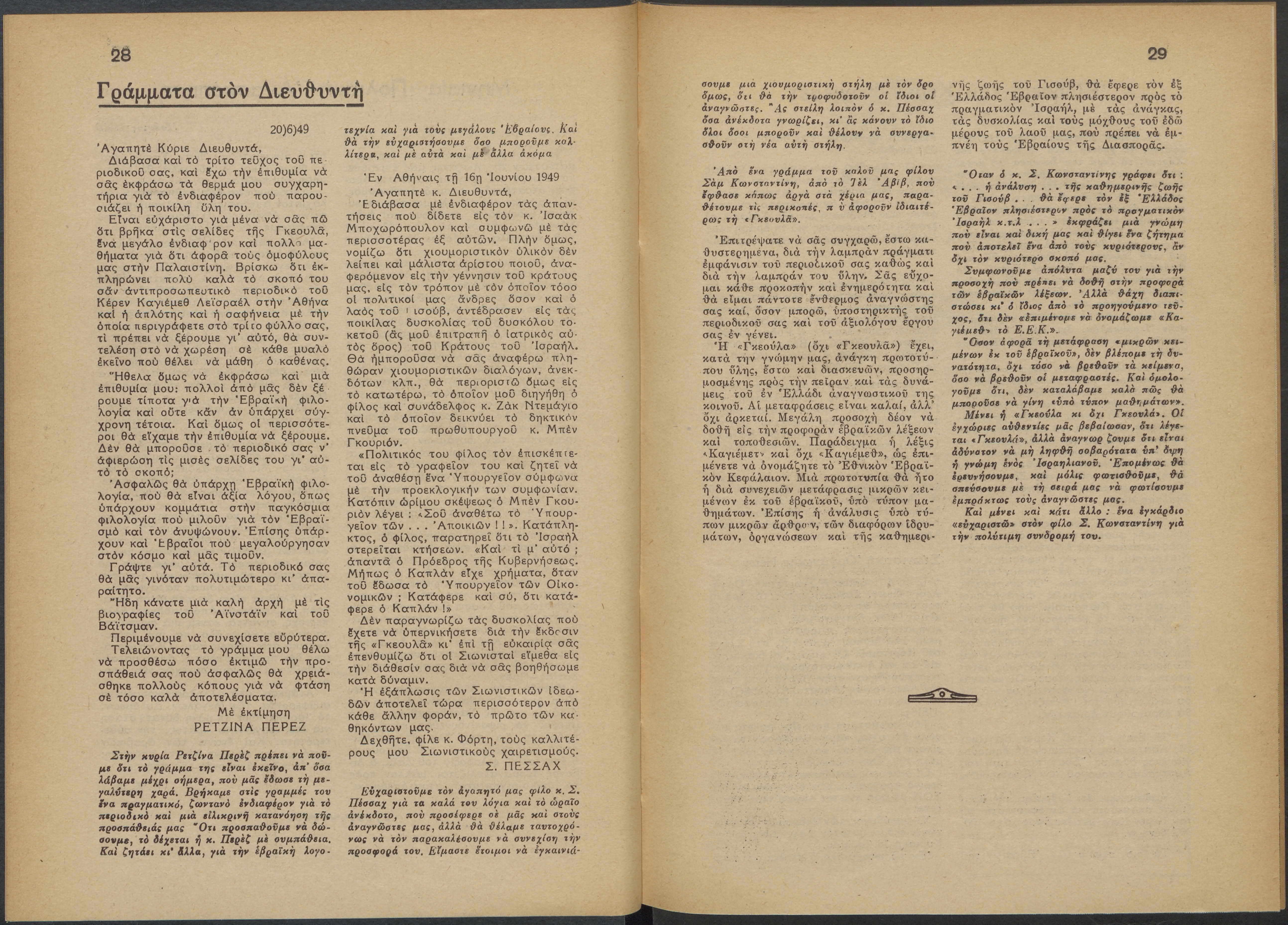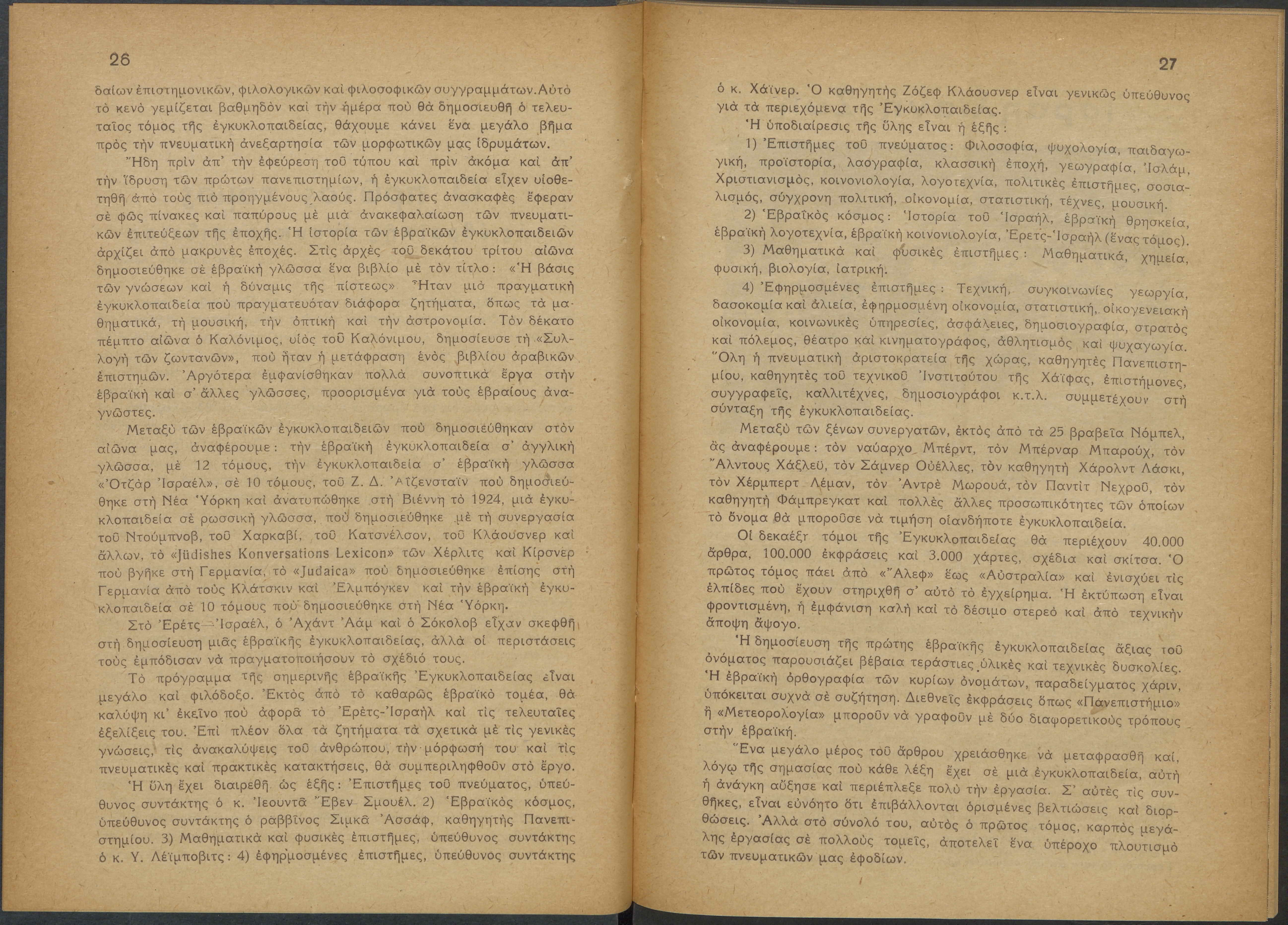 Monthly publication of Keren Kayemeth LeIsrael (Jewish National Fund/Εθνικό Εβραϊκό Κεφάλαιο), 12 issues bound in book form, 116 pages.