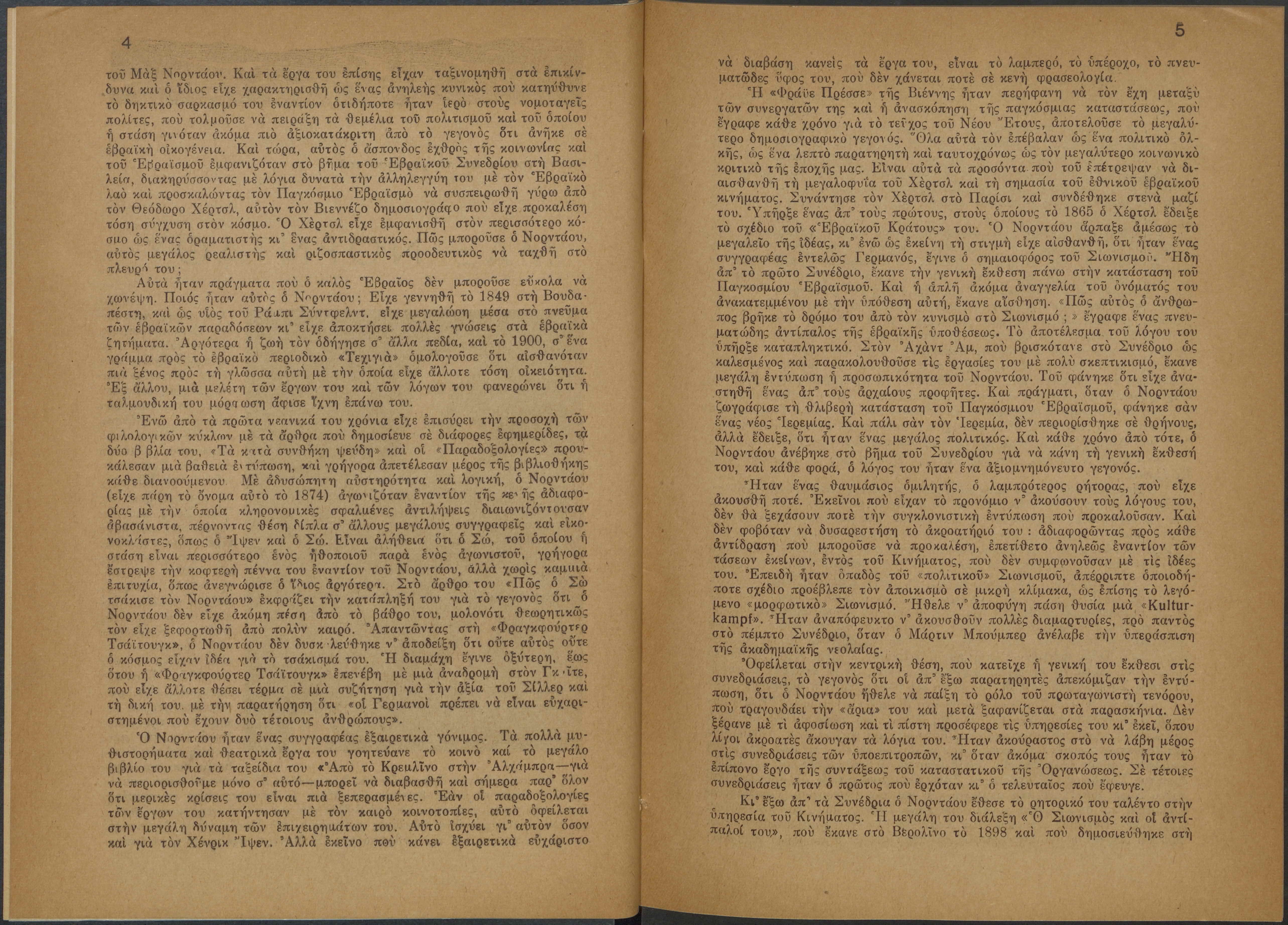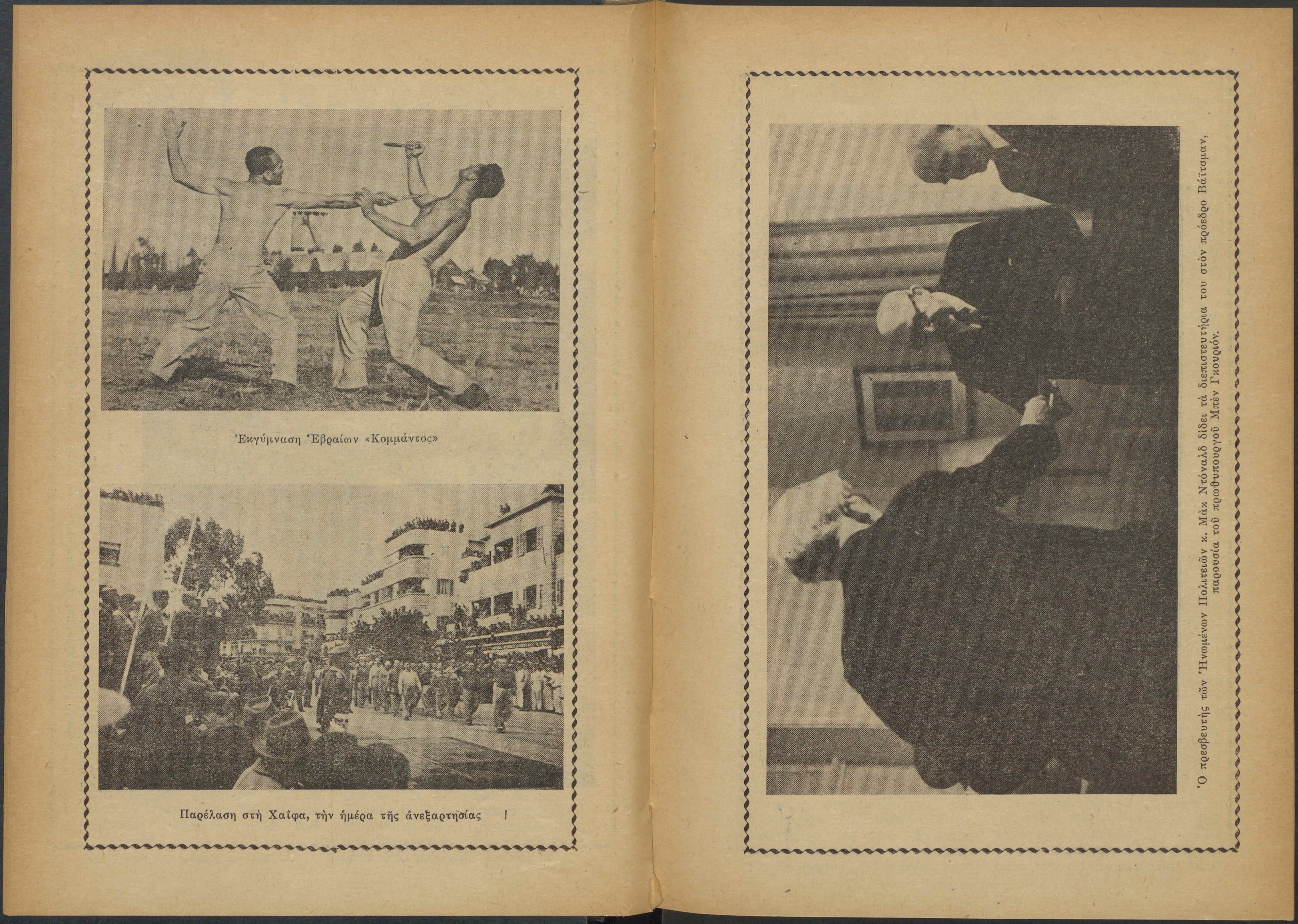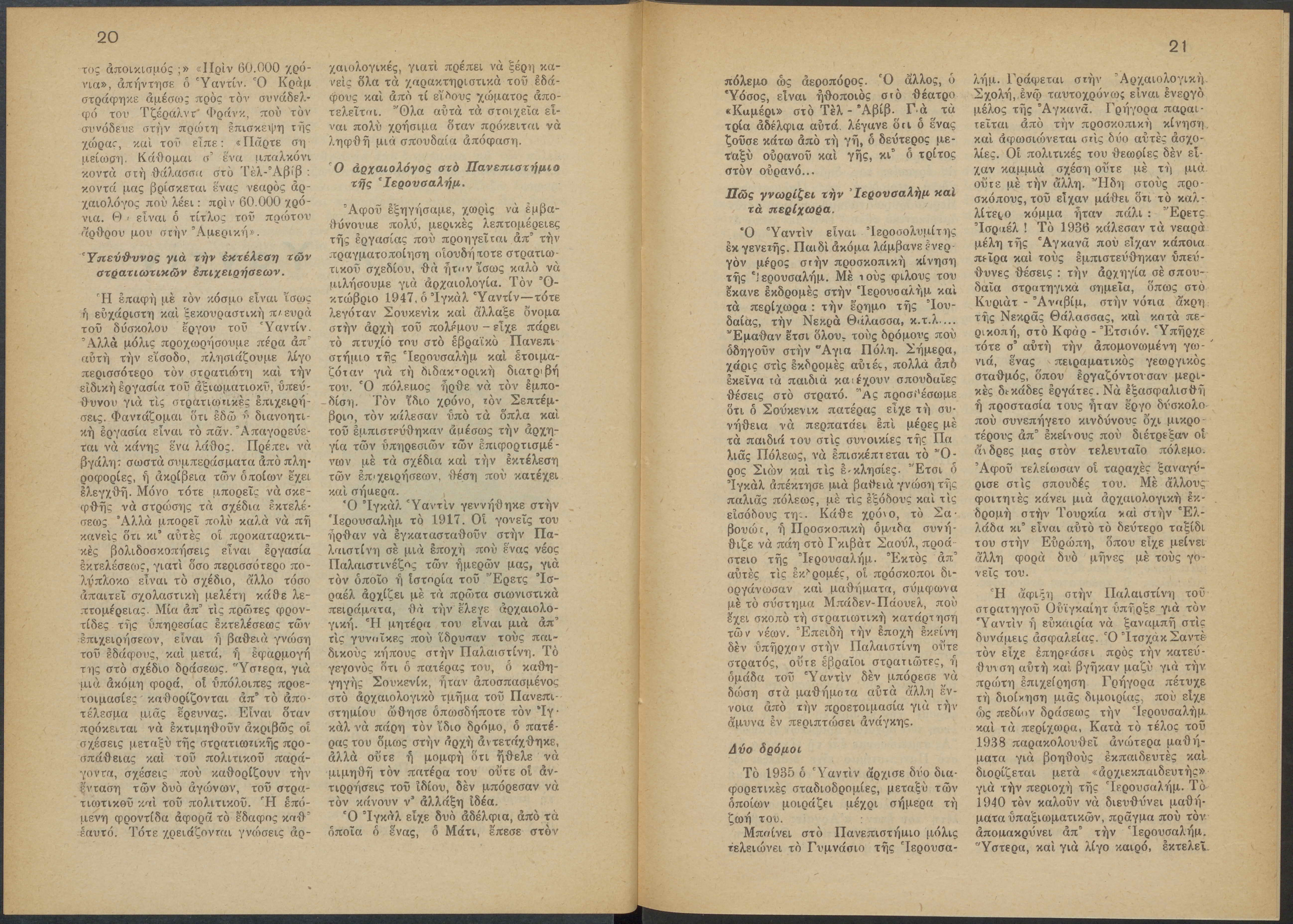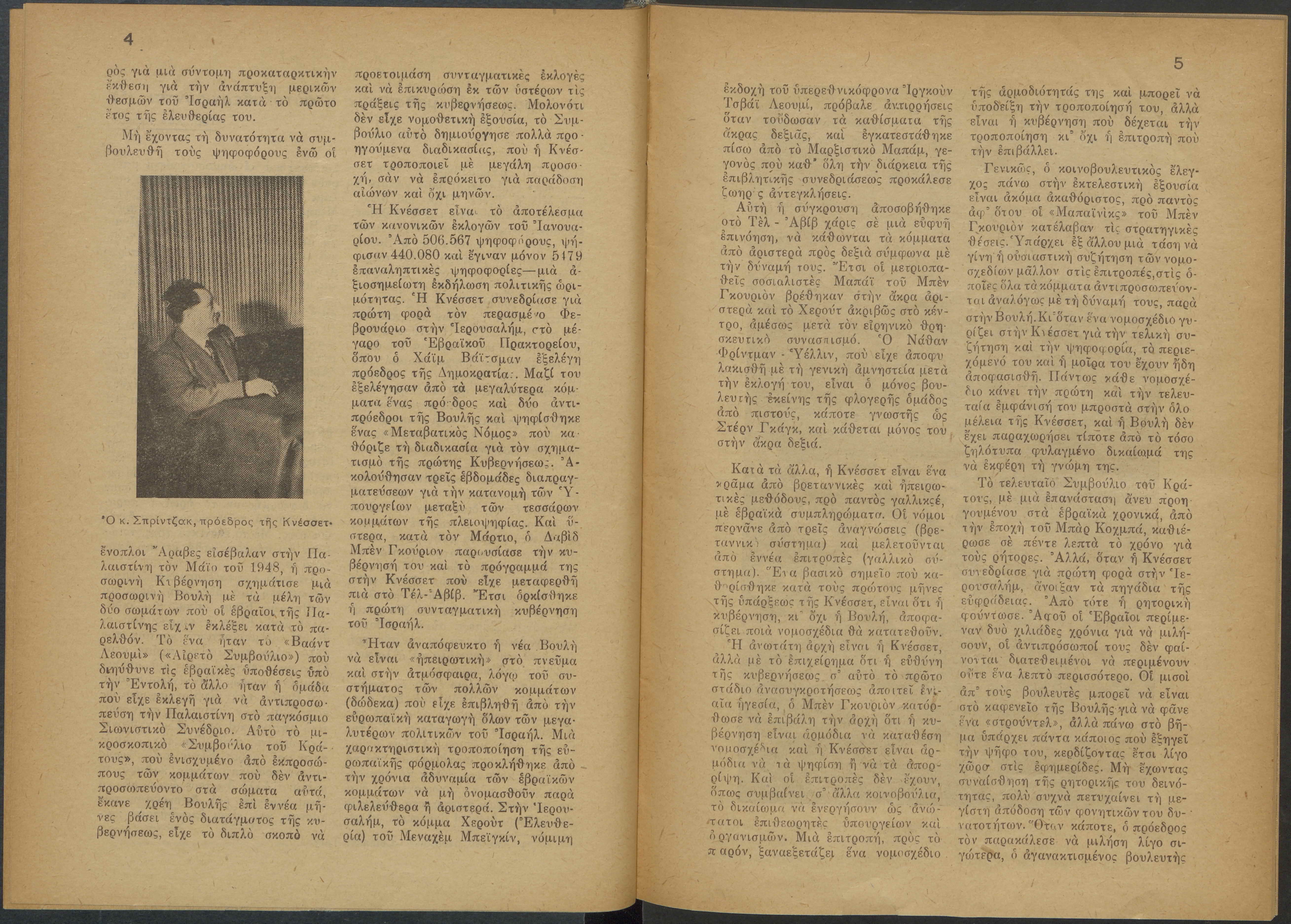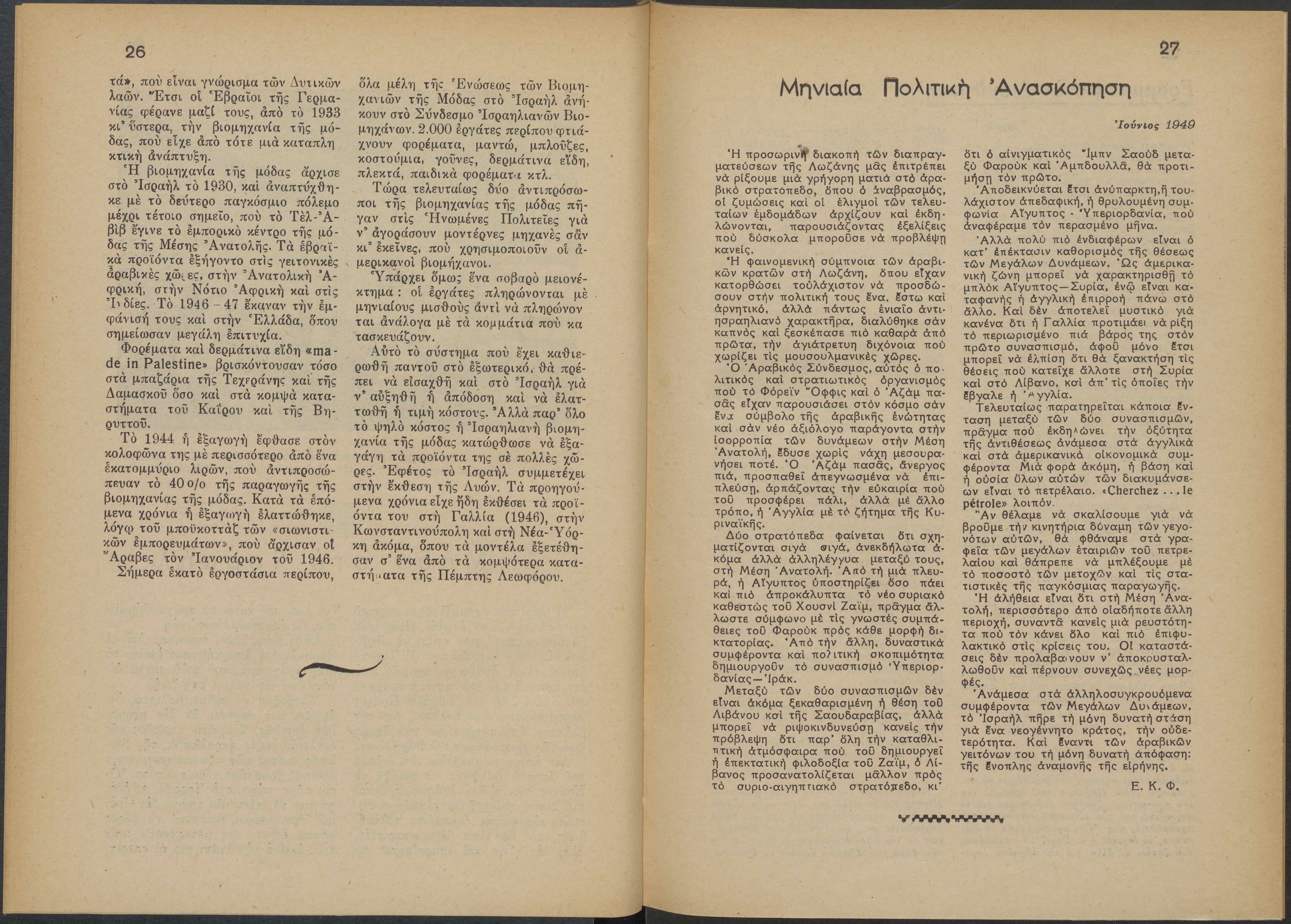 Monthly publication of Keren Kayemeth LeIsrael (Jewish National Fund/Εθνικό Εβραϊκό Κεφάλαιο), 12 issues bound in book form, 116 pages.