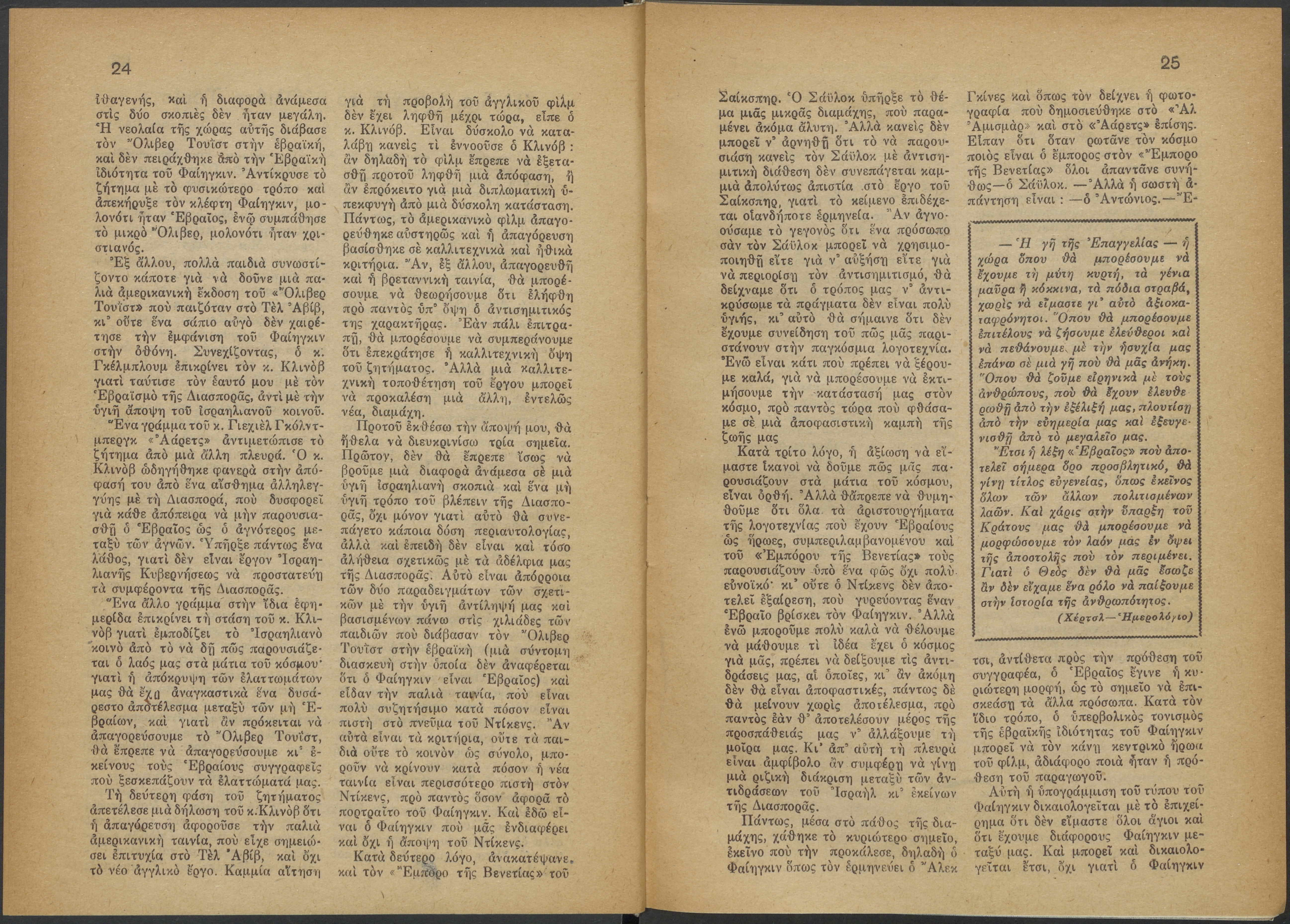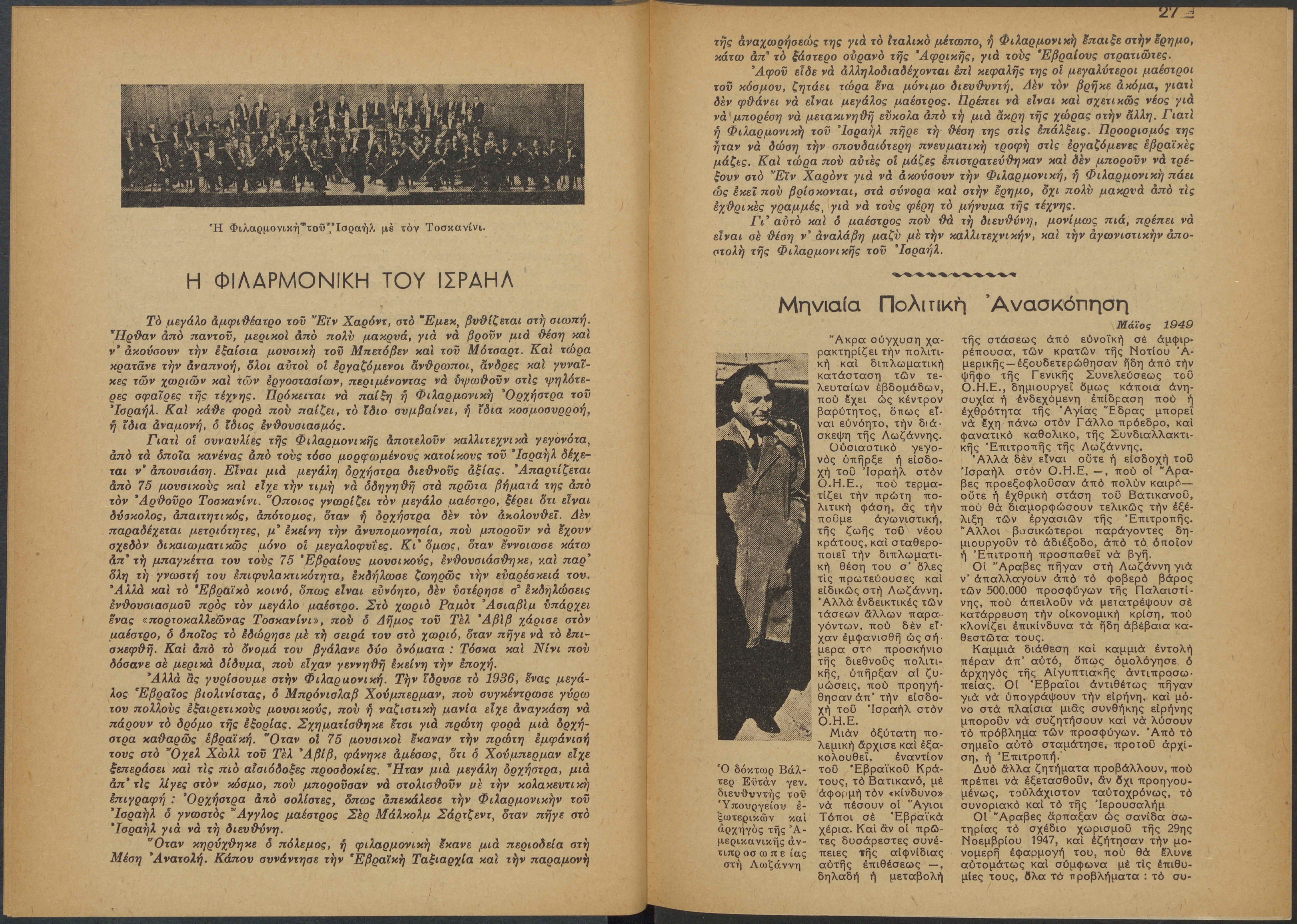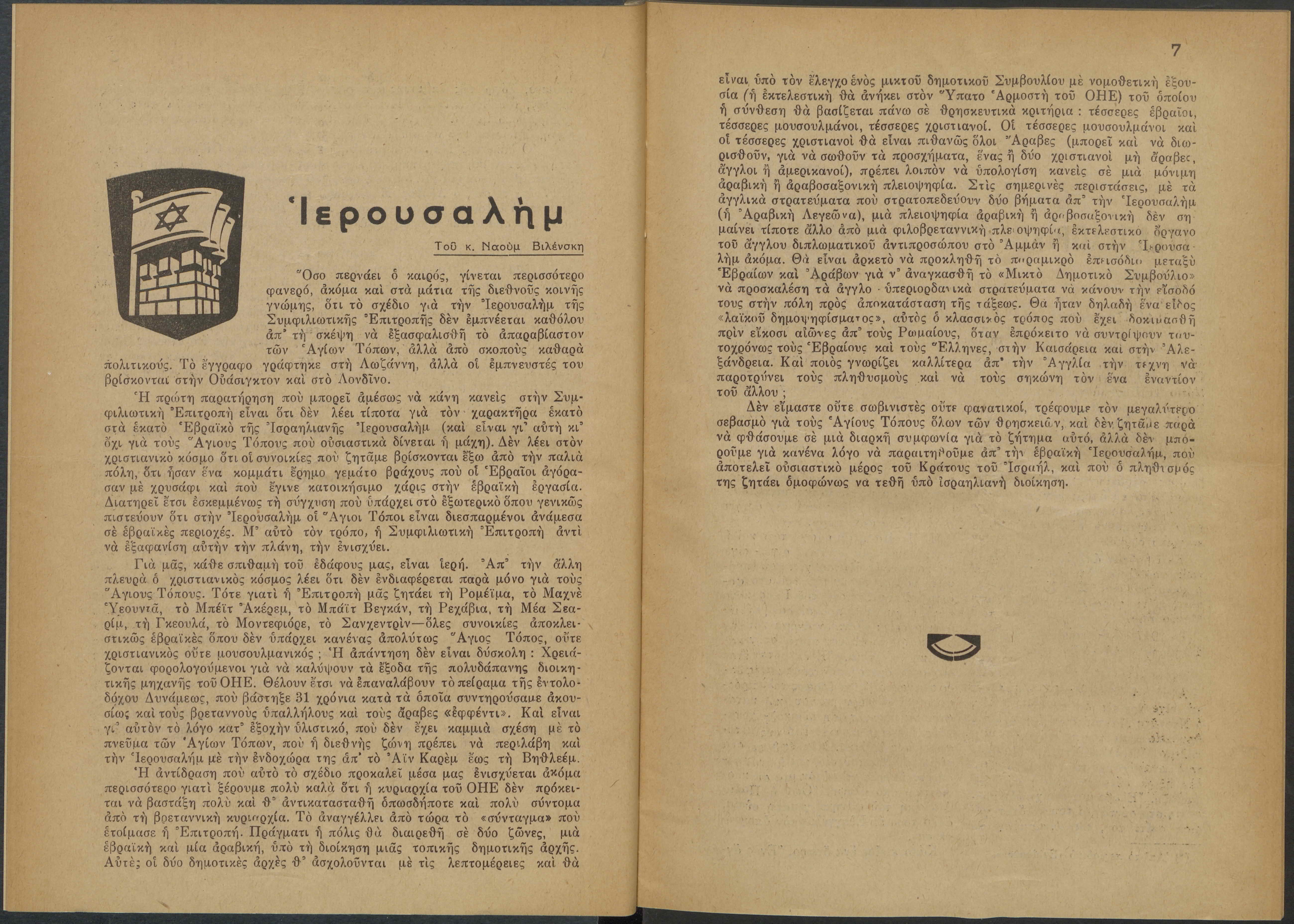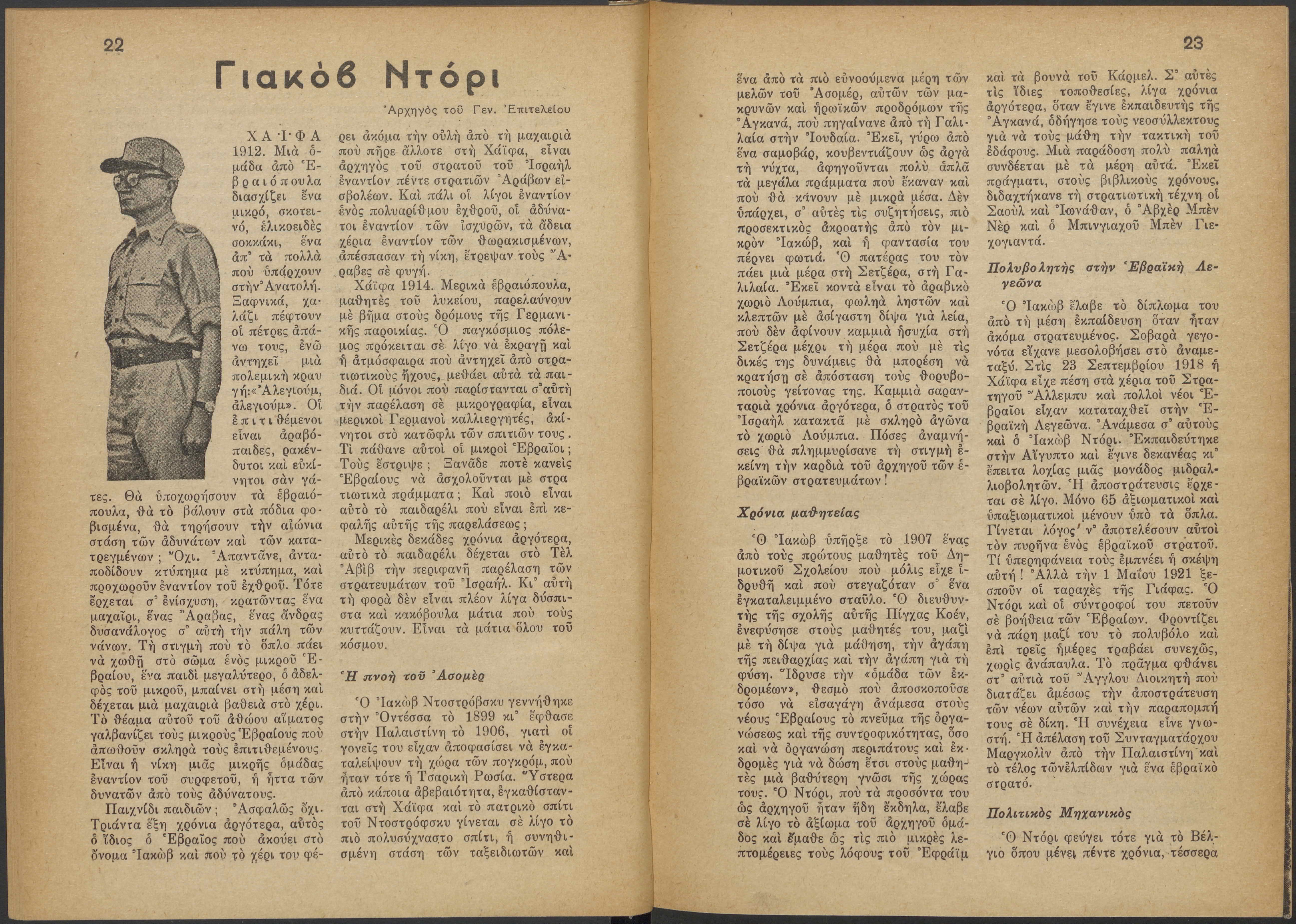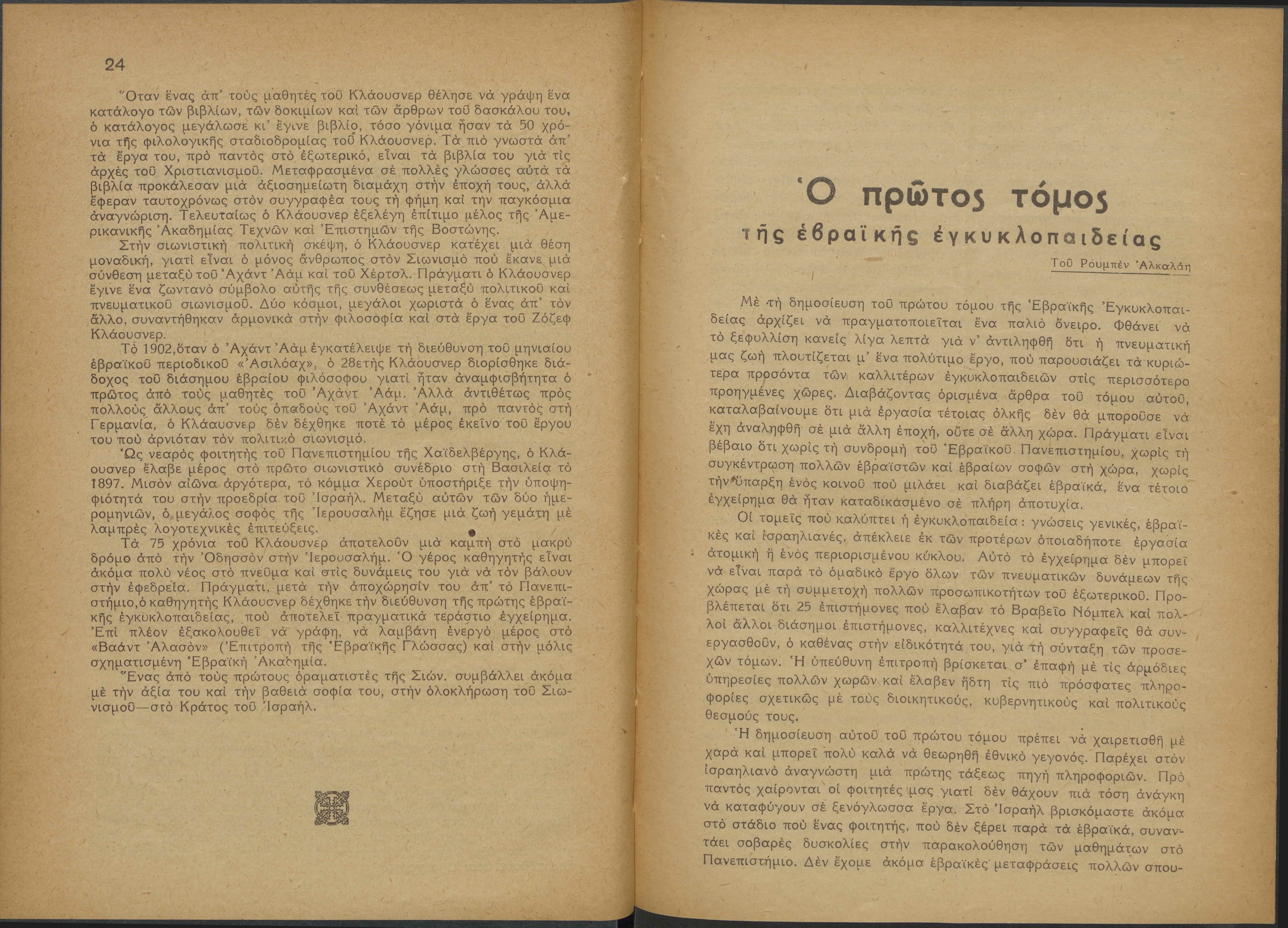 Monthly publication of Keren Kayemeth LeIsrael (Jewish National Fund/Εθνικό Εβραϊκό Κεφάλαιο), 12 issues bound in book form, 116 pages.