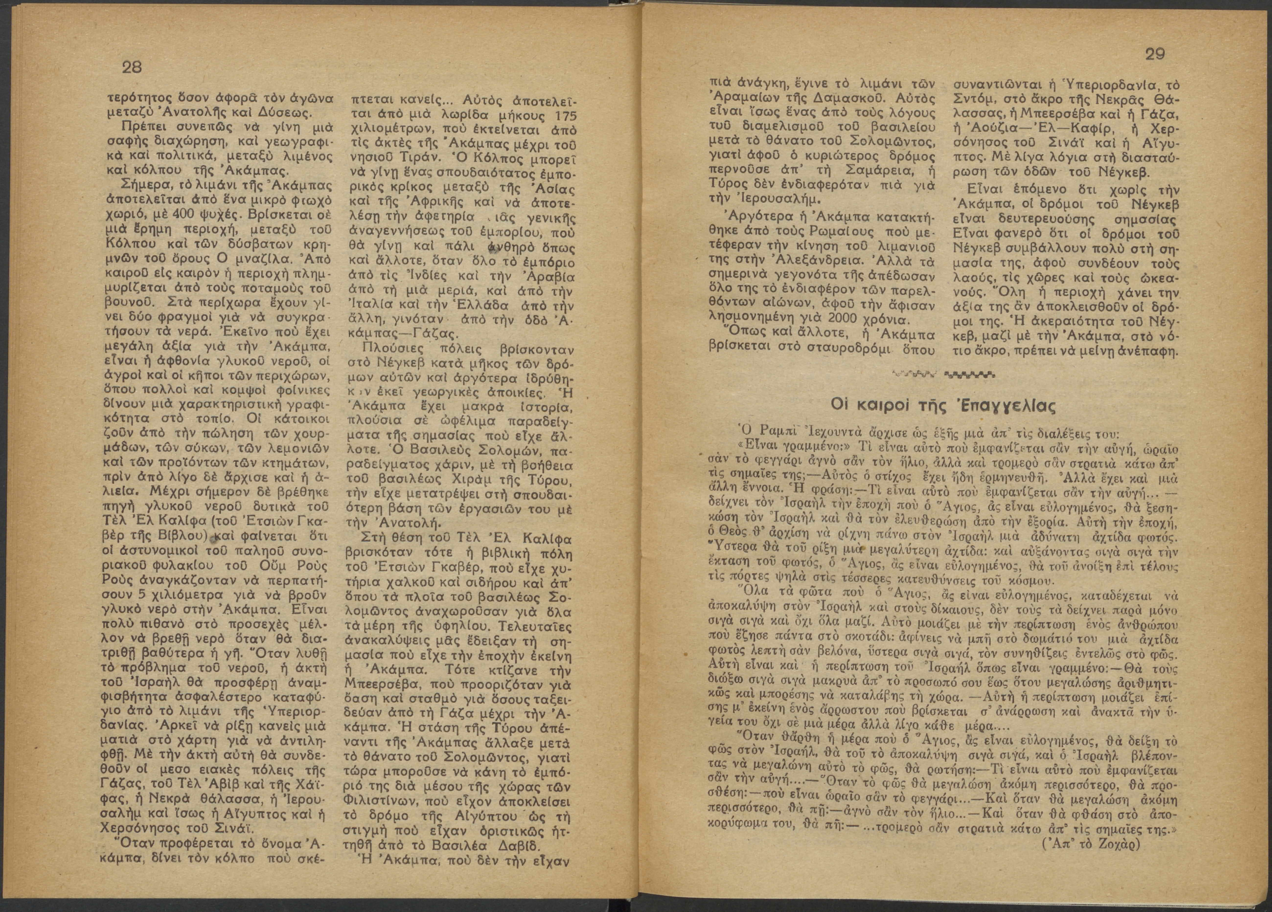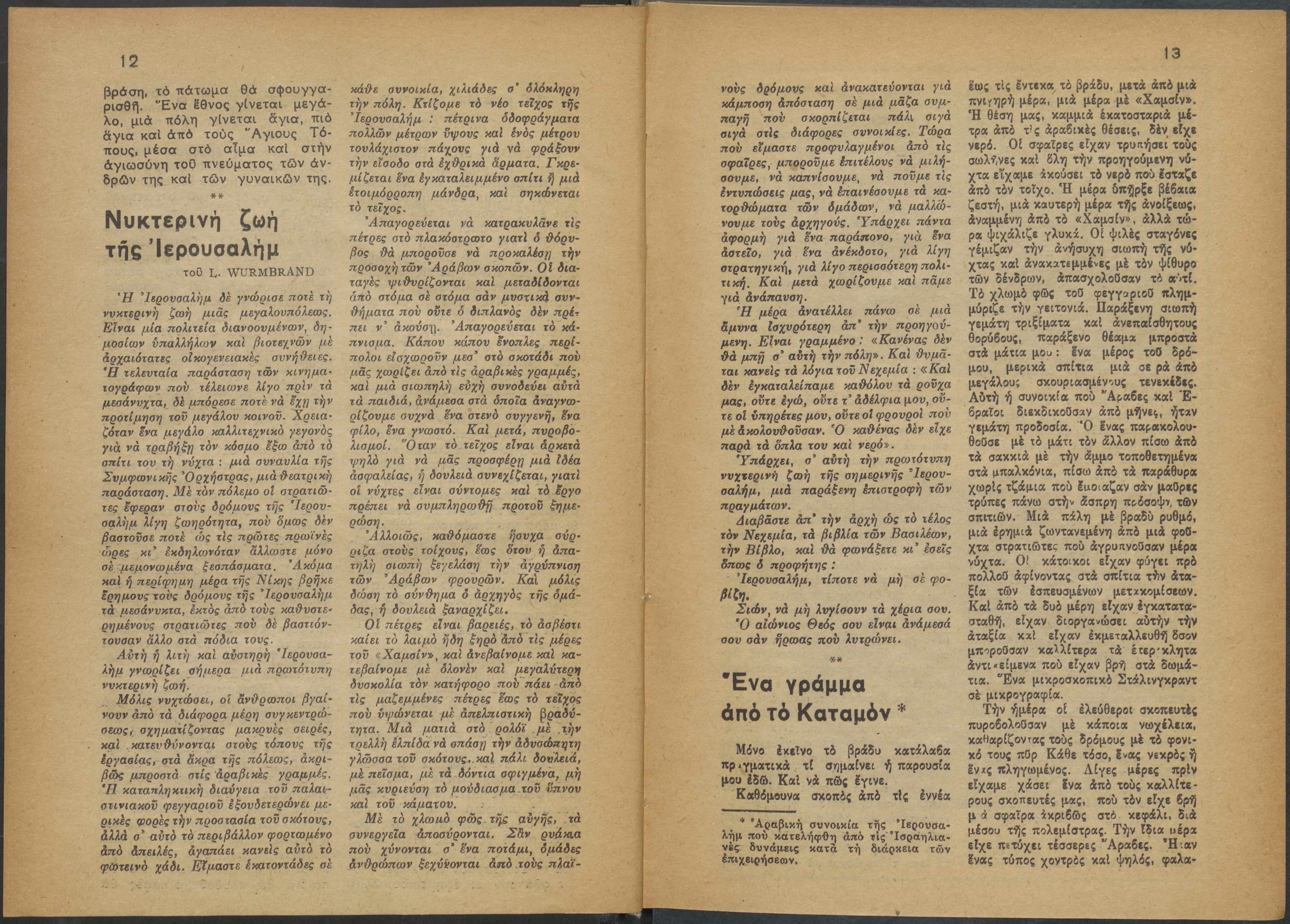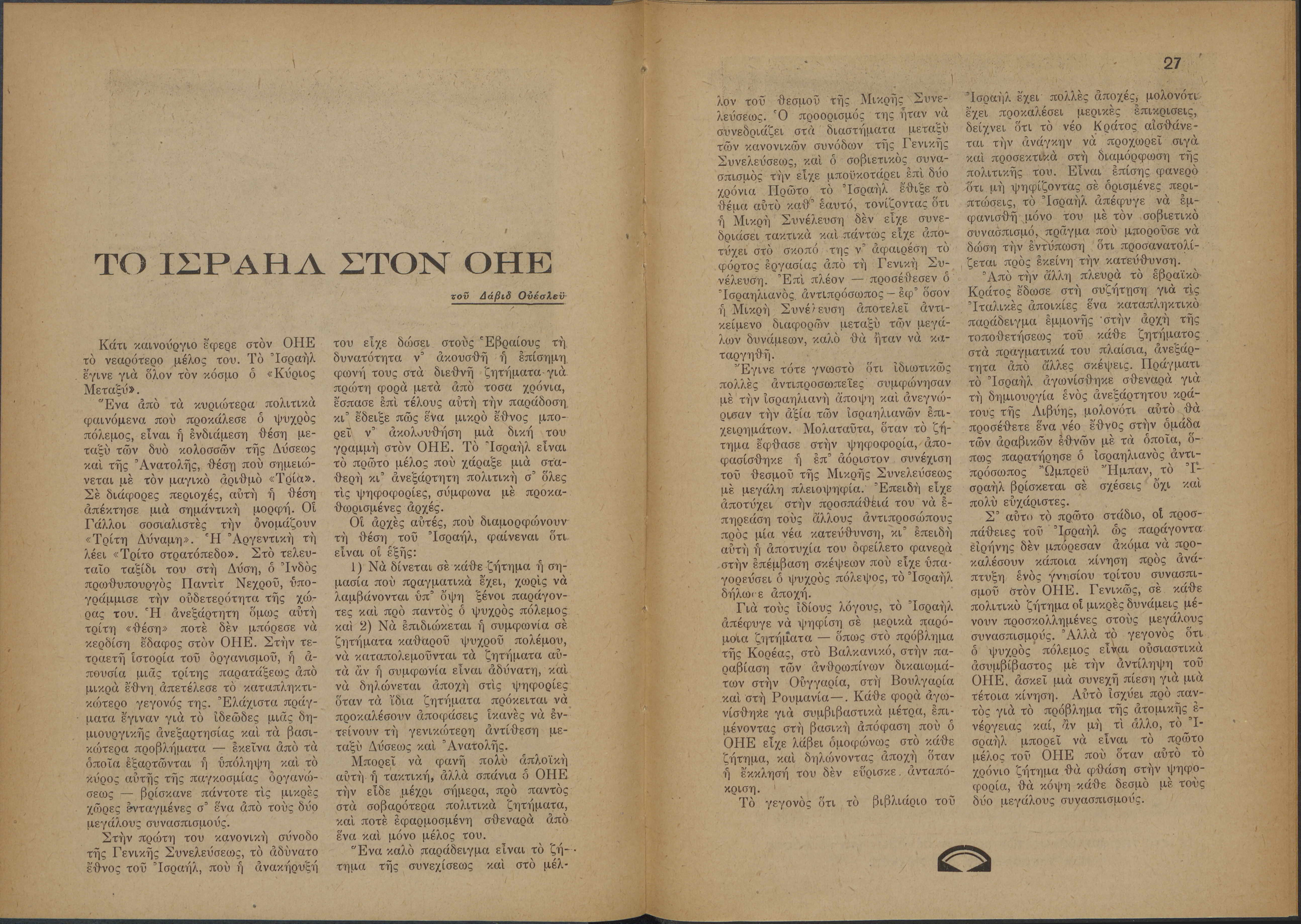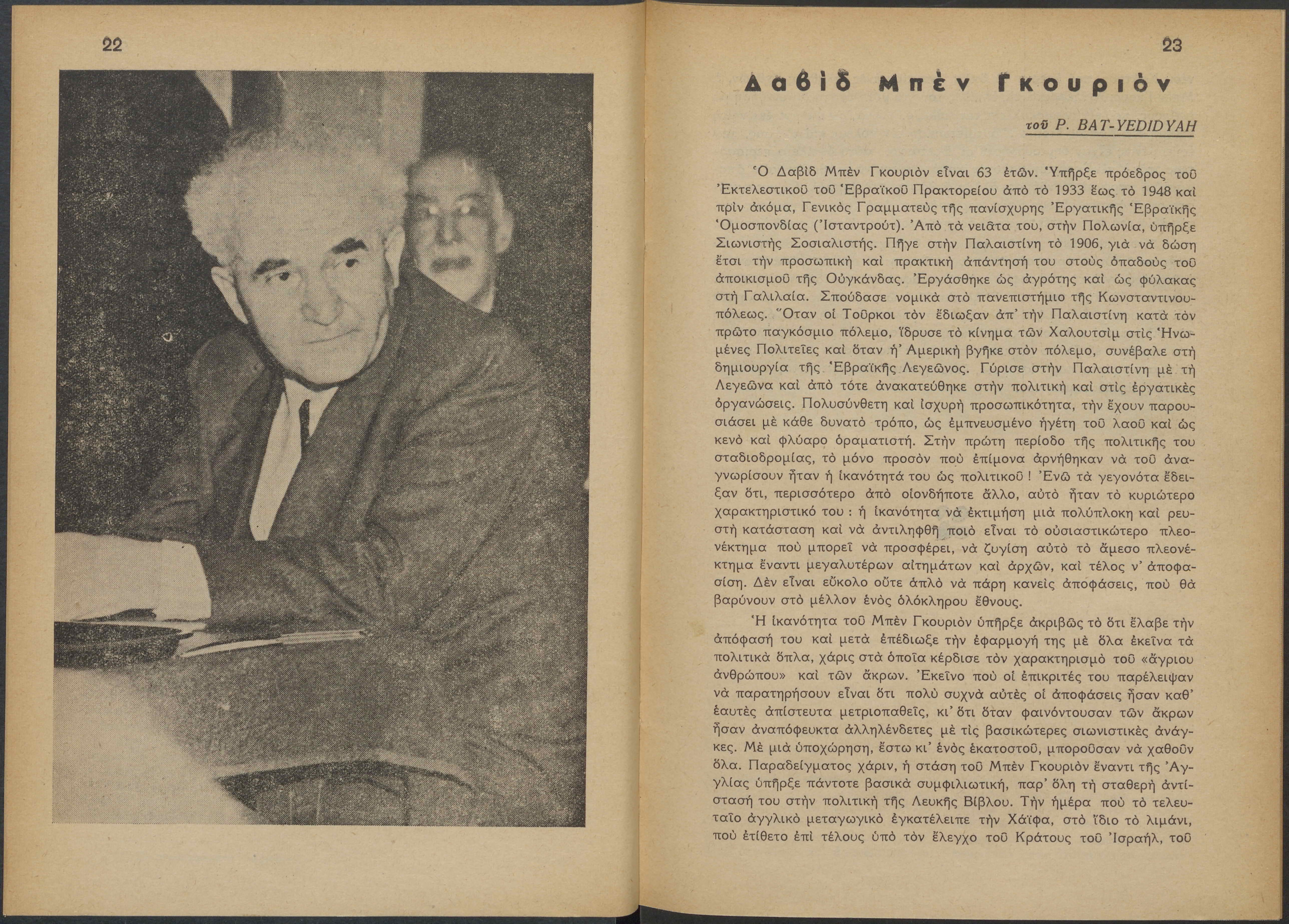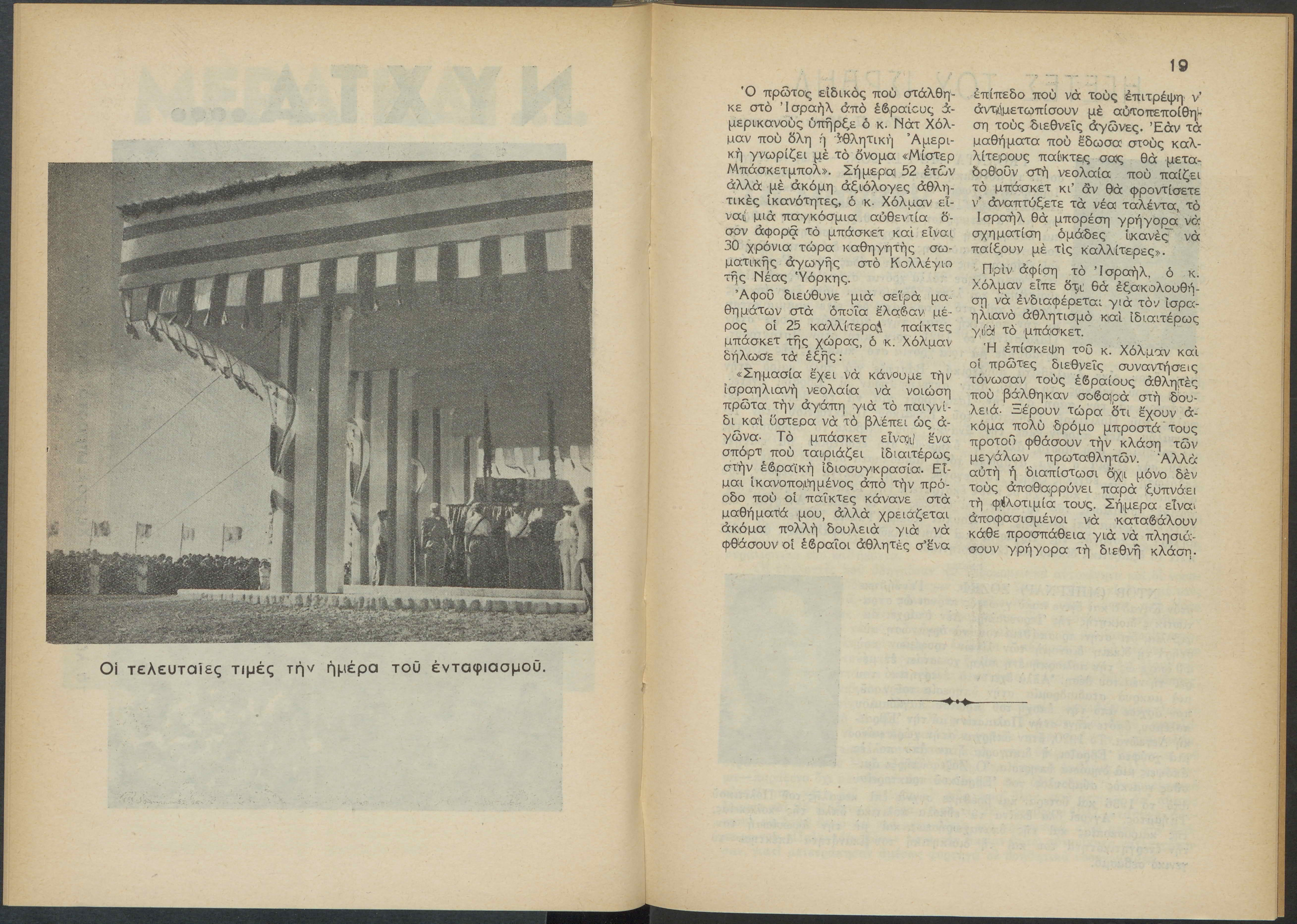 Monthly publication of Keren Kayemeth LeIsrael (Jewish National Fund/Εθνικό Εβραϊκό Κεφάλαιο), 12 issues bound in book form, 116 pages.