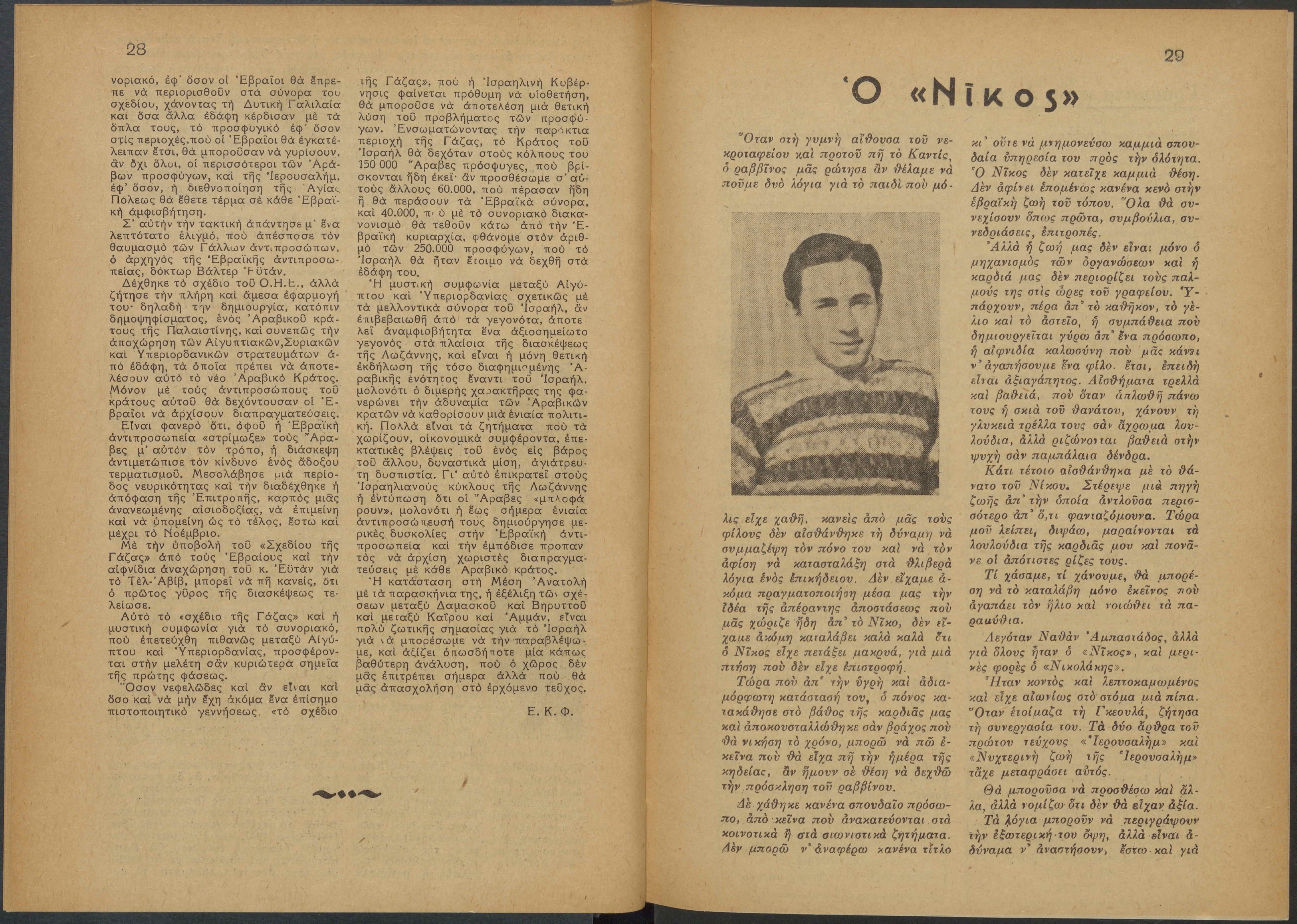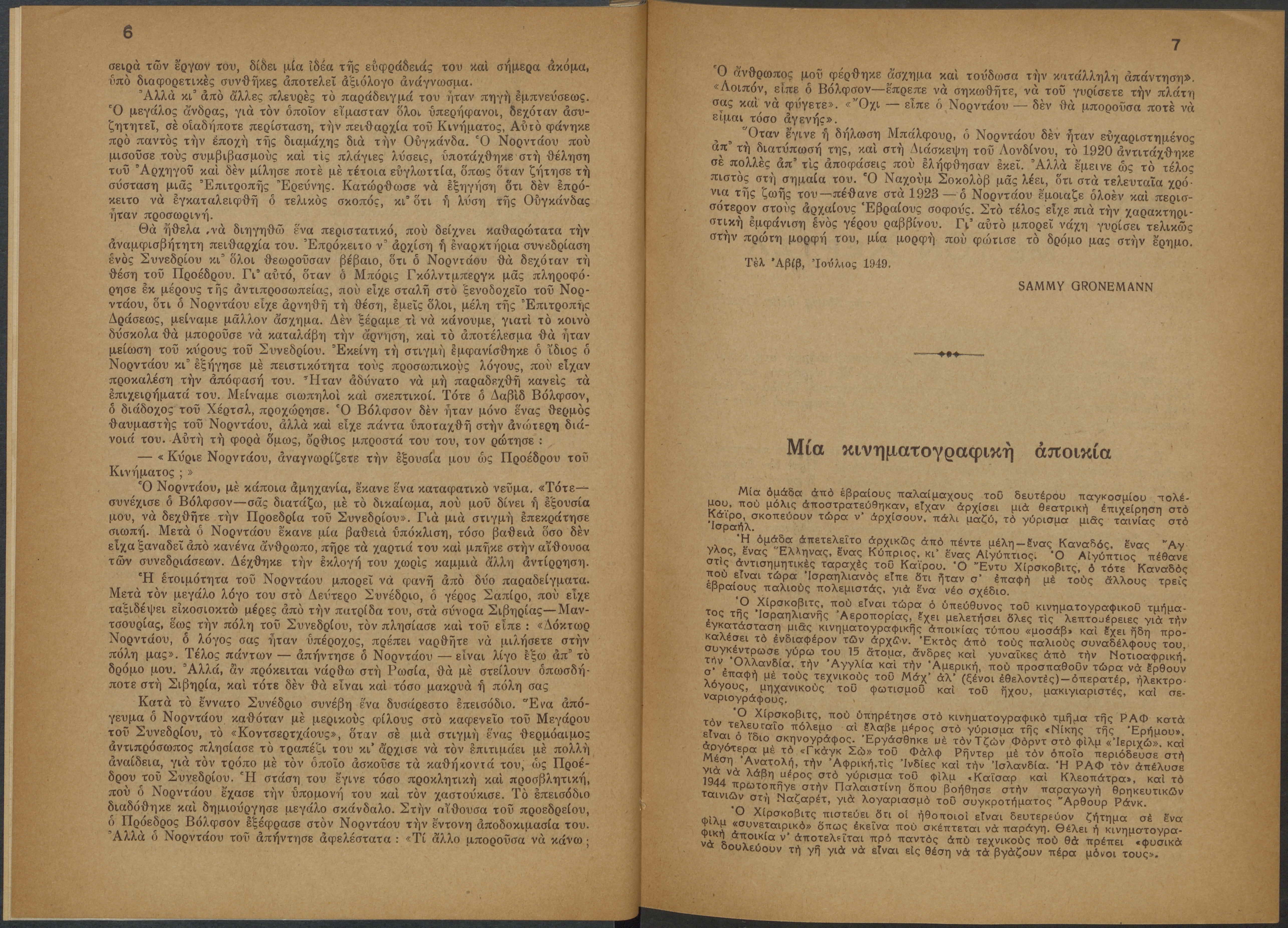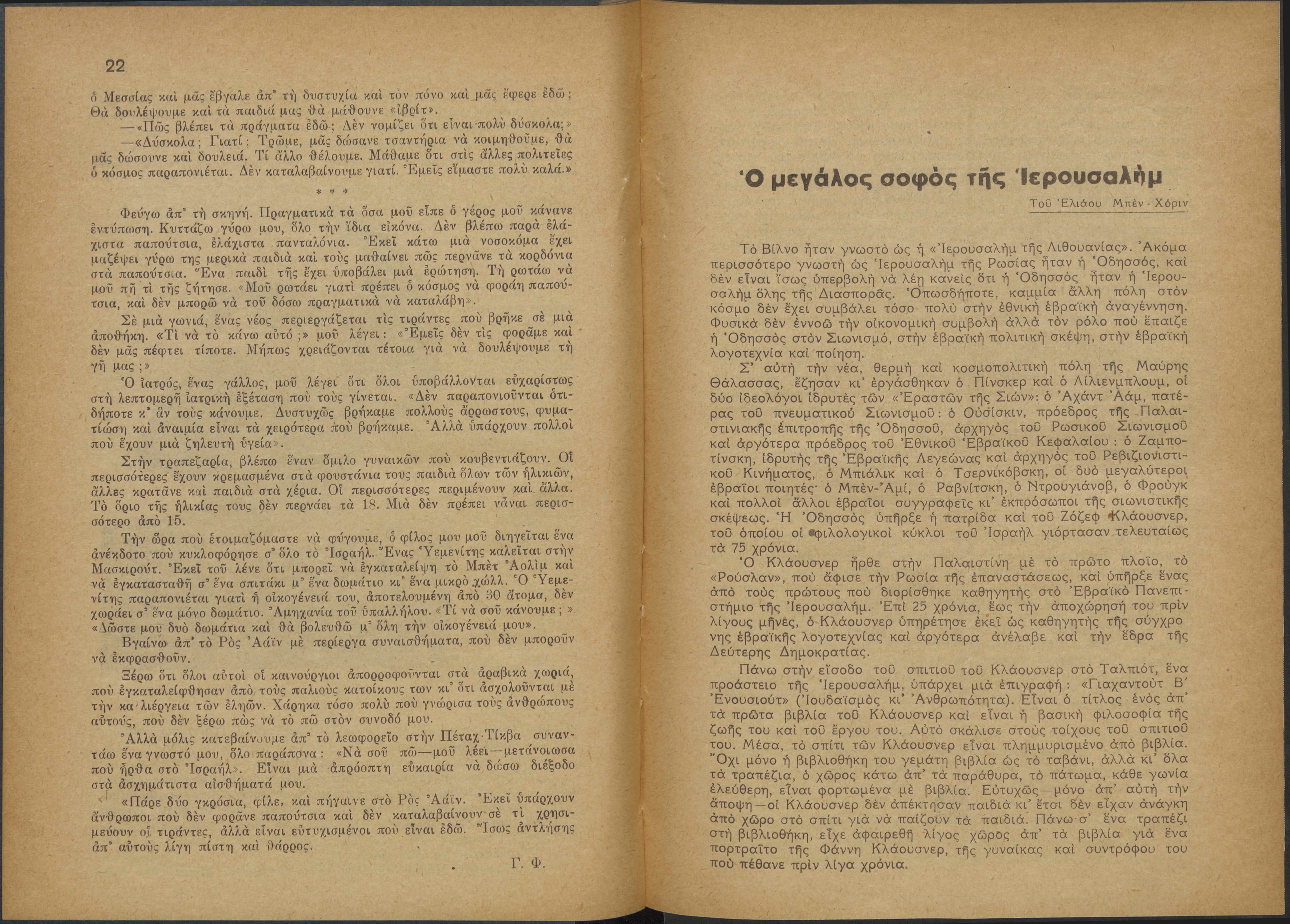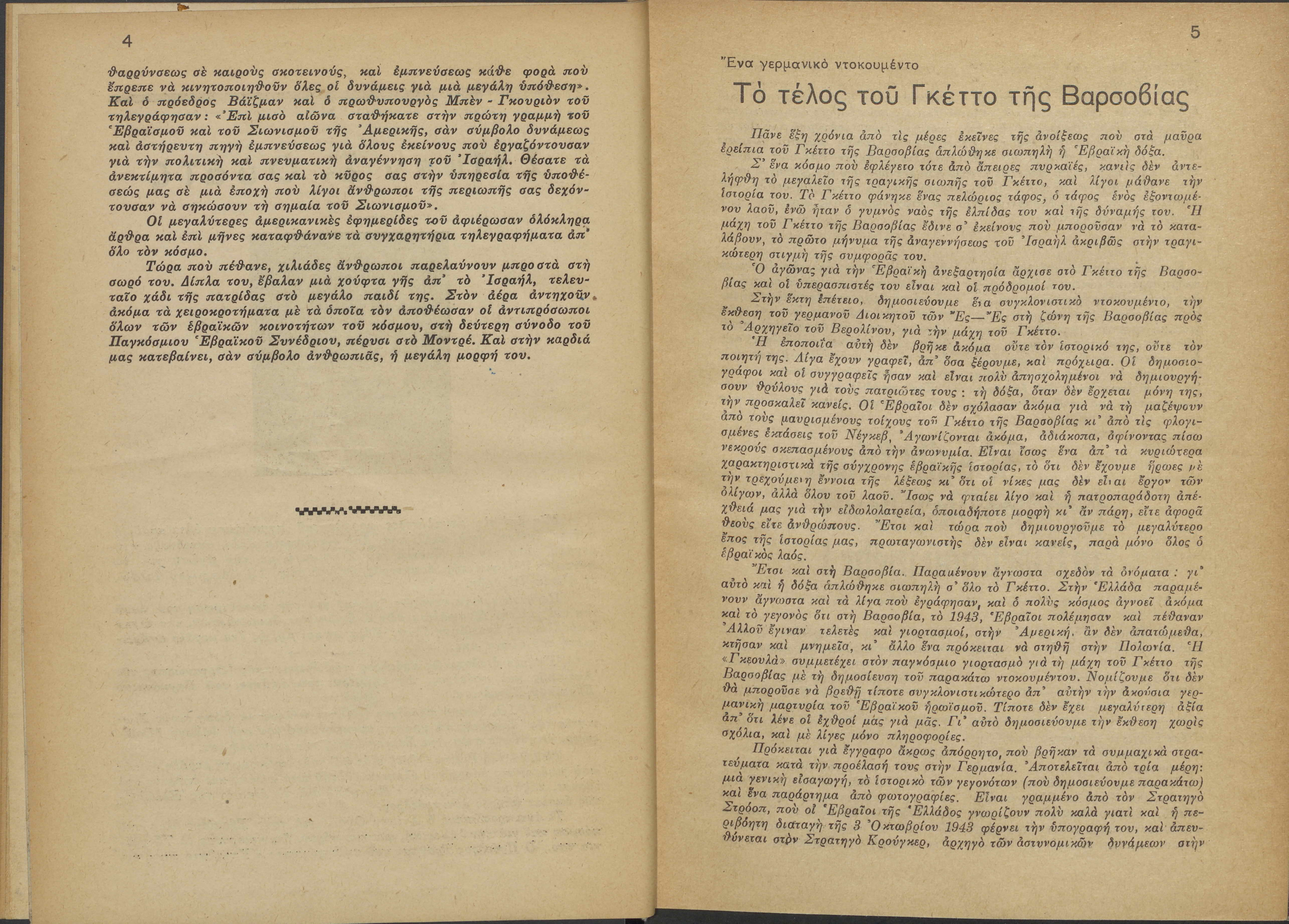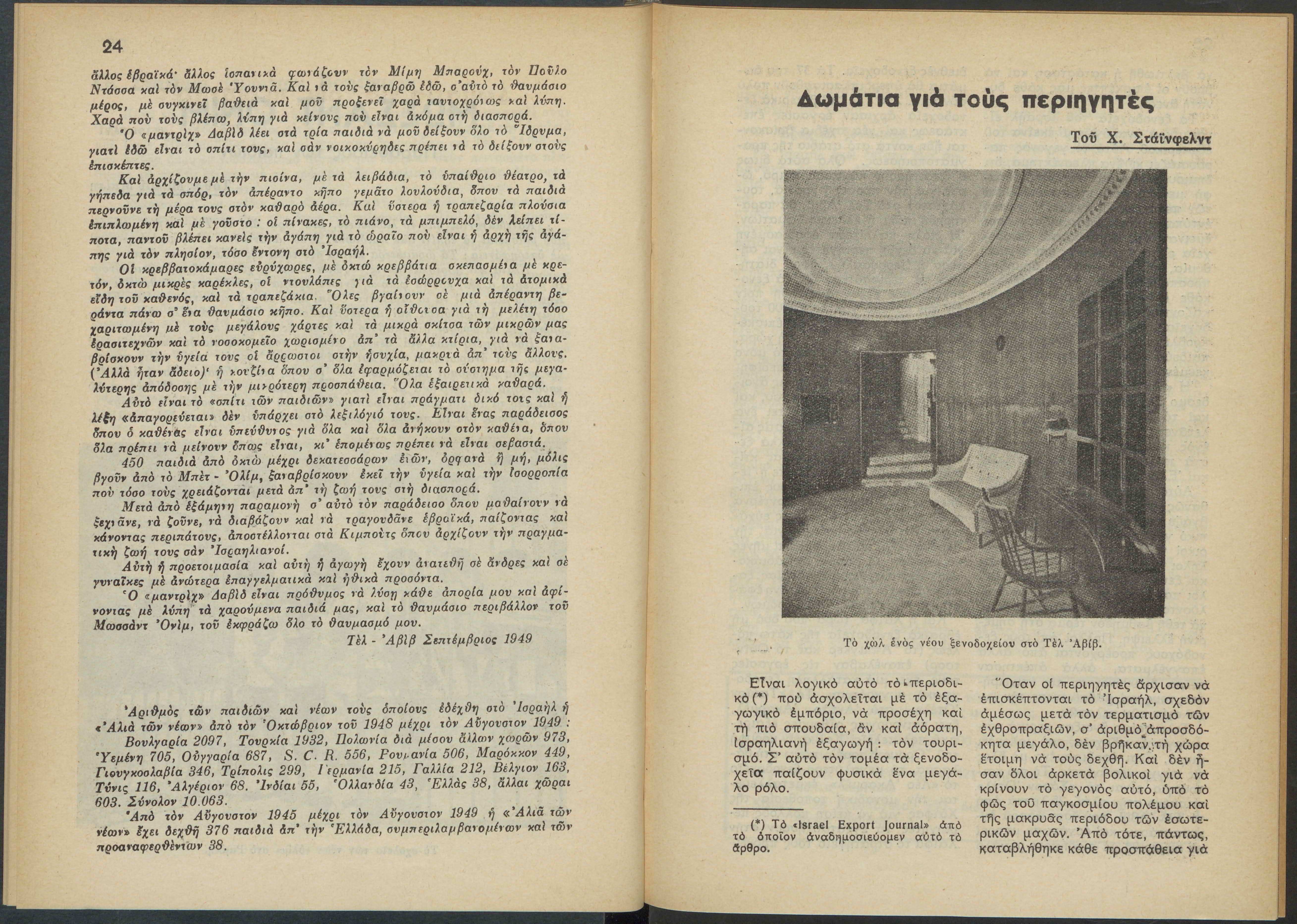 Monthly publication of Keren Kayemeth LeIsrael (Jewish National Fund/Εθνικό Εβραϊκό Κεφάλαιο), 12 issues bound in book form, 116 pages.
