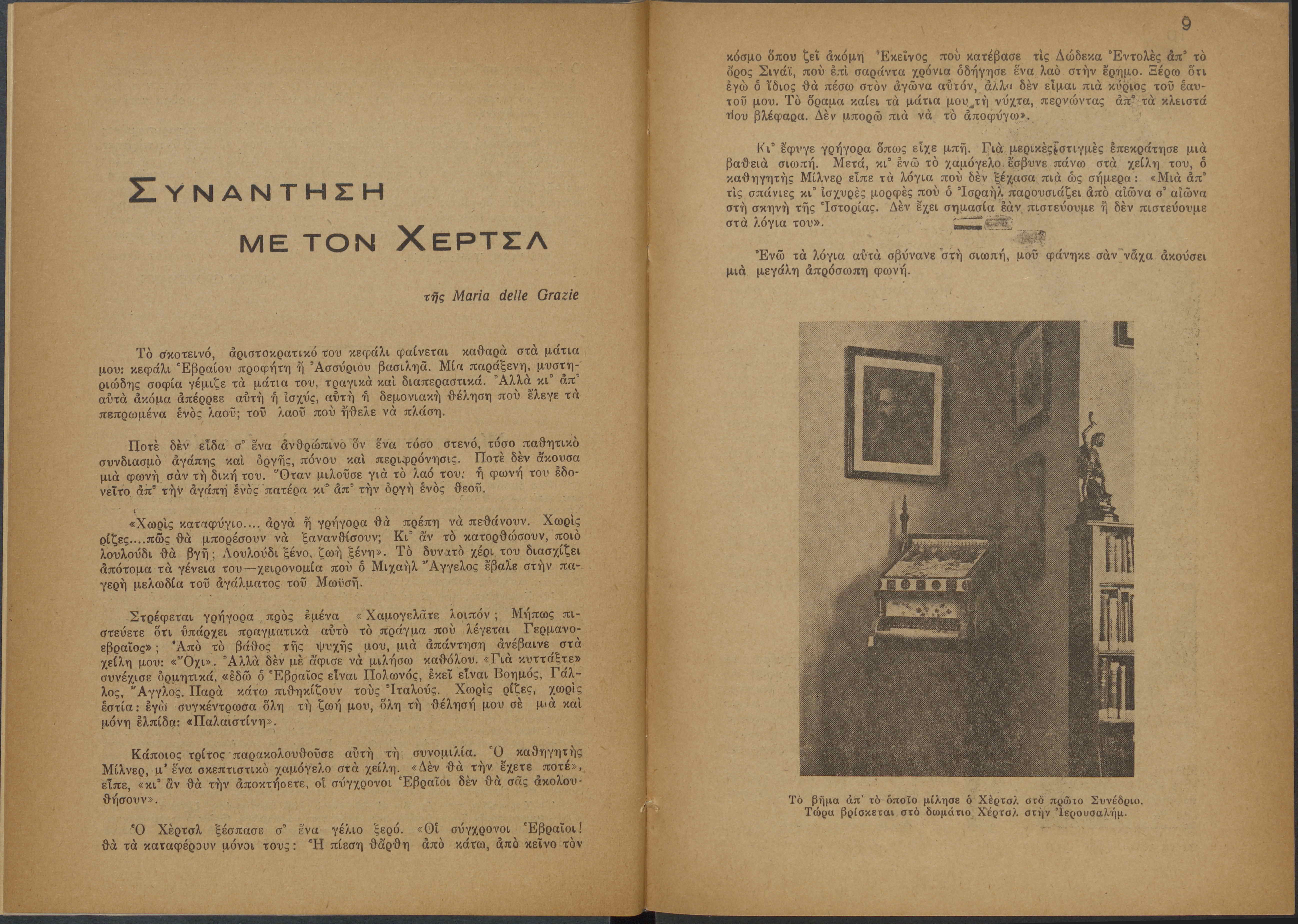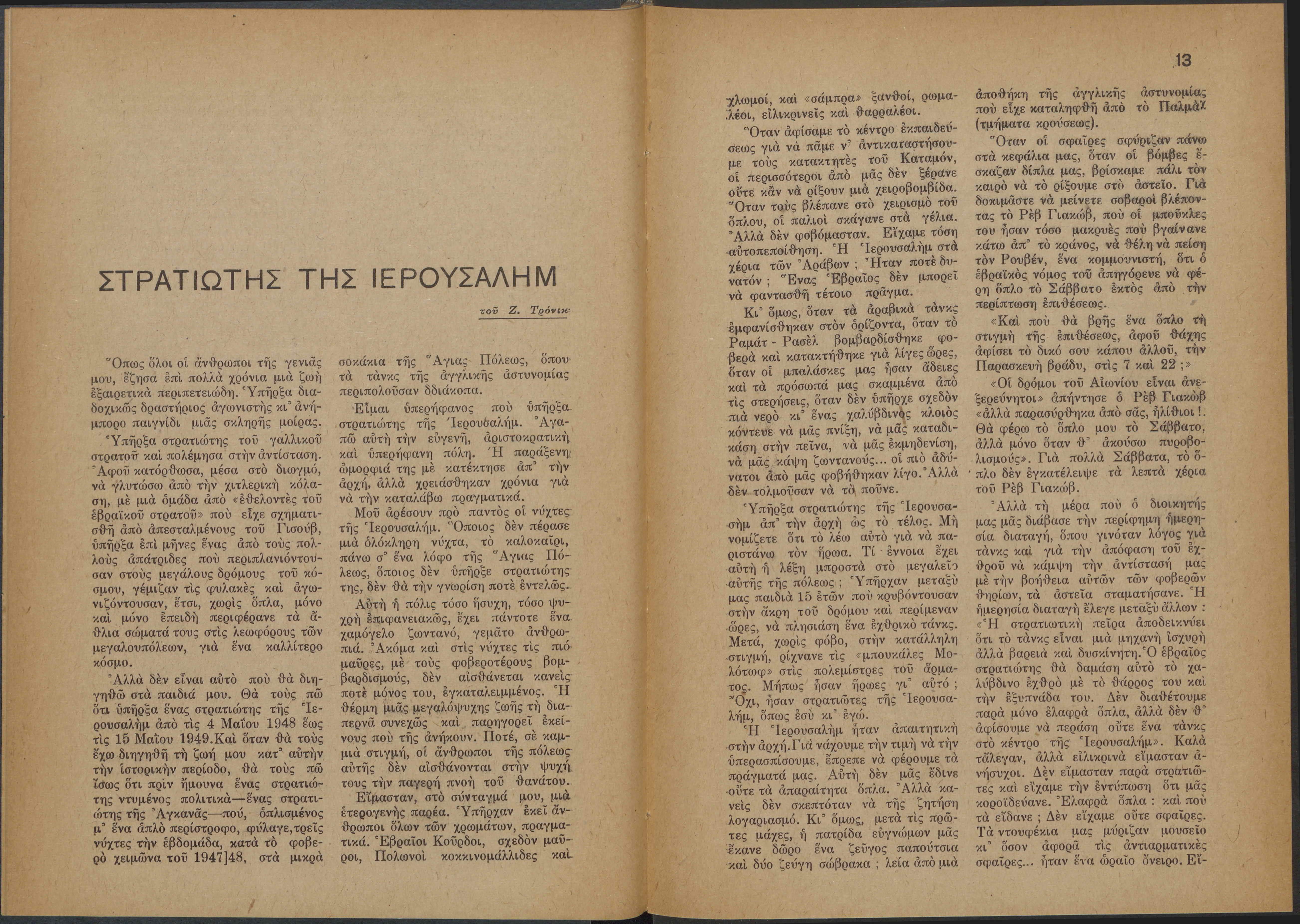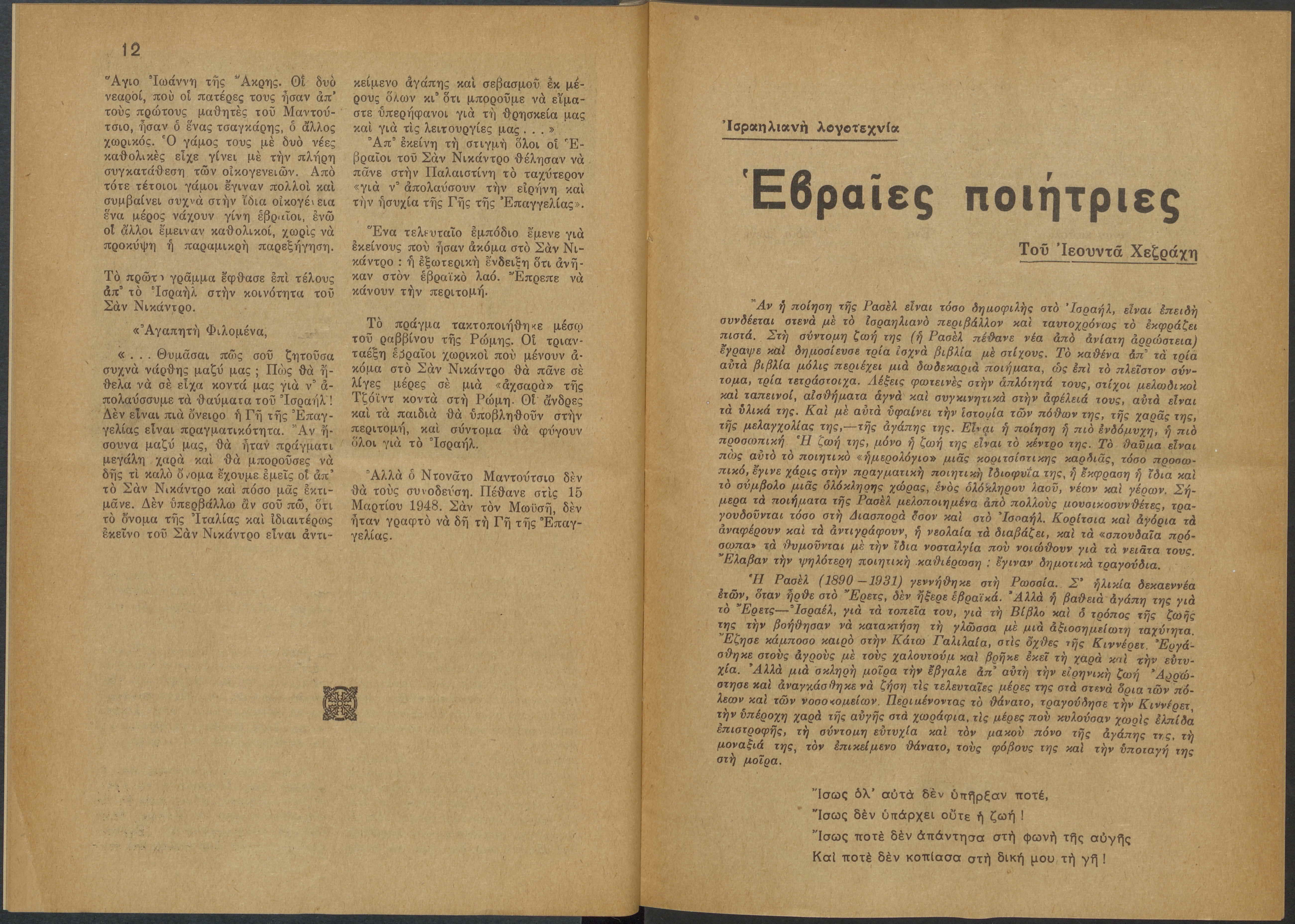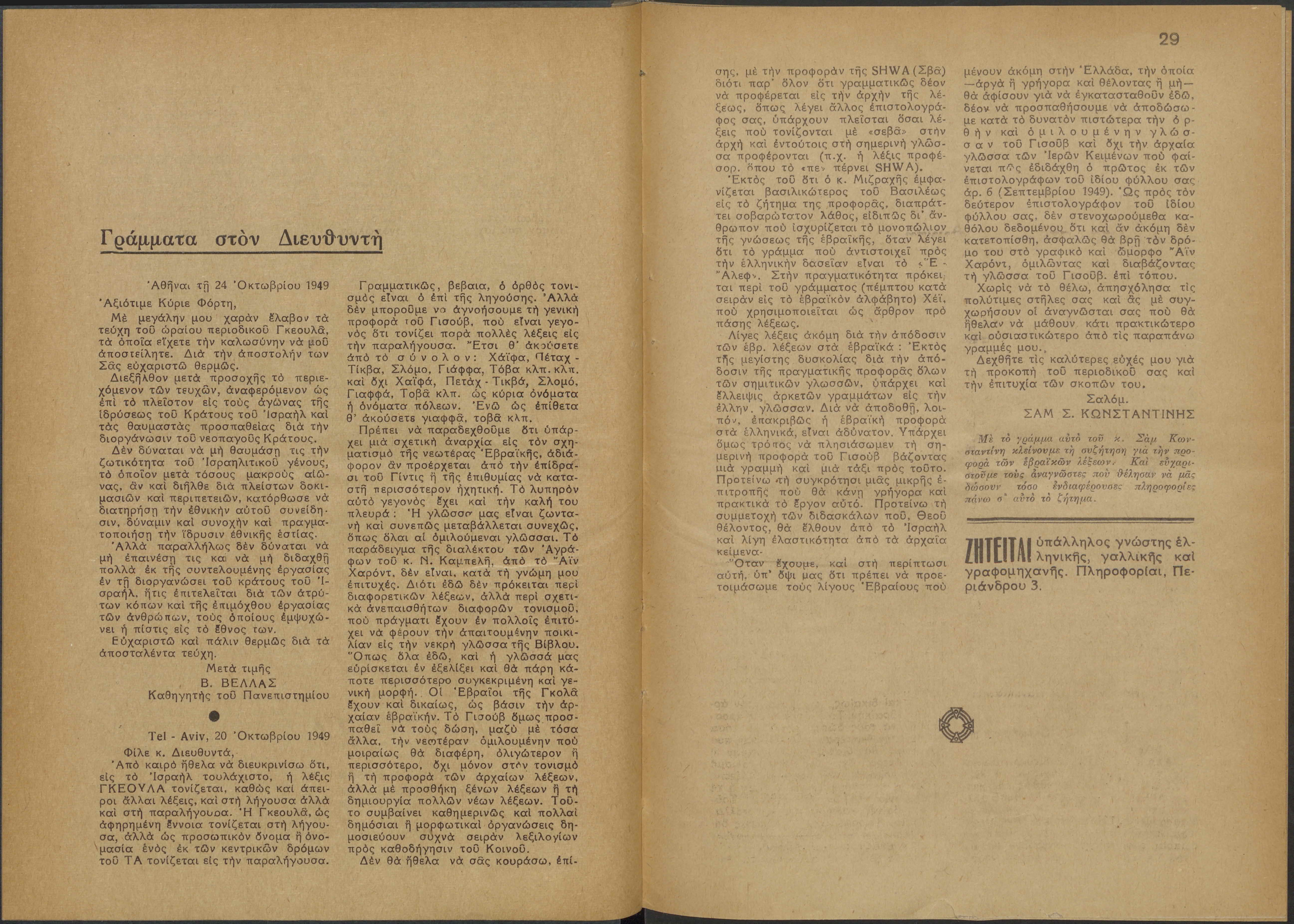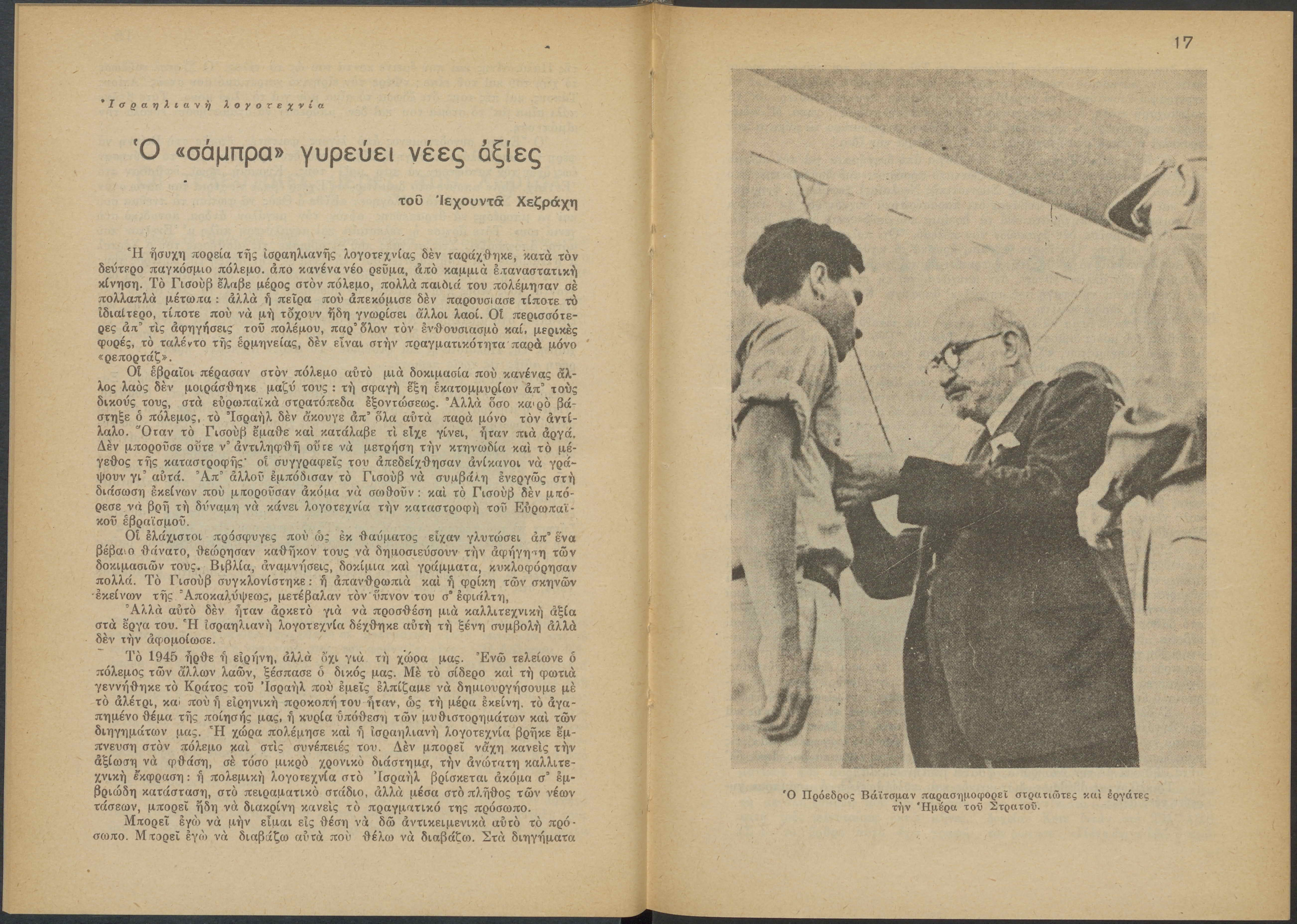 Monthly publication of Keren Kayemeth LeIsrael (Jewish National Fund/Εθνικό Εβραϊκό Κεφάλαιο), 12 issues bound in book form, 116 pages.