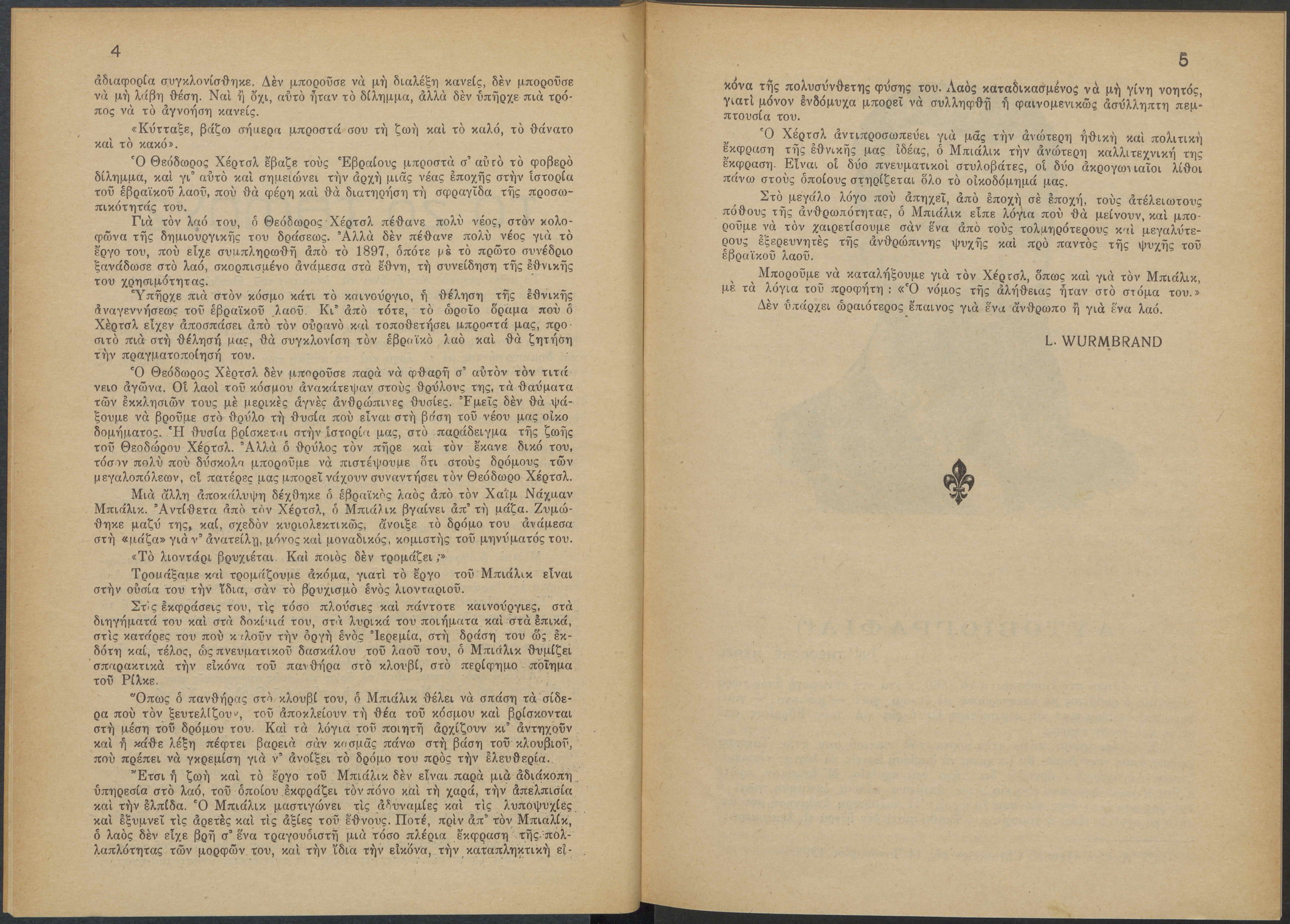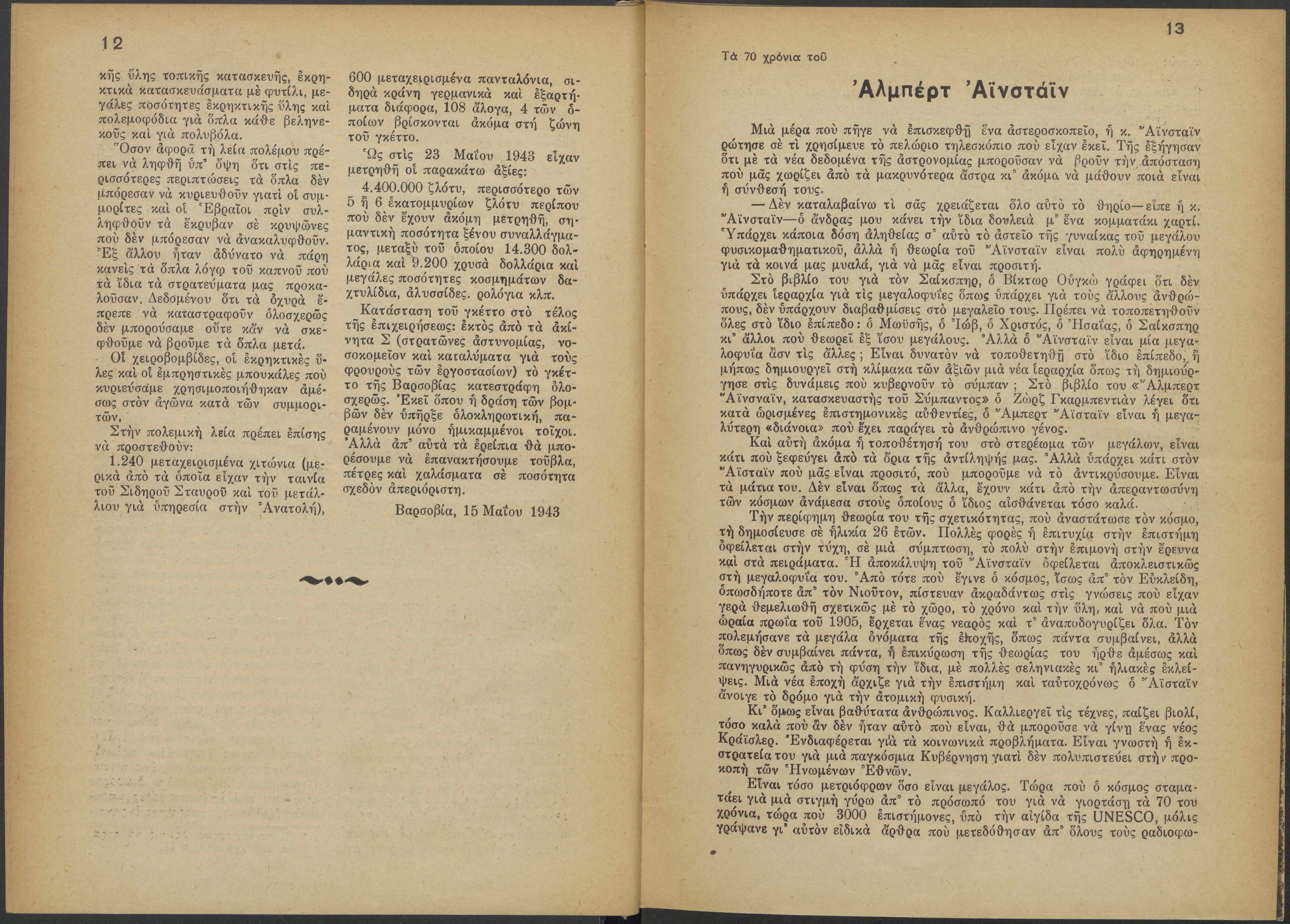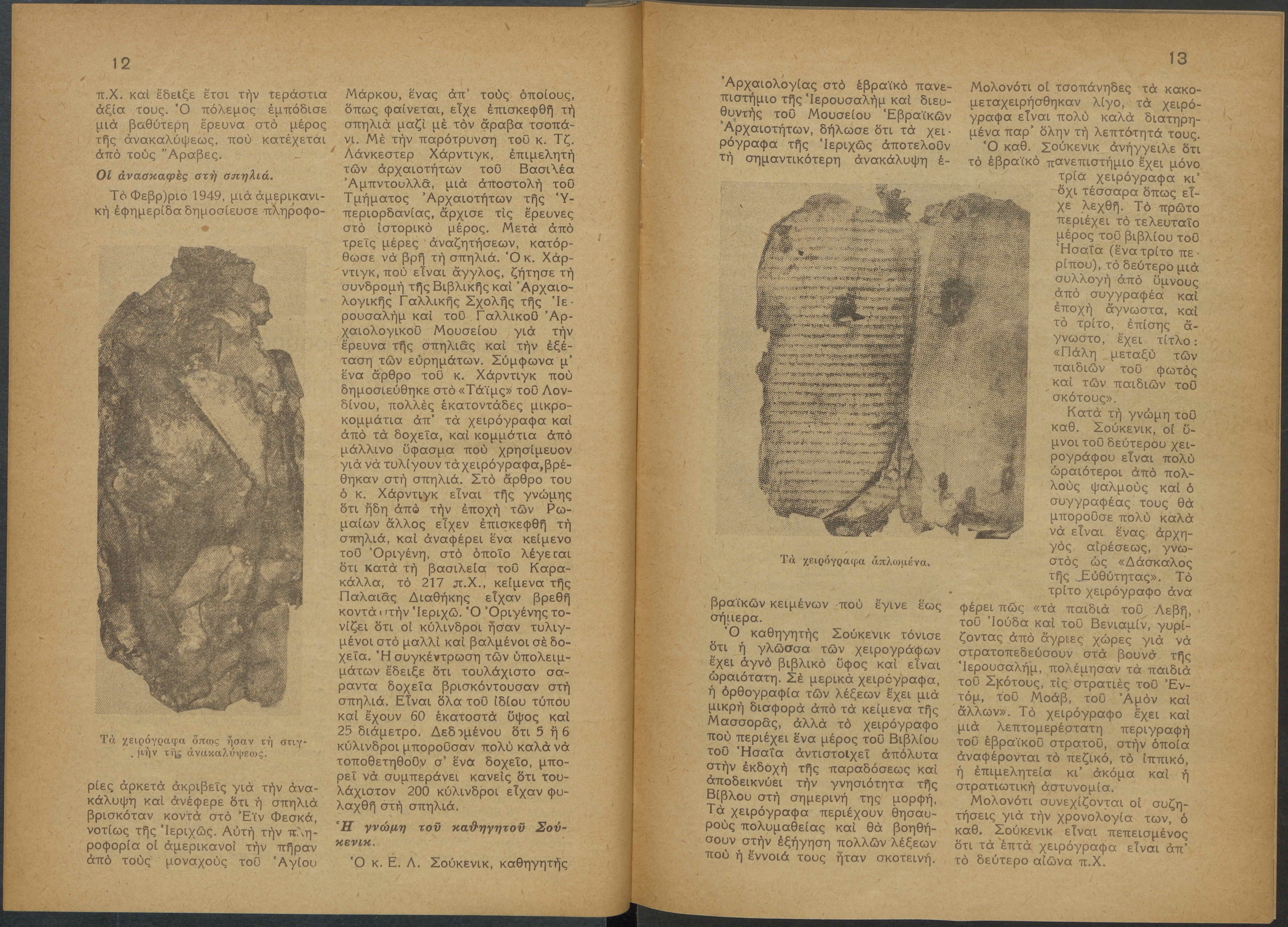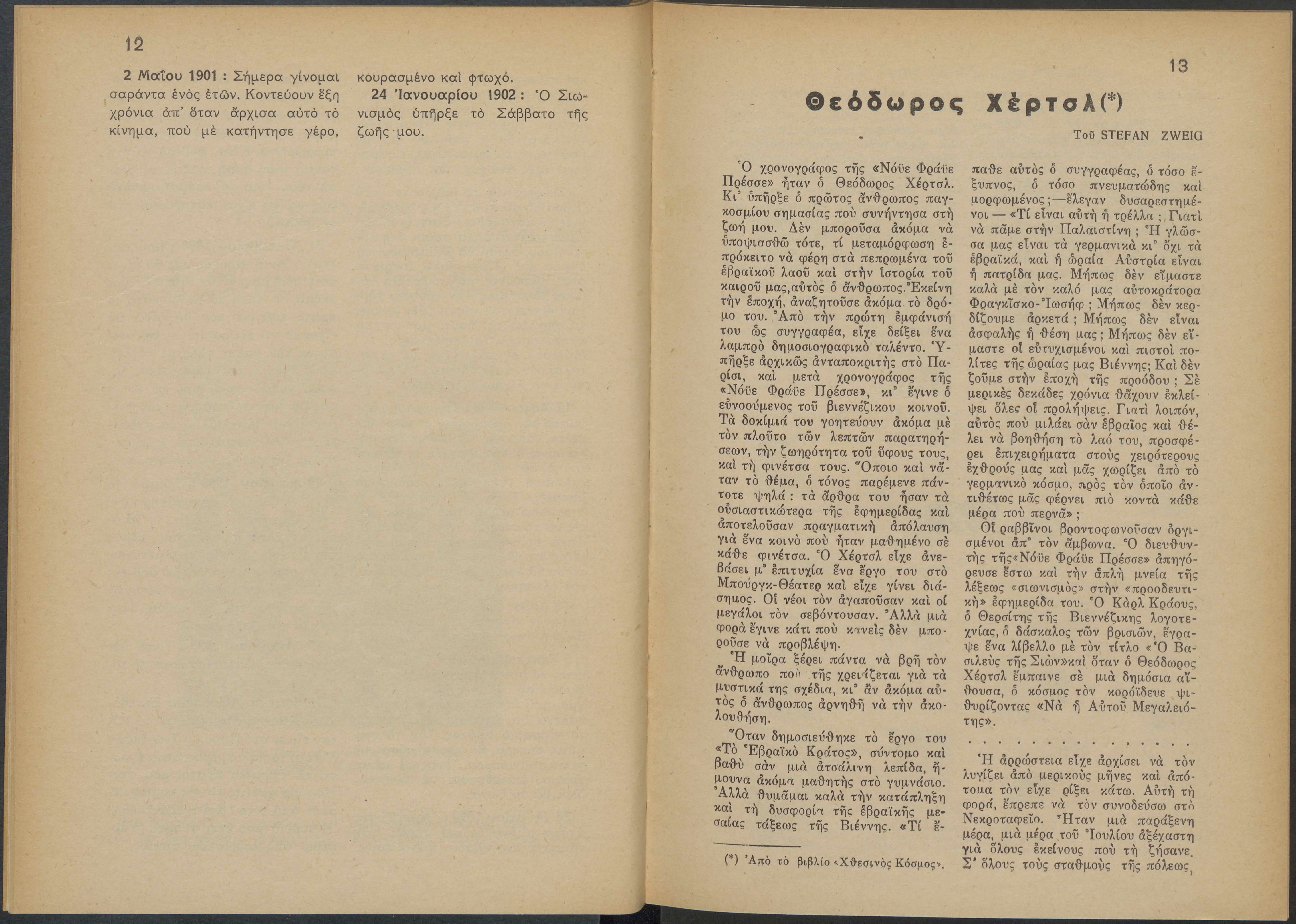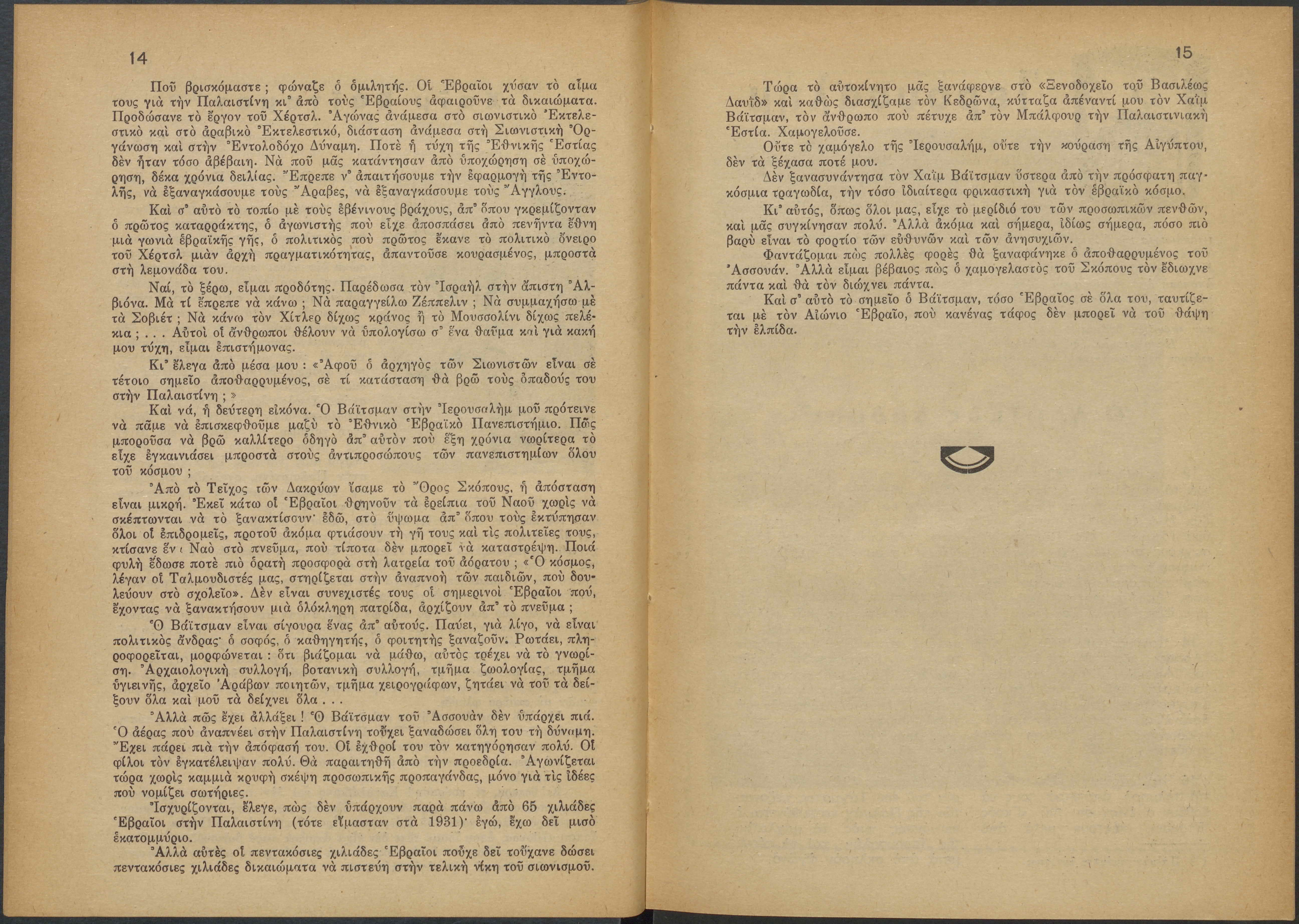 Monthly publication of Keren Kayemeth LeIsrael (Jewish National Fund/Εθνικό Εβραϊκό Κεφάλαιο), 12 issues bound in book form, 116 pages.